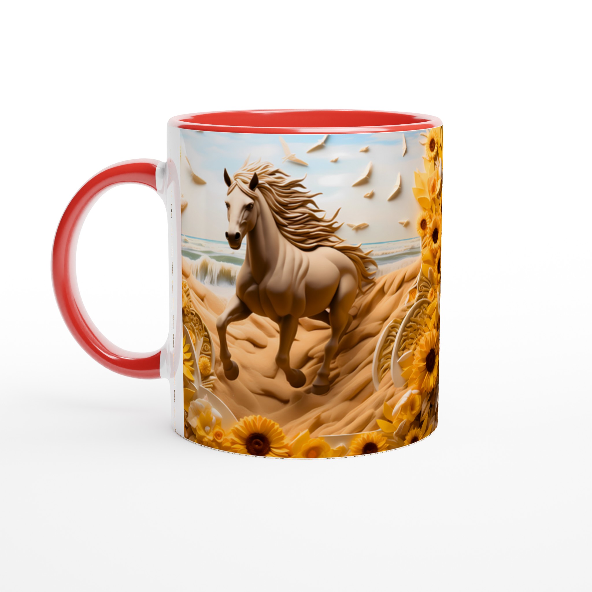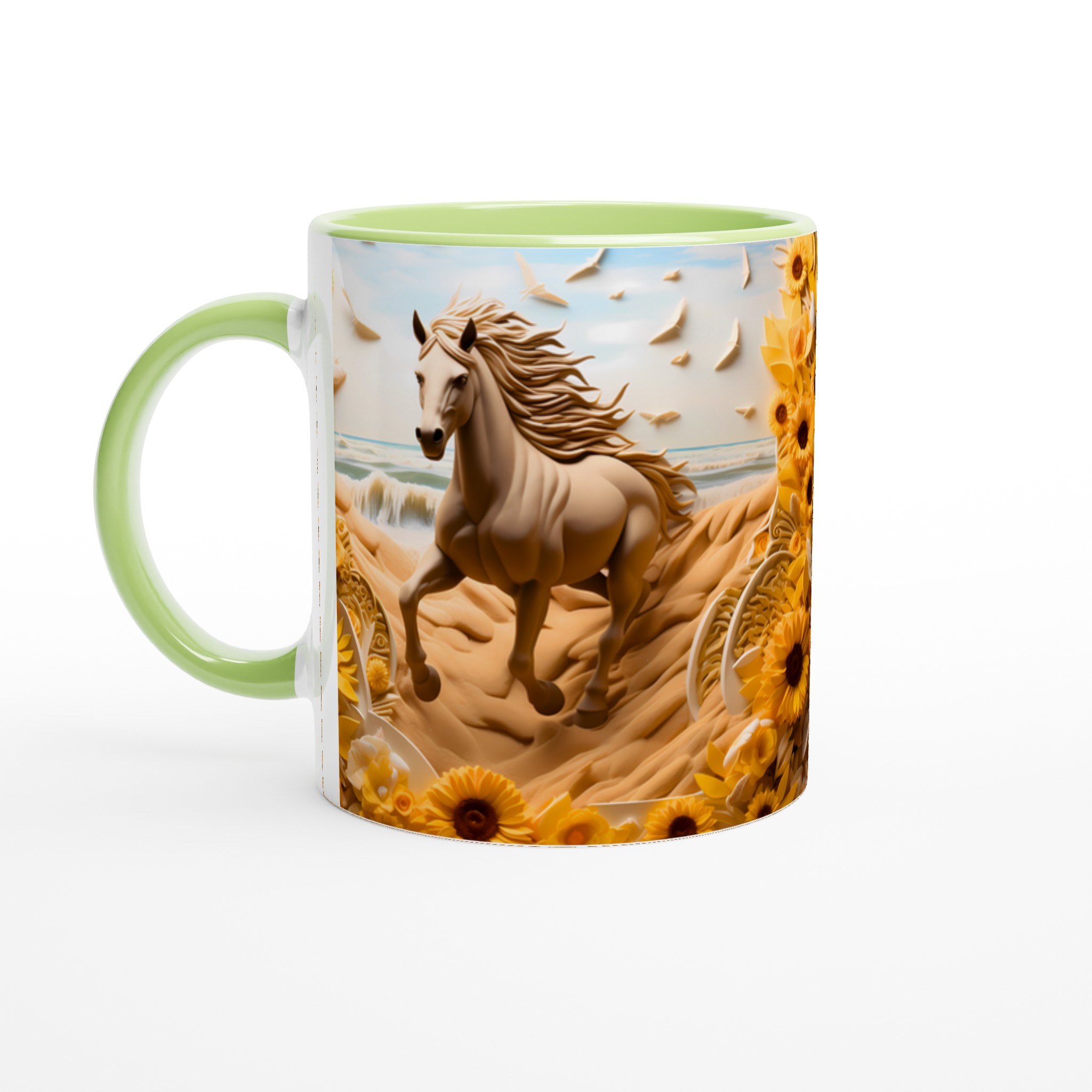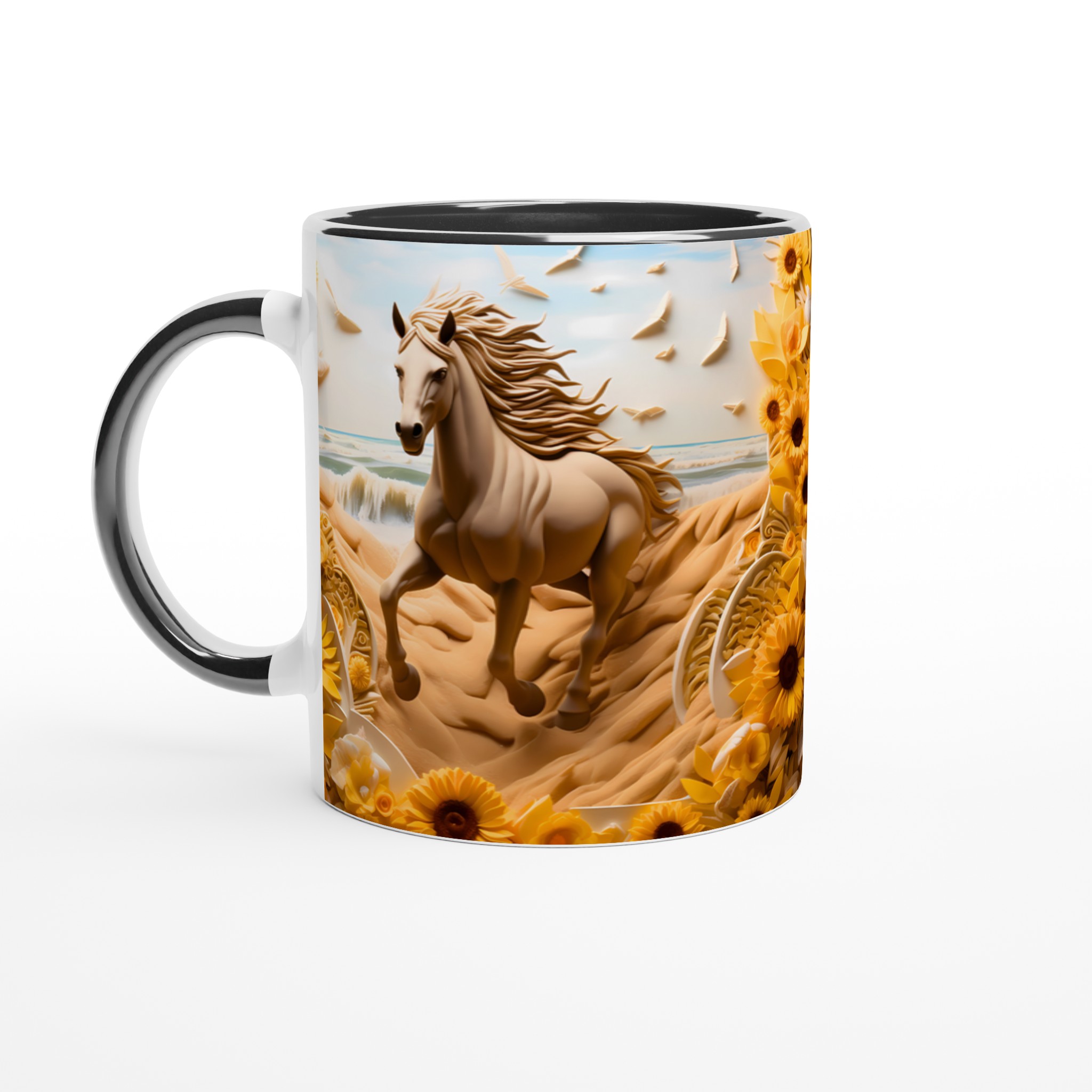 Golden Bloom Equine Mug – Ceramic 11oz, Vibrant Yellows & Ocean Hues