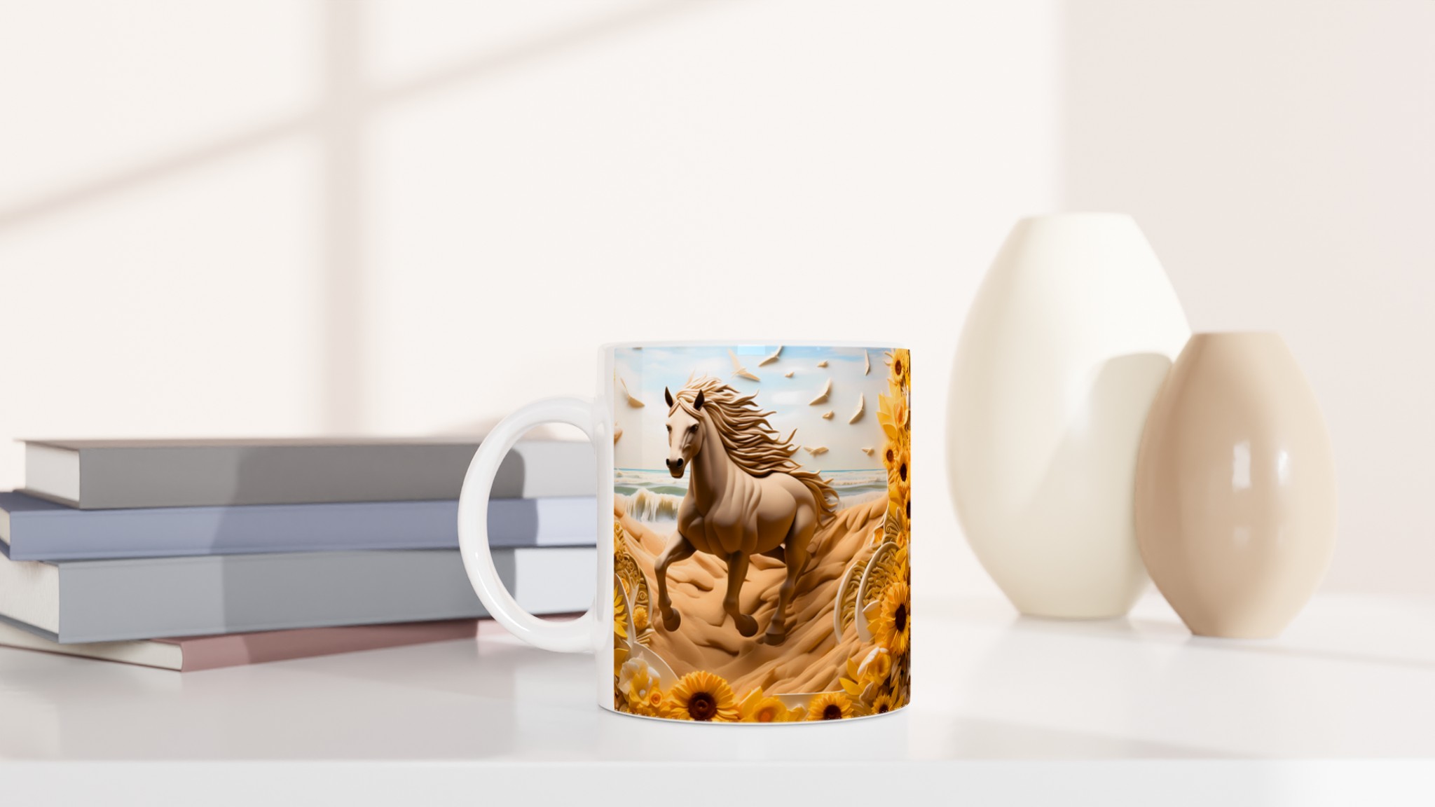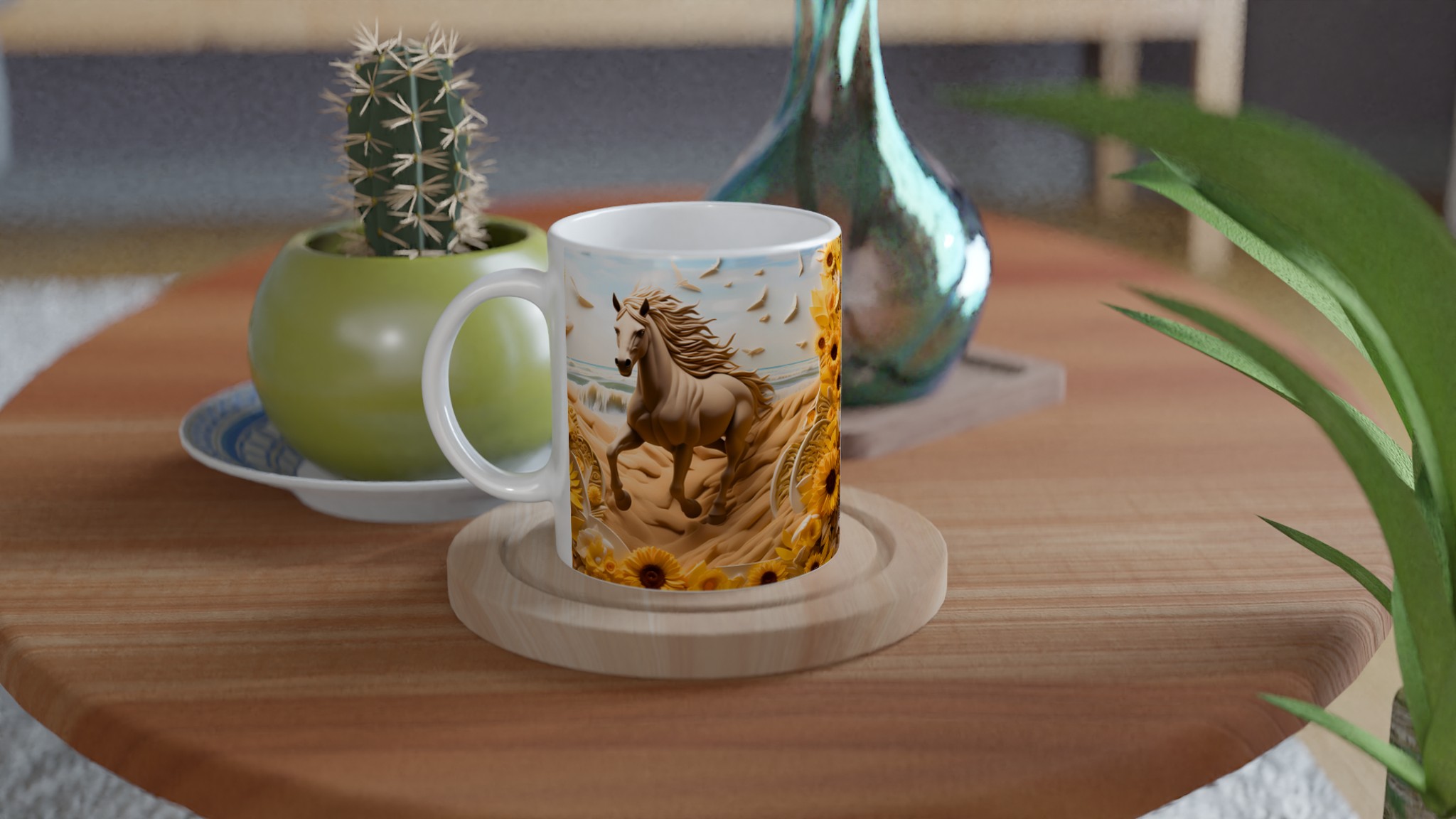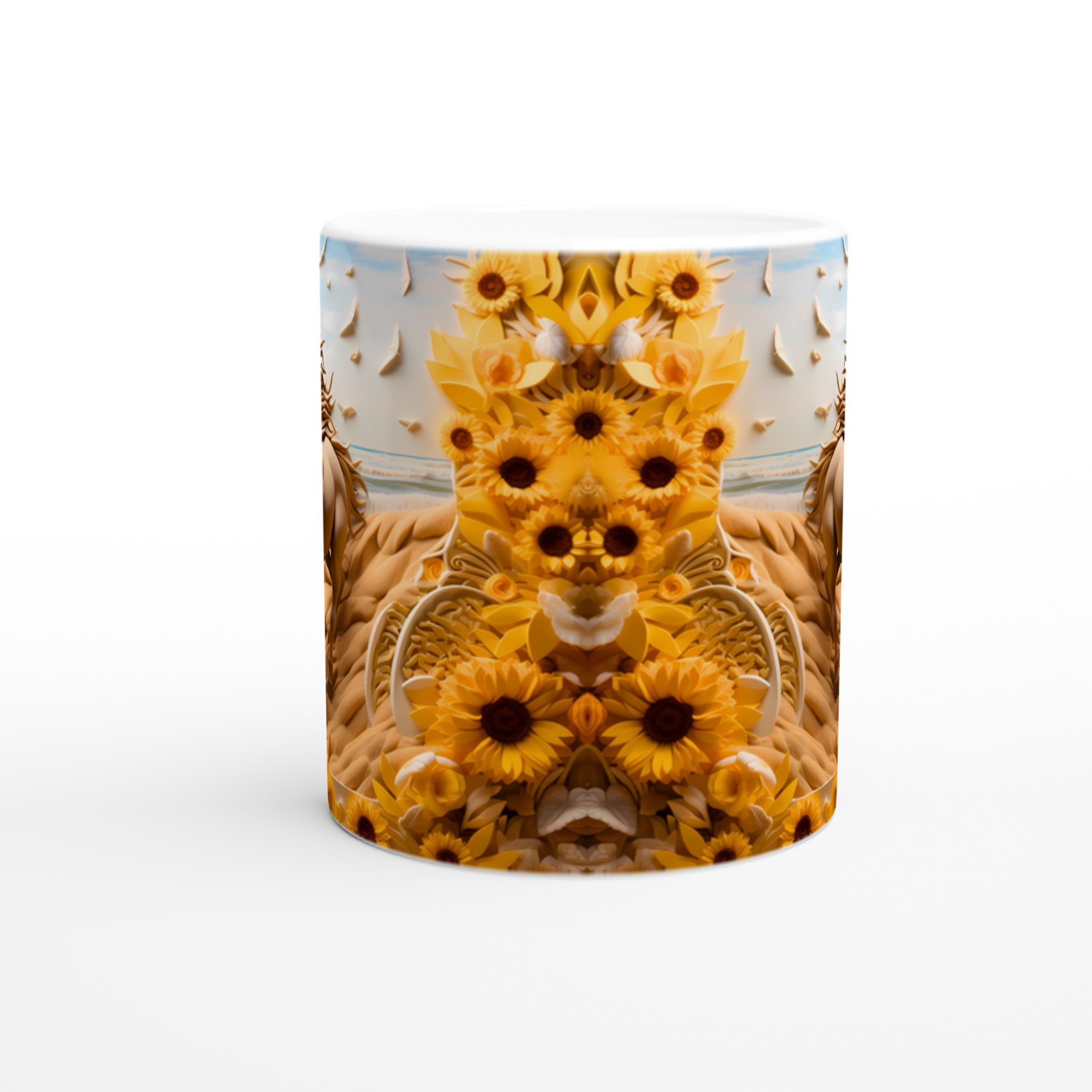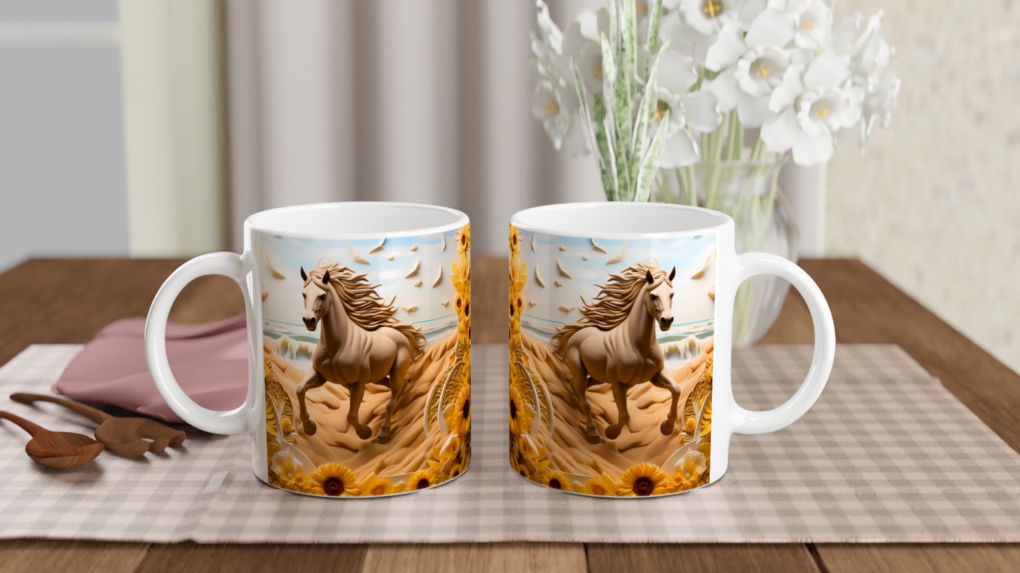 Golden Bloom Equine Mug – Ceramic 11oz, Vibrant Yellows & Ocean Hues