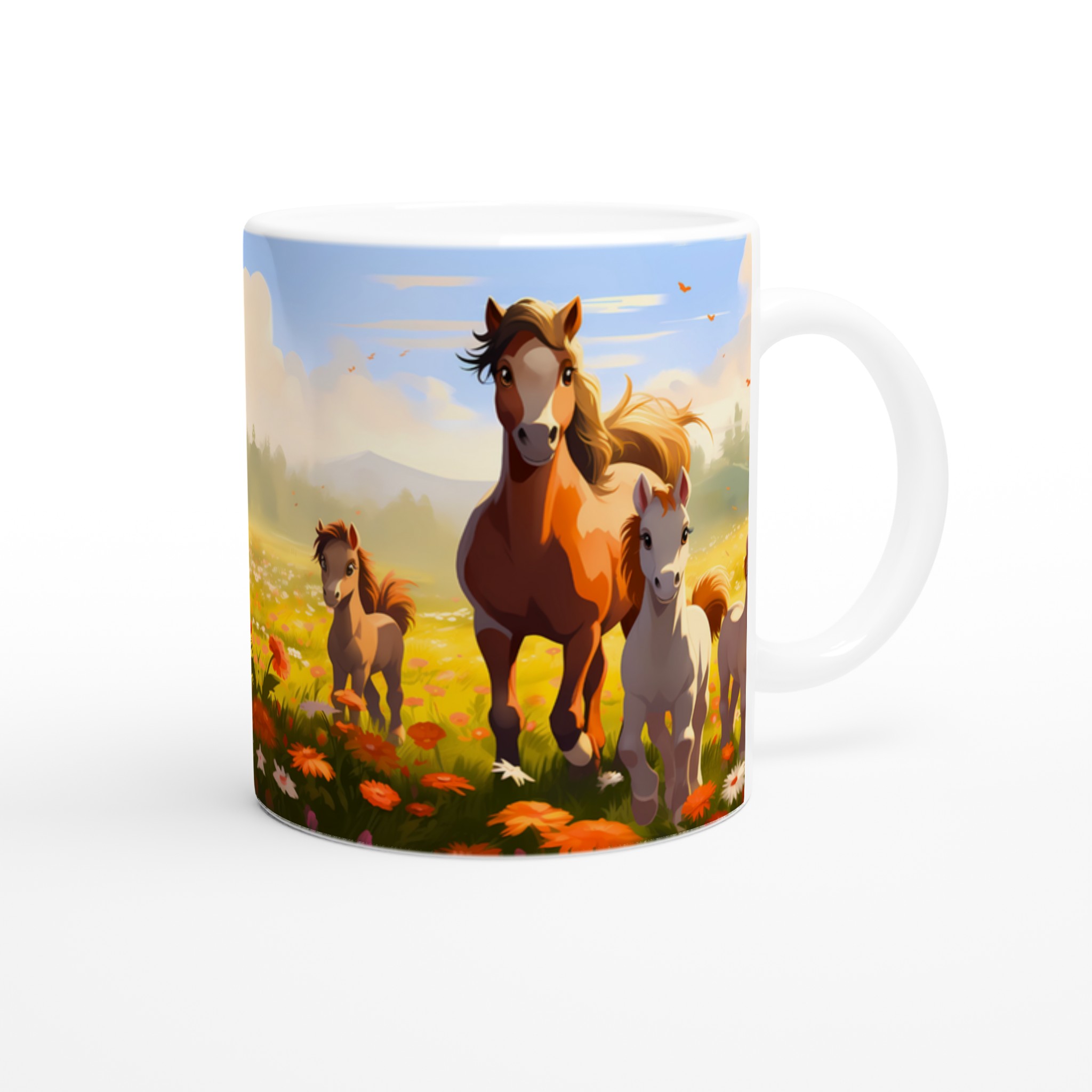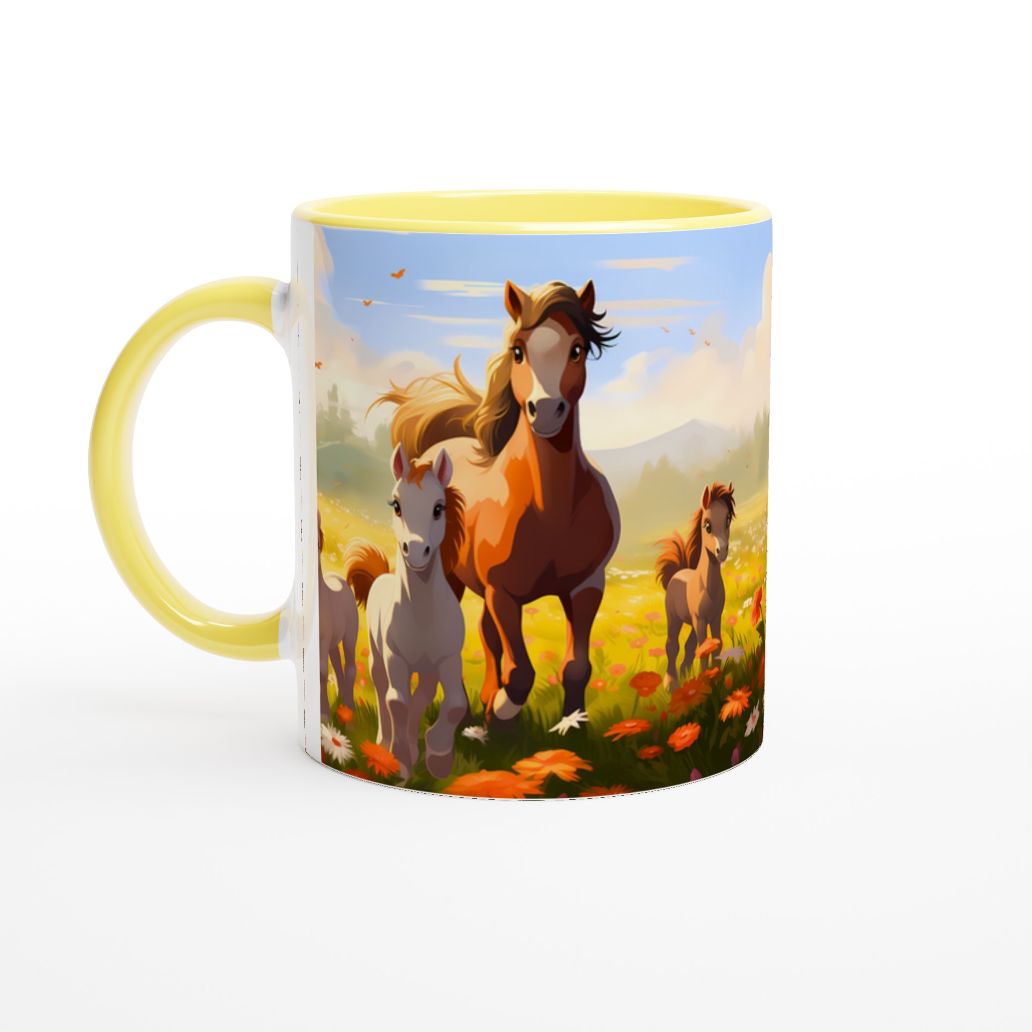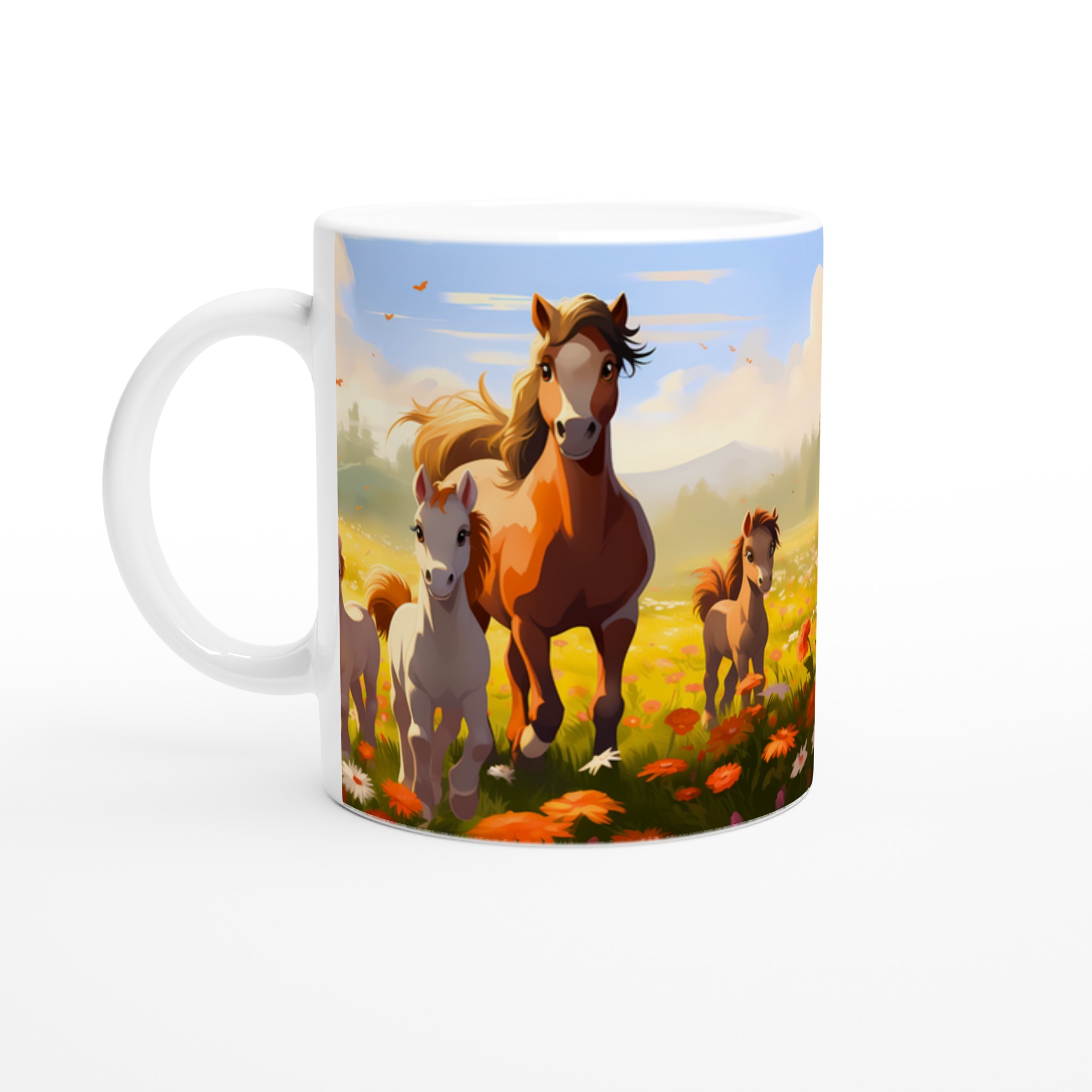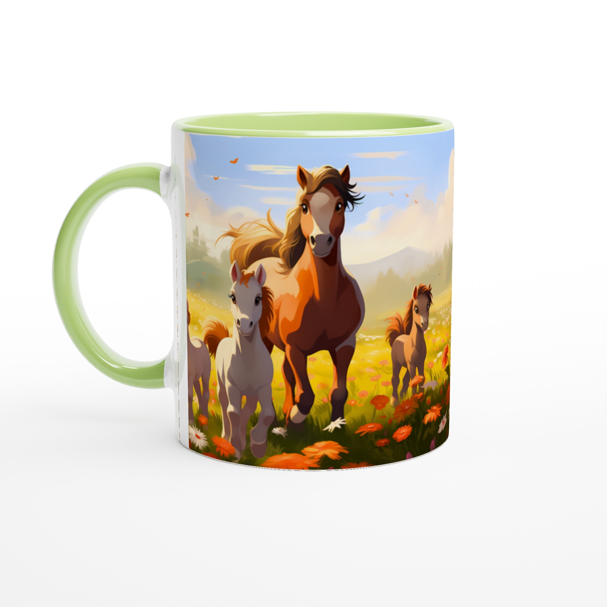 Galloping Grace Ceramic Mug 11oz – A Field of Foals in Your Choice of Seven Hues