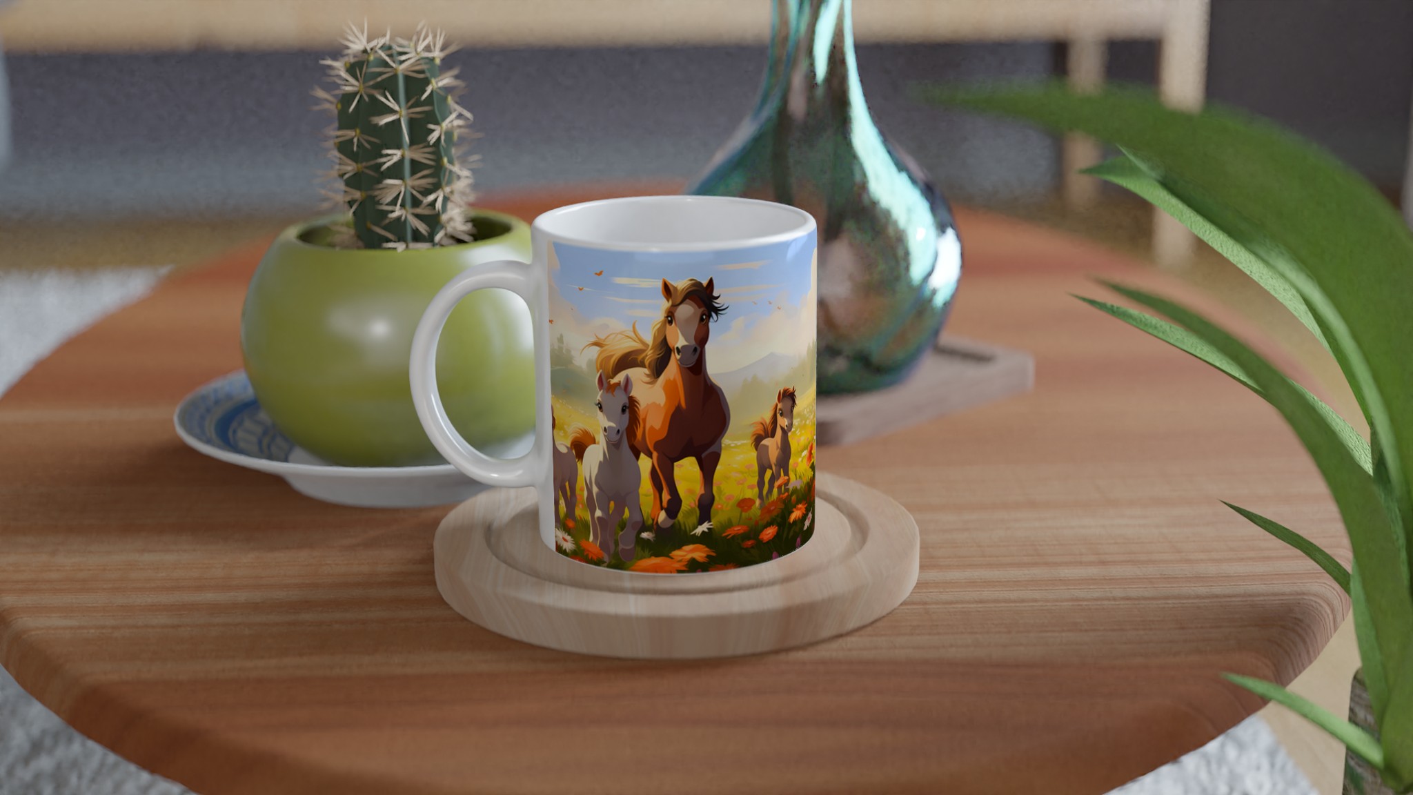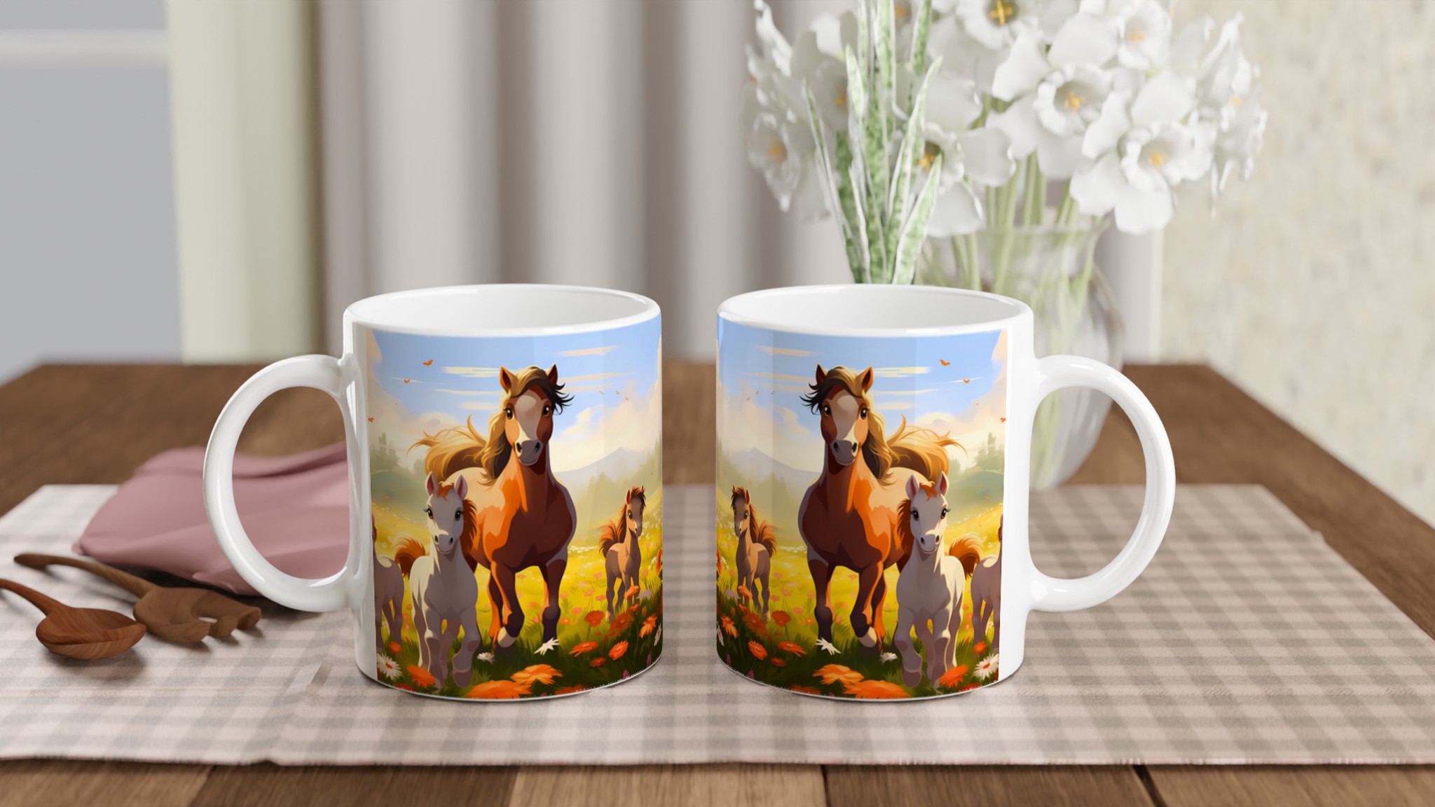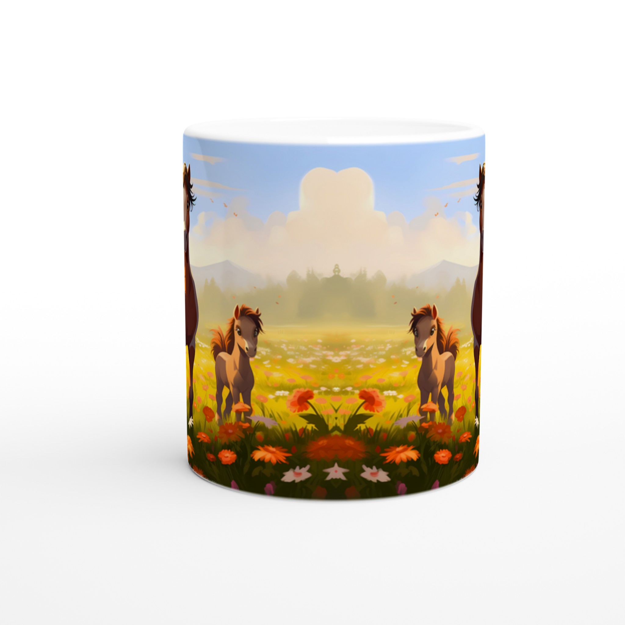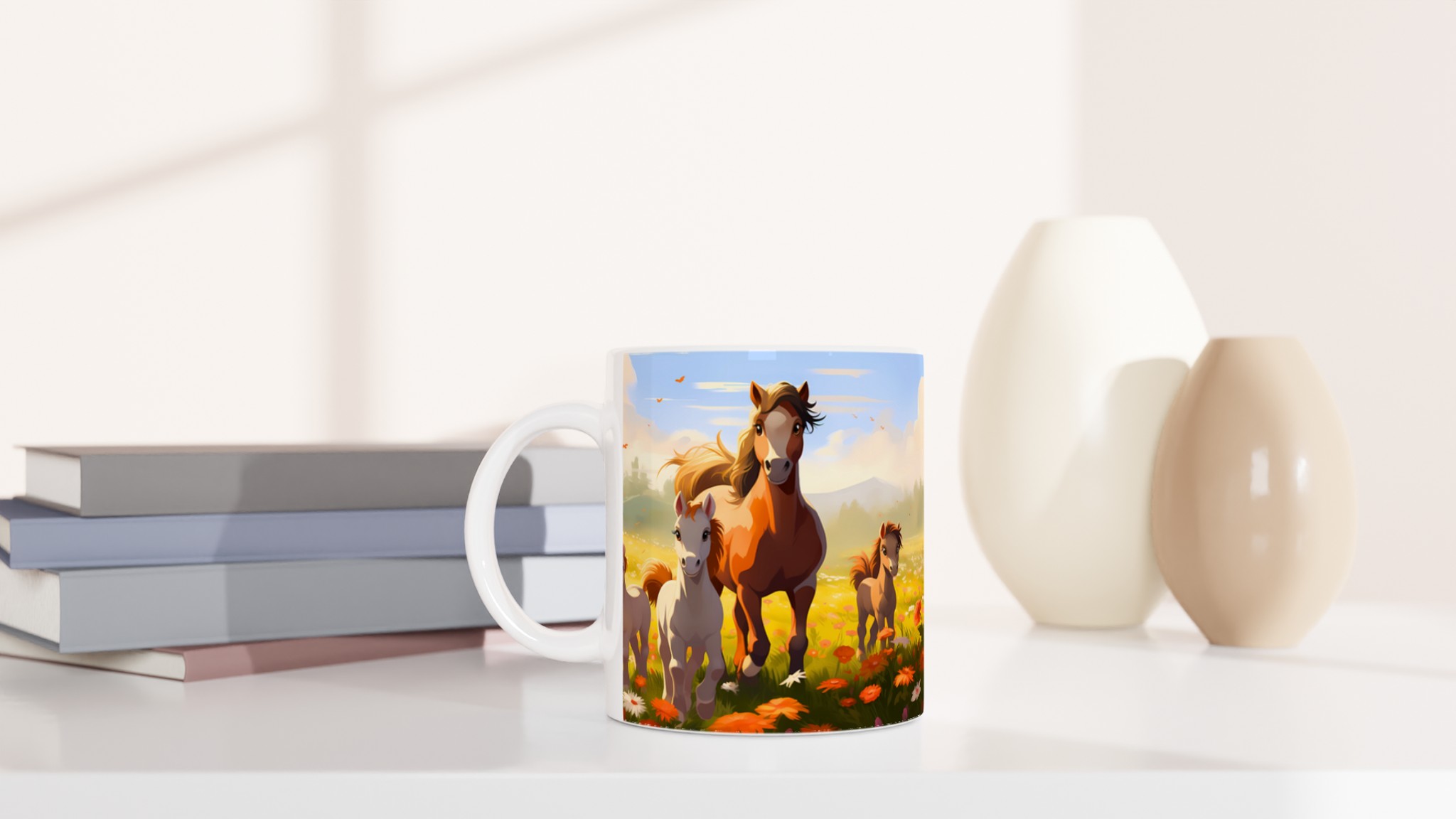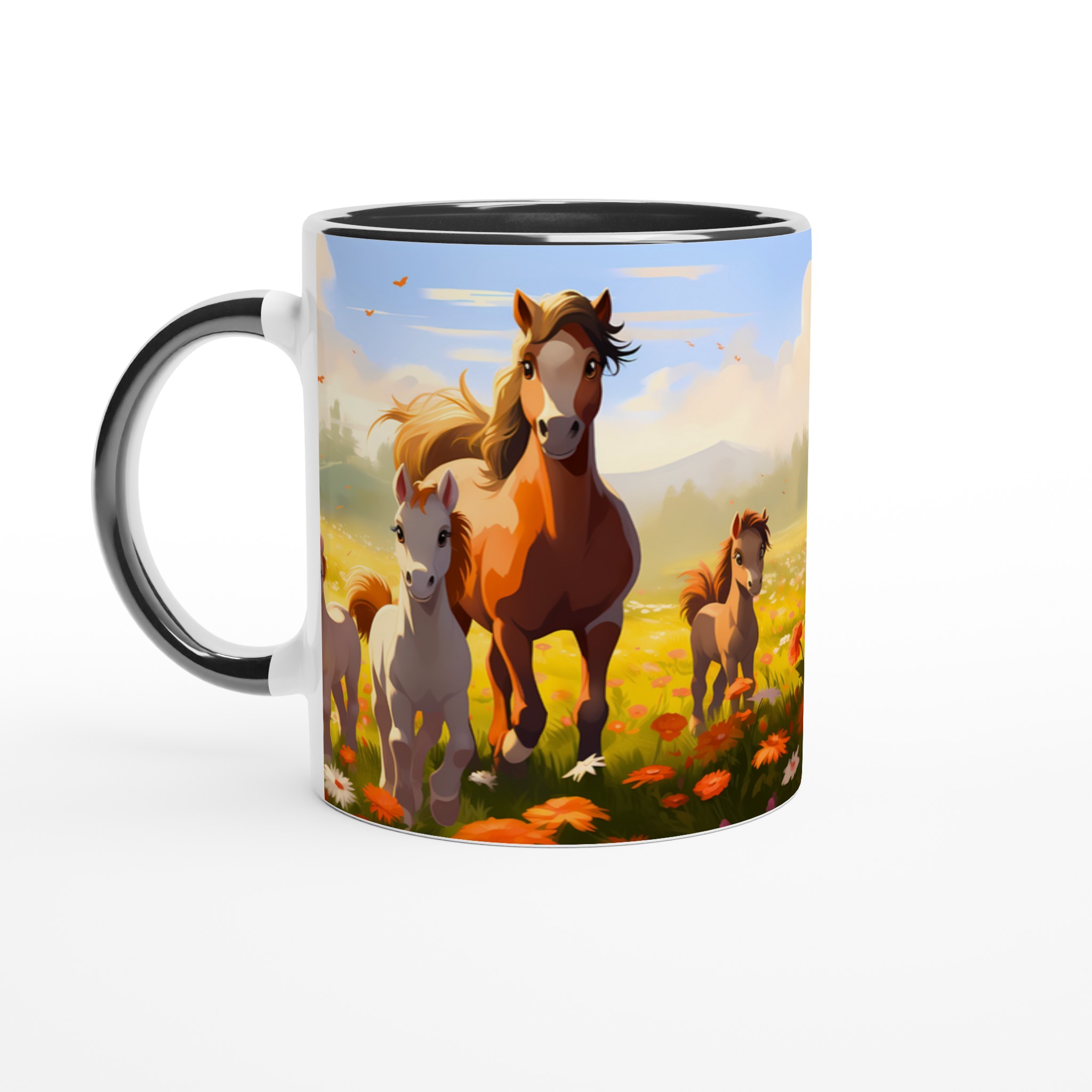 Galloping Grace Ceramic Mug 11oz – A Field of Foals in Your Choice of Seven Hues