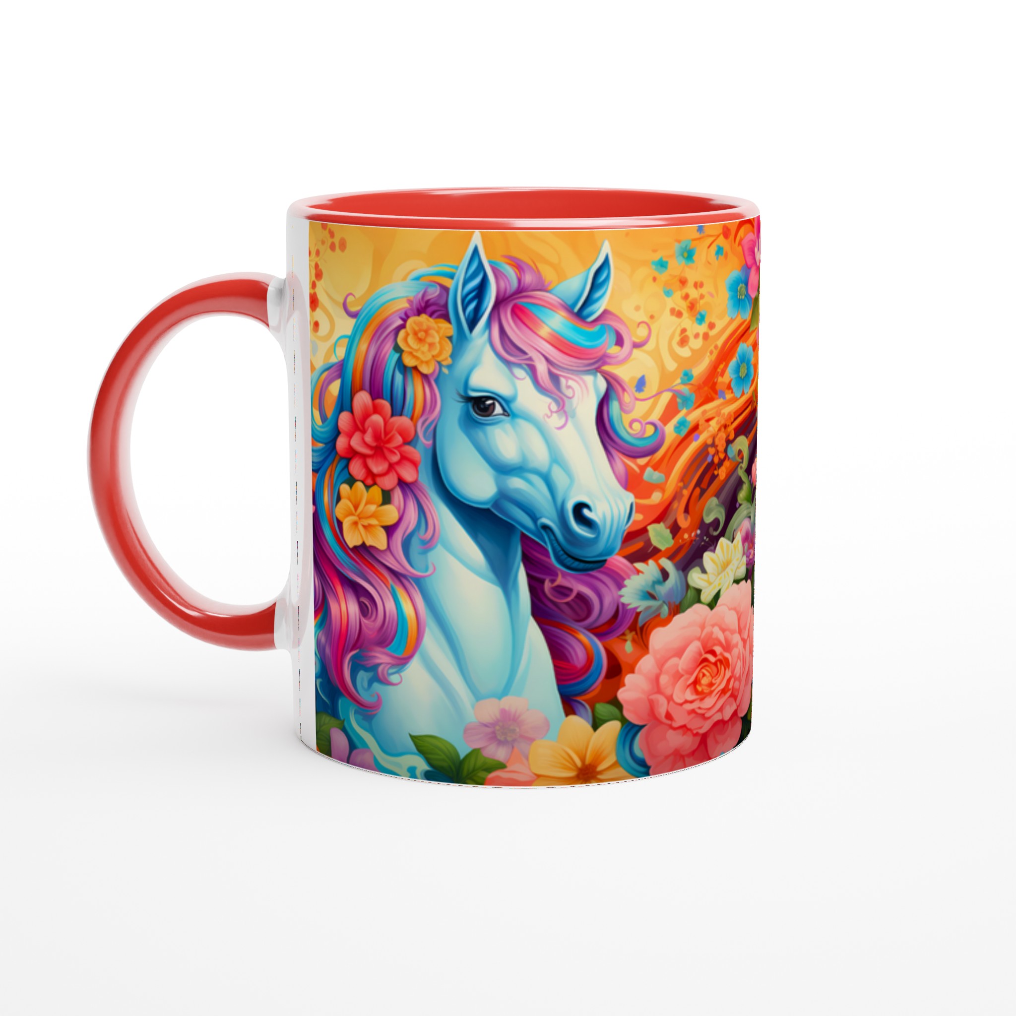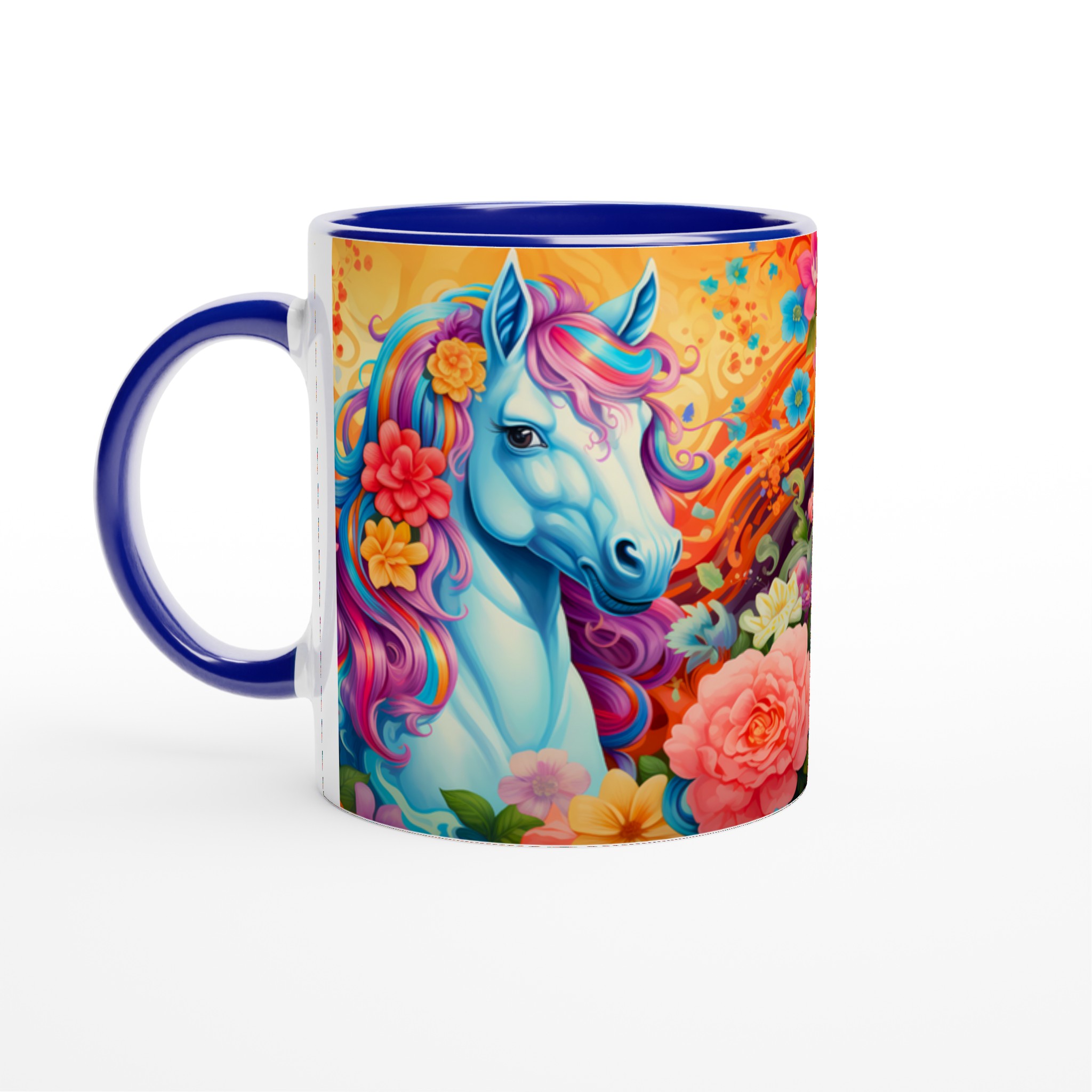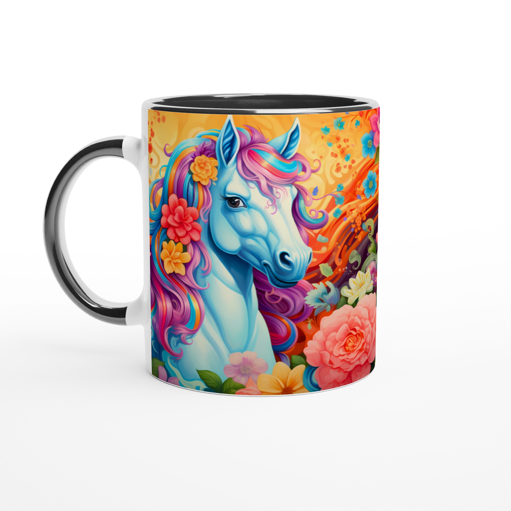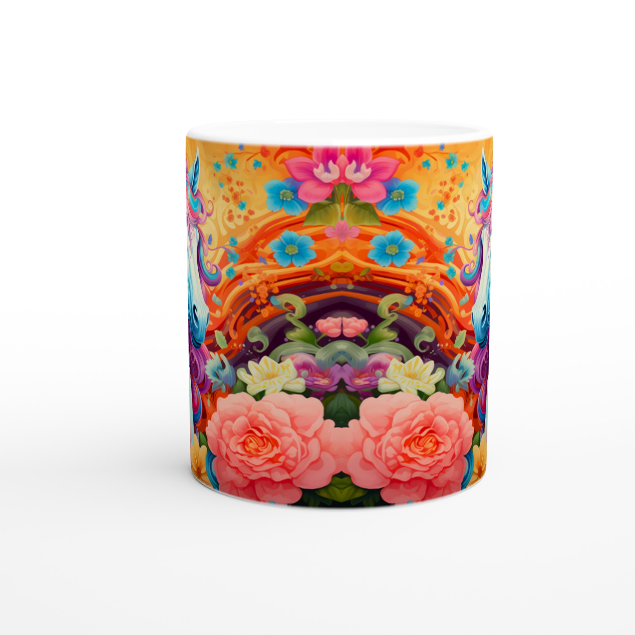 Fantasy Bloom Unicorn Mug – Vibrant Floral Ceramic Mug 11oz in Your Choice of Seven Hues
