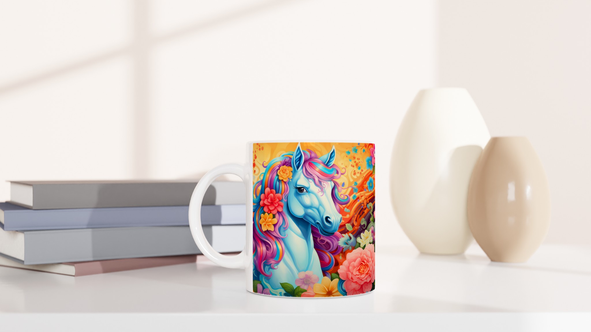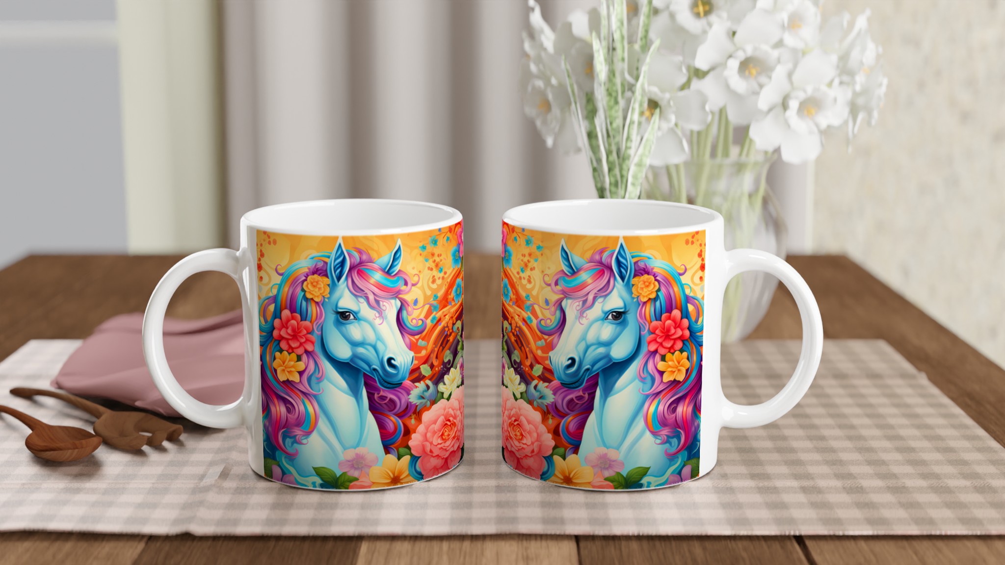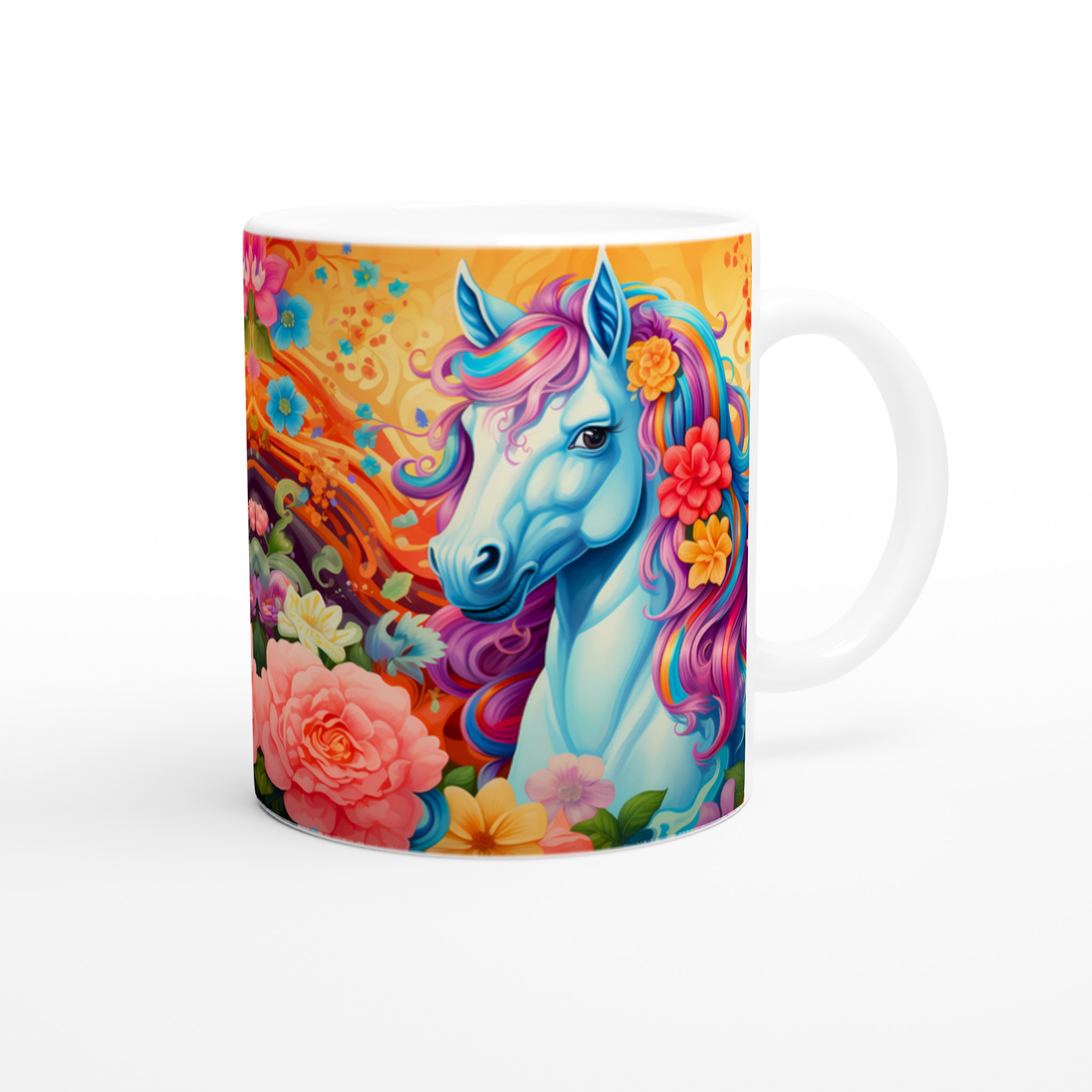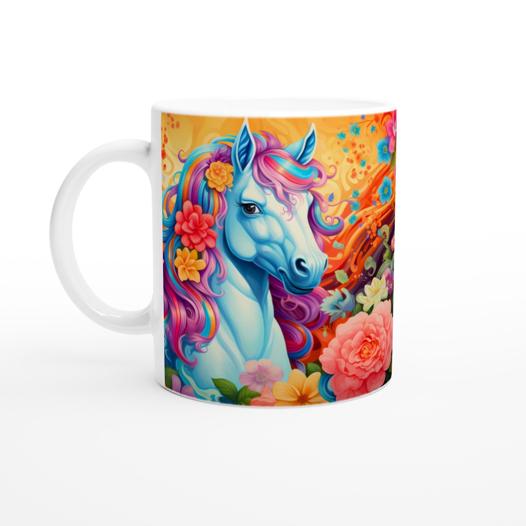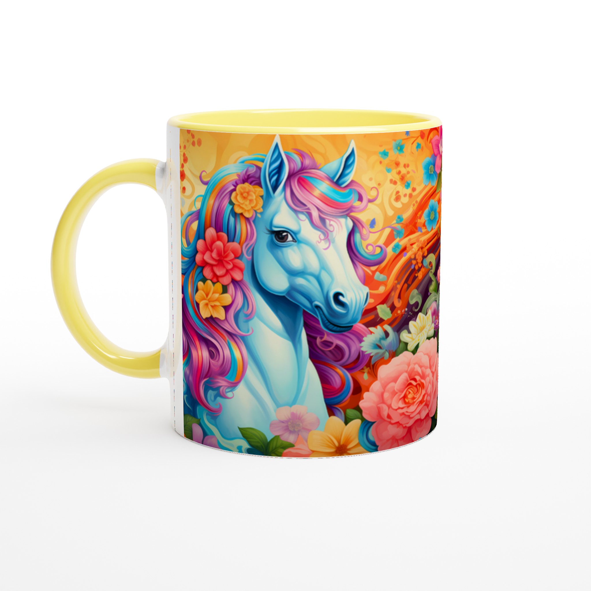 Fantasy Bloom Unicorn Mug – Vibrant Floral Ceramic Mug 11oz in Your Choice of Seven Hues