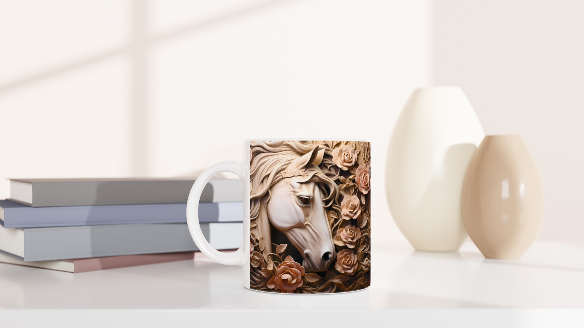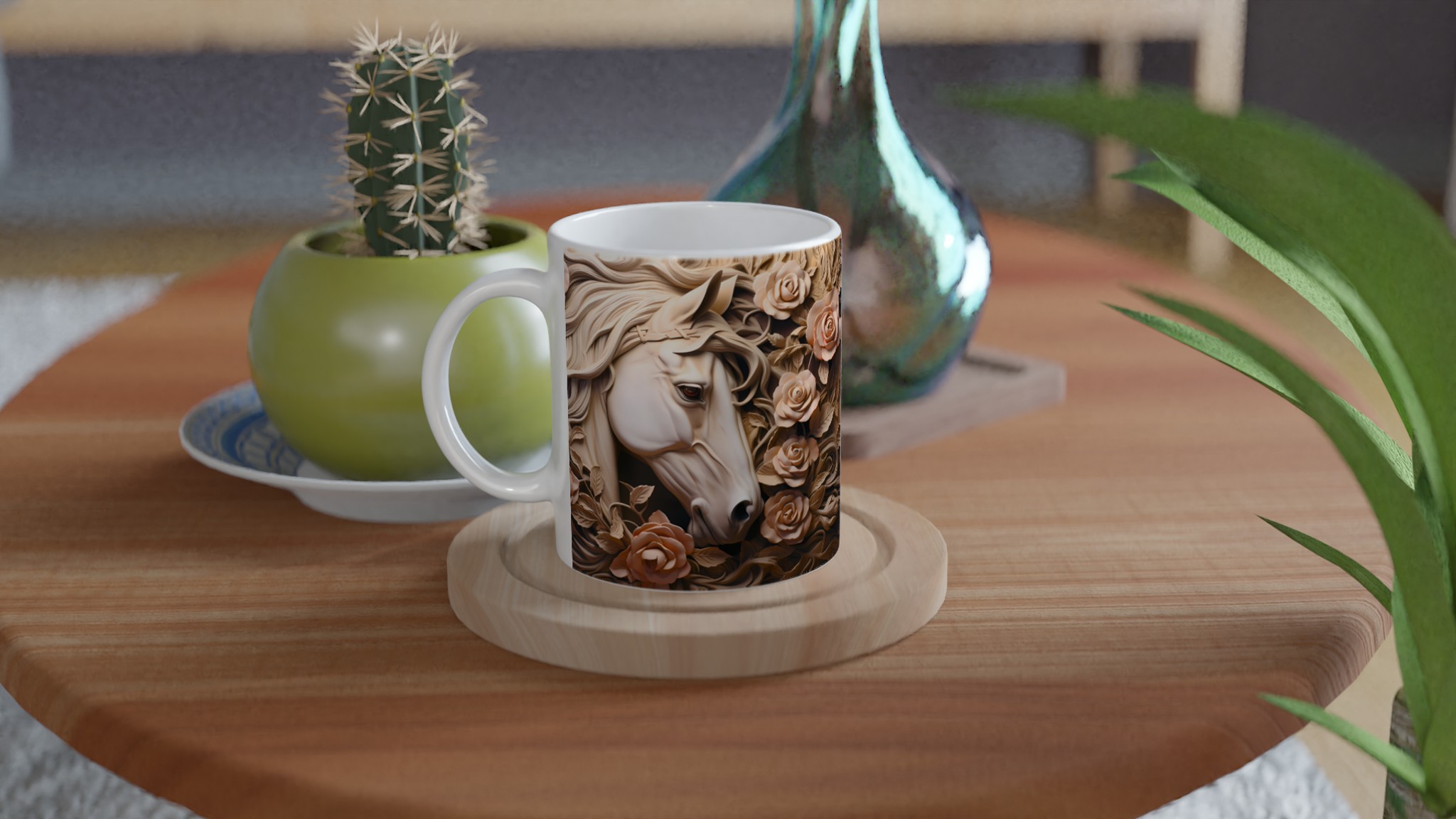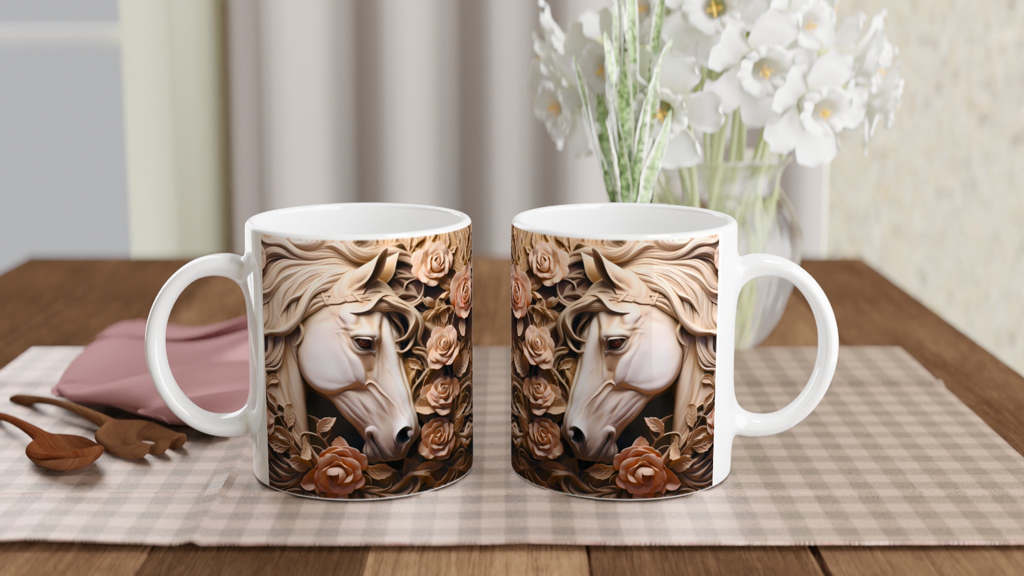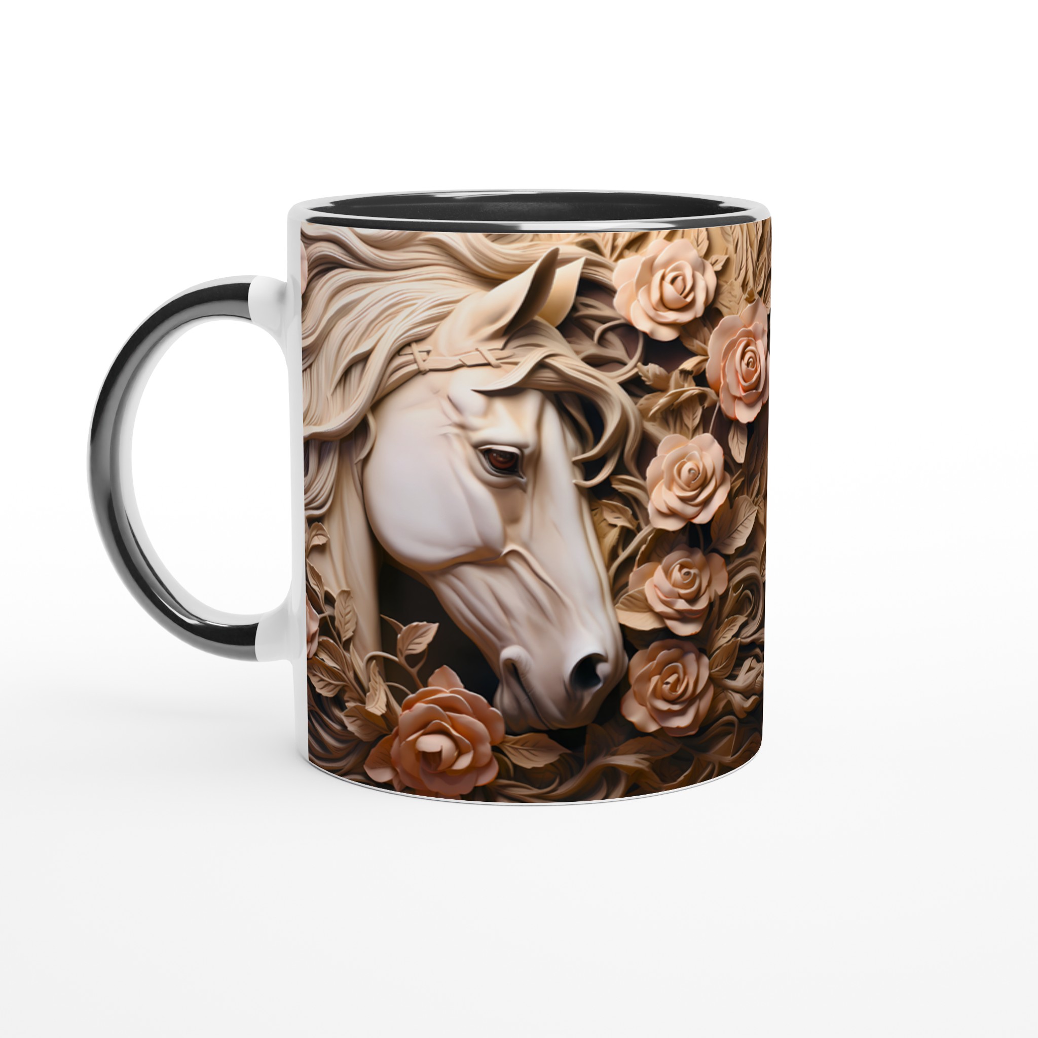 Equestrian Elegance – Ornate Ceramic Mug 11oz, in your choice of seven captivating colors