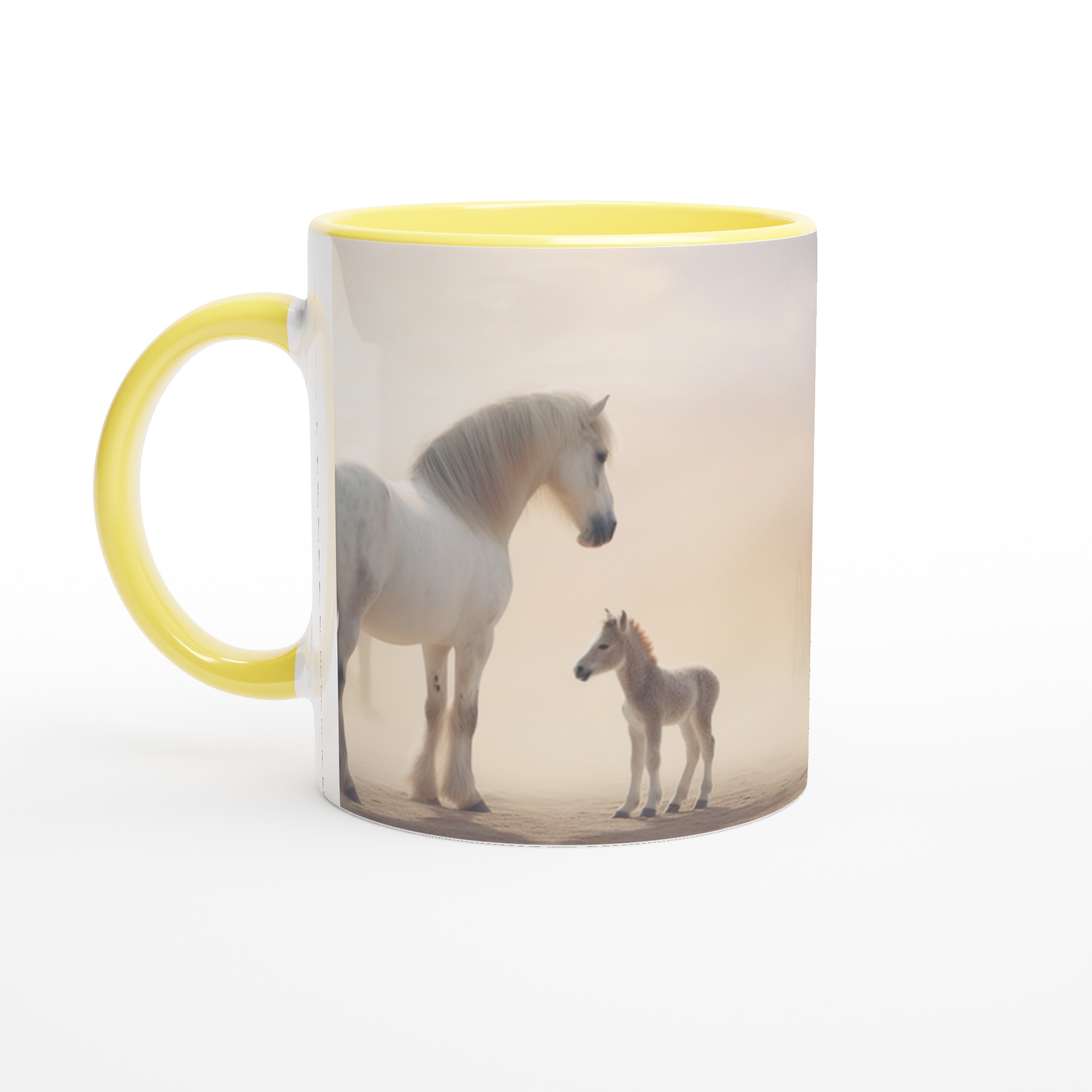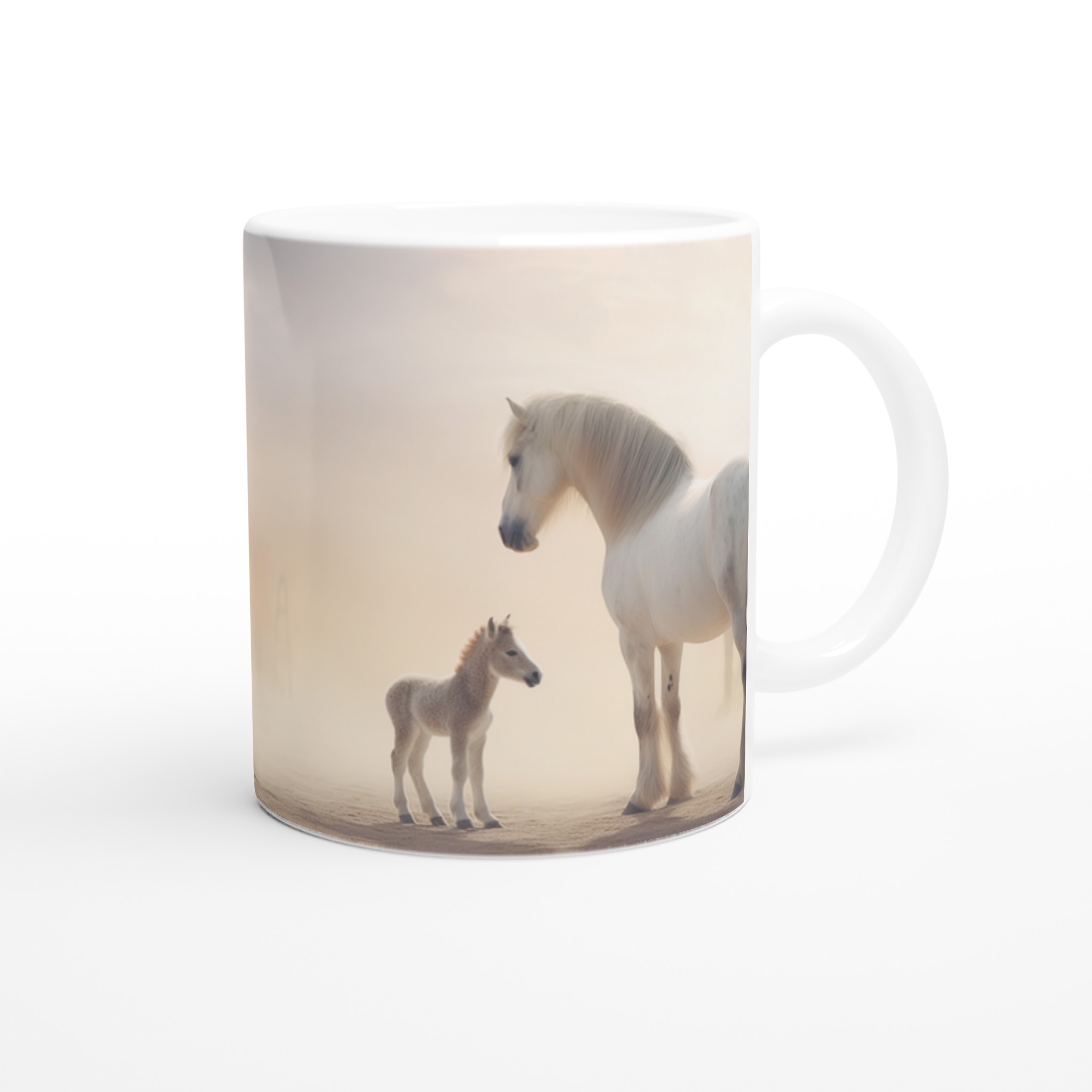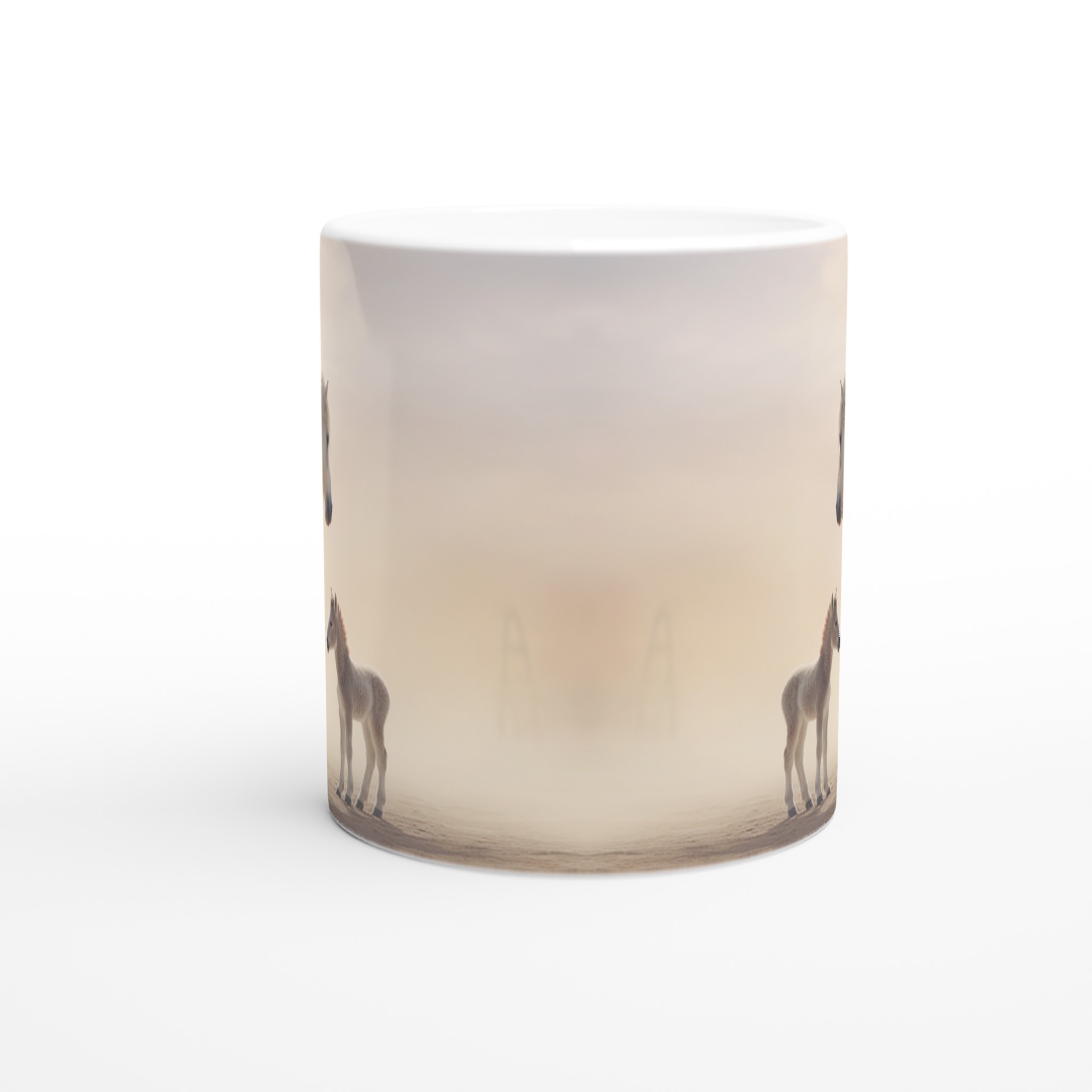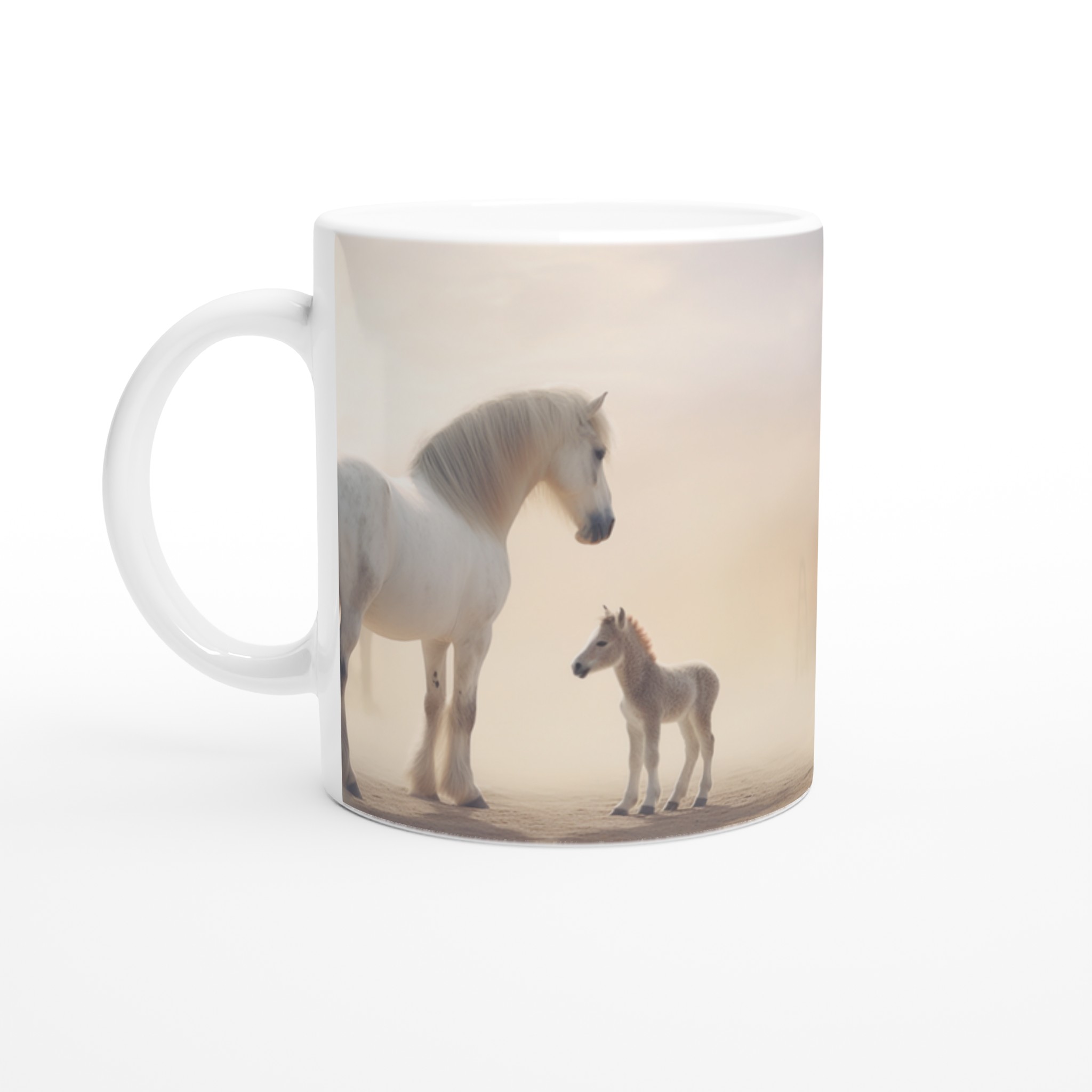 Desert Dream – White Horse & Foal Ceramic Mug 11oz, in your choice of seven captivating colors