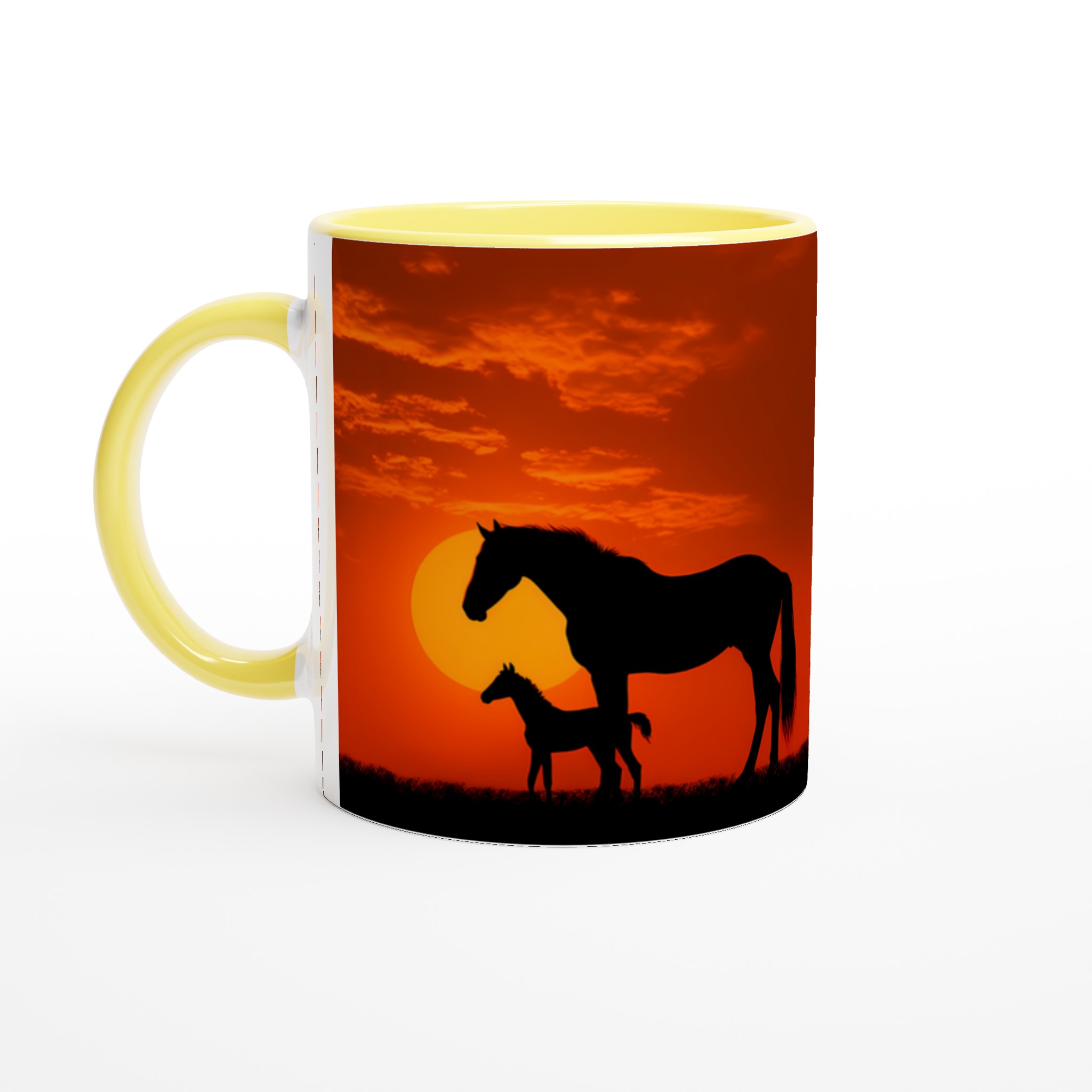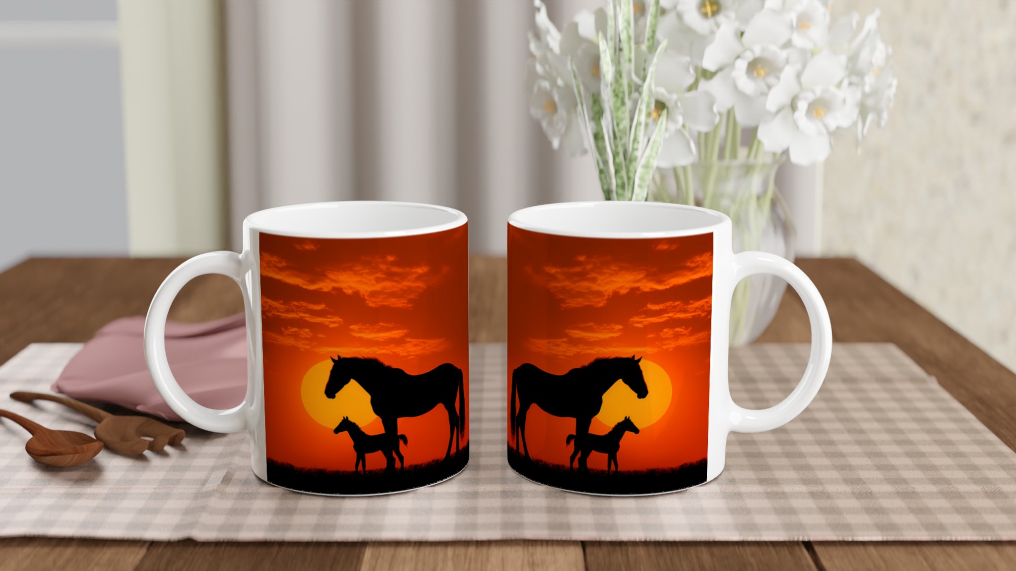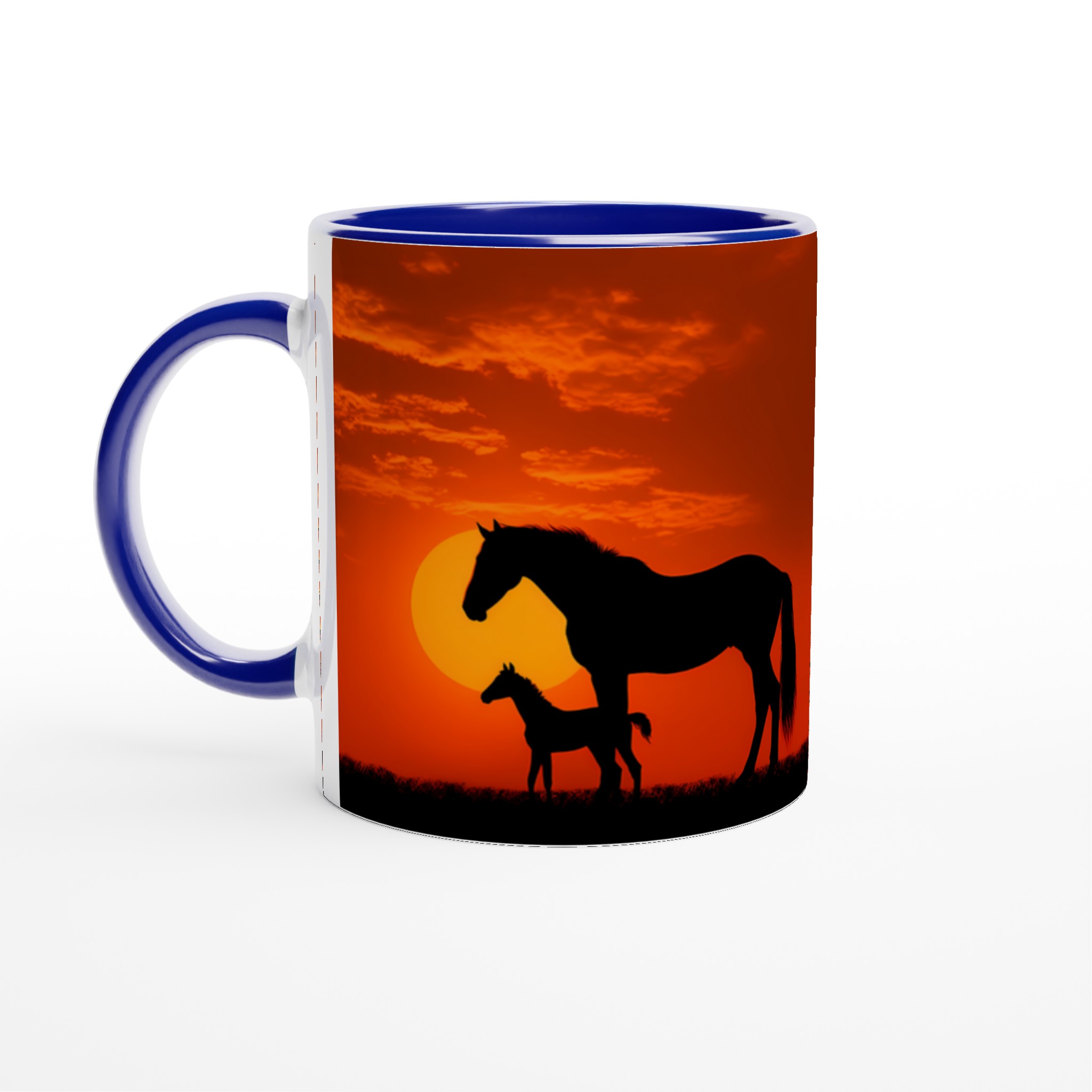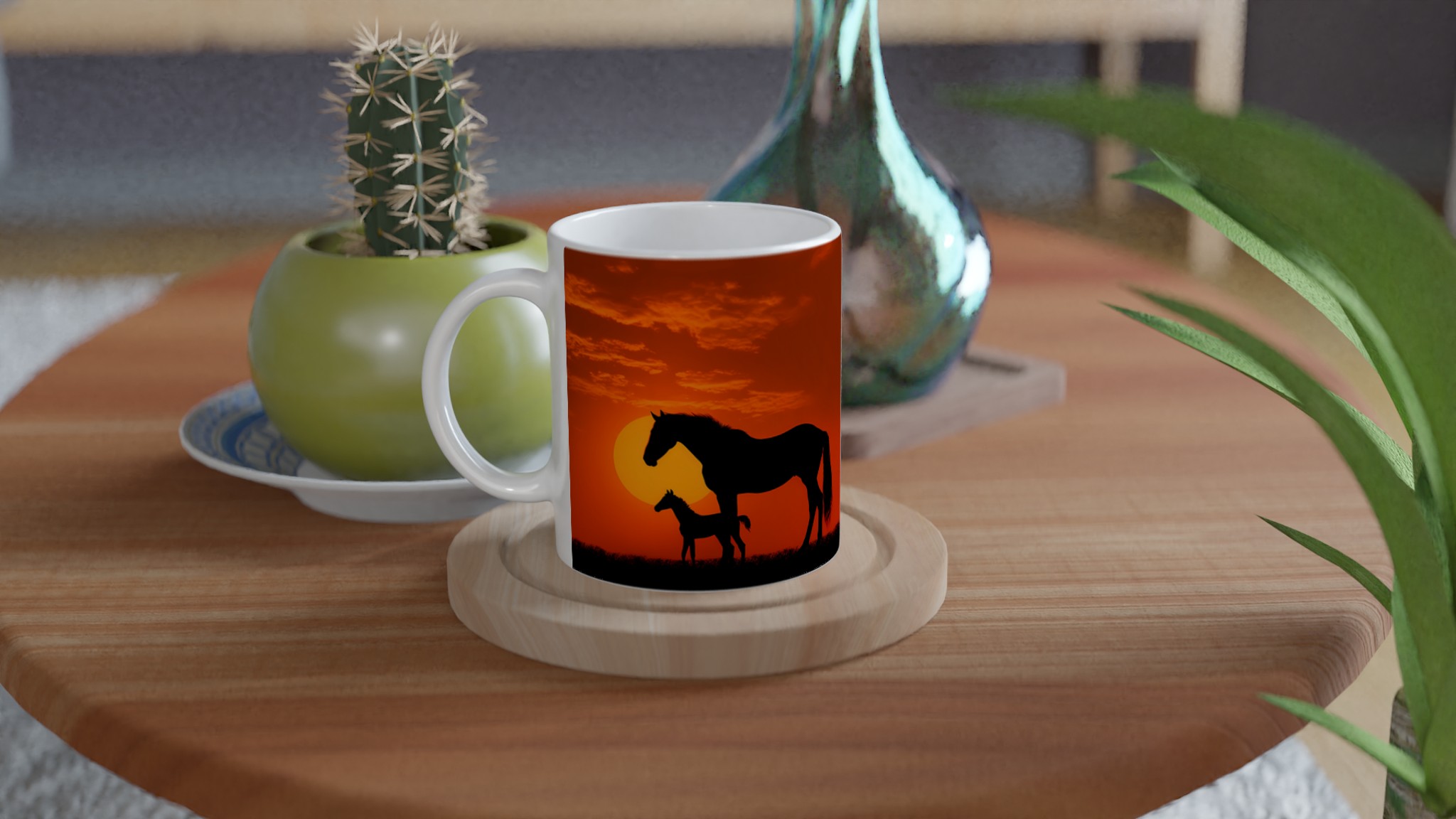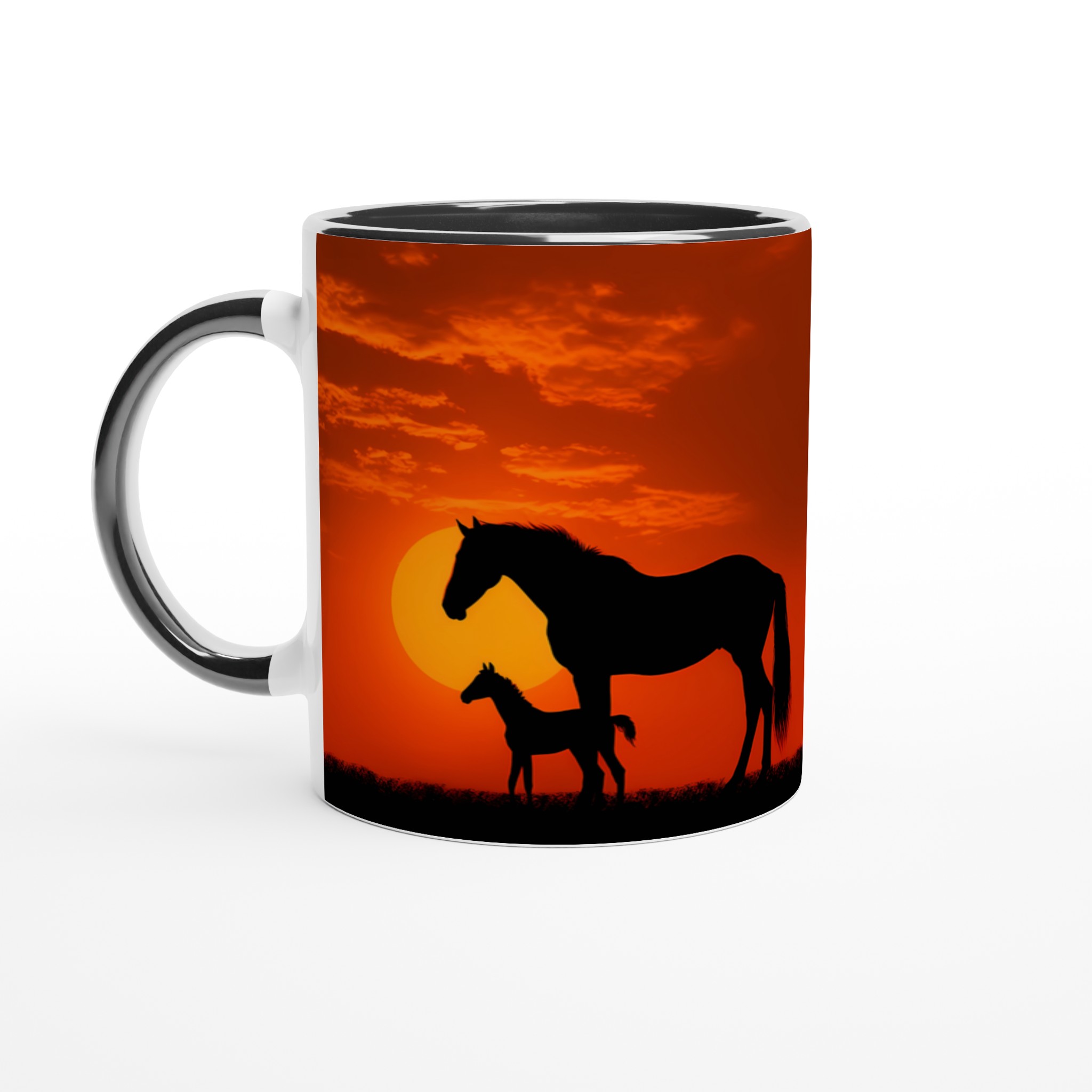 Sunset Horse Family – Ceramic Mug 11oz: A Vibrant Tribute to Wild Beauty, in Your Choice of Seven Hues