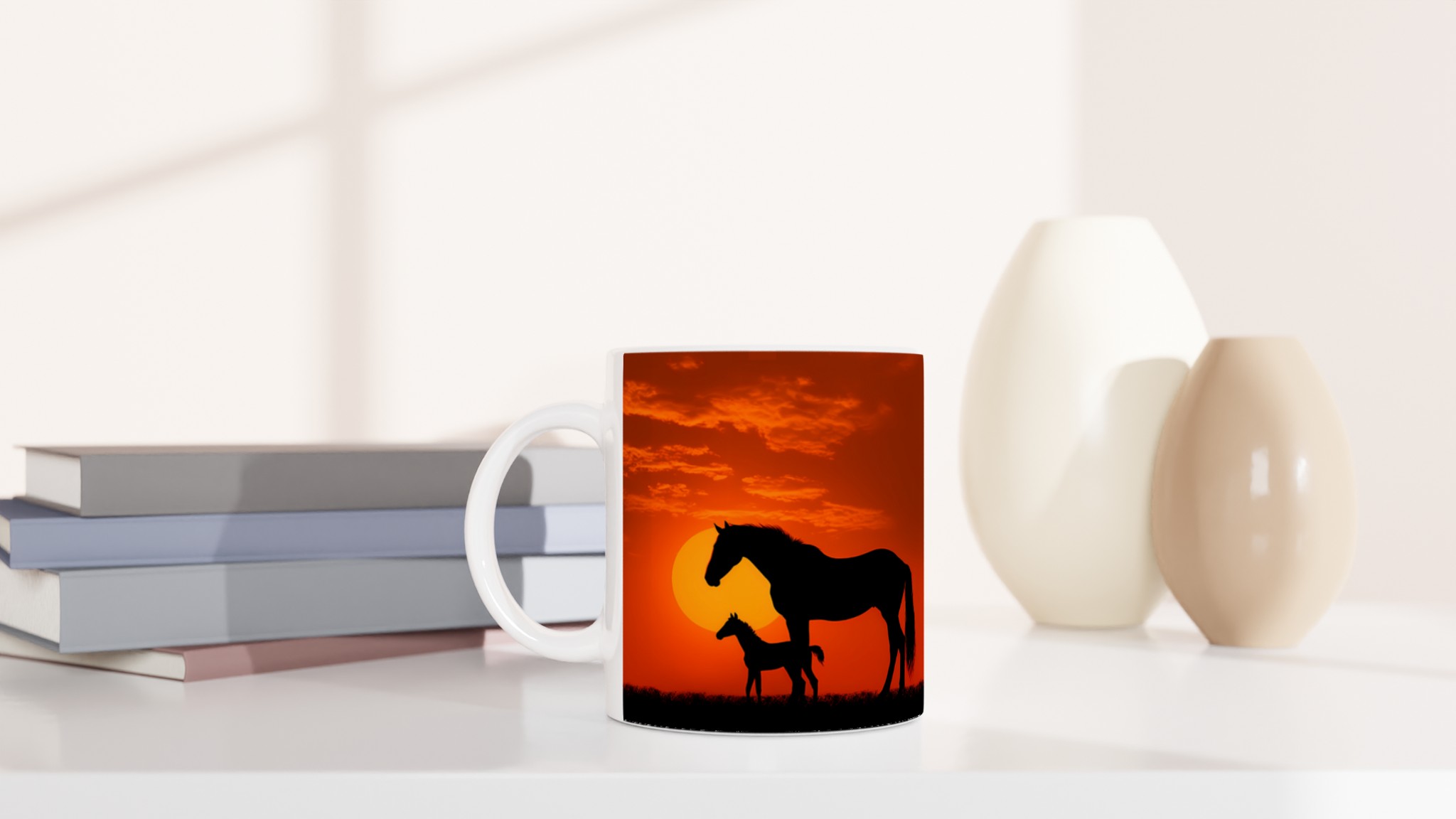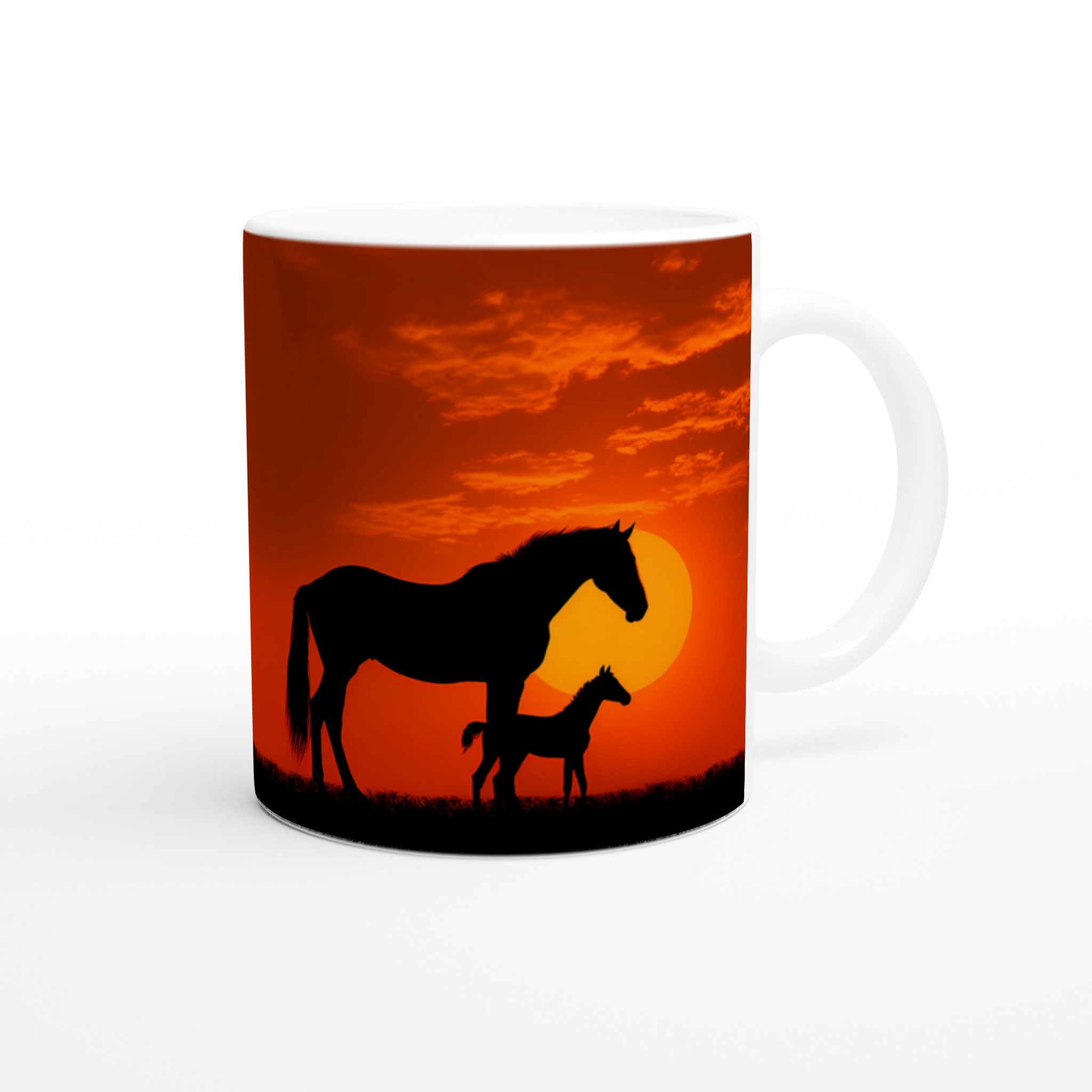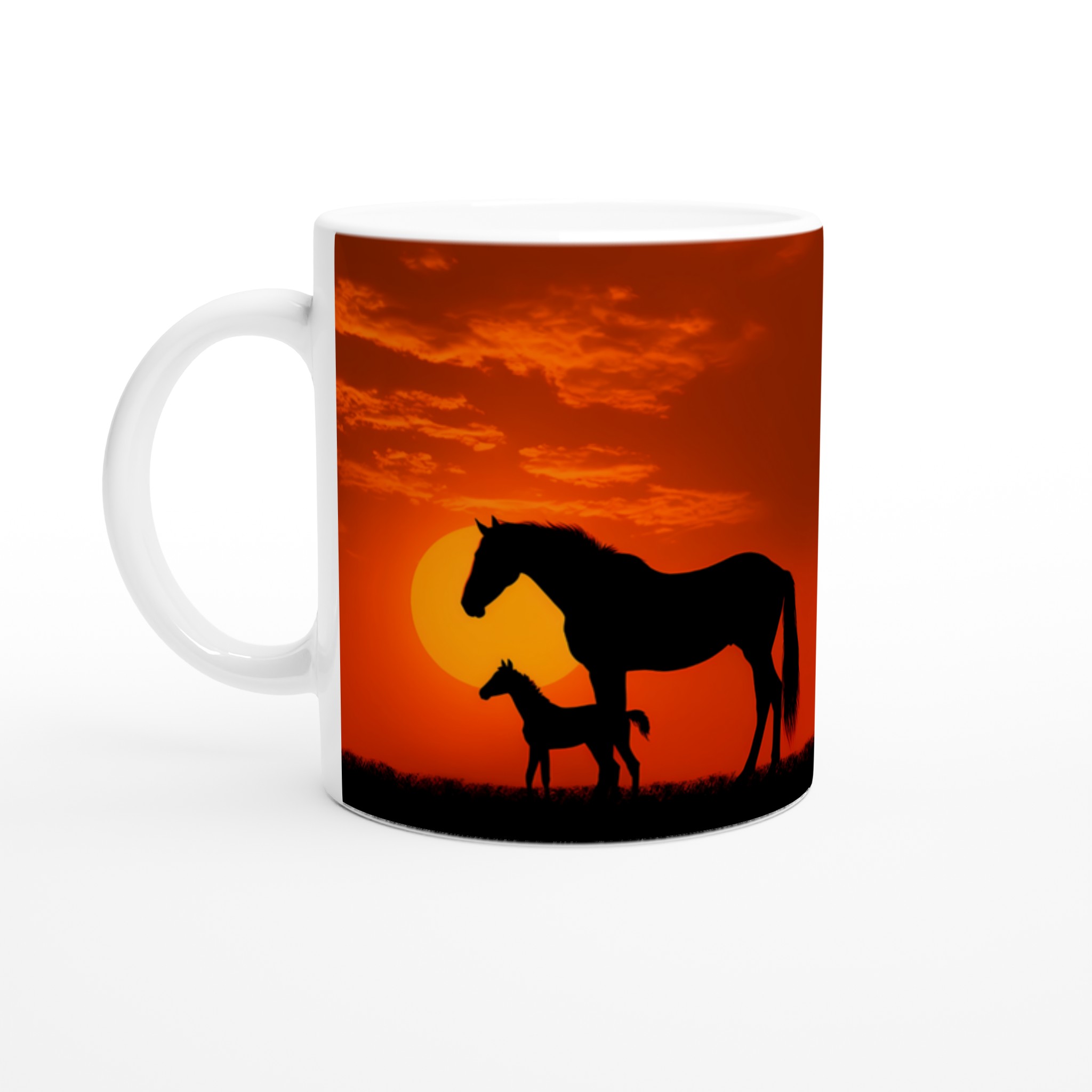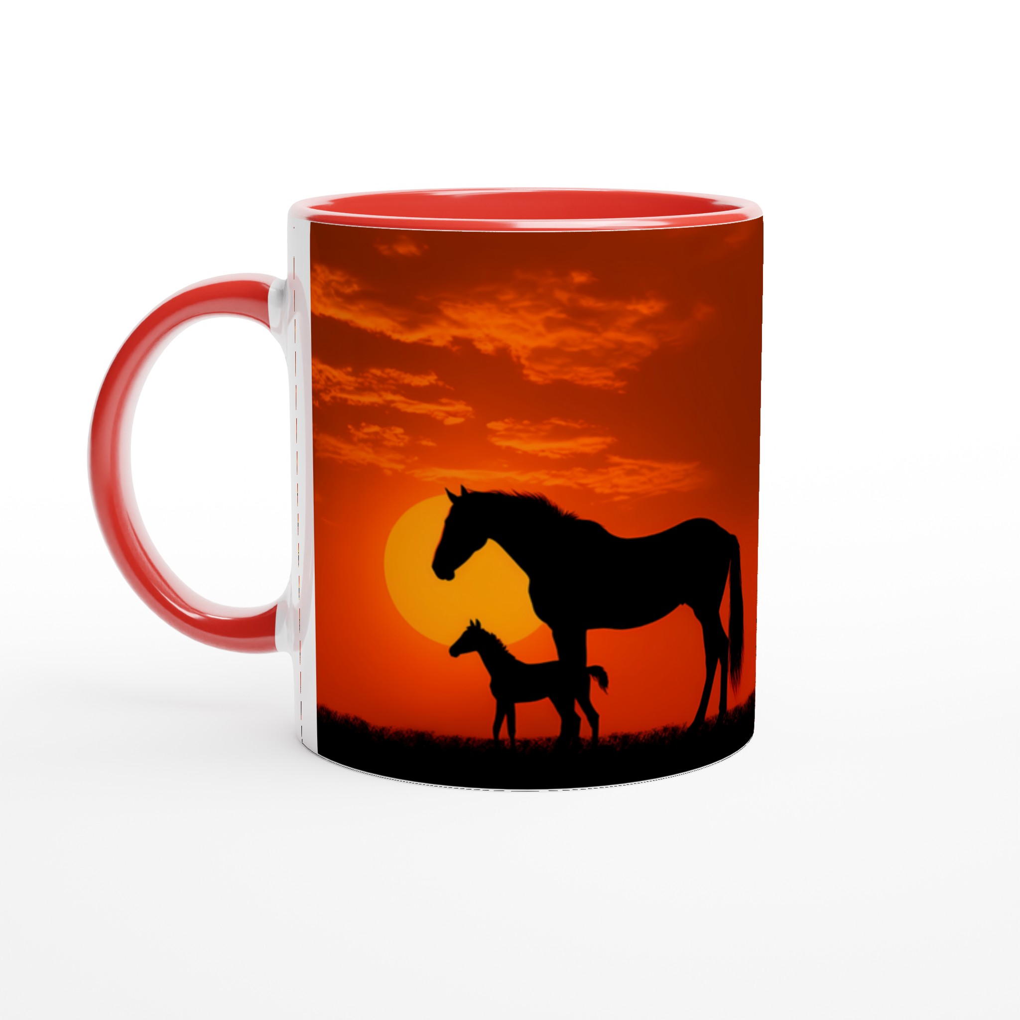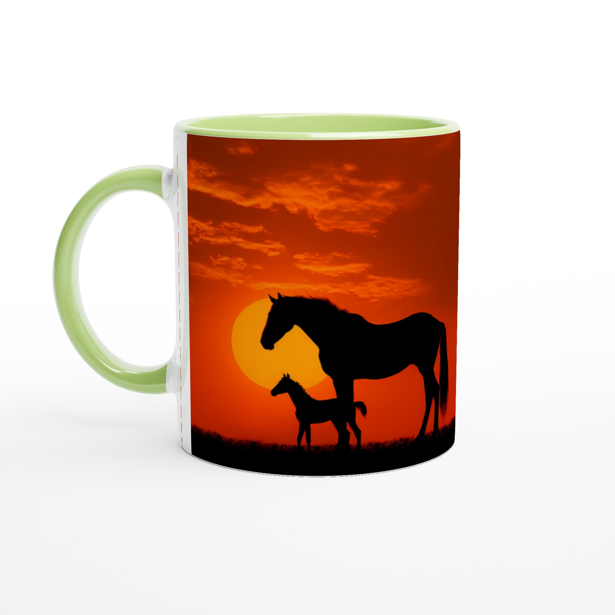 Sunset Horse Family – Ceramic Mug 11oz: A Vibrant Tribute to Wild Beauty, in Your Choice of Seven Hues
