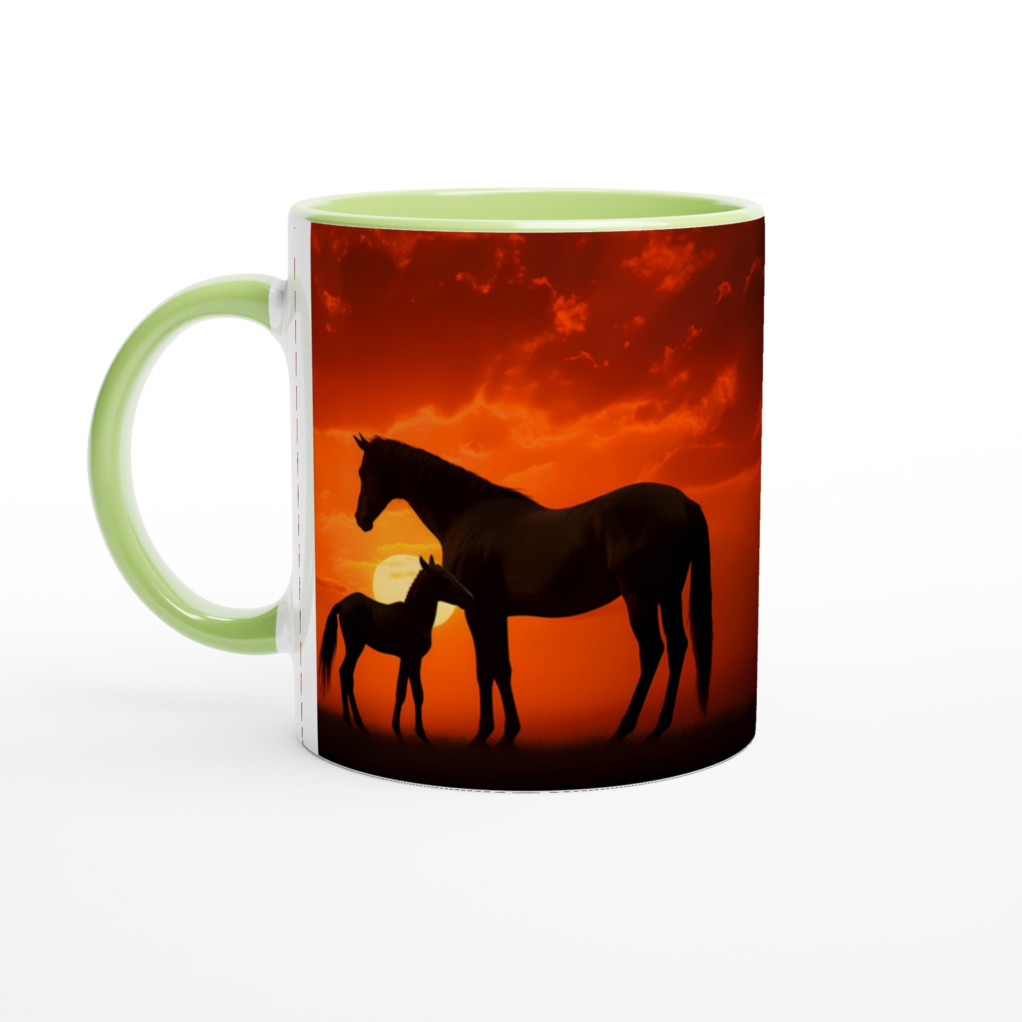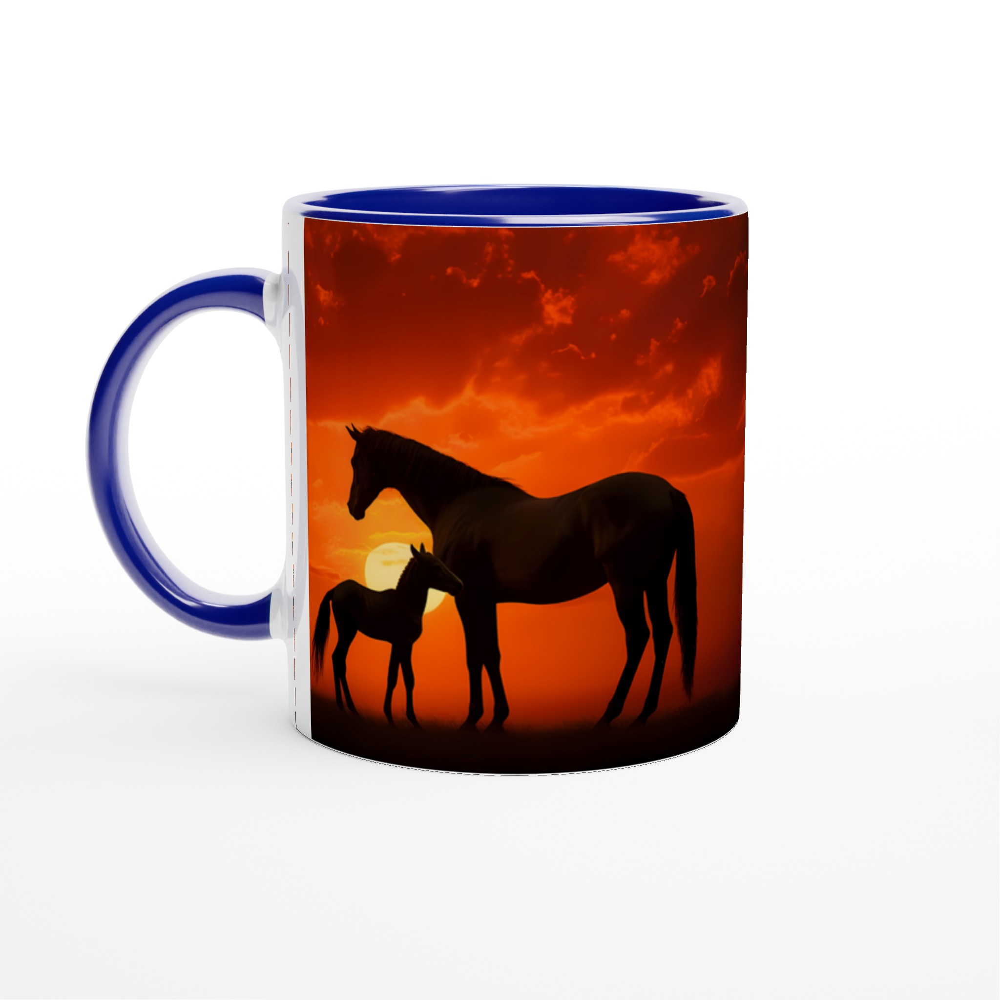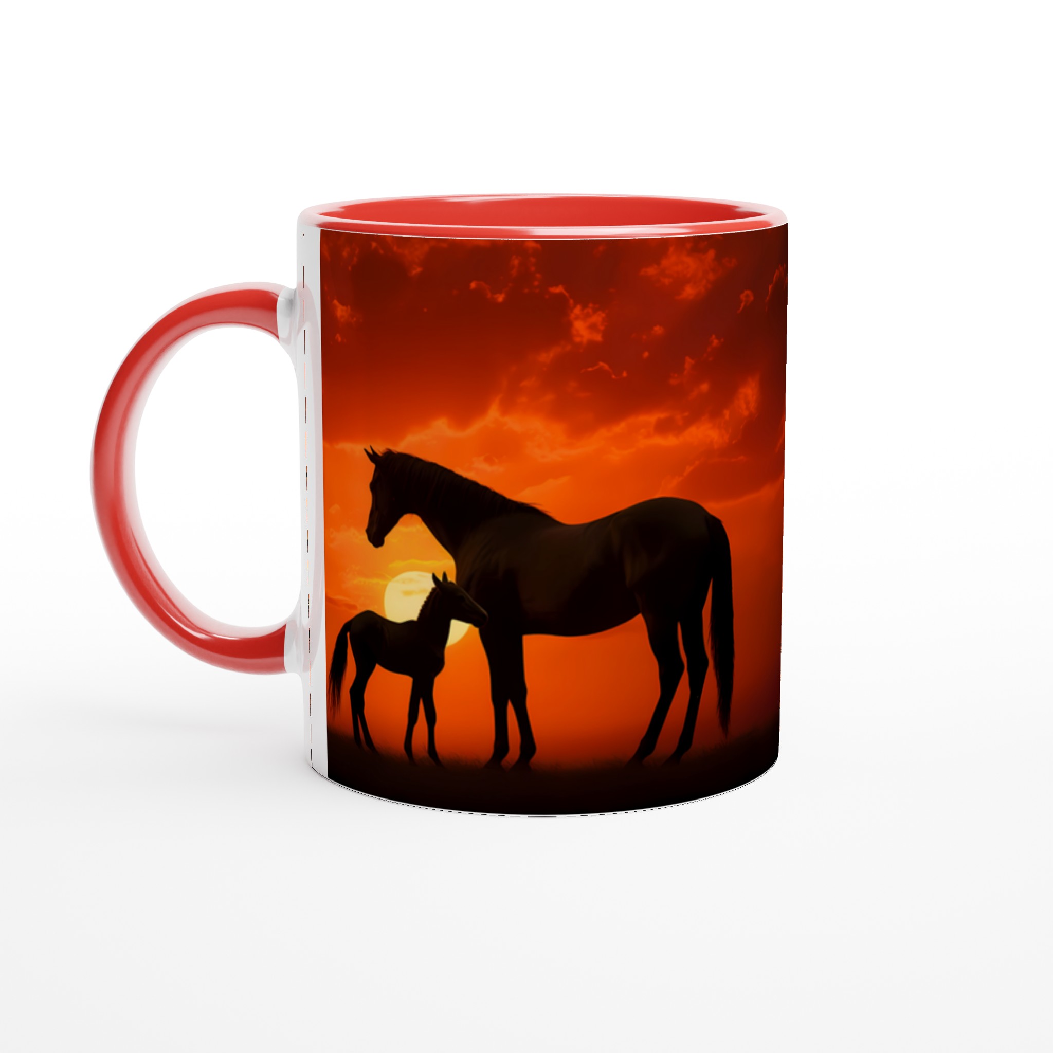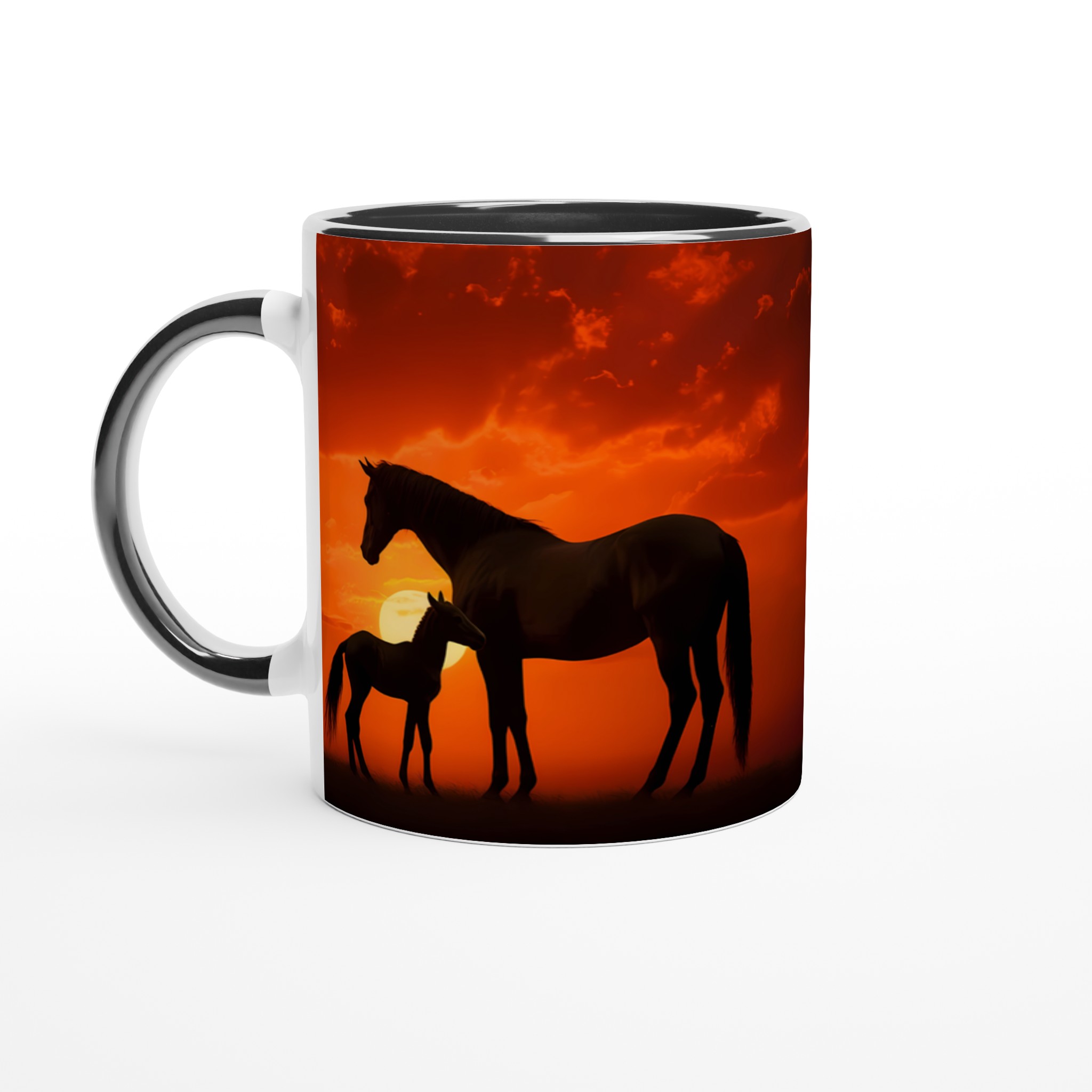 Fiery Sunset Stallion & Foal – Ceramic Mug 11oz, in your choice of seven vibrant colors