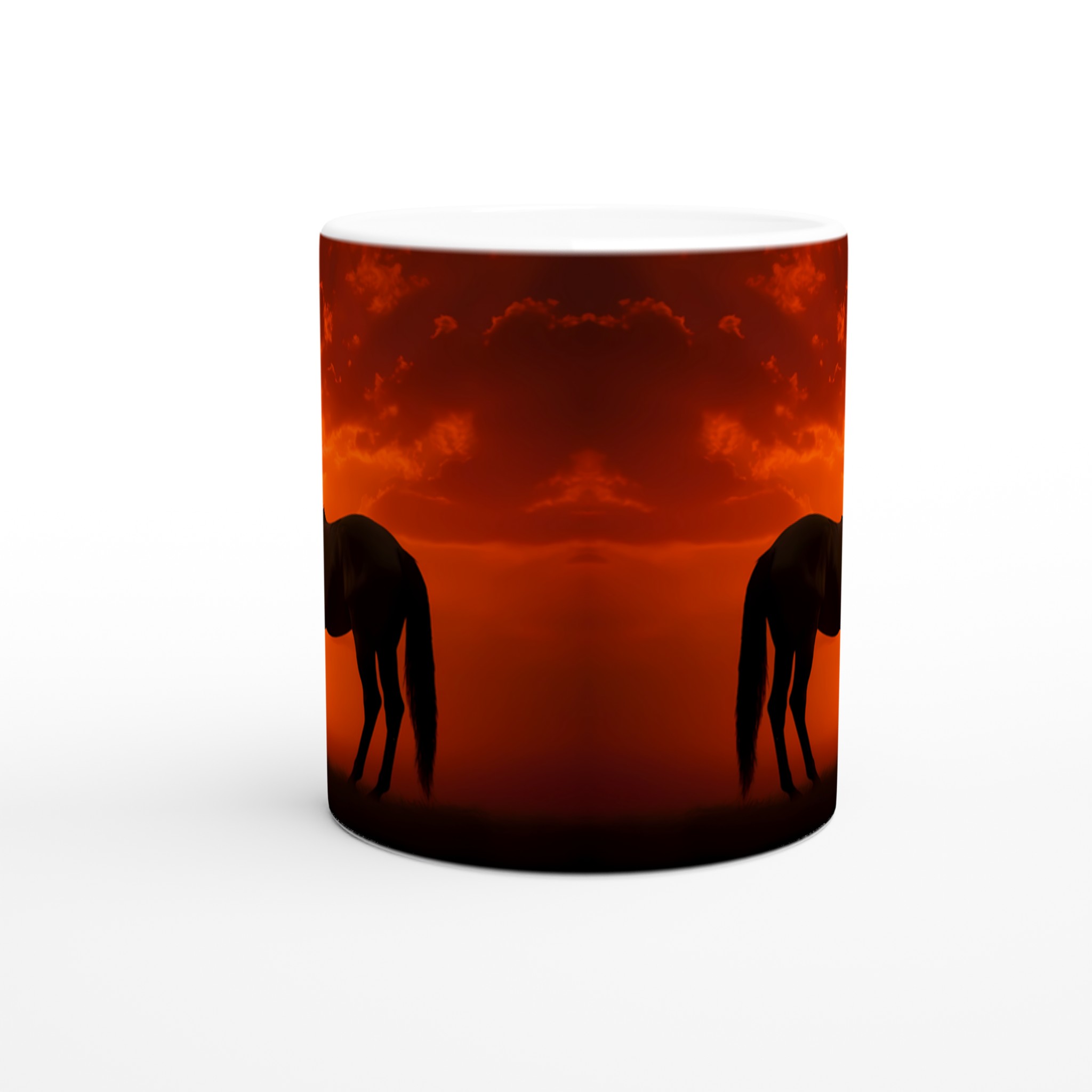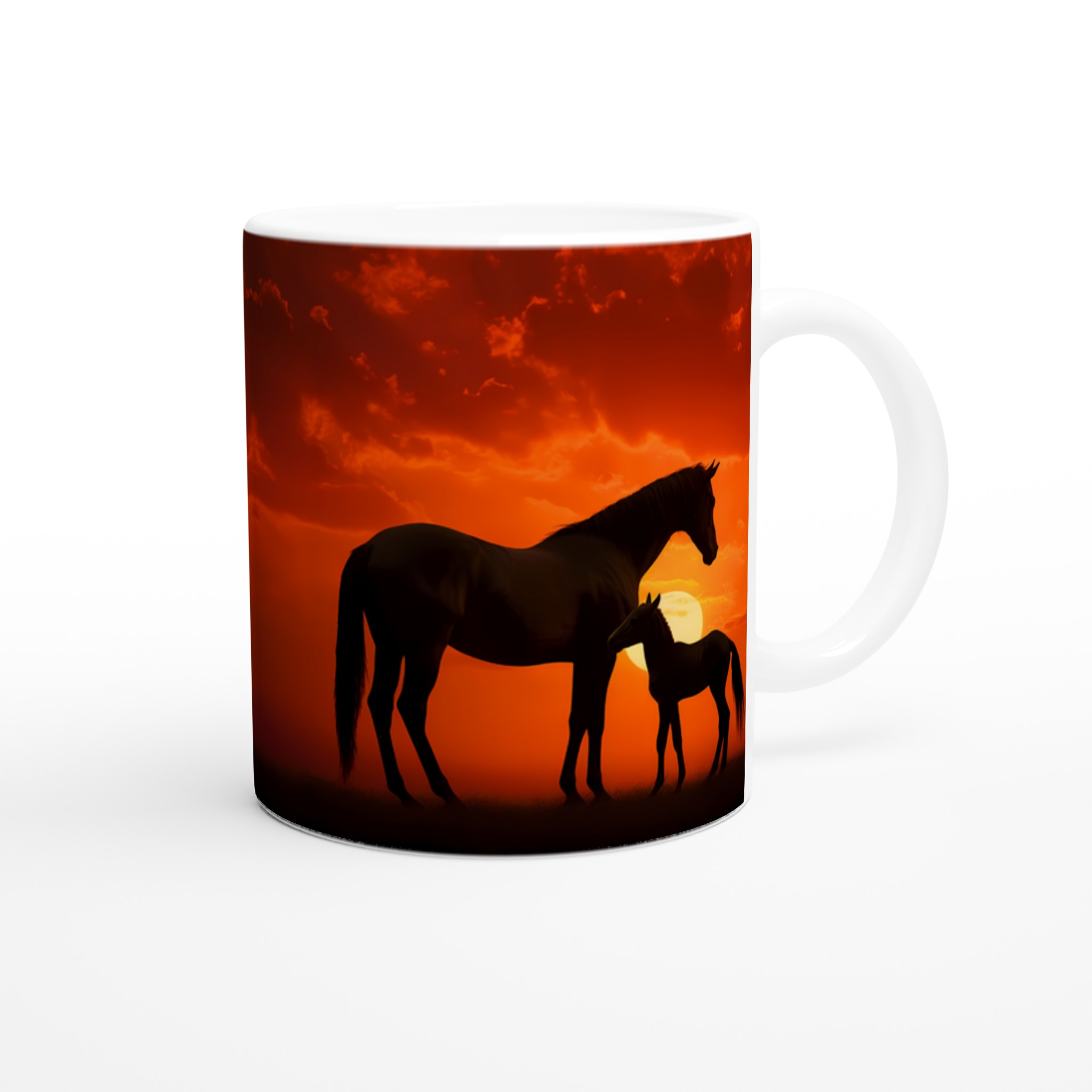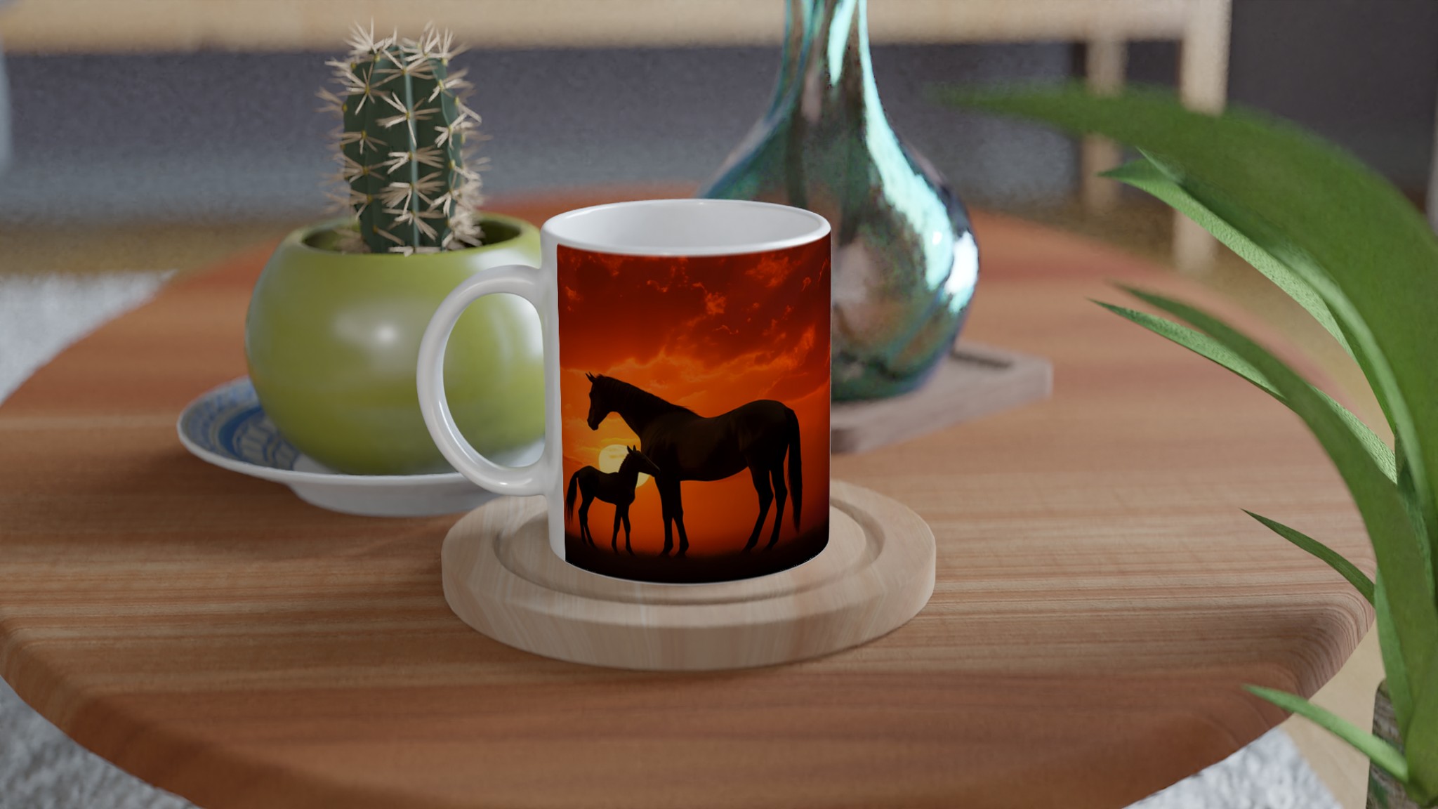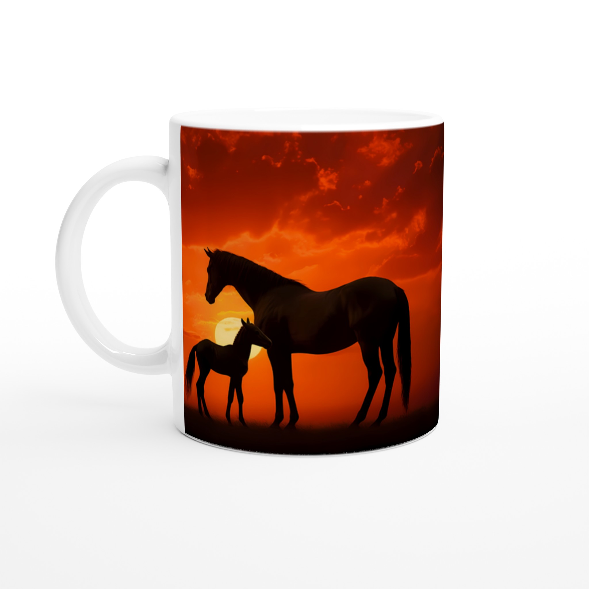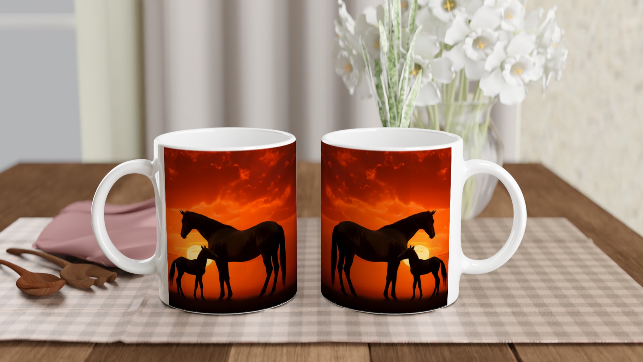 Fiery Sunset Stallion & Foal – Ceramic Mug 11oz, in your choice of seven vibrant colors