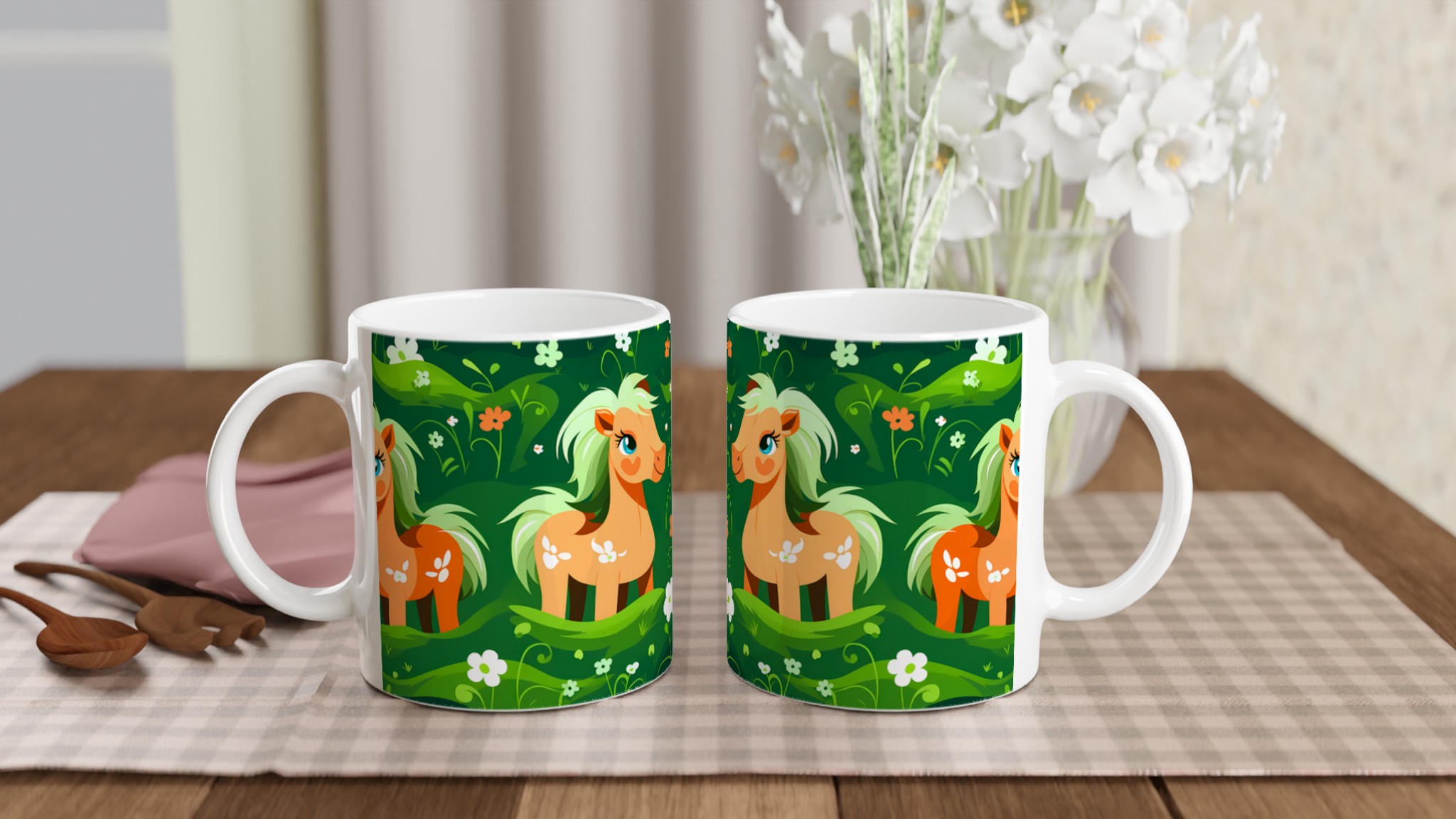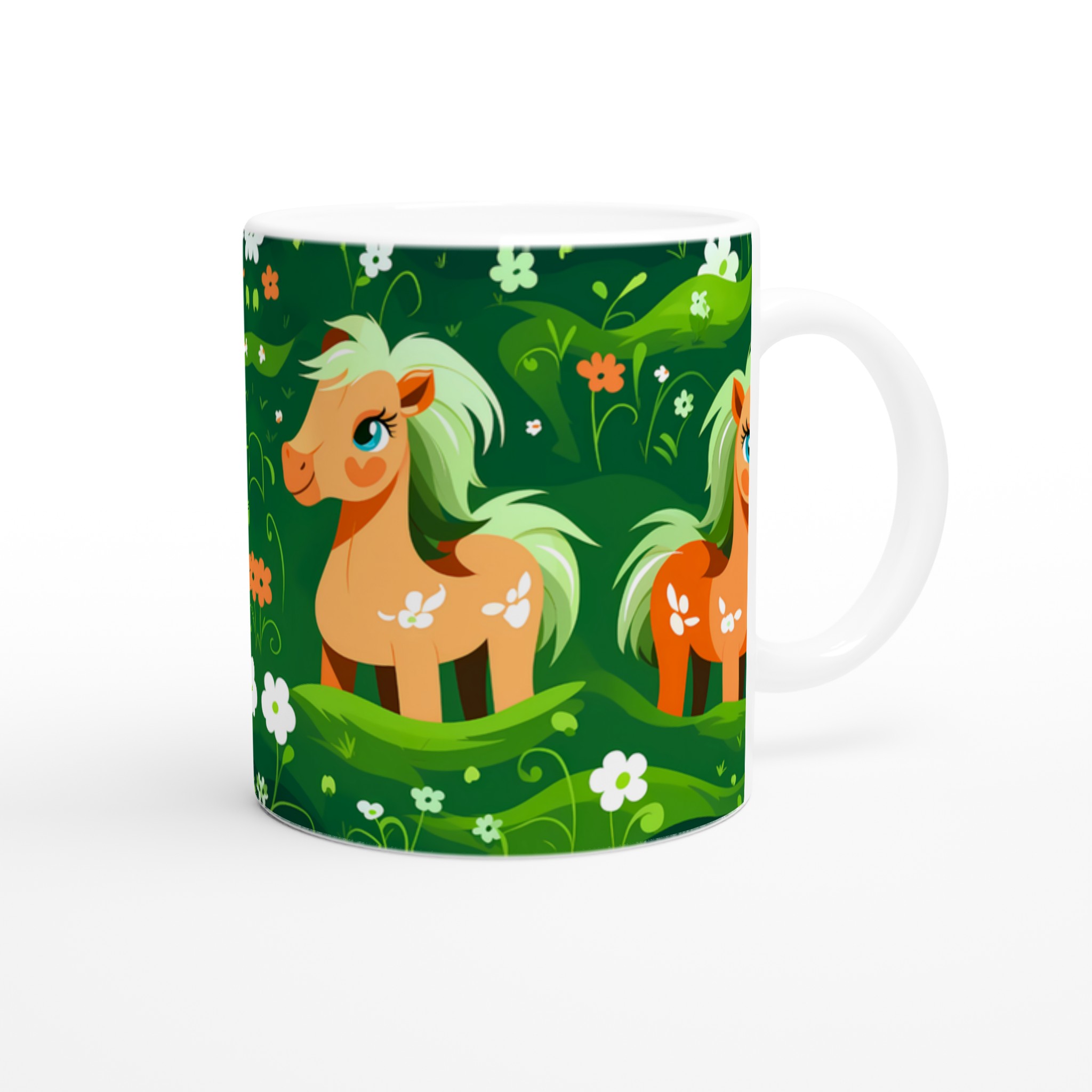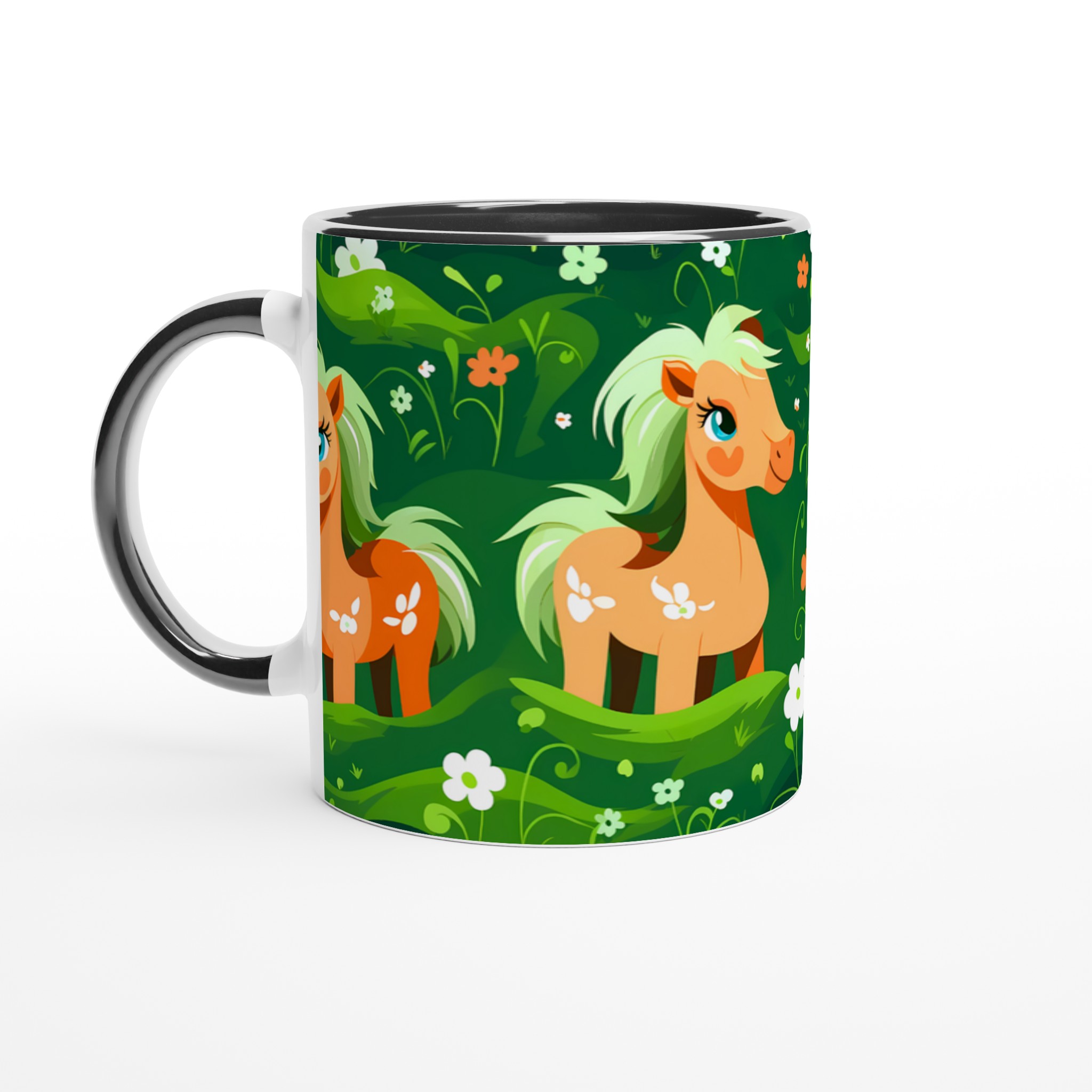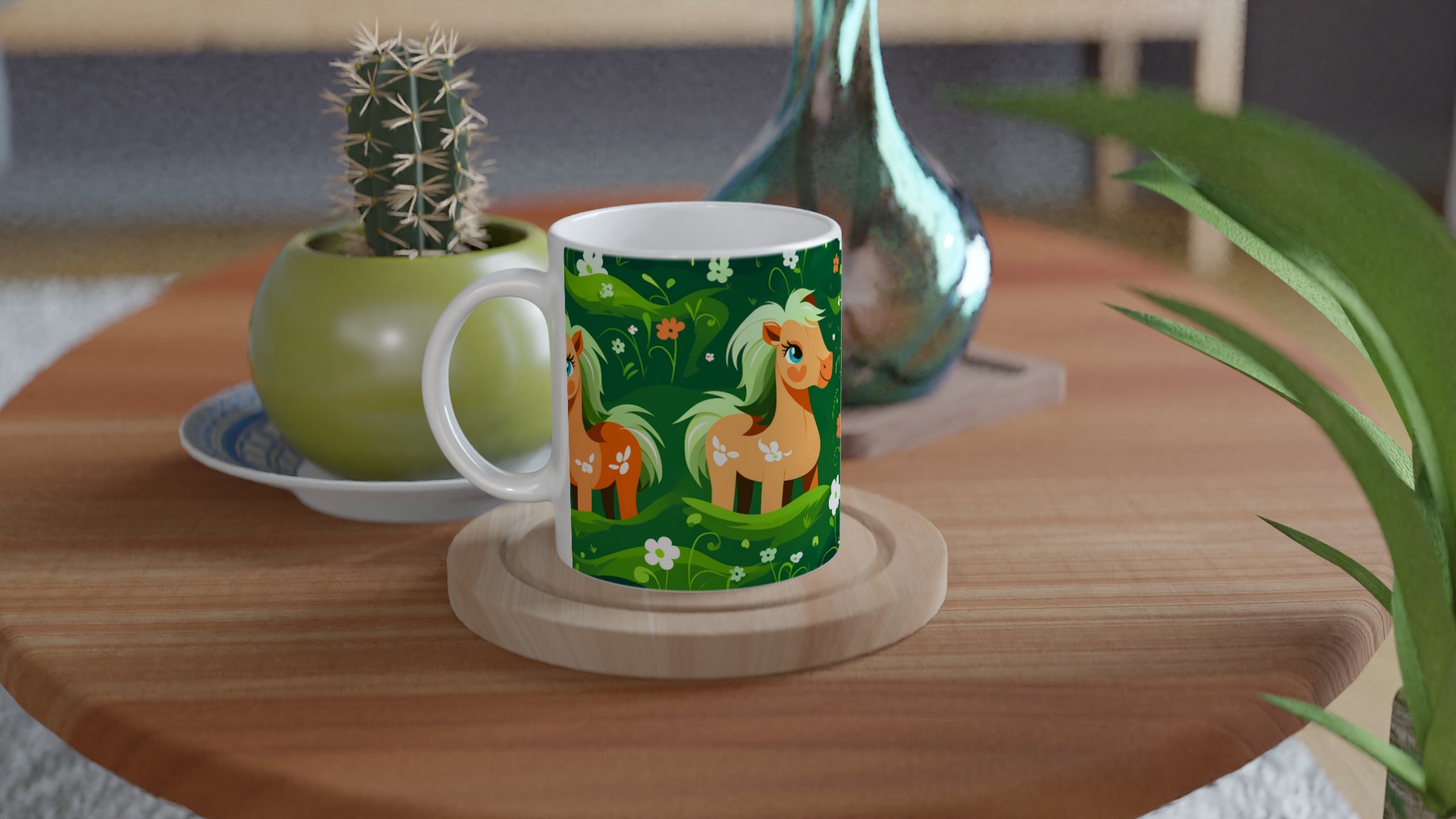 Enchanted Pony Parade Ceramic Mug – Whimsical Garden Design in 7 Vibrant Colors