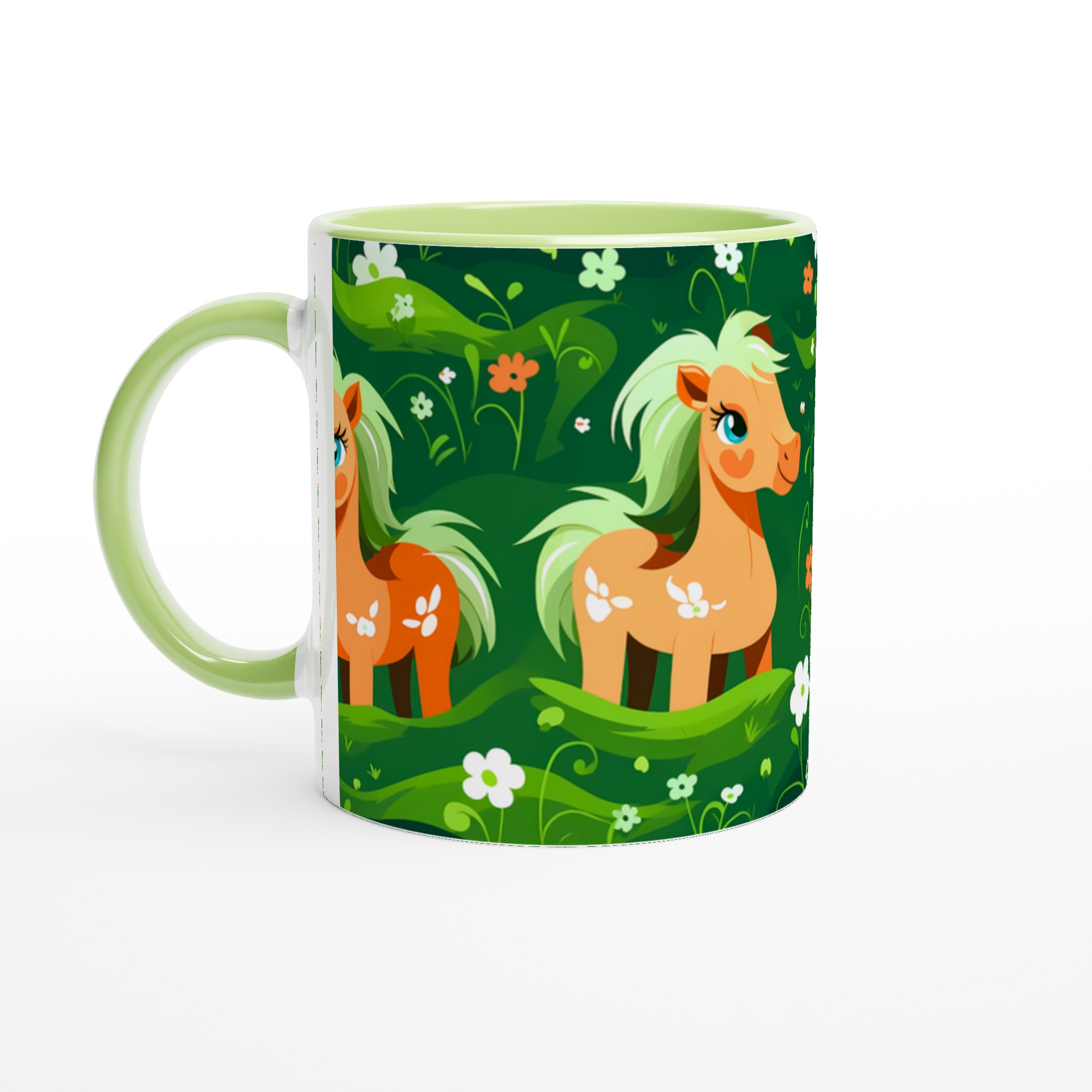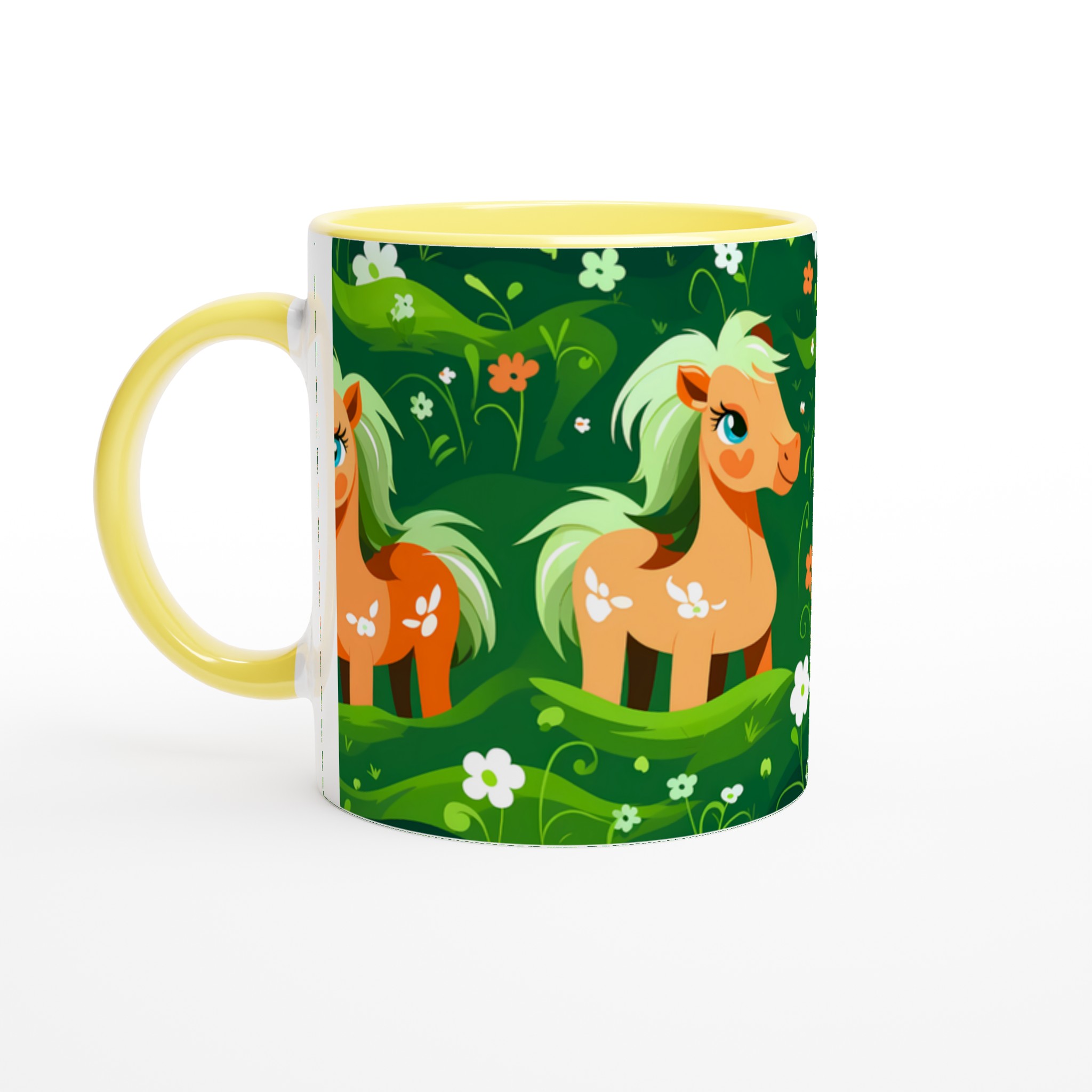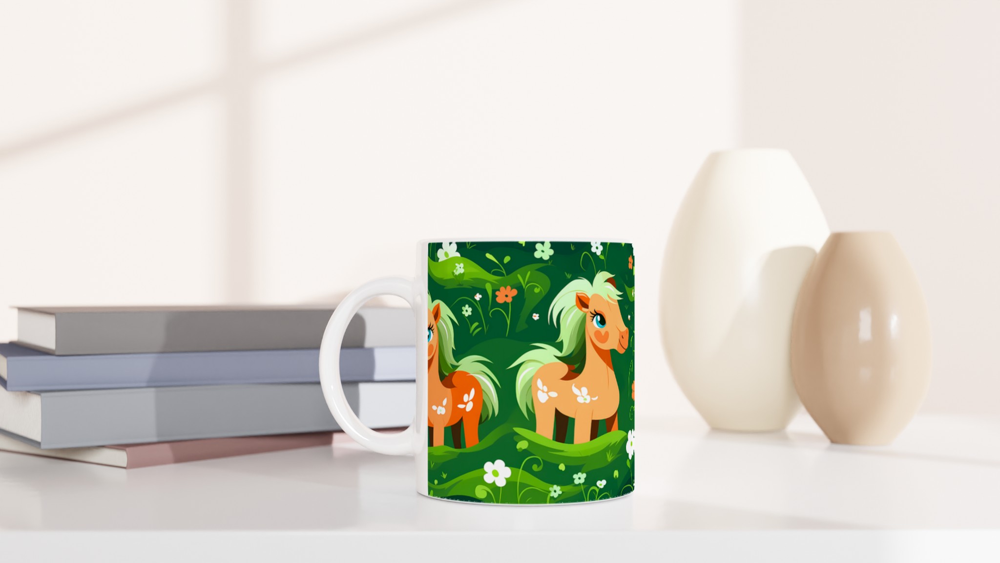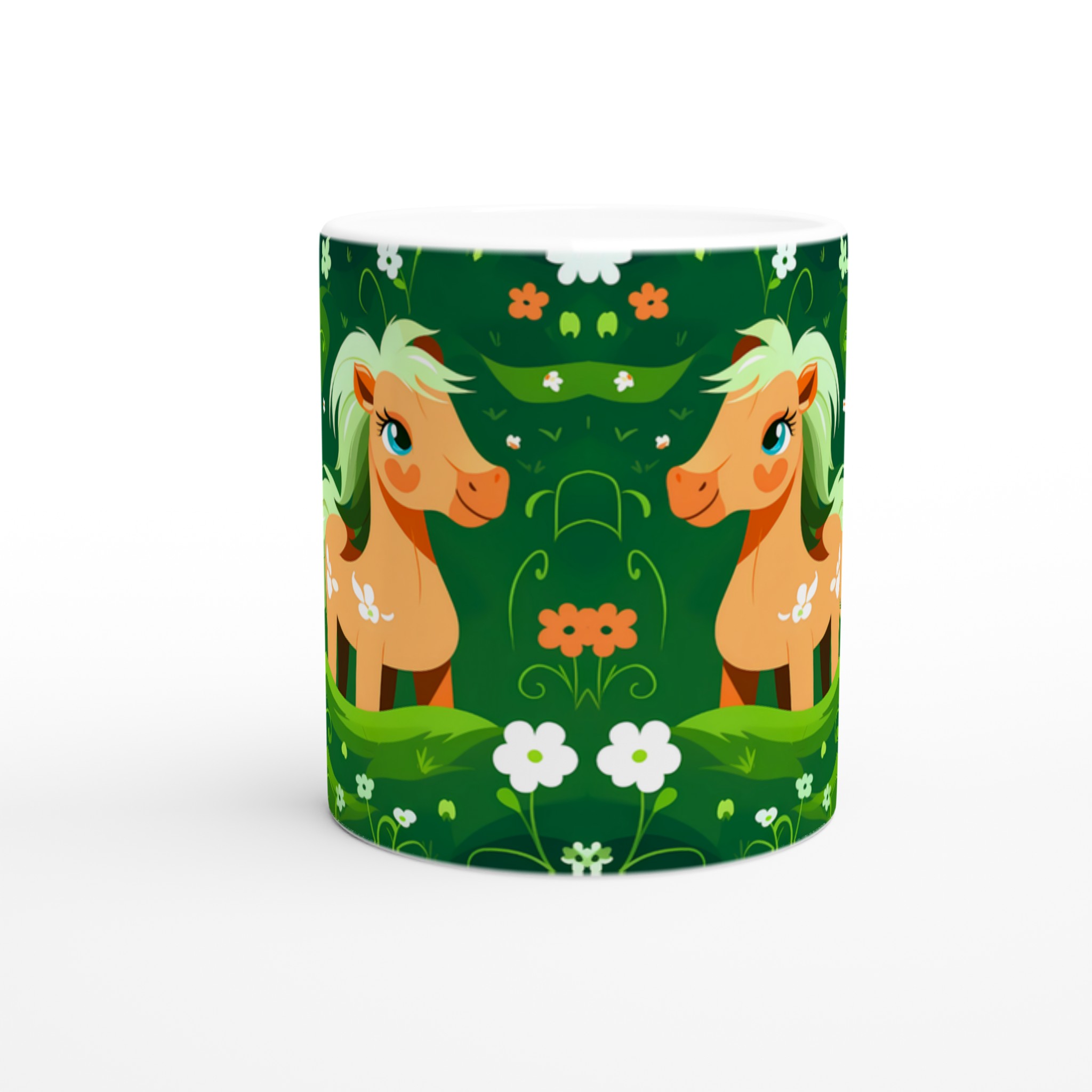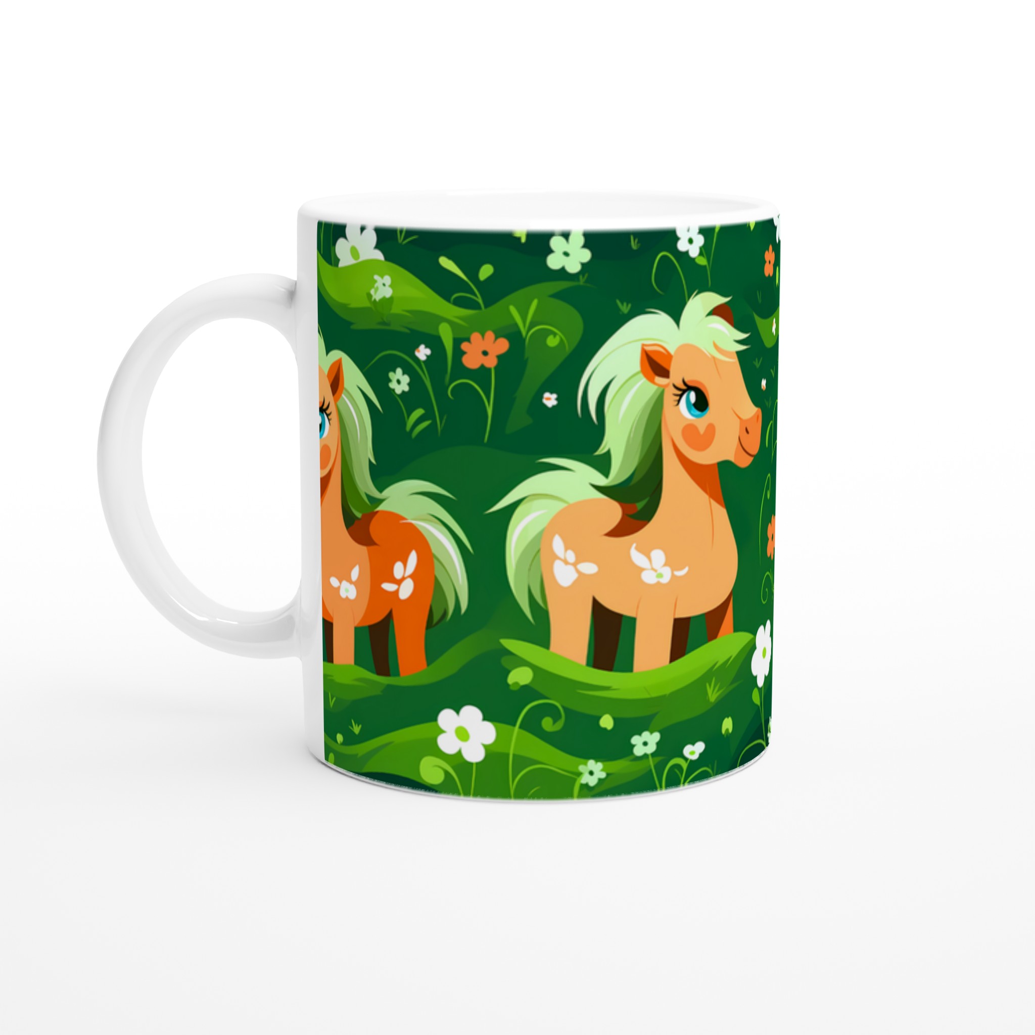 Enchanted Pony Parade Ceramic Mug – Whimsical Garden Design in 7 Vibrant Colors