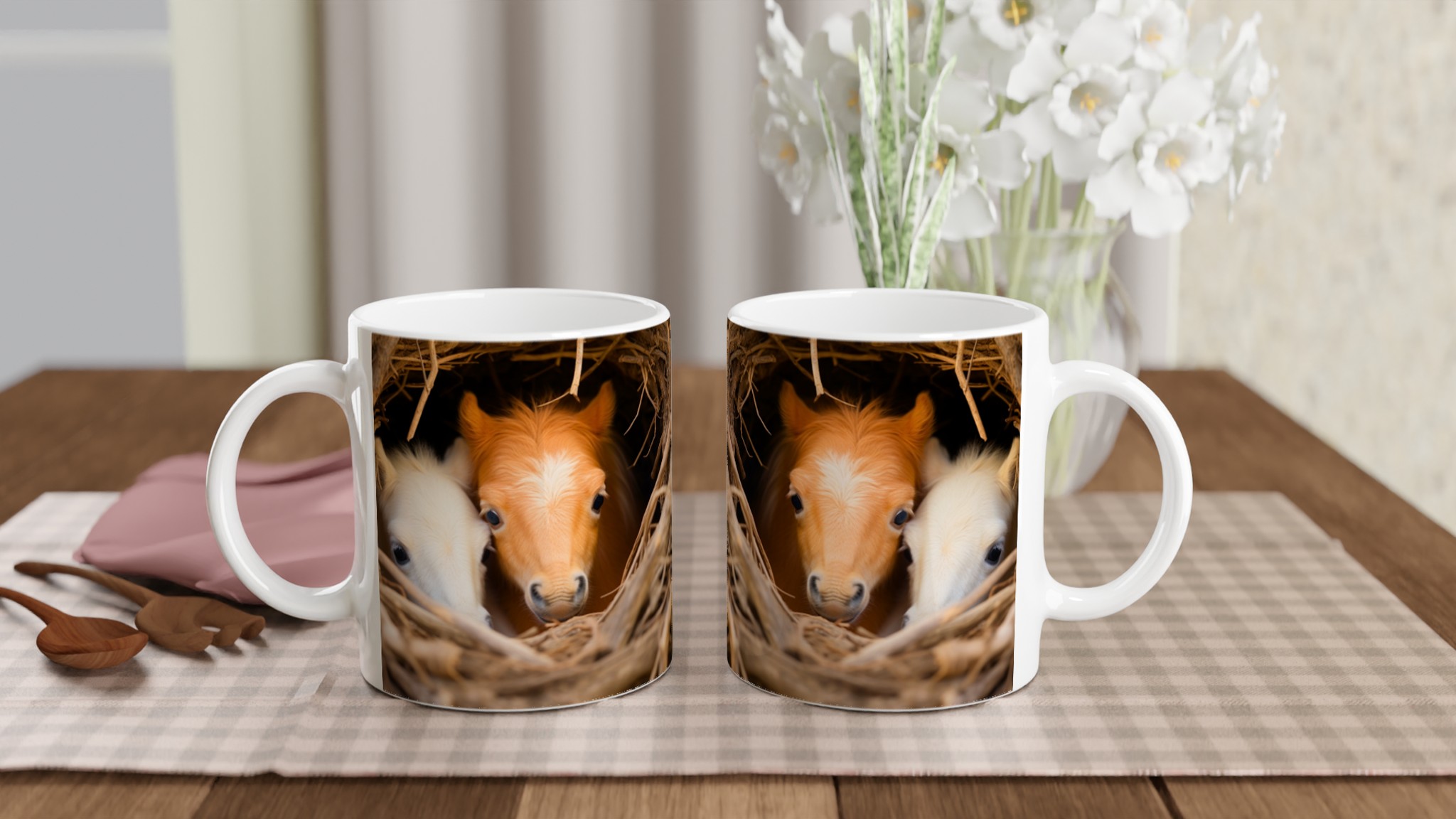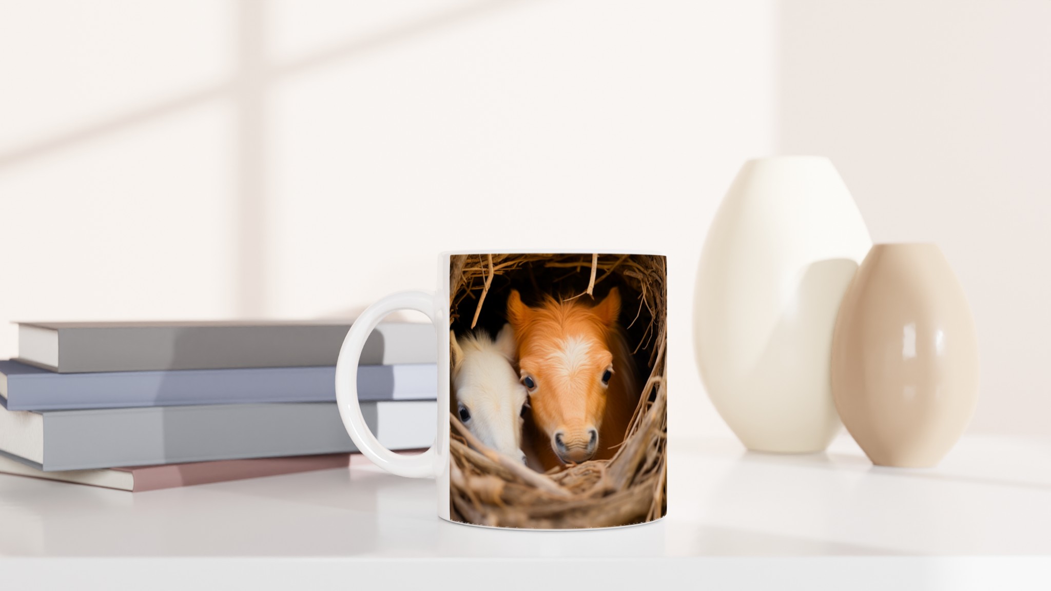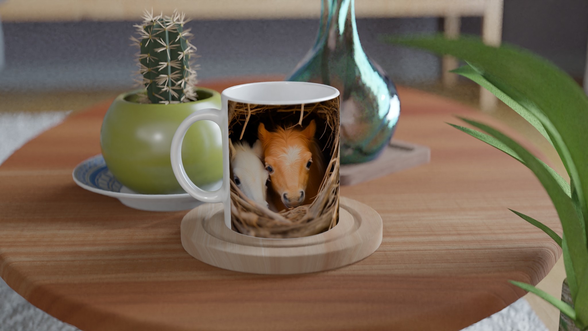 Cozy Foals Hideaway – Ceramic Mug 11oz, in your choice of seven vibrant colors