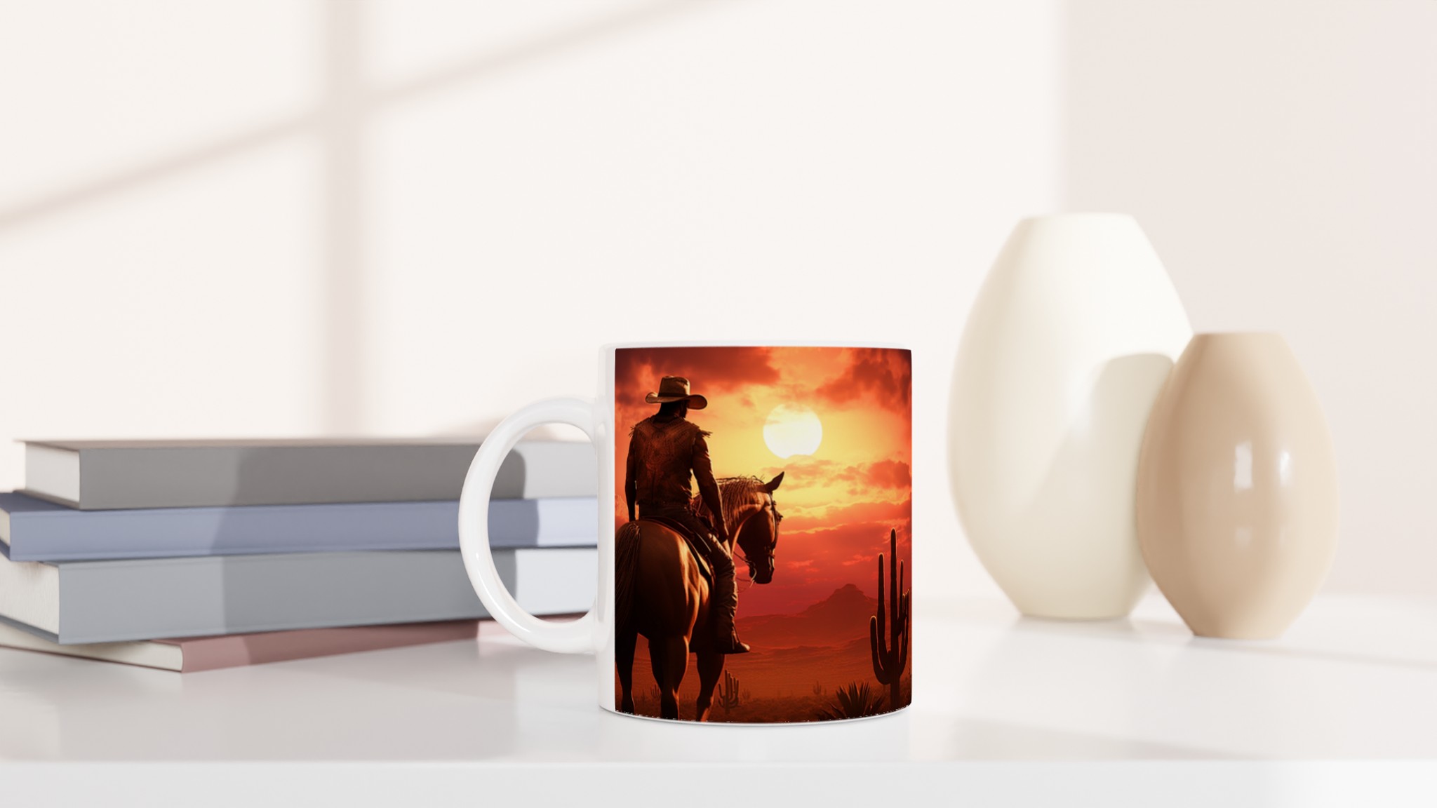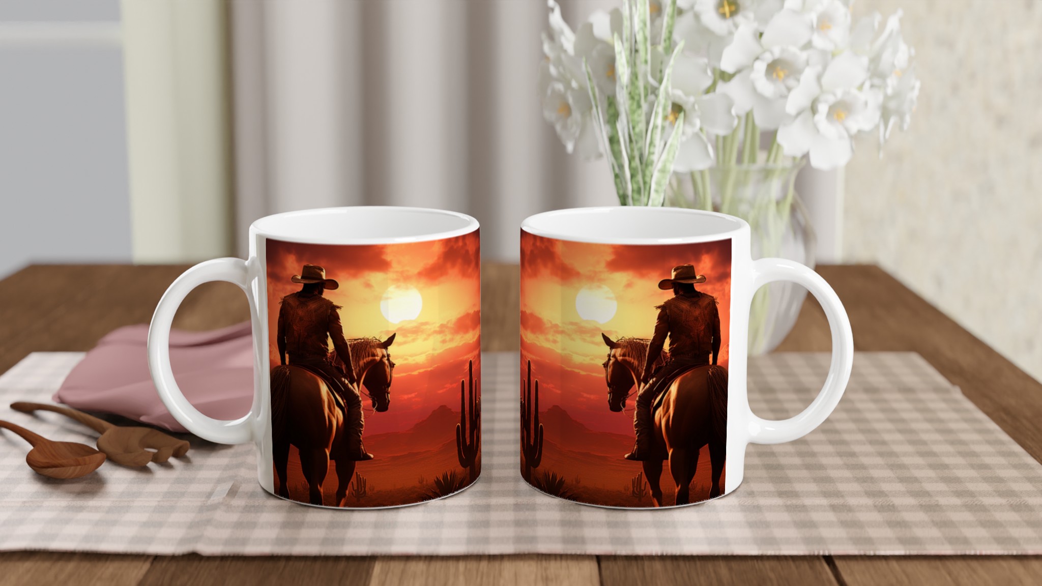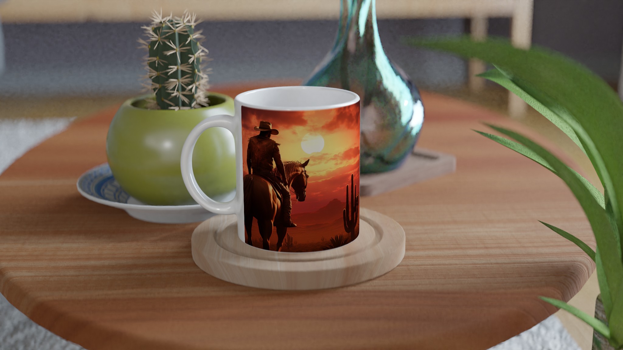 Wild West Sunset – Ceramic Mug 11oz: Ride into Adventure with this Vibrant & Durable Mug, in Your Choice of 7 Colors