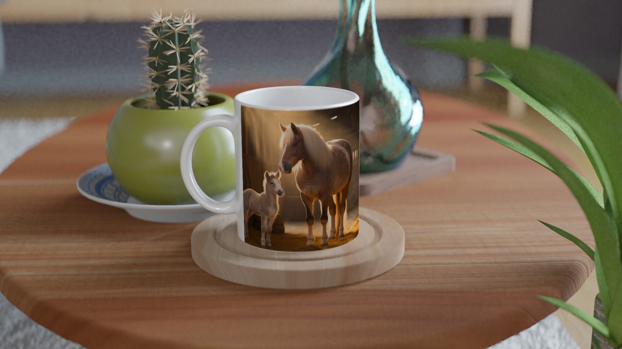 Golden Hour Stallions – Everyday Favorite Ceramic Mug 11oz, in your choice of seven vibrant colors