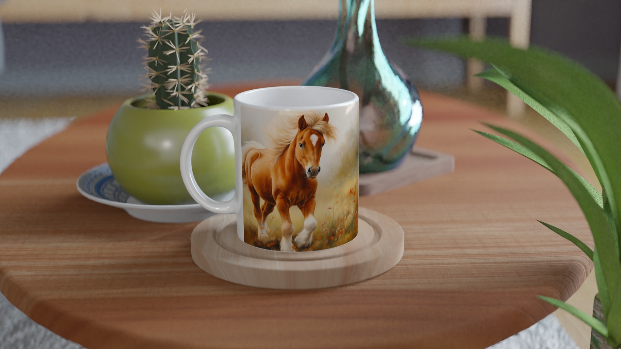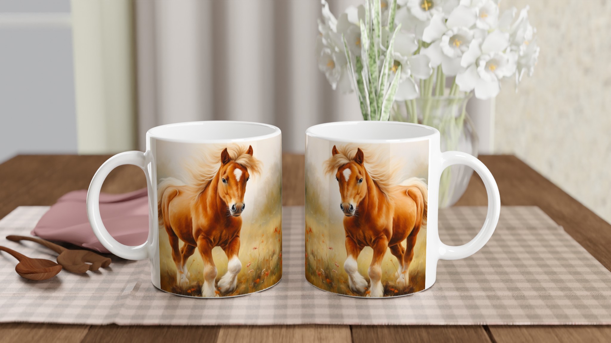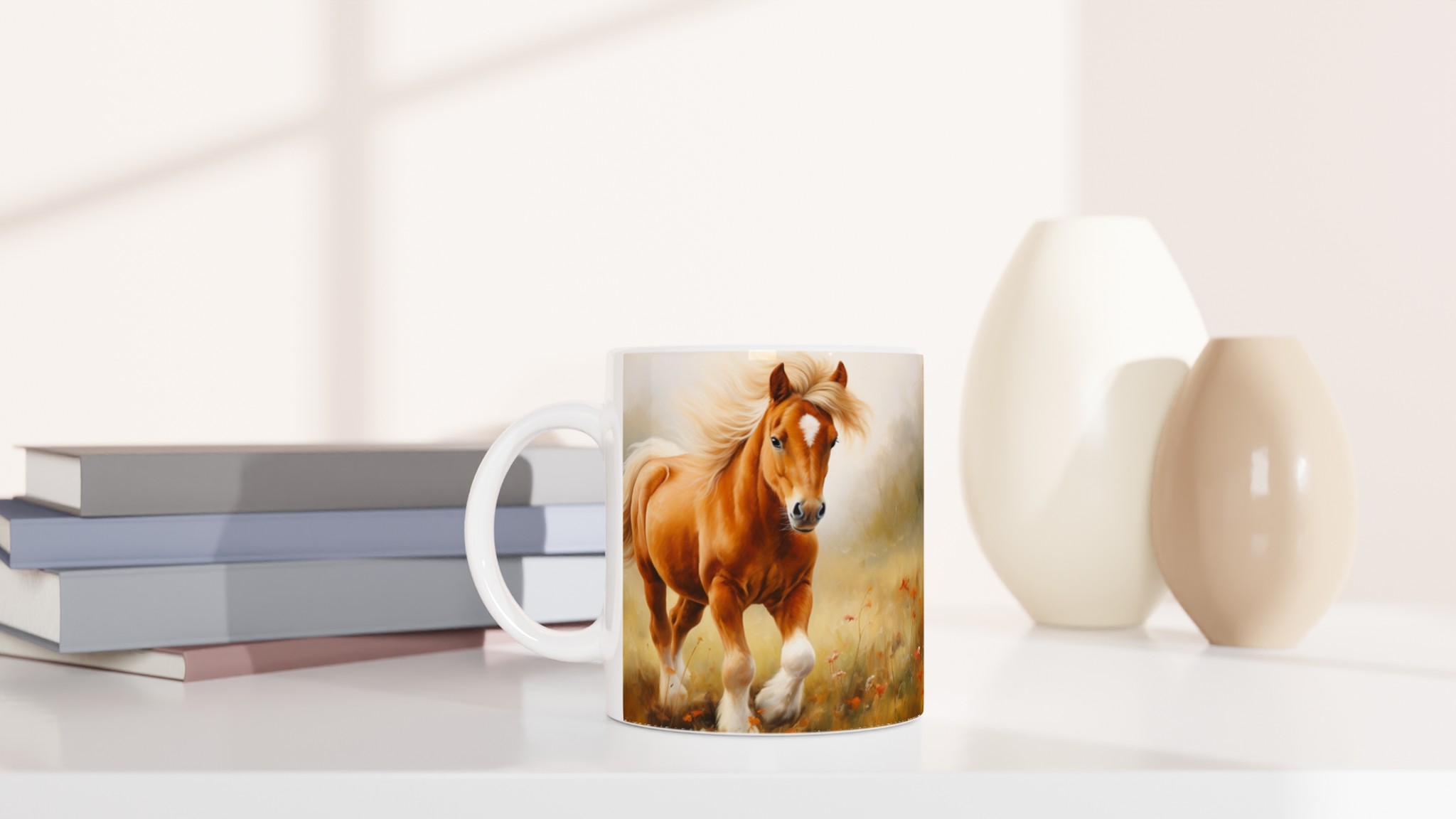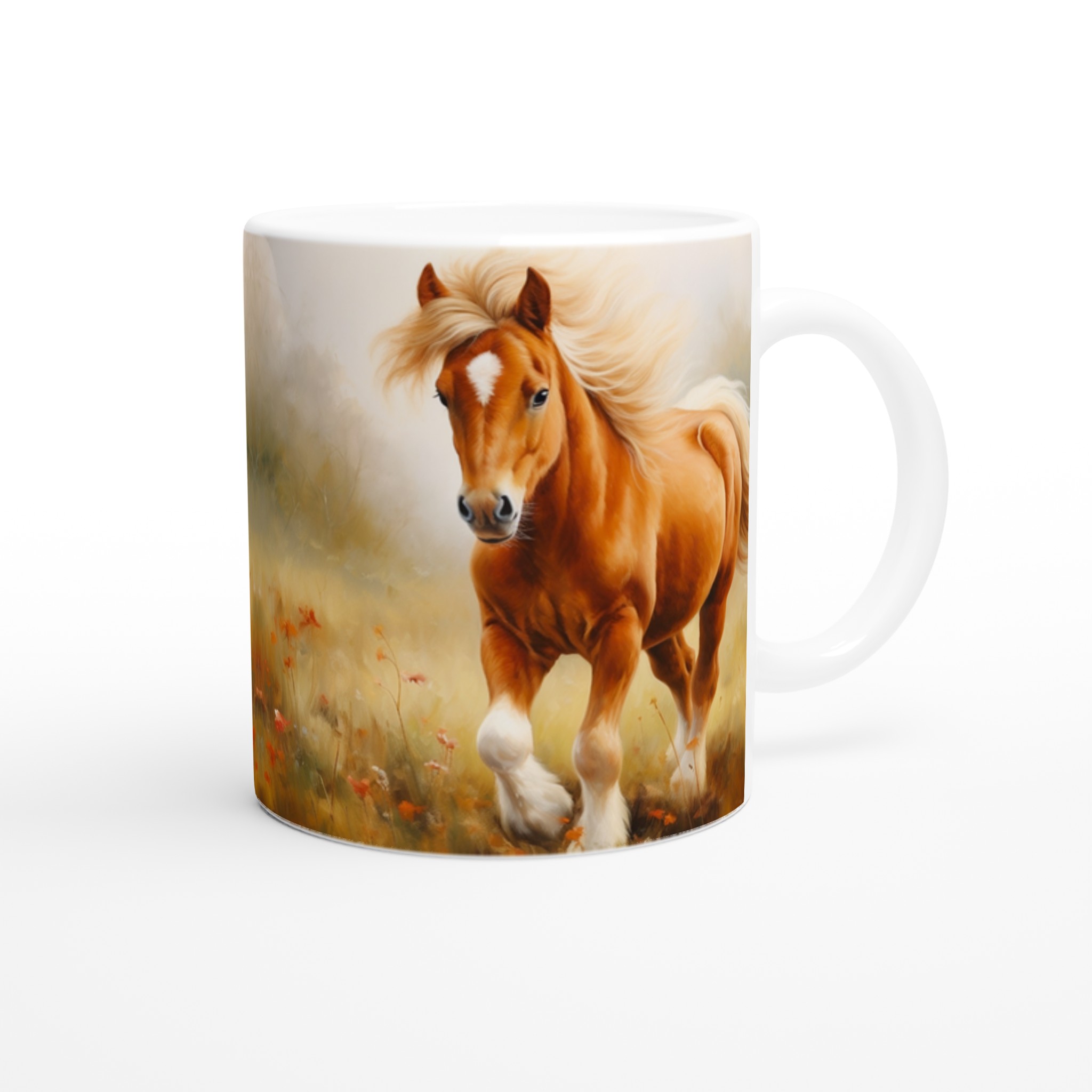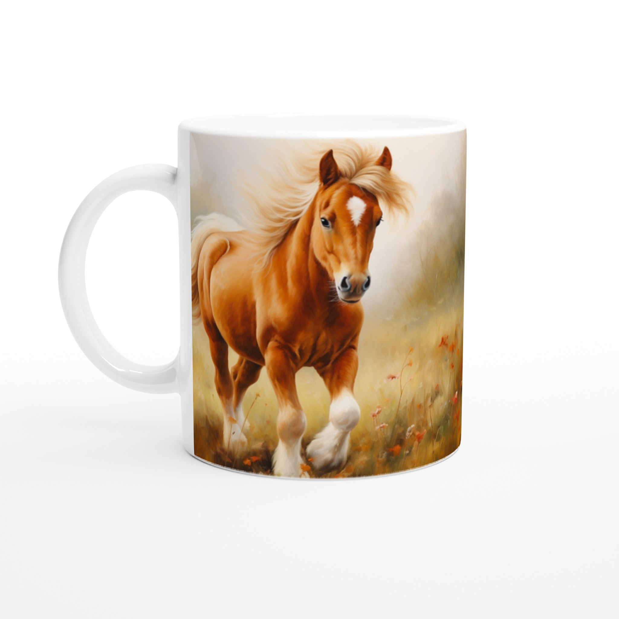 Galloping Grace – Horse Art Ceramic Mug 11oz, in Your Choice of Seven Vibrant Hues