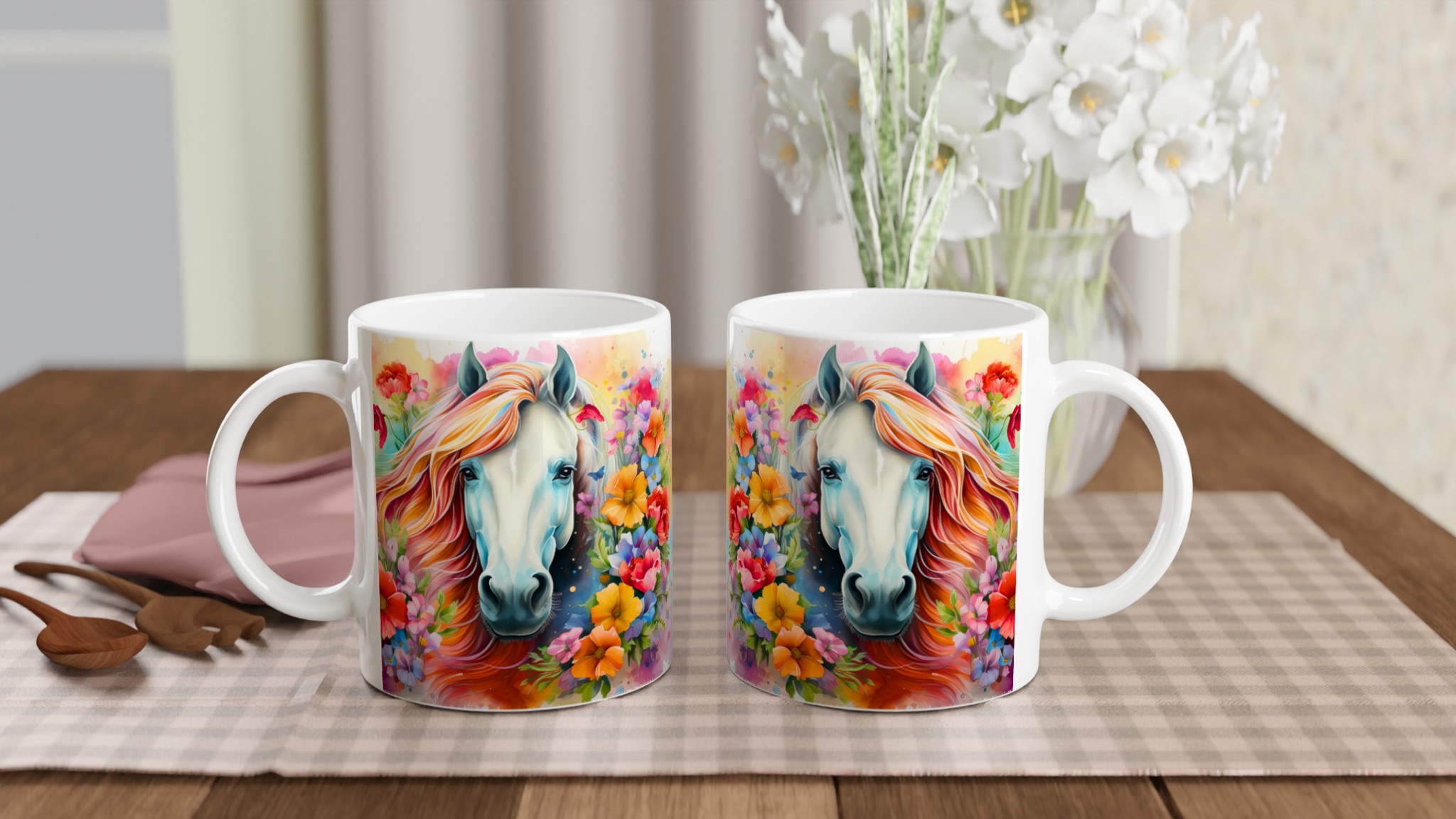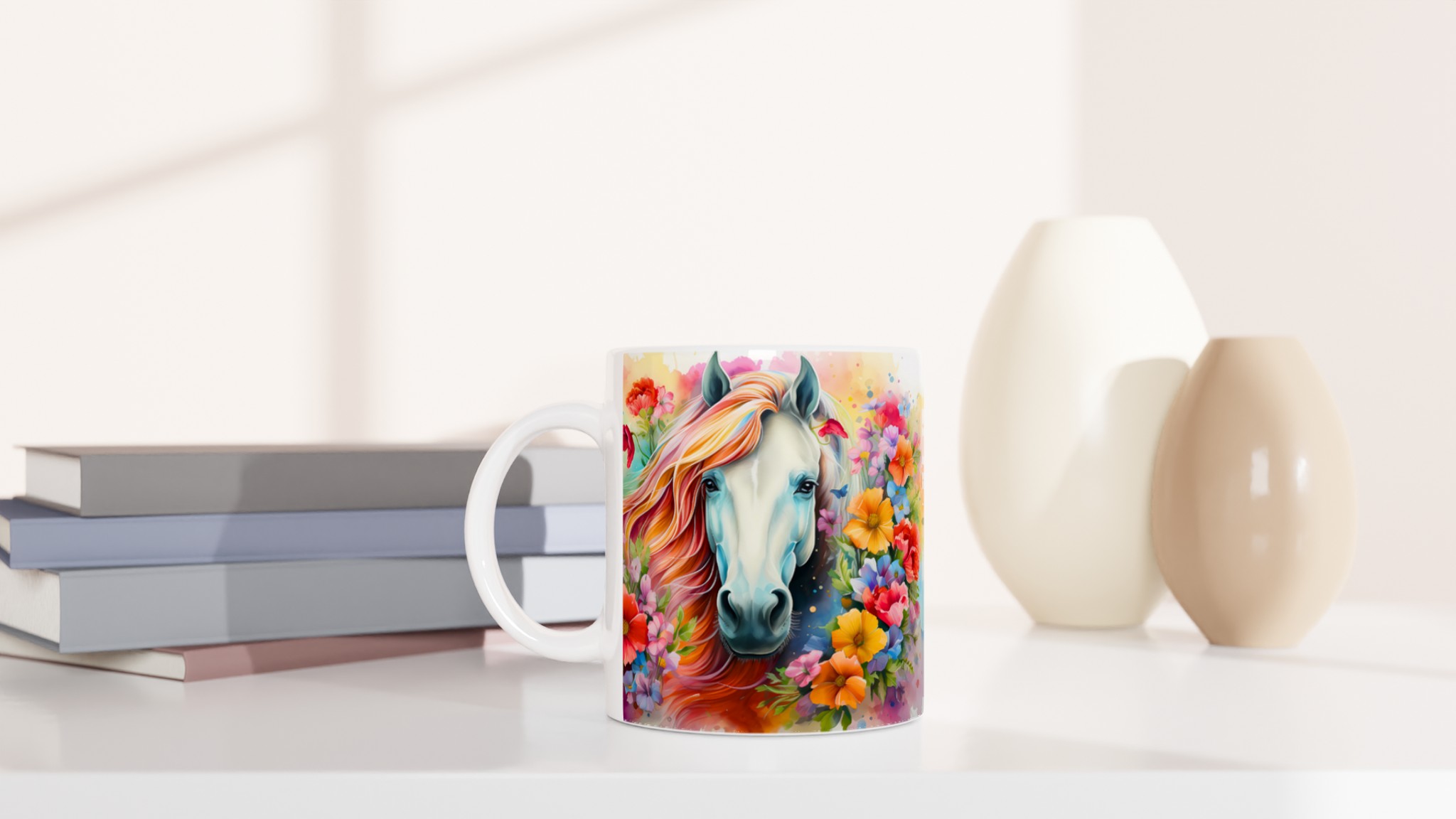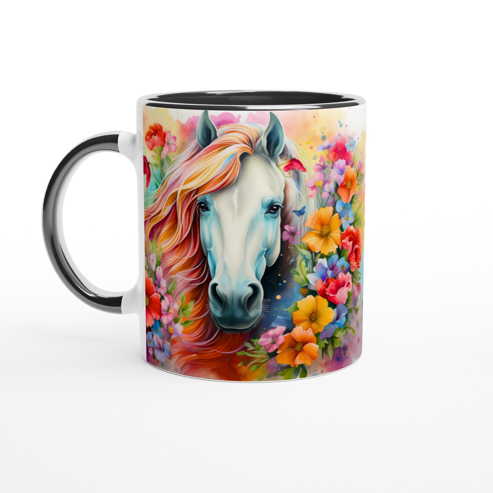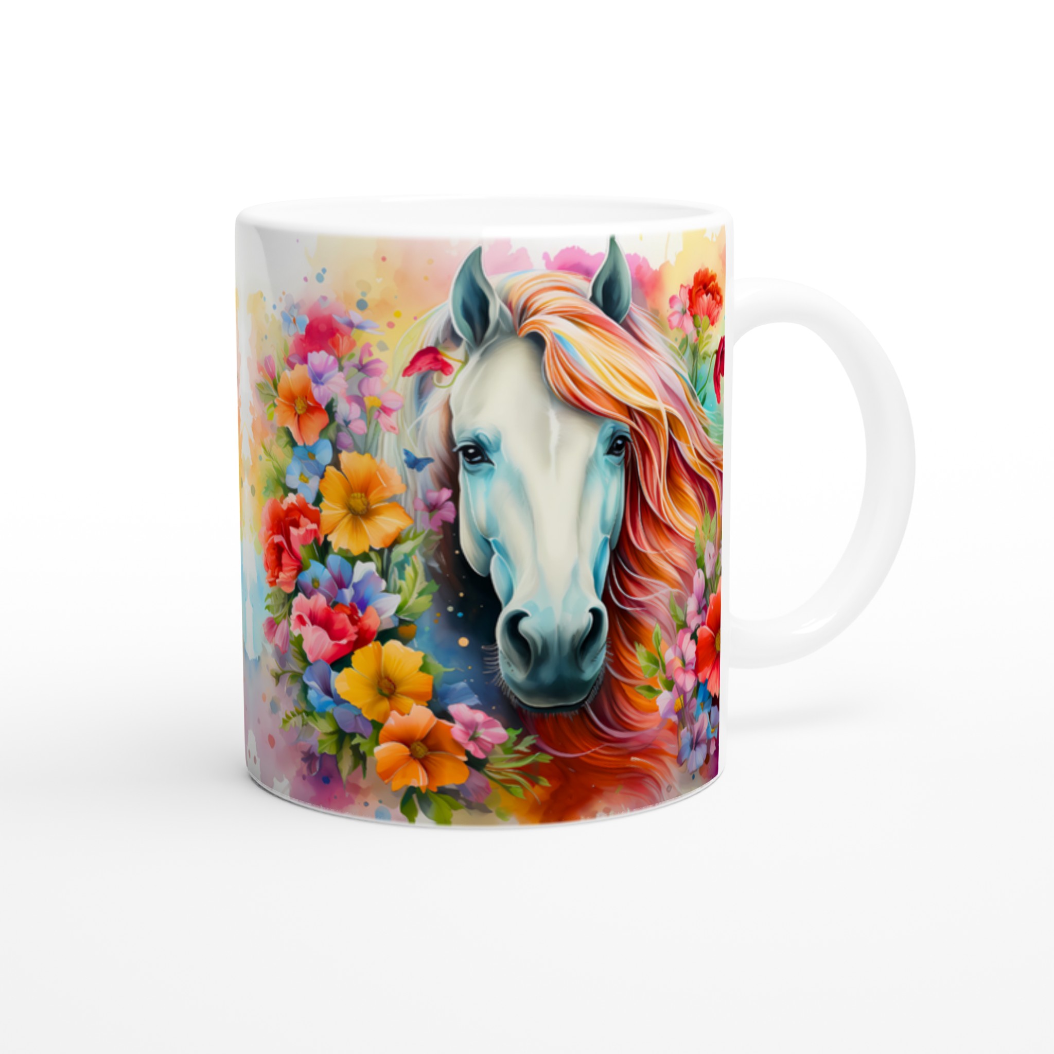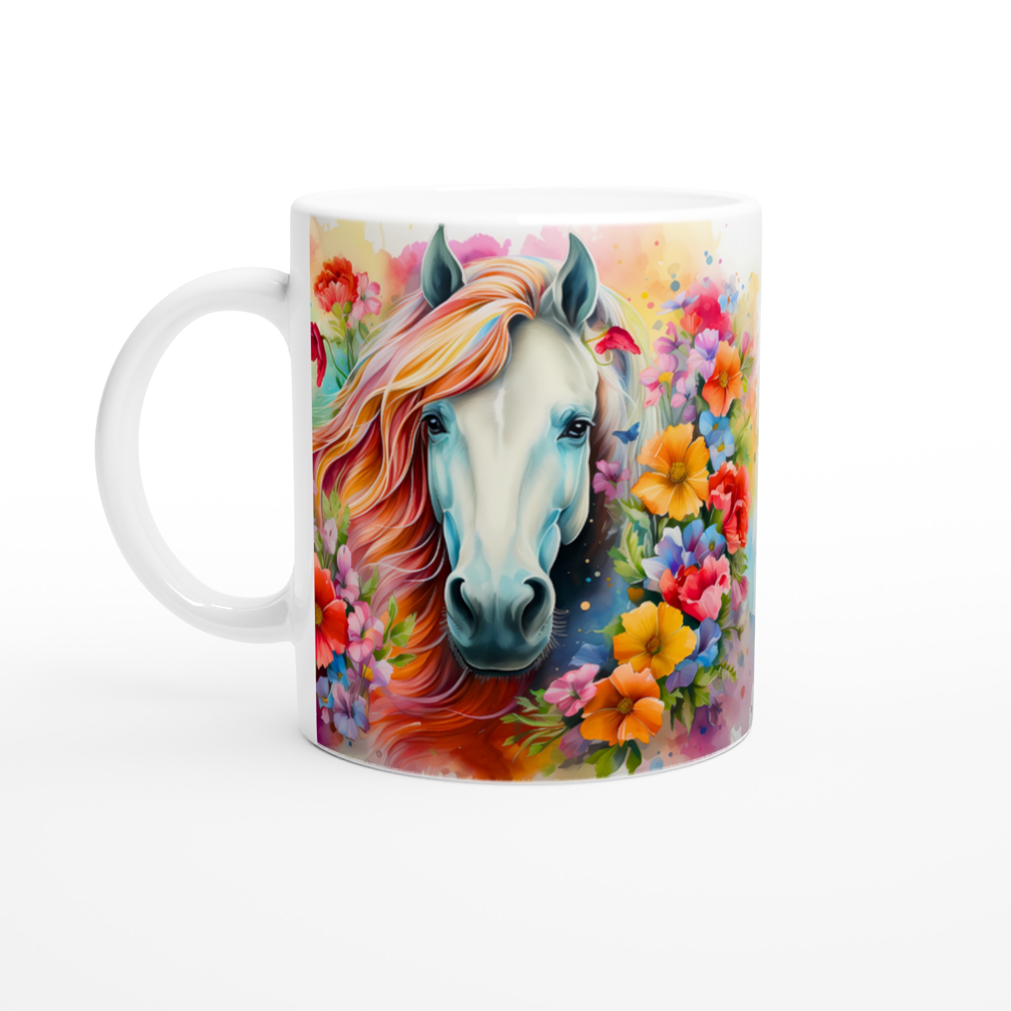 Enchanted Floral Dream Horse Ceramic Mug – Vibrant & Colorful 11oz for Your Everyday Sip