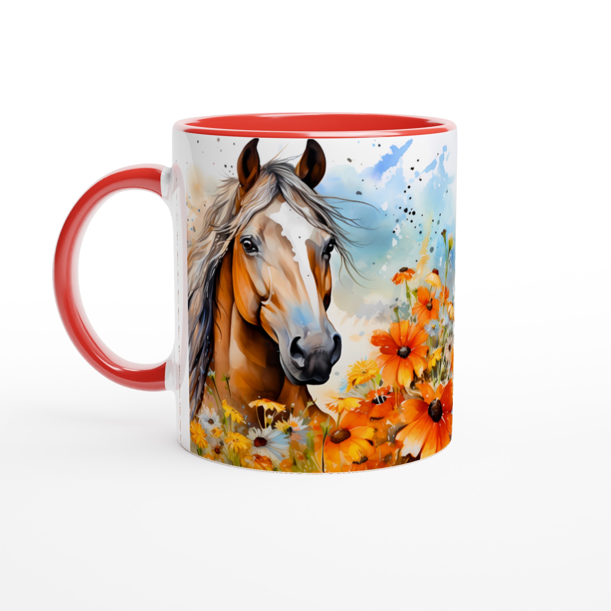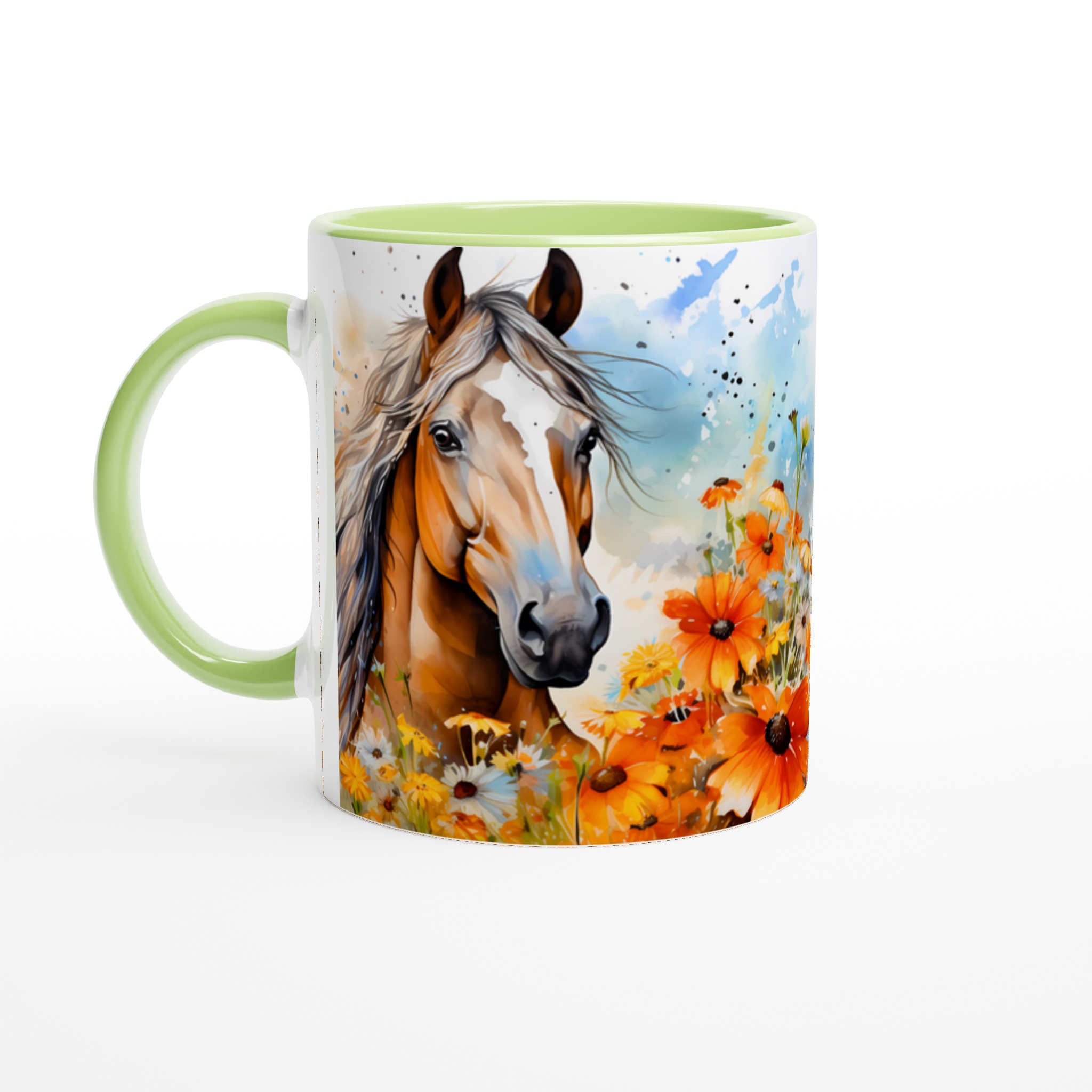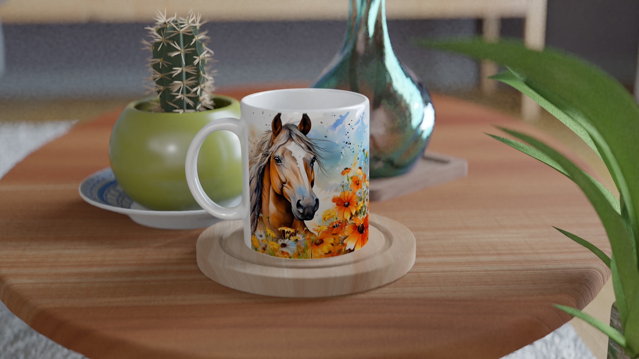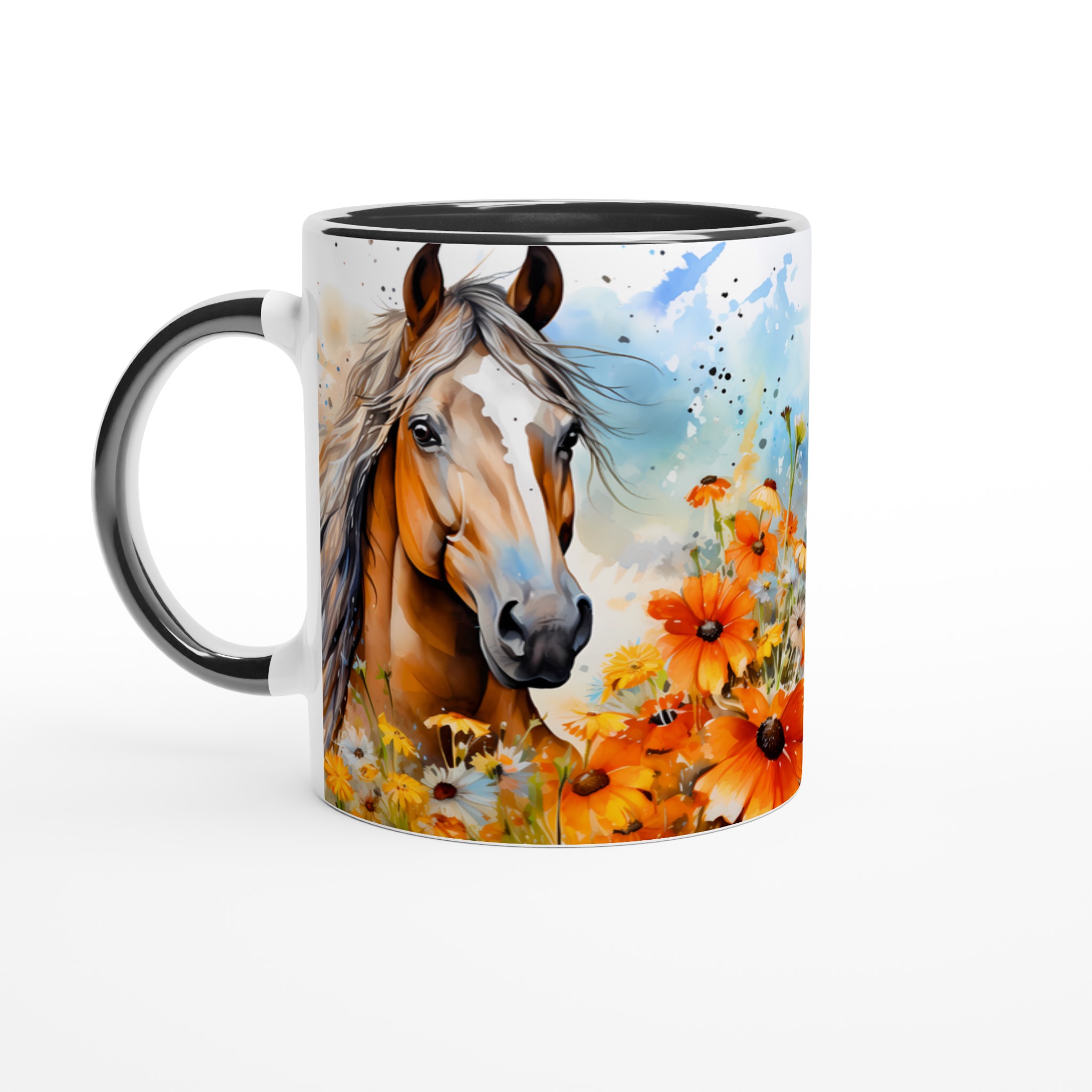 Gallop Through Meadows – Watercolor Horse & Floral Mug, 11oz Ceramic in 7 Vibrant Colors