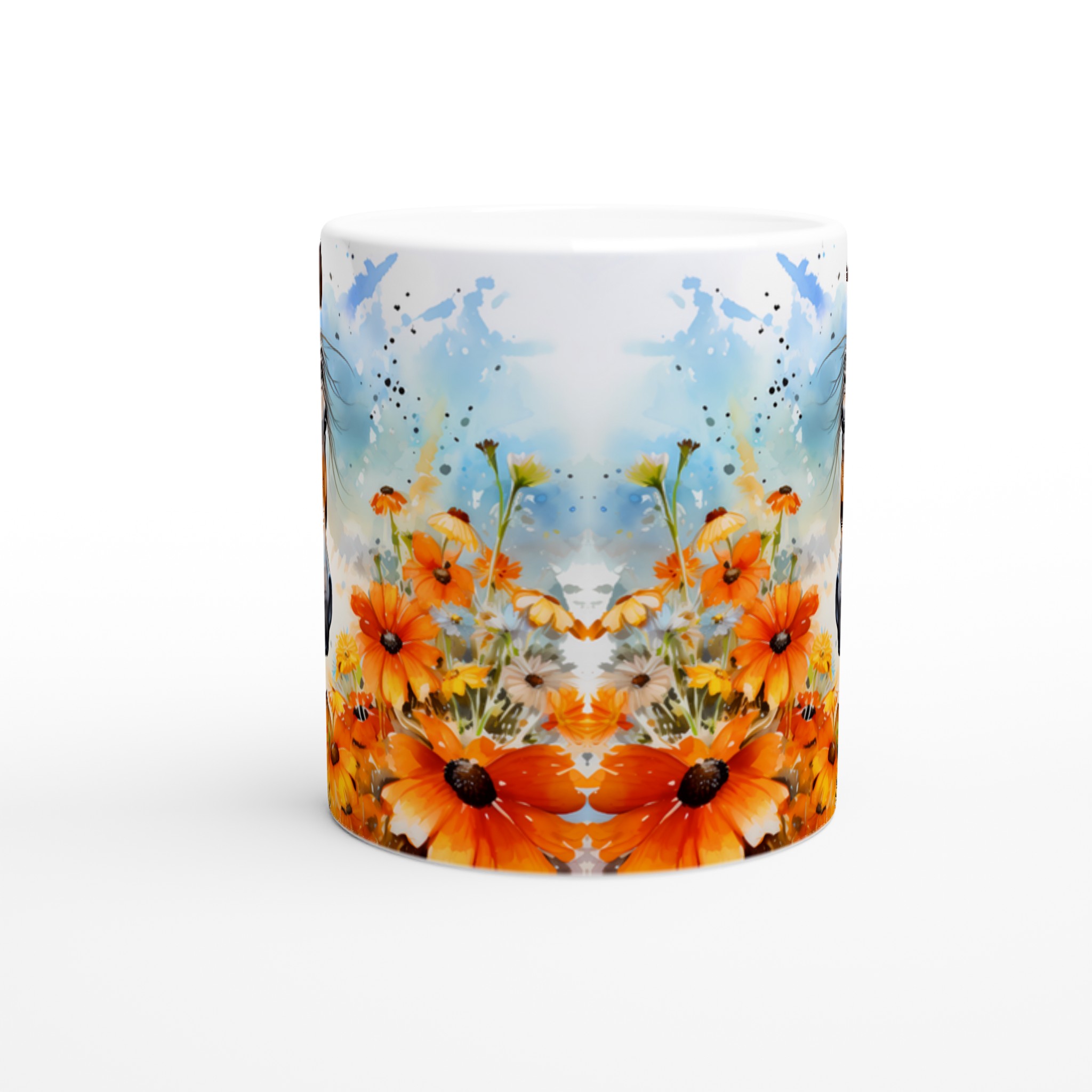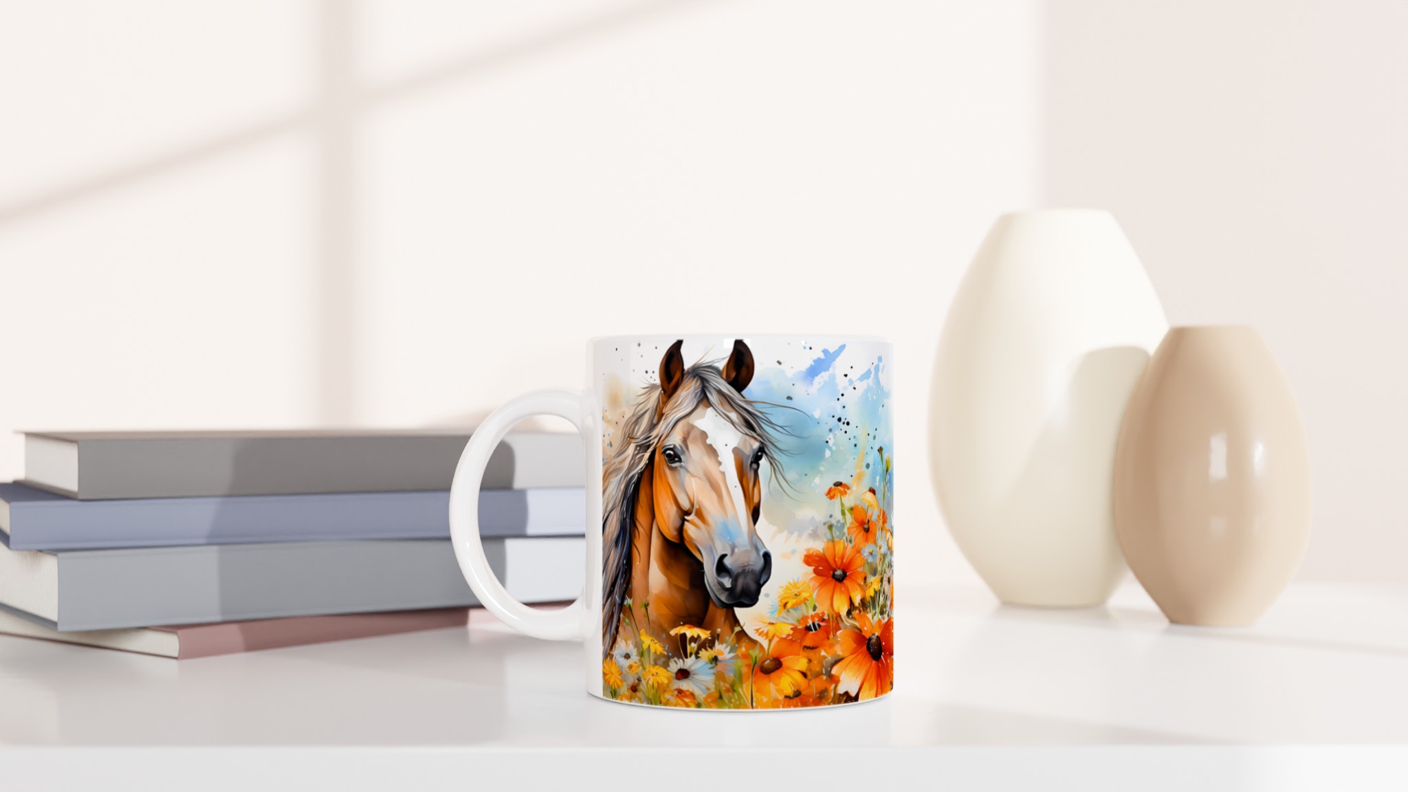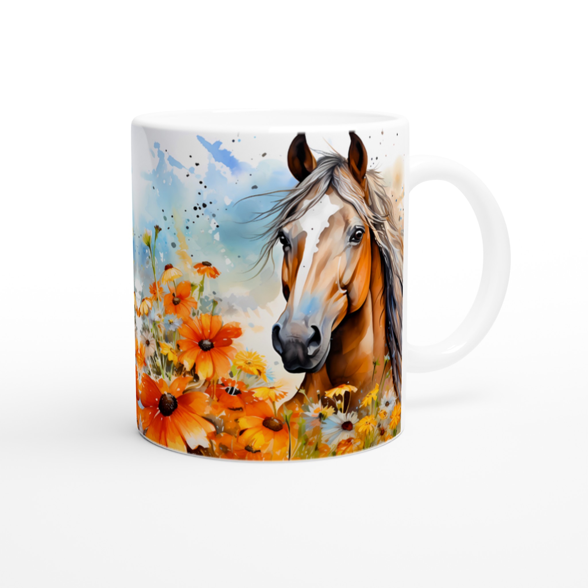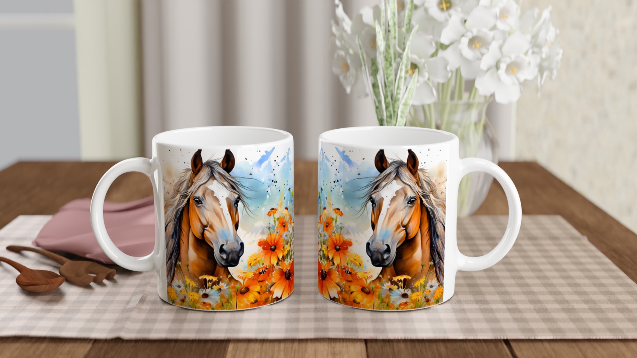 Gallop Through Meadows – Watercolor Horse & Floral Mug, 11oz Ceramic in 7 Vibrant Colors