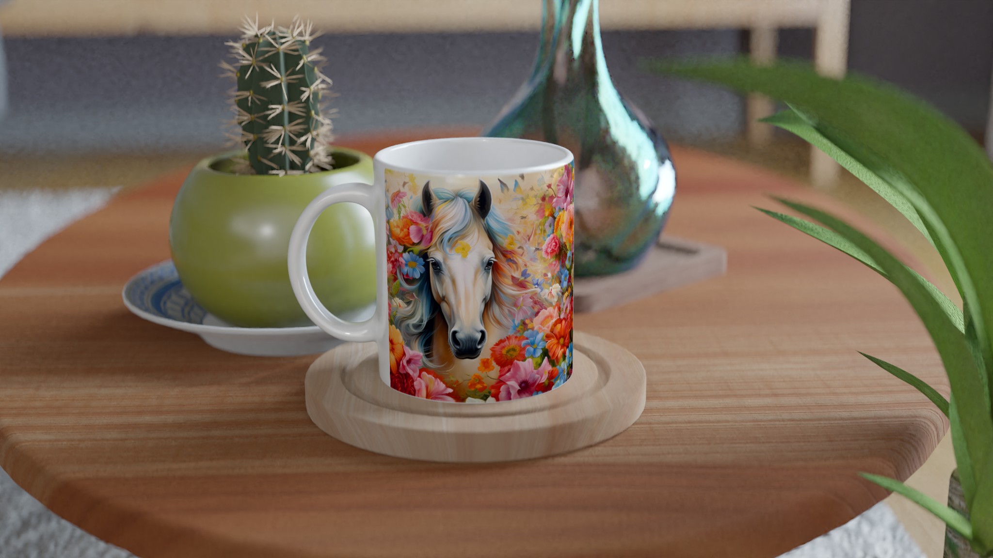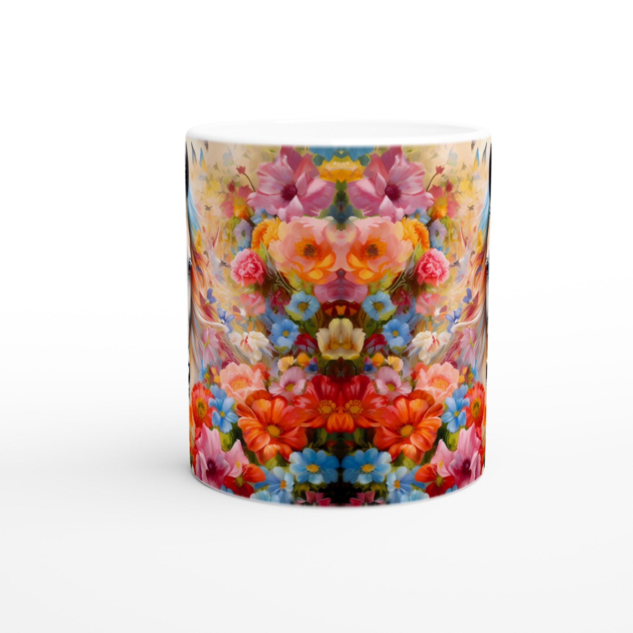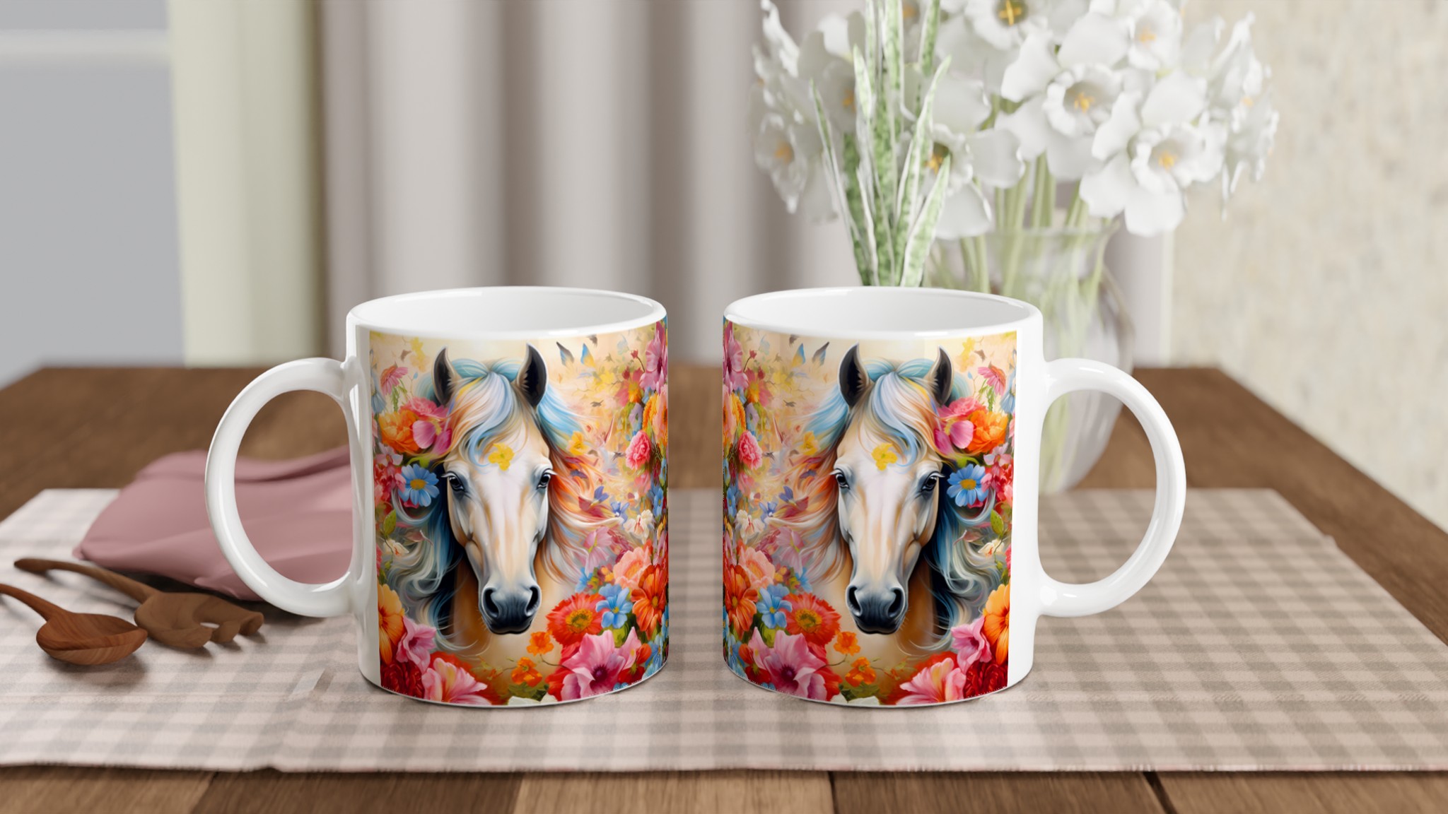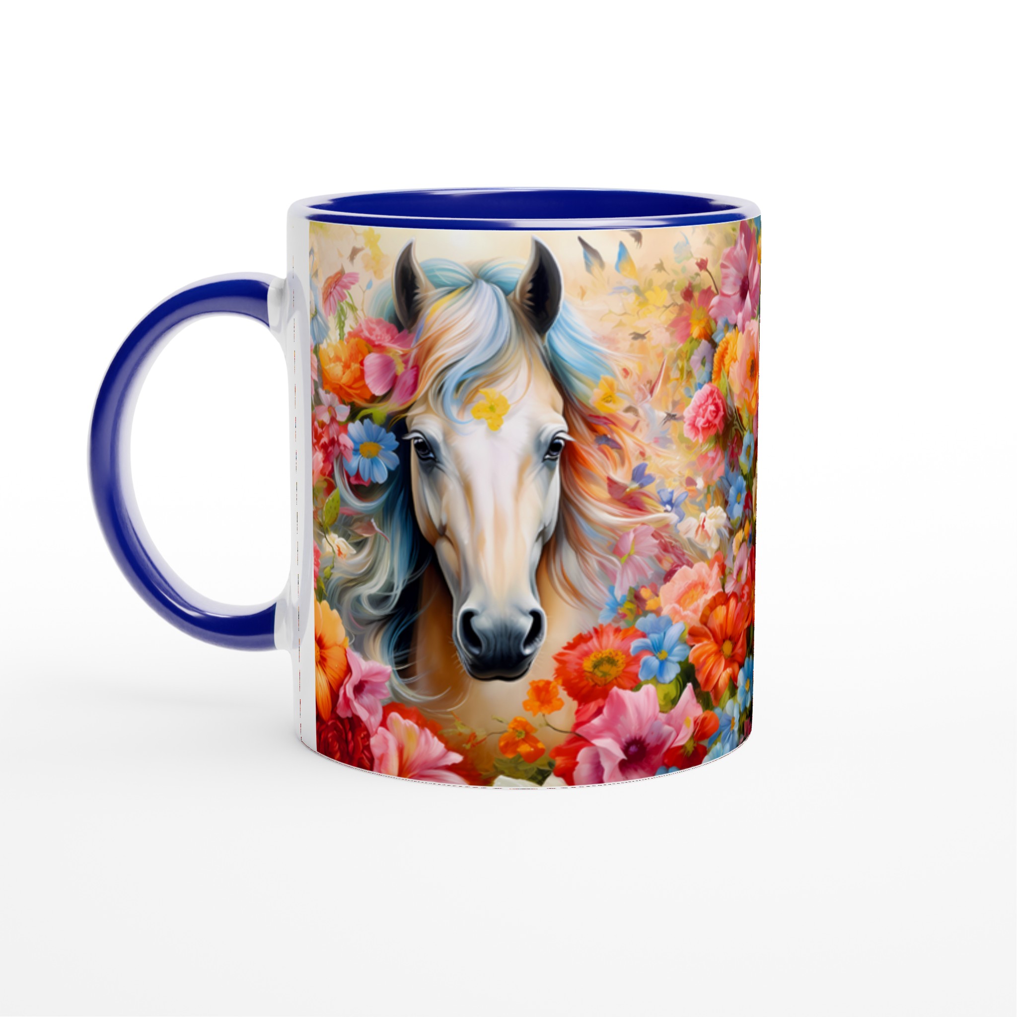 Enchanted Floral Horse – White Ceramic Mug 11oz, a vibrant statement piece for every moment