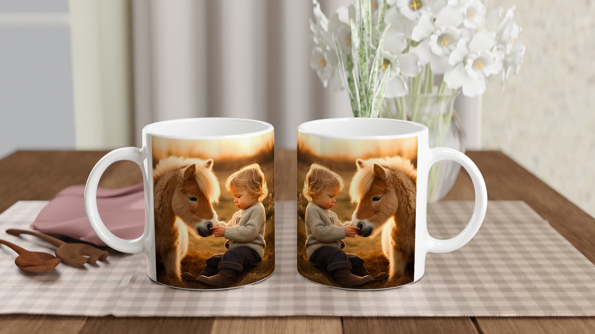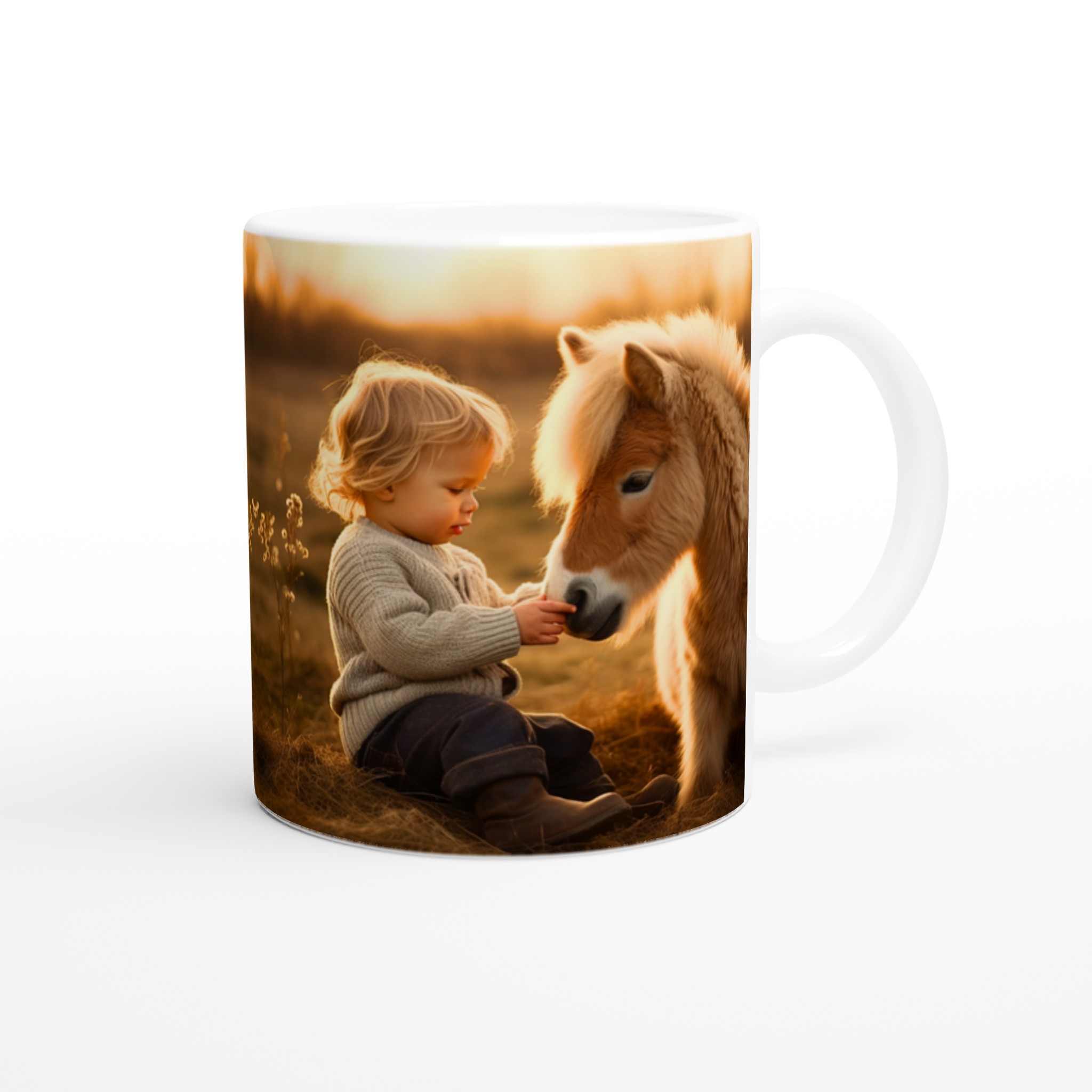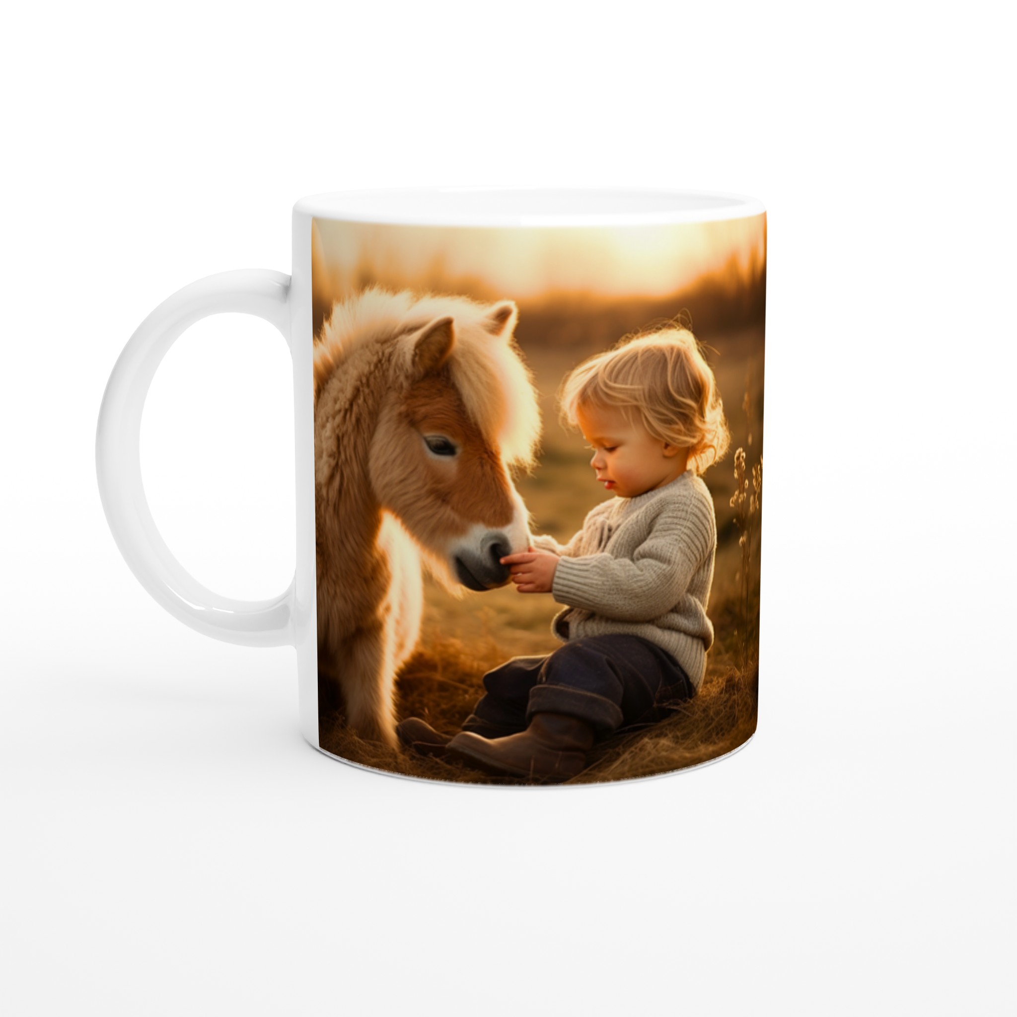 Golden Hour Companions – White Ceramic Mug 11oz with Warm Equestrian Scene