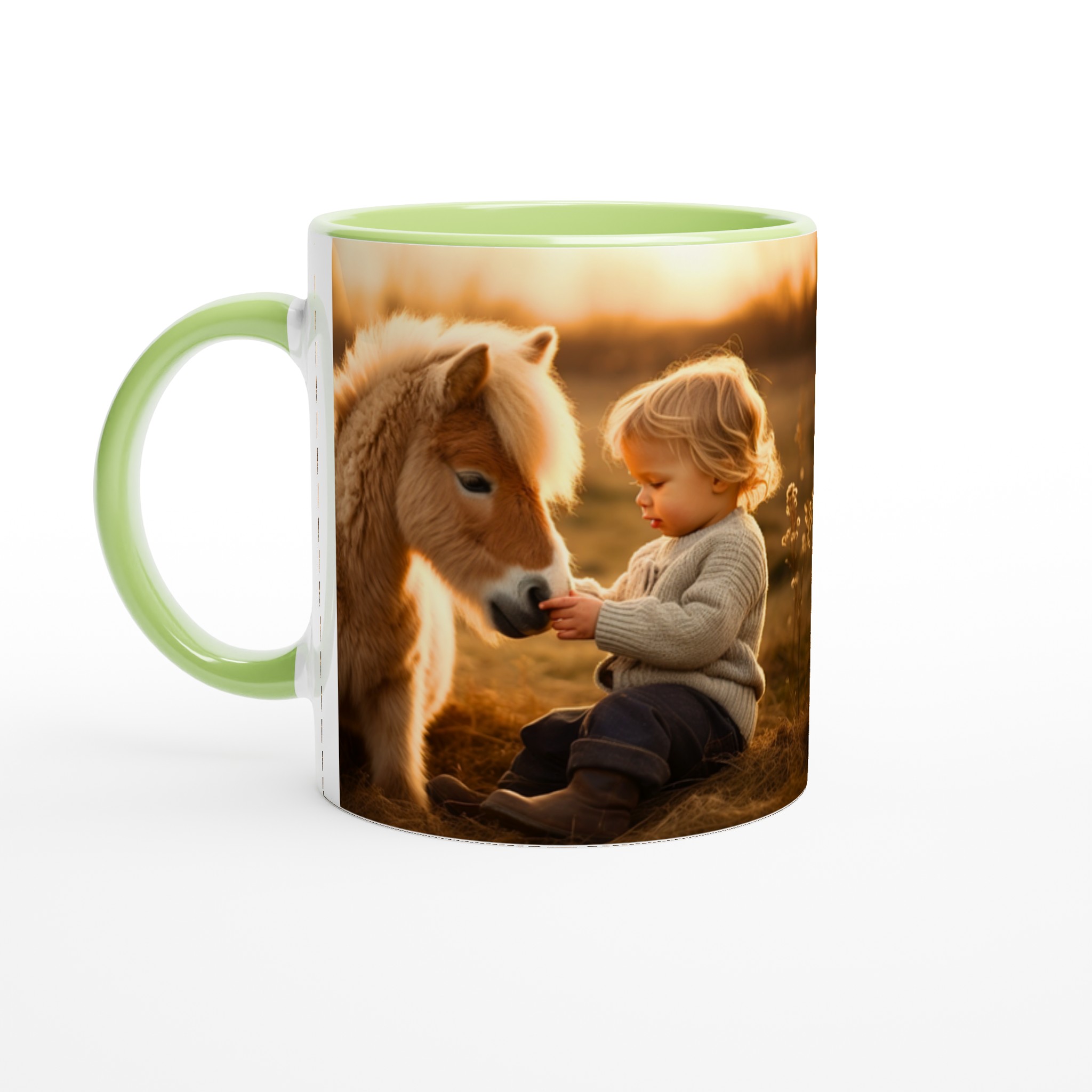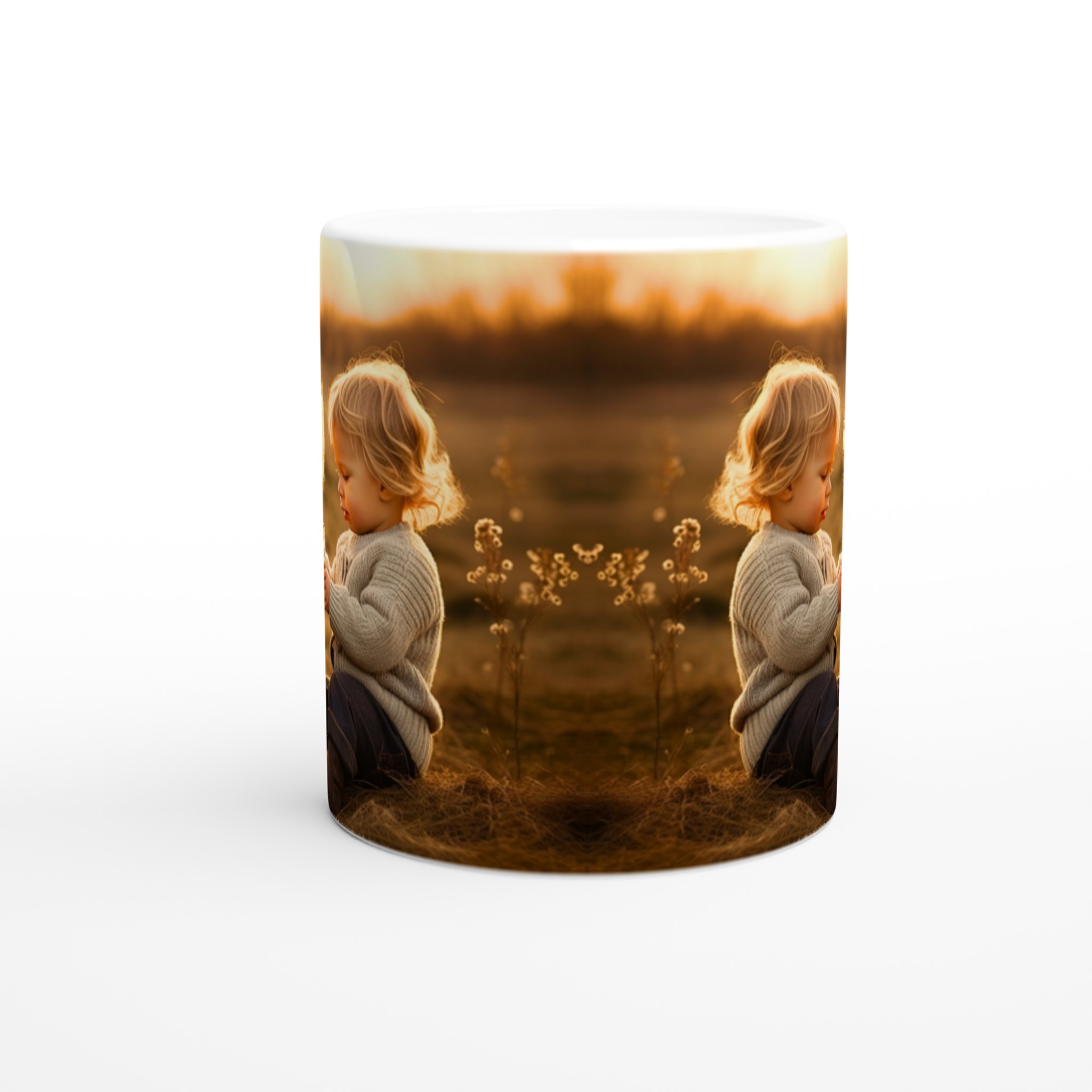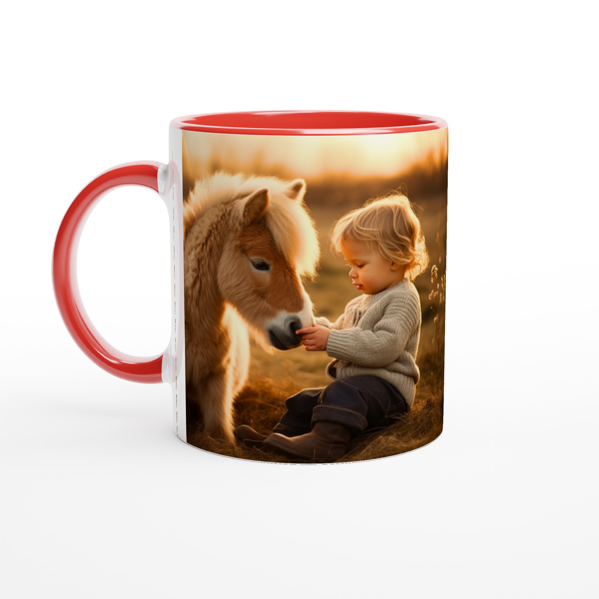 Golden Hour Companions – White Ceramic Mug 11oz with Warm Equestrian Scene