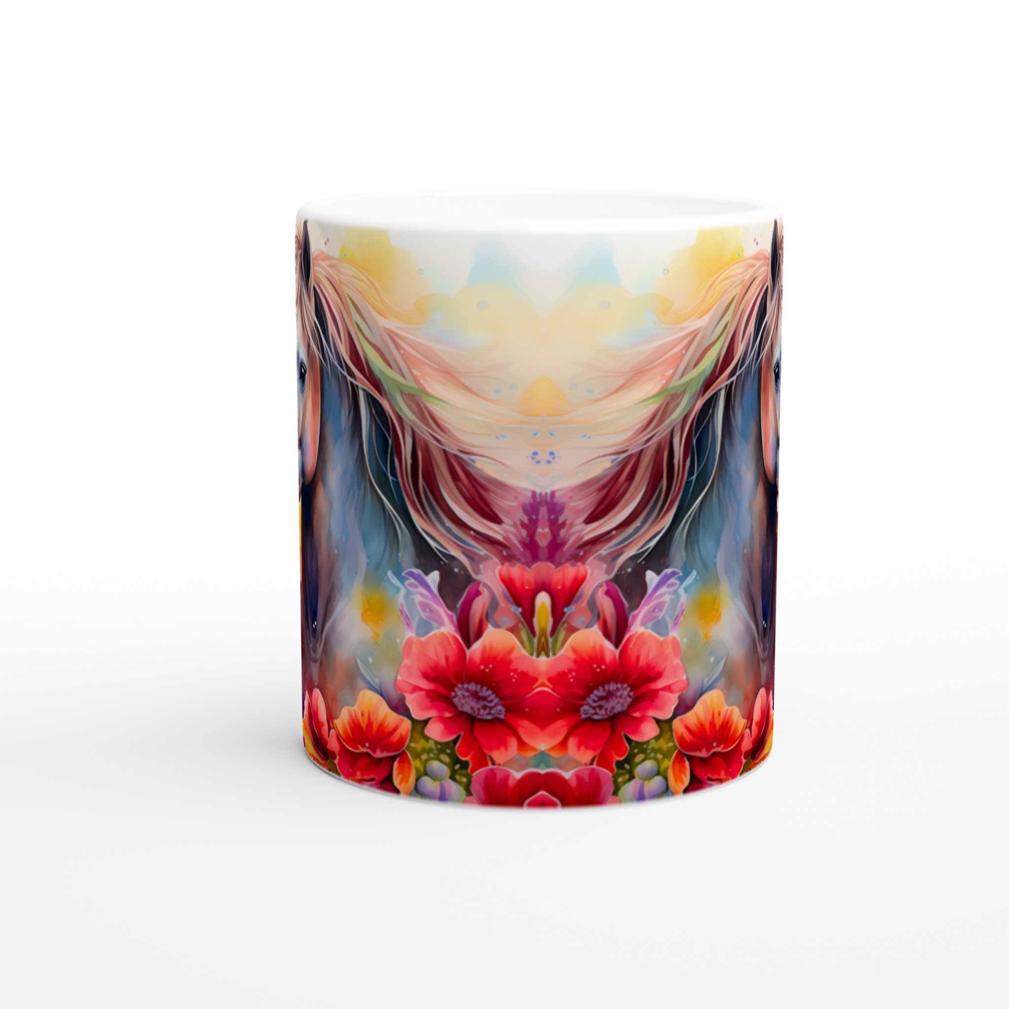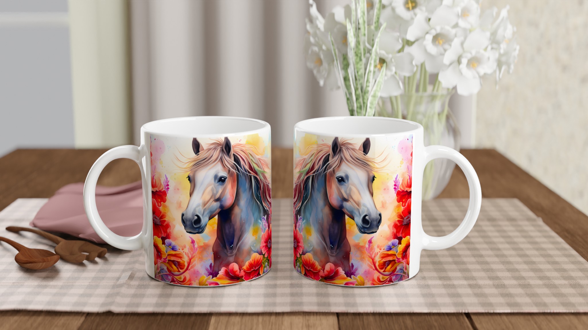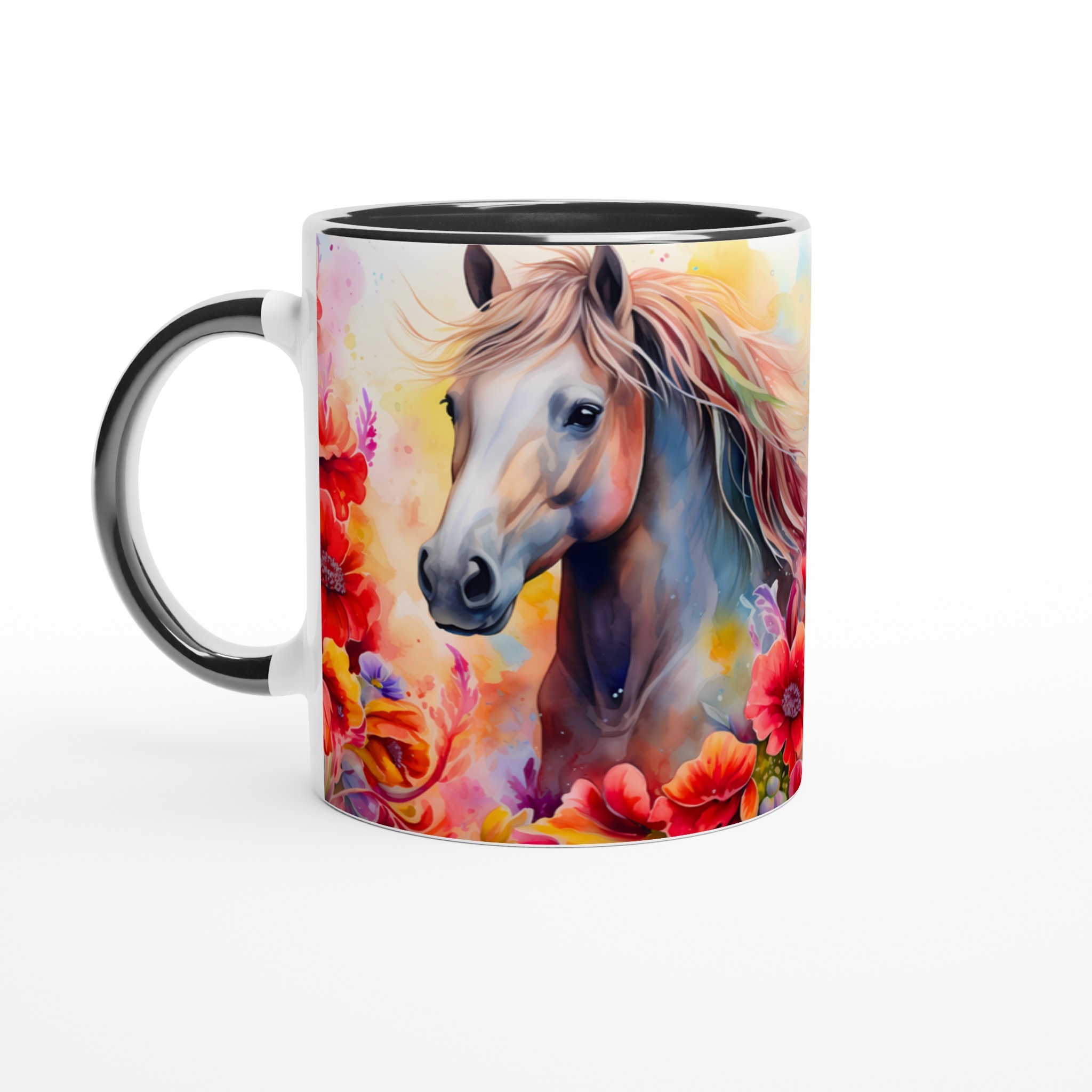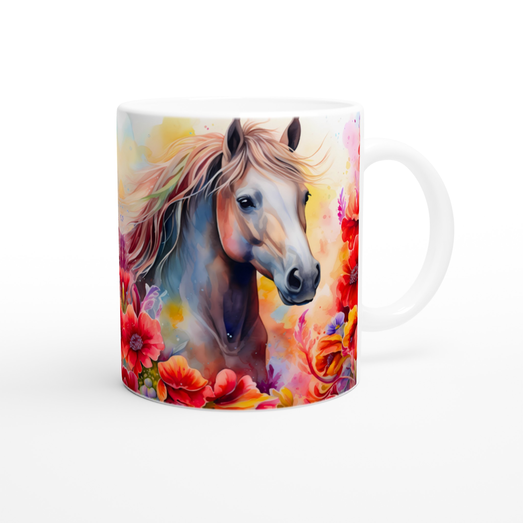 Galloping Grace Watercolor Mug – Vibrant Horse & Floral Art 11oz Ceramic Mug