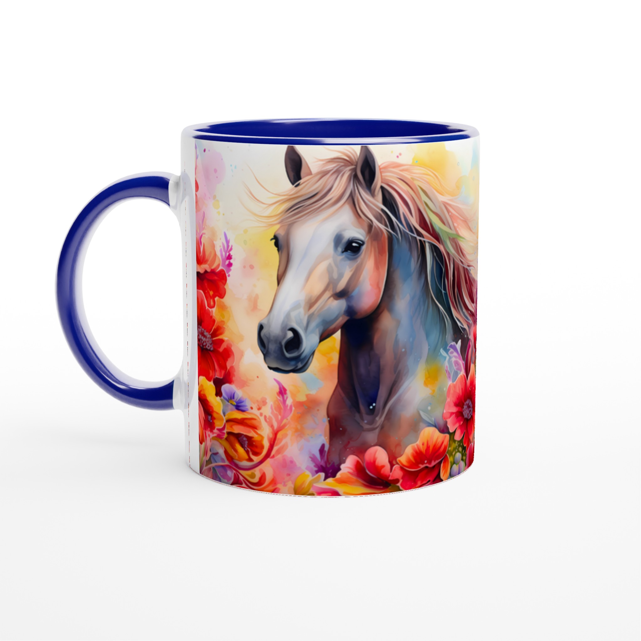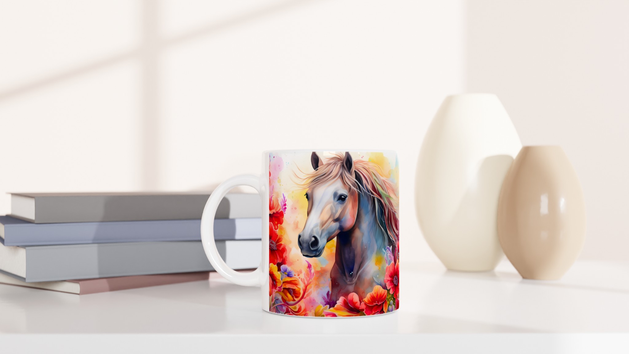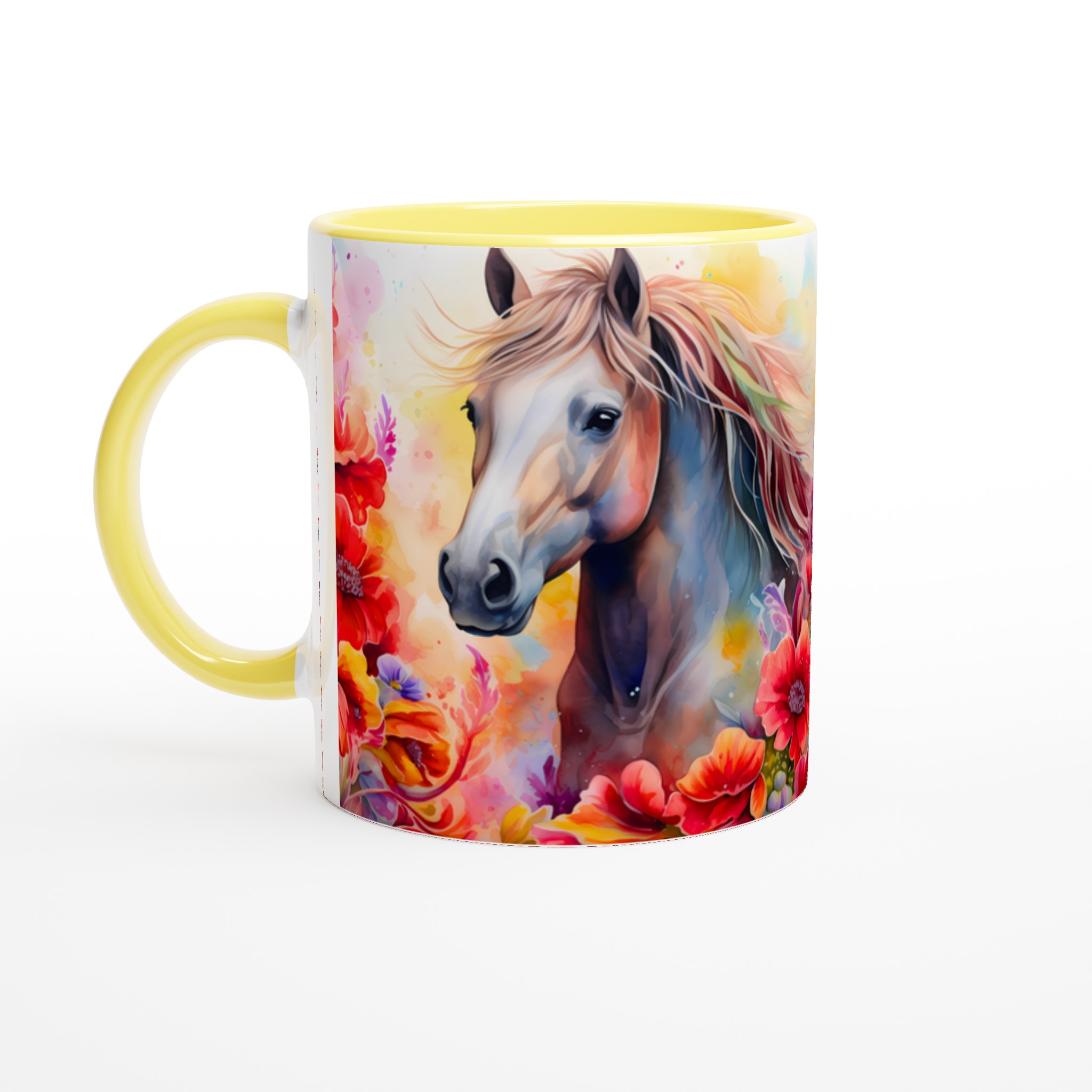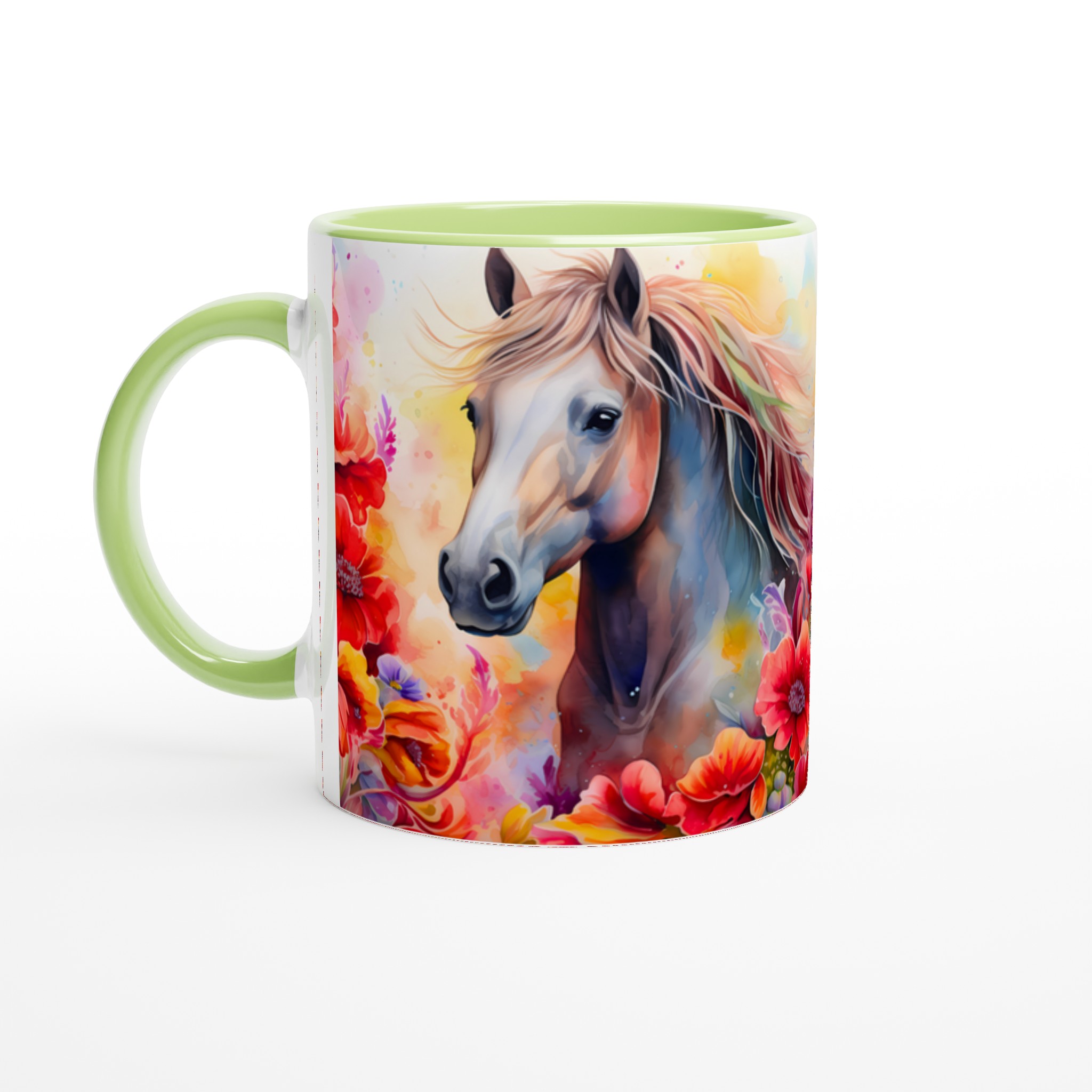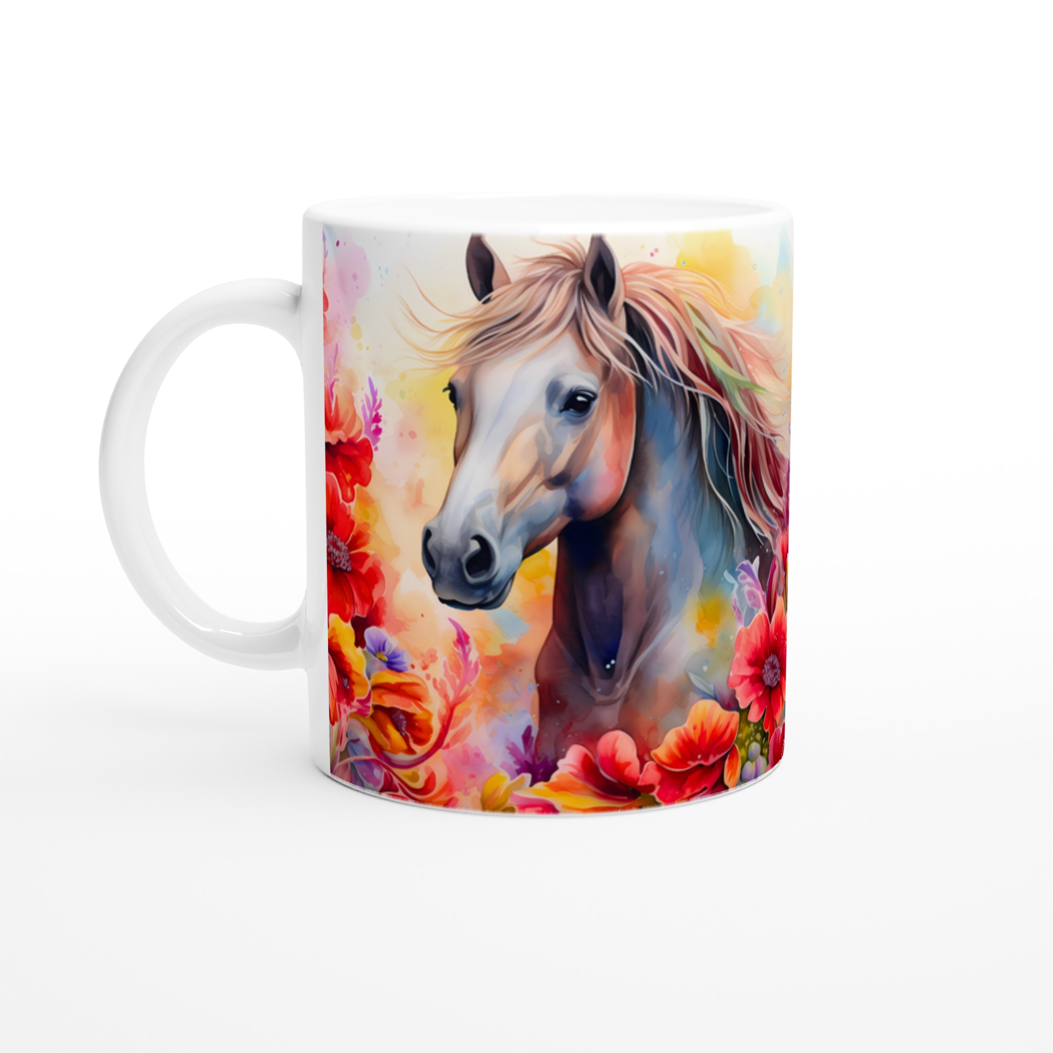 Galloping Grace Watercolor Mug – Vibrant Horse & Floral Art 11oz Ceramic Mug