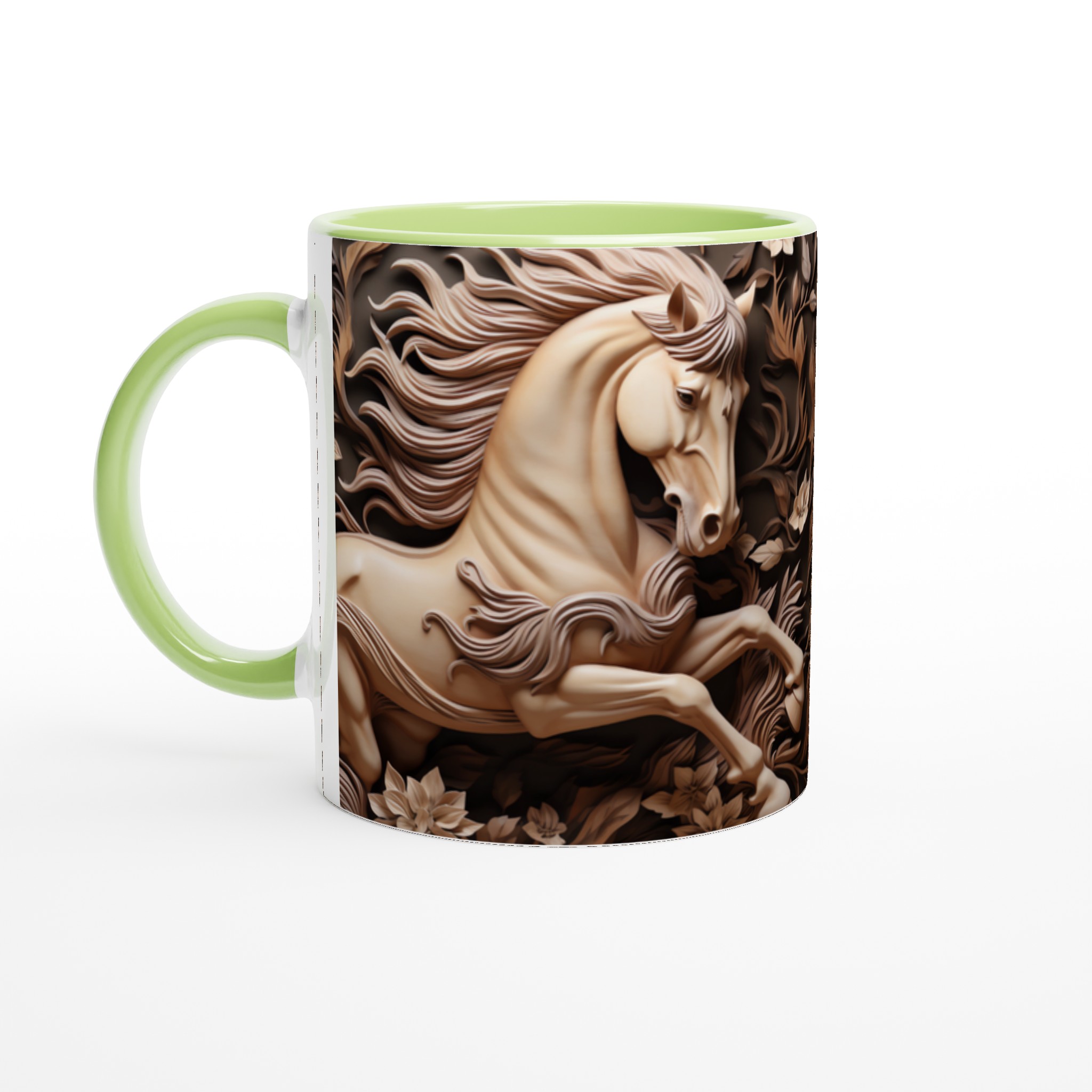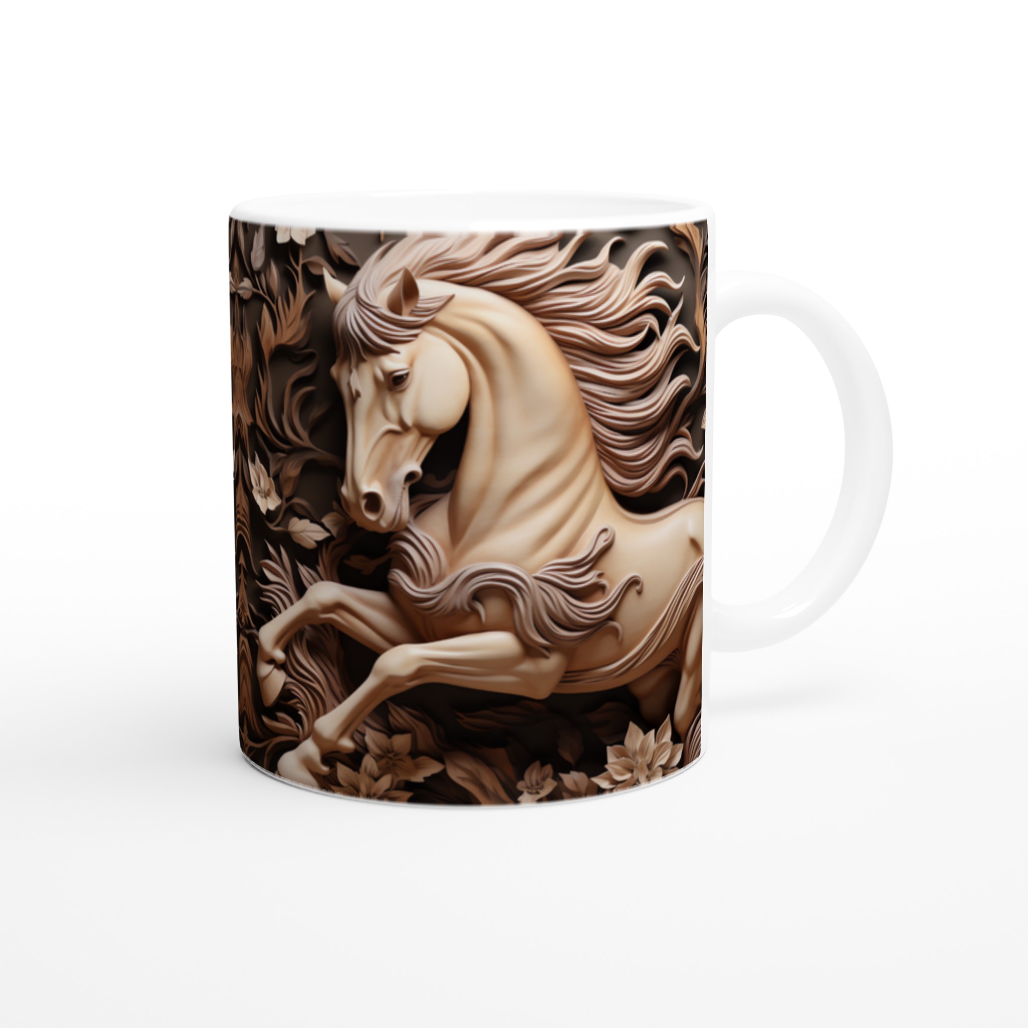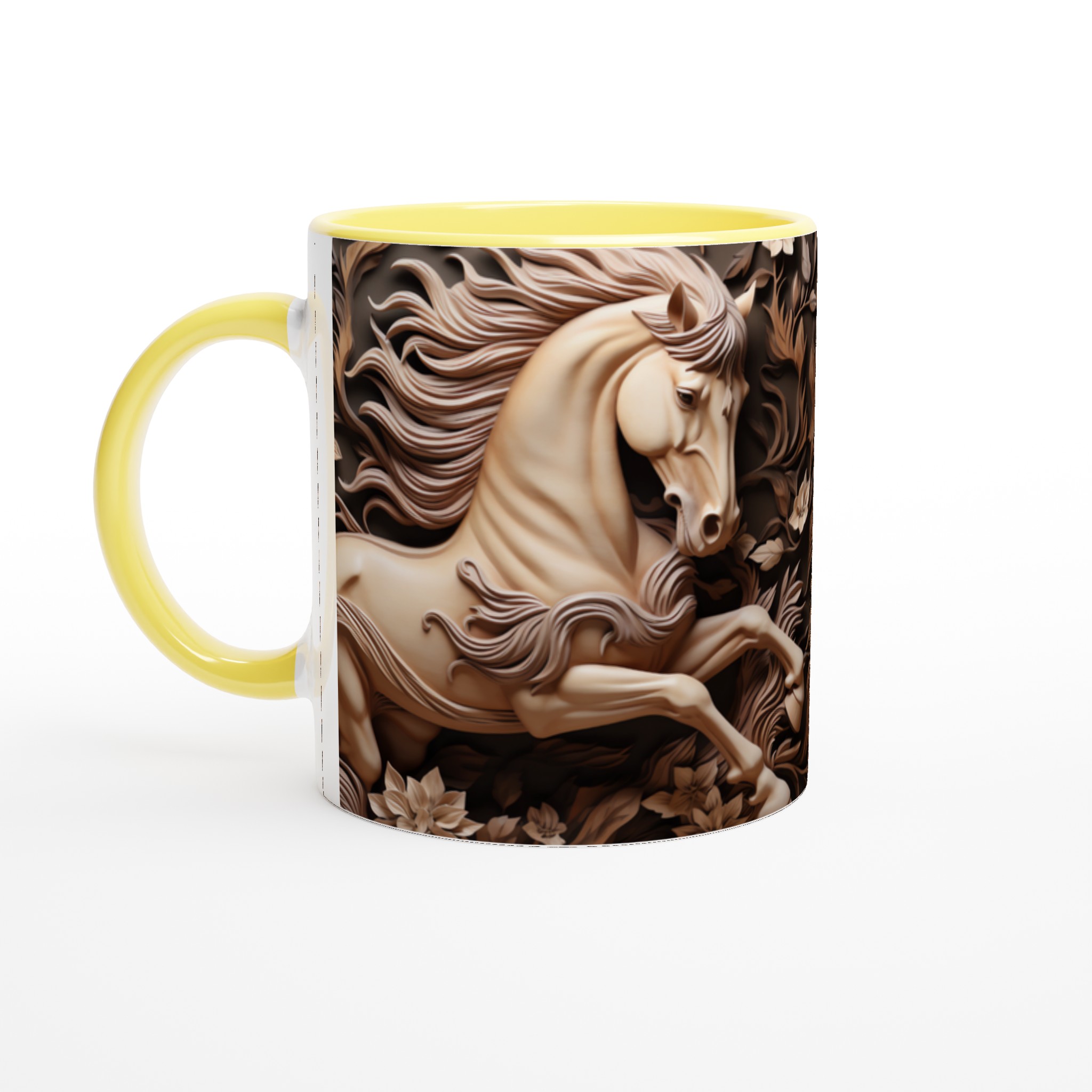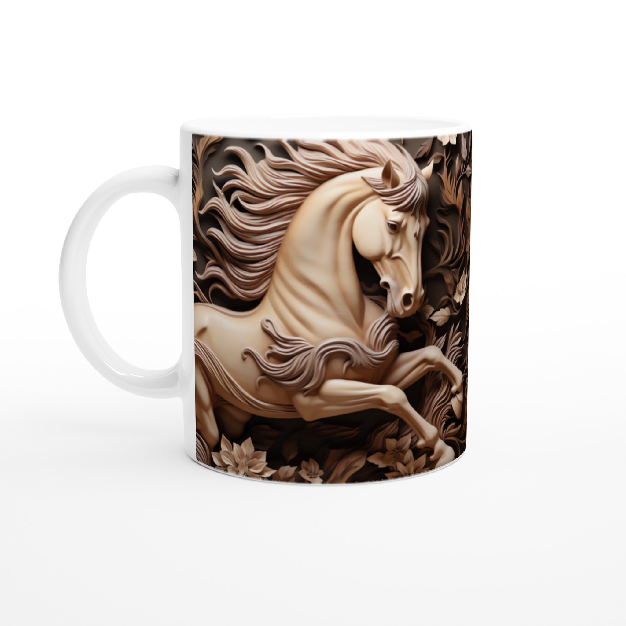 Elegant Equine Art – White Ceramic Mug 11oz, in your choice of seven captivating colors