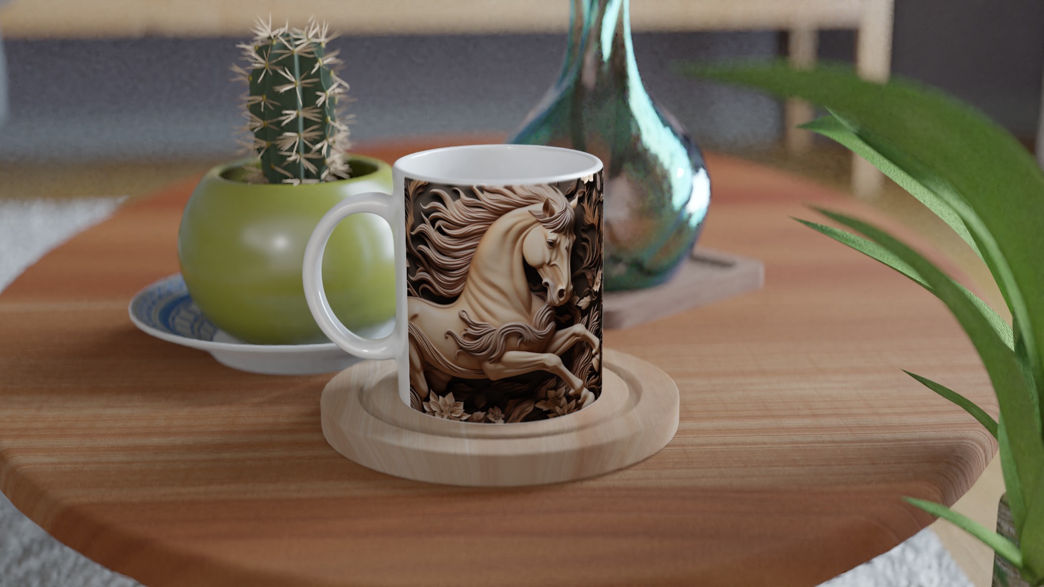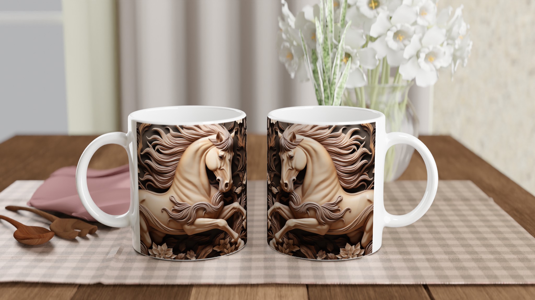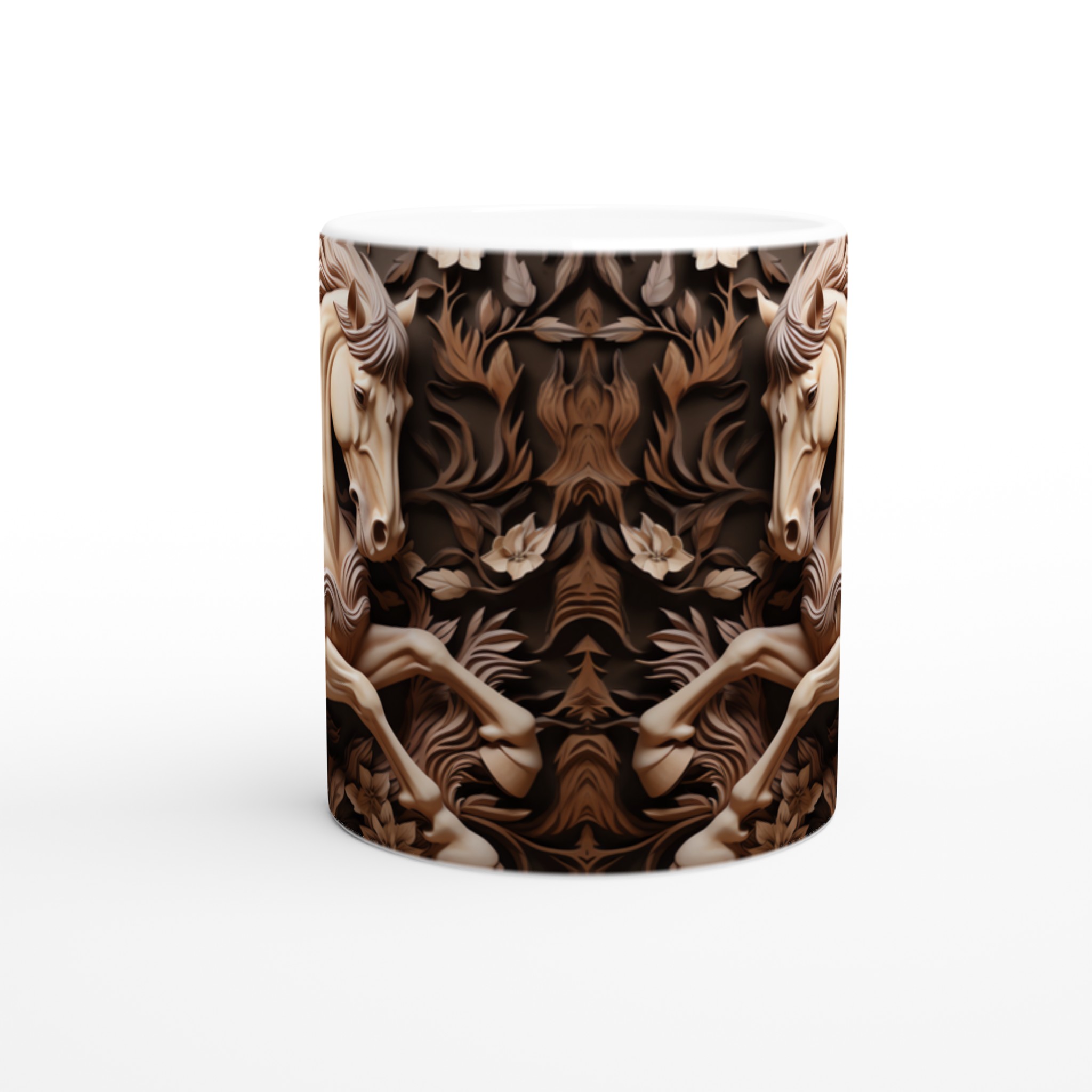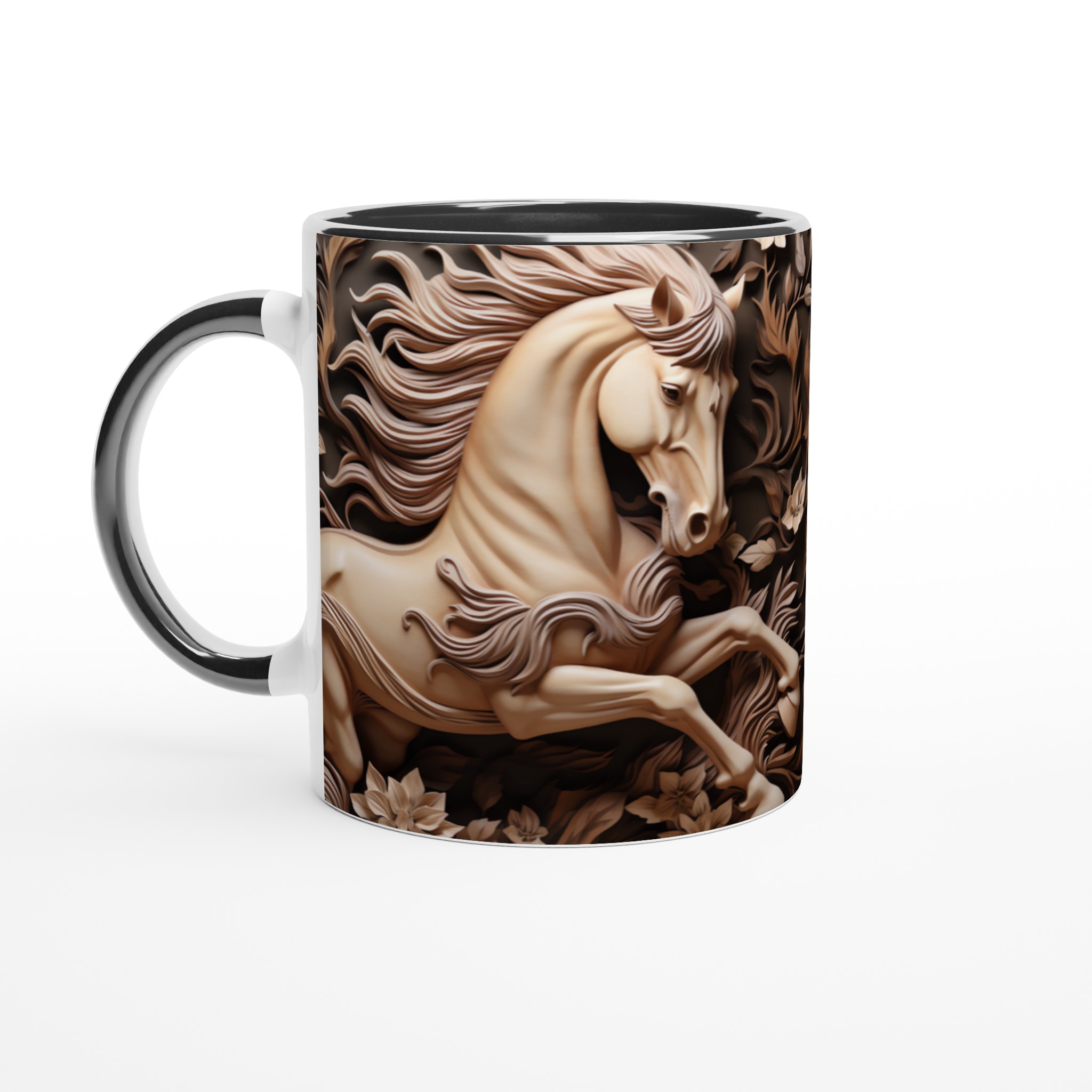 Elegant Equine Art – White Ceramic Mug 11oz, in your choice of seven captivating colors