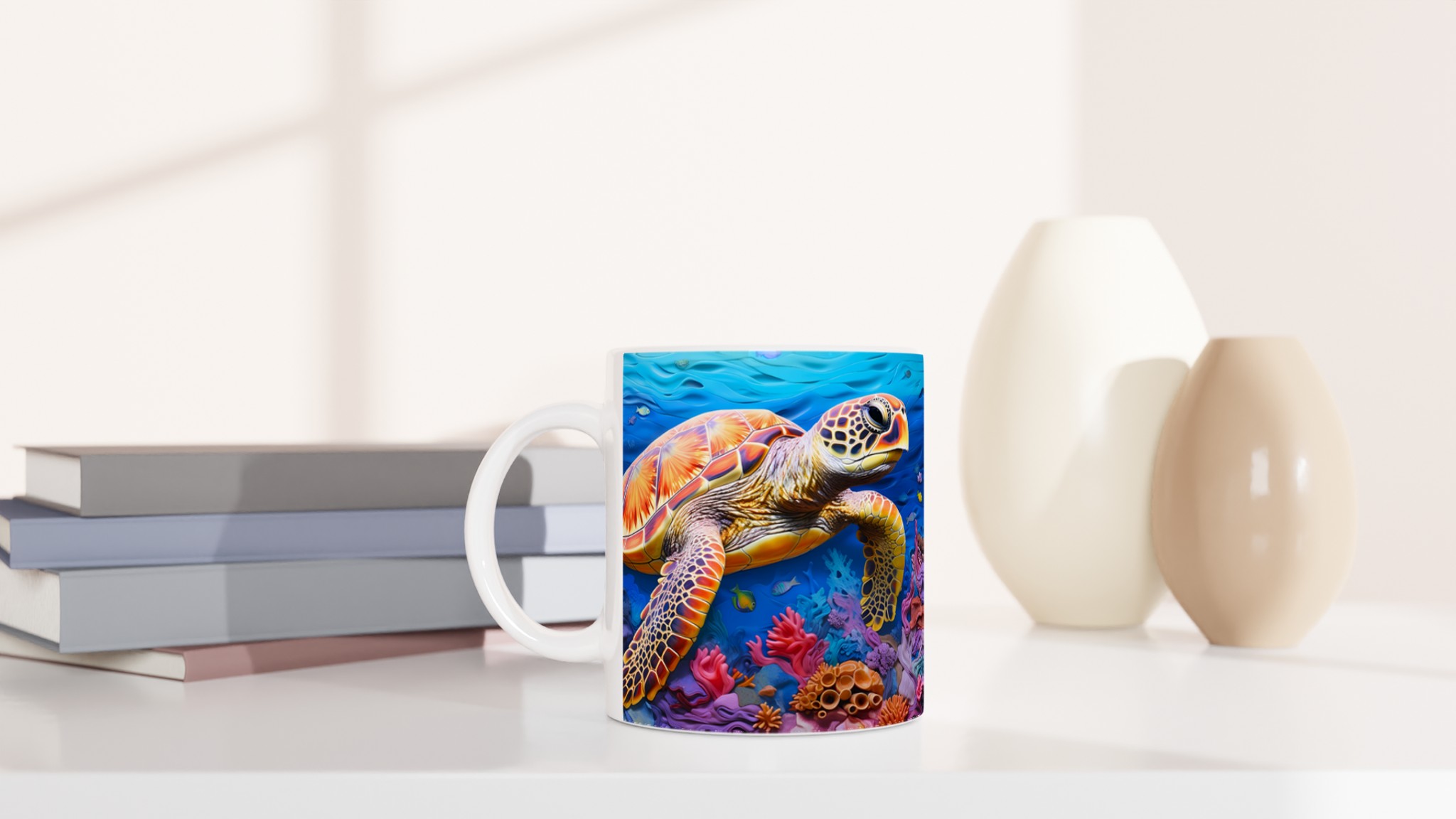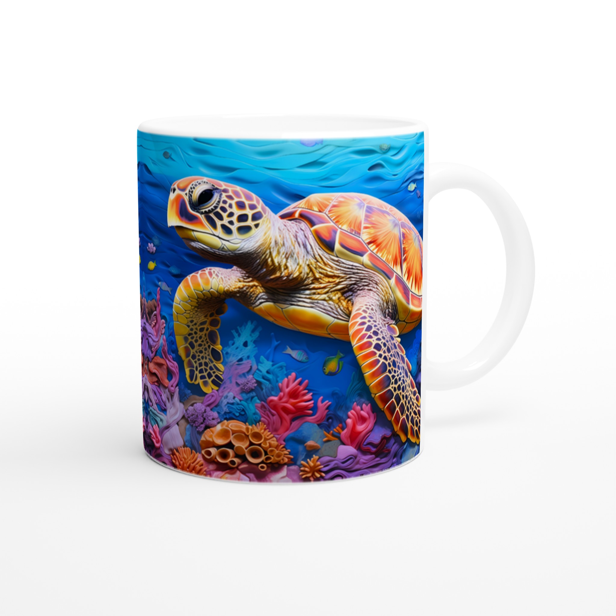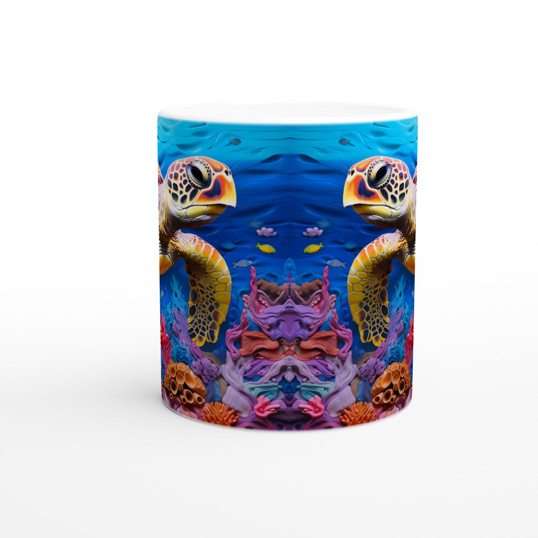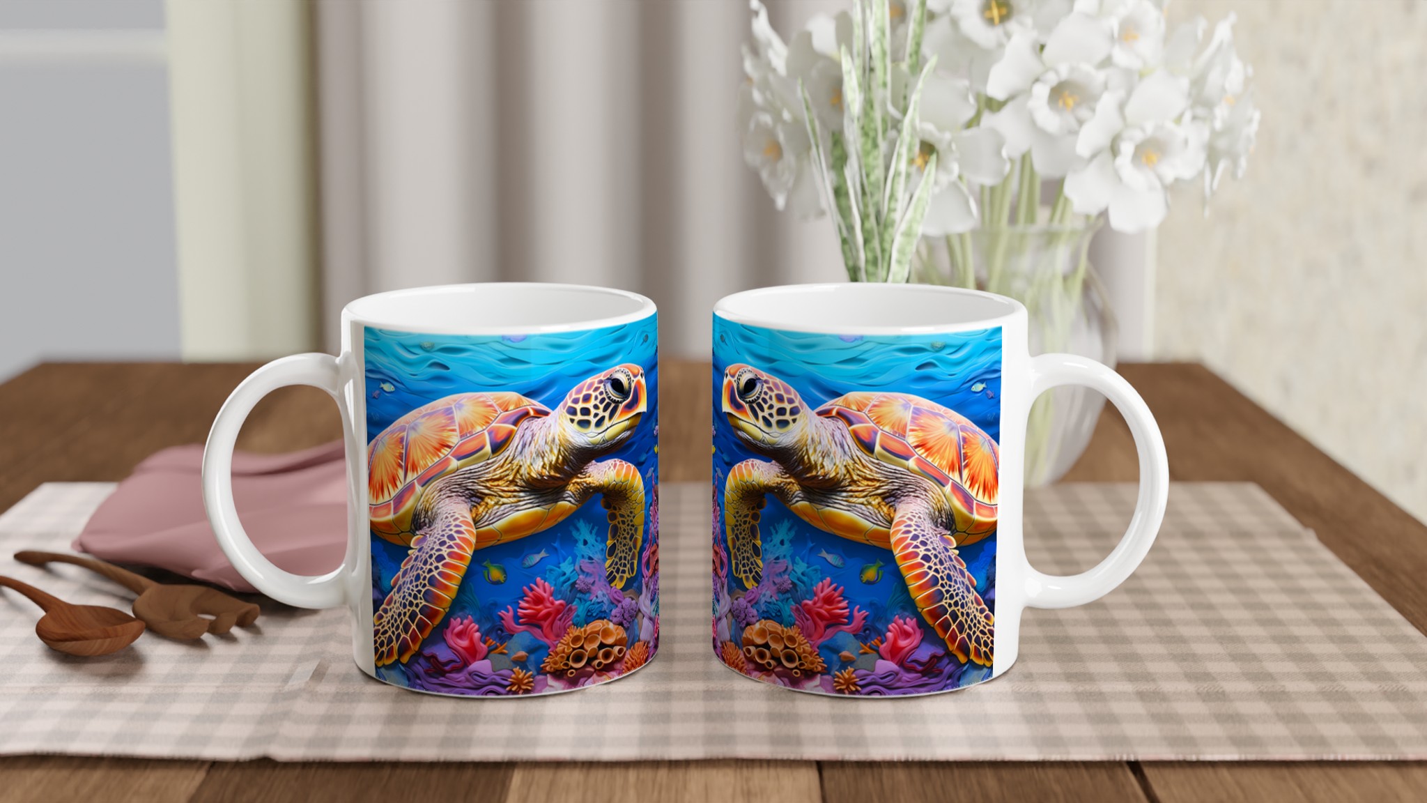 Vibrant Ocean Turtle White Ceramic Mug 11oz – Dive into Color with Your Favorite Hot Beverage