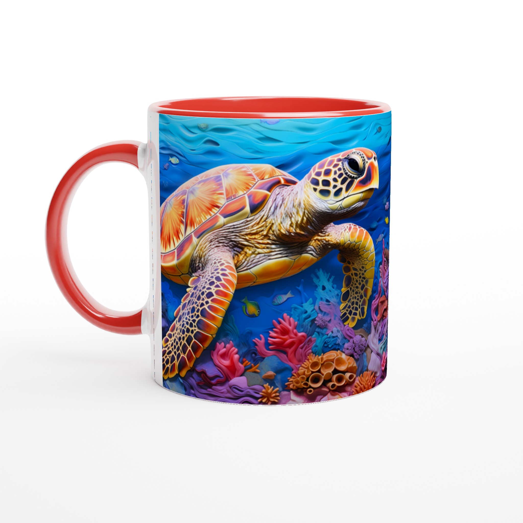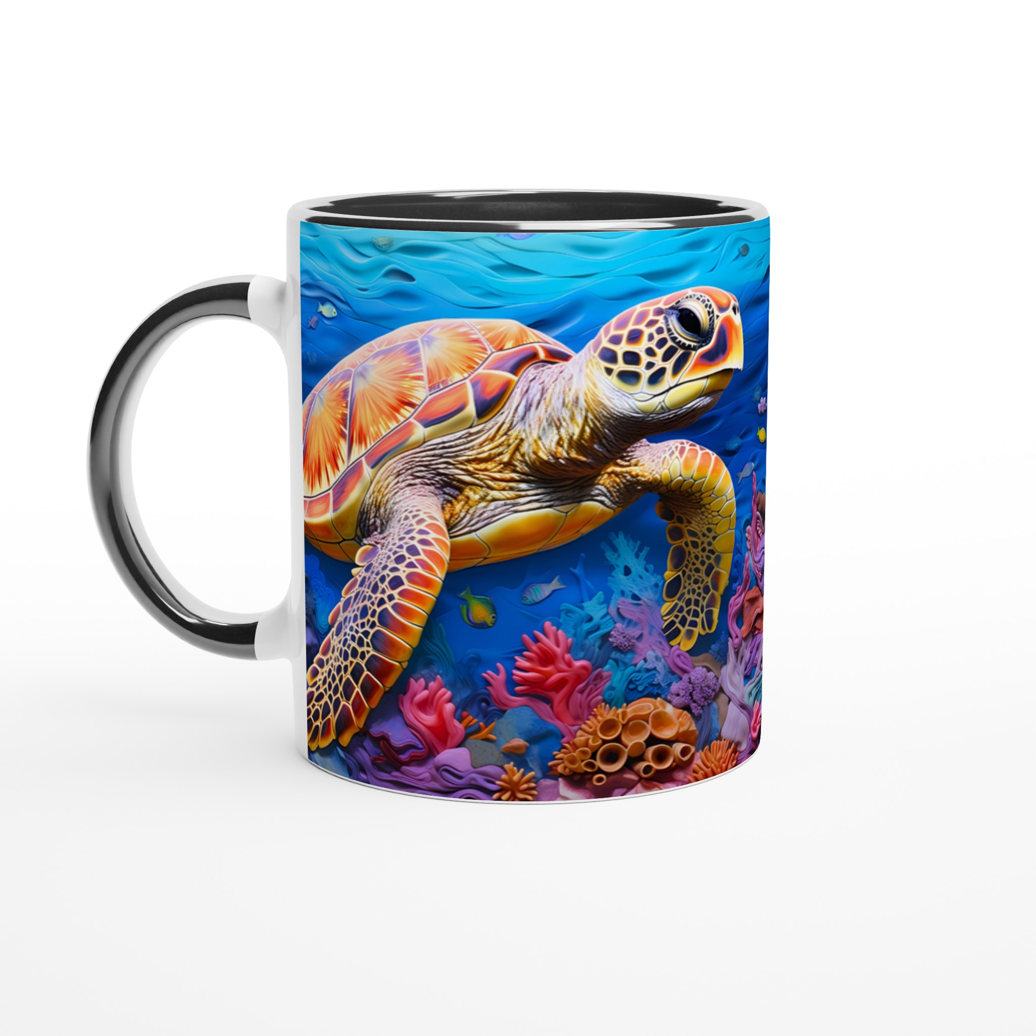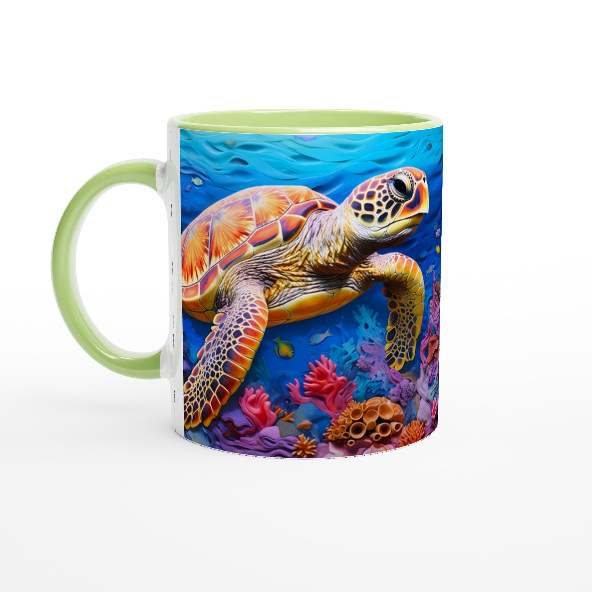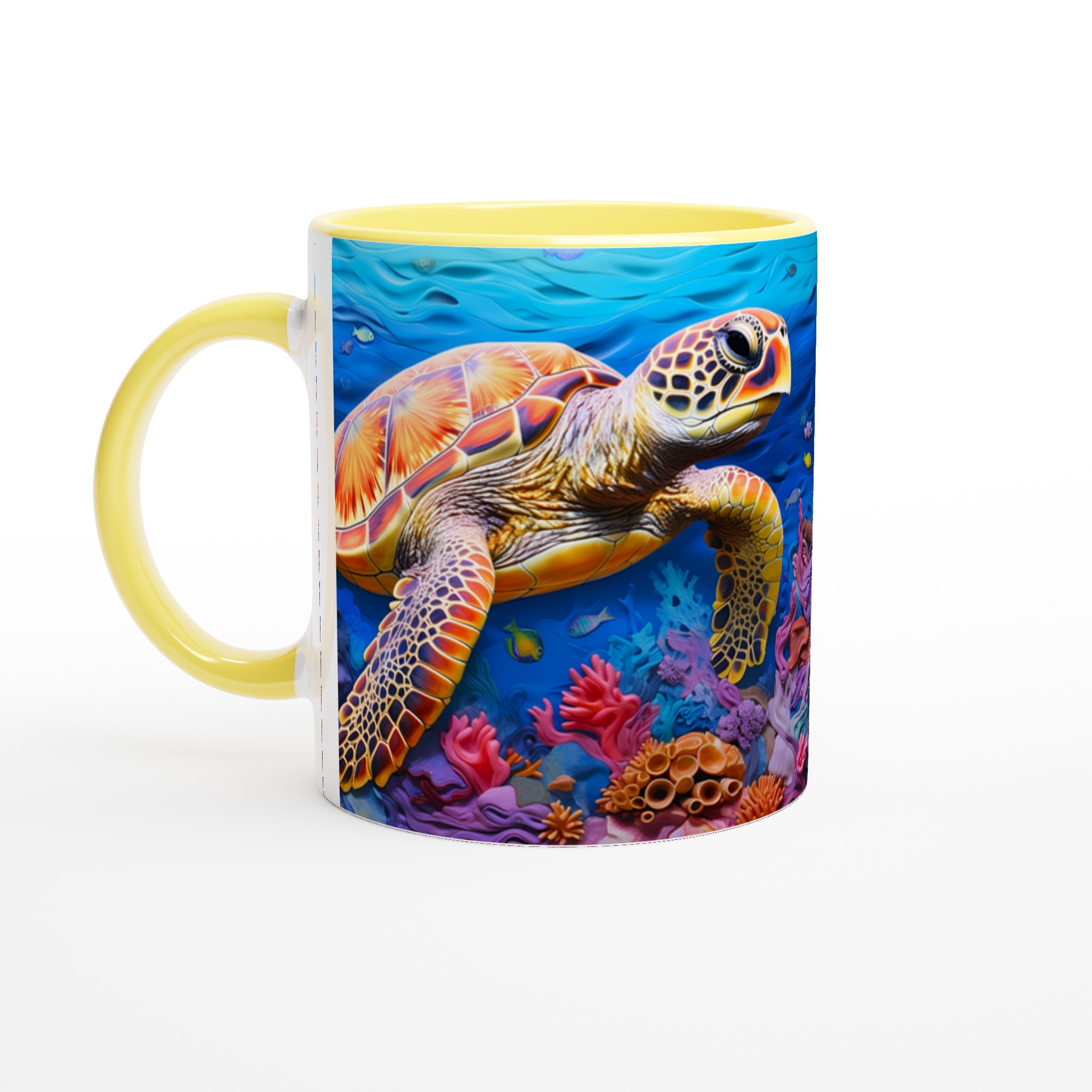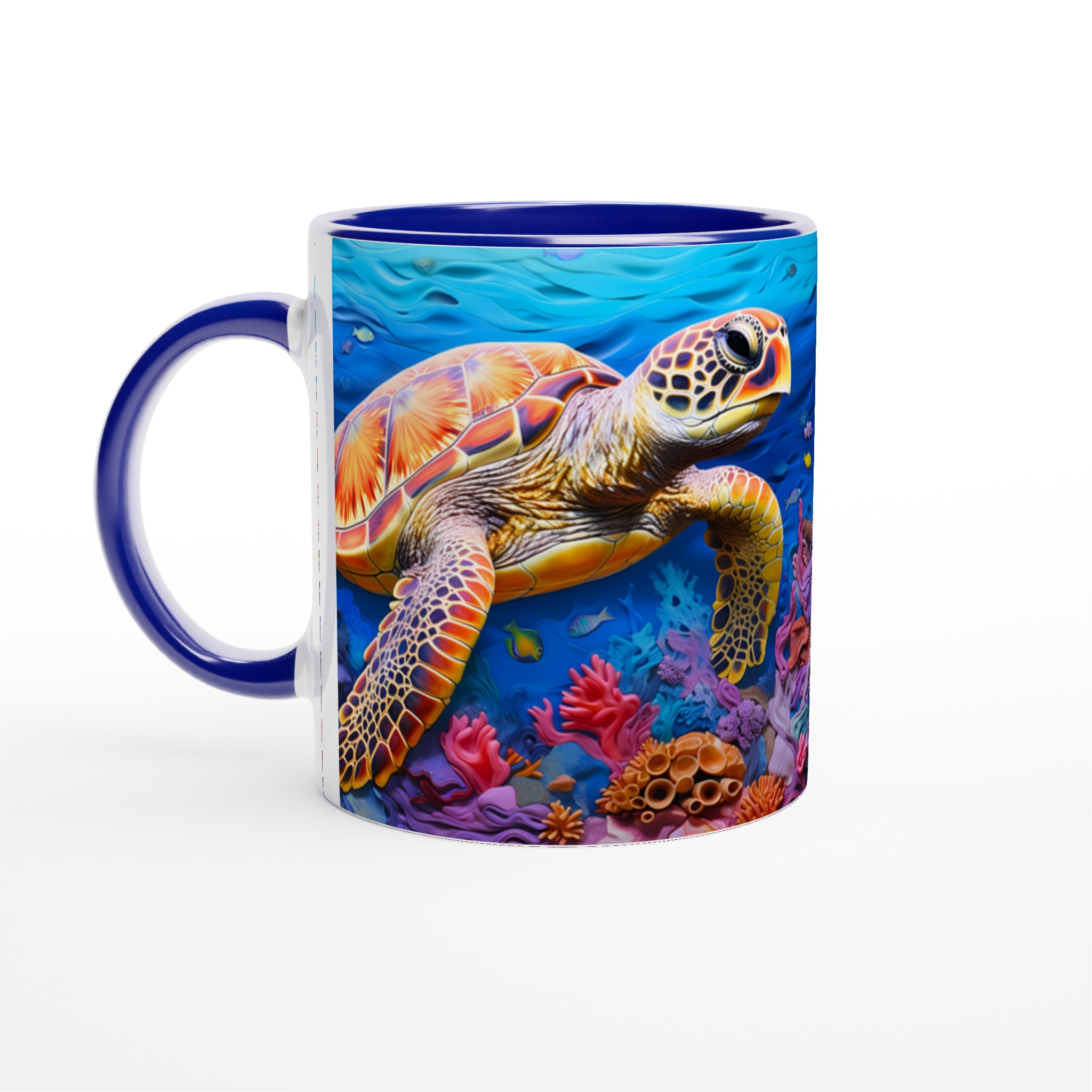 Vibrant Ocean Turtle White Ceramic Mug 11oz – Dive into Color with Your Favorite Hot Beverage