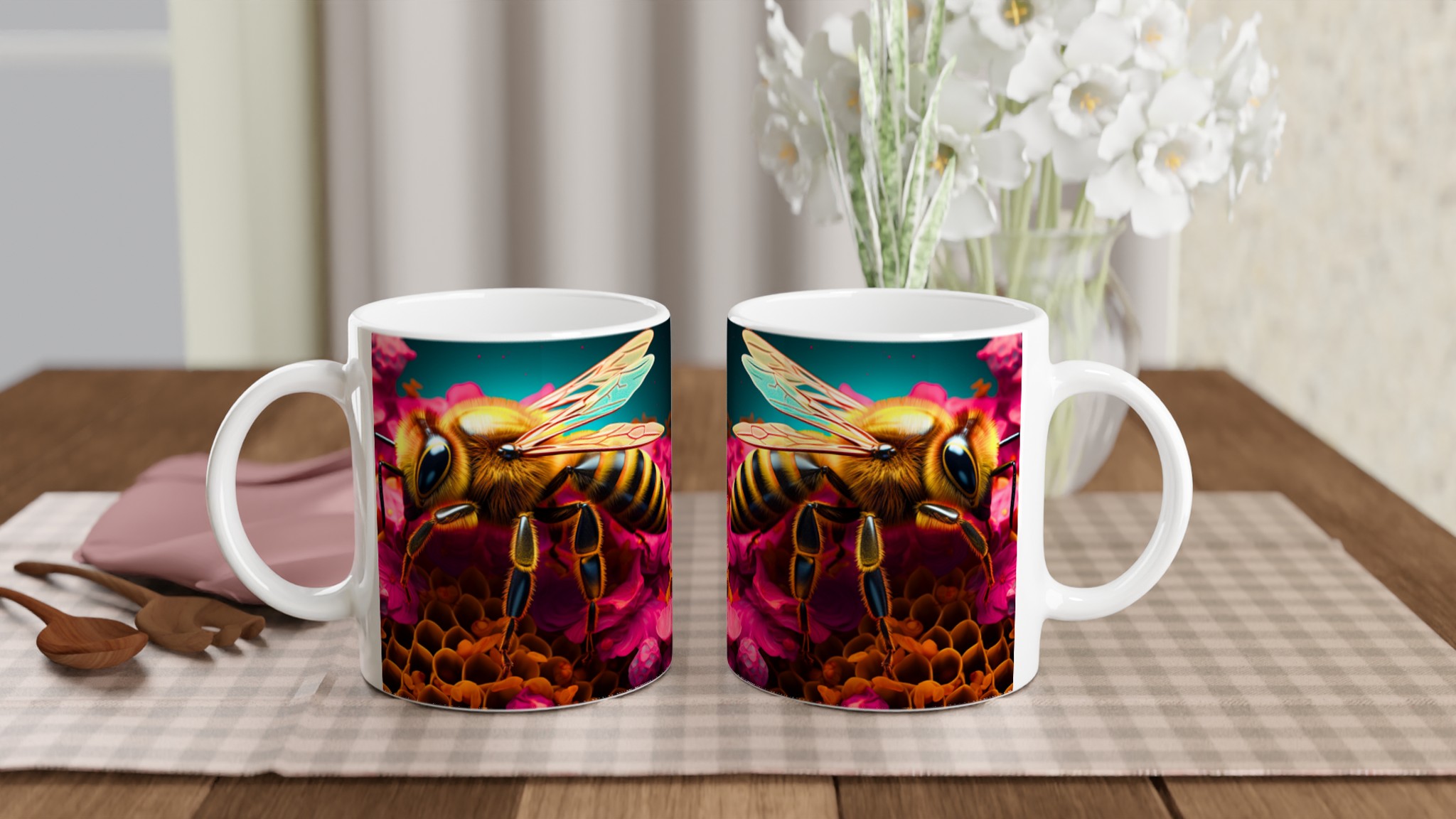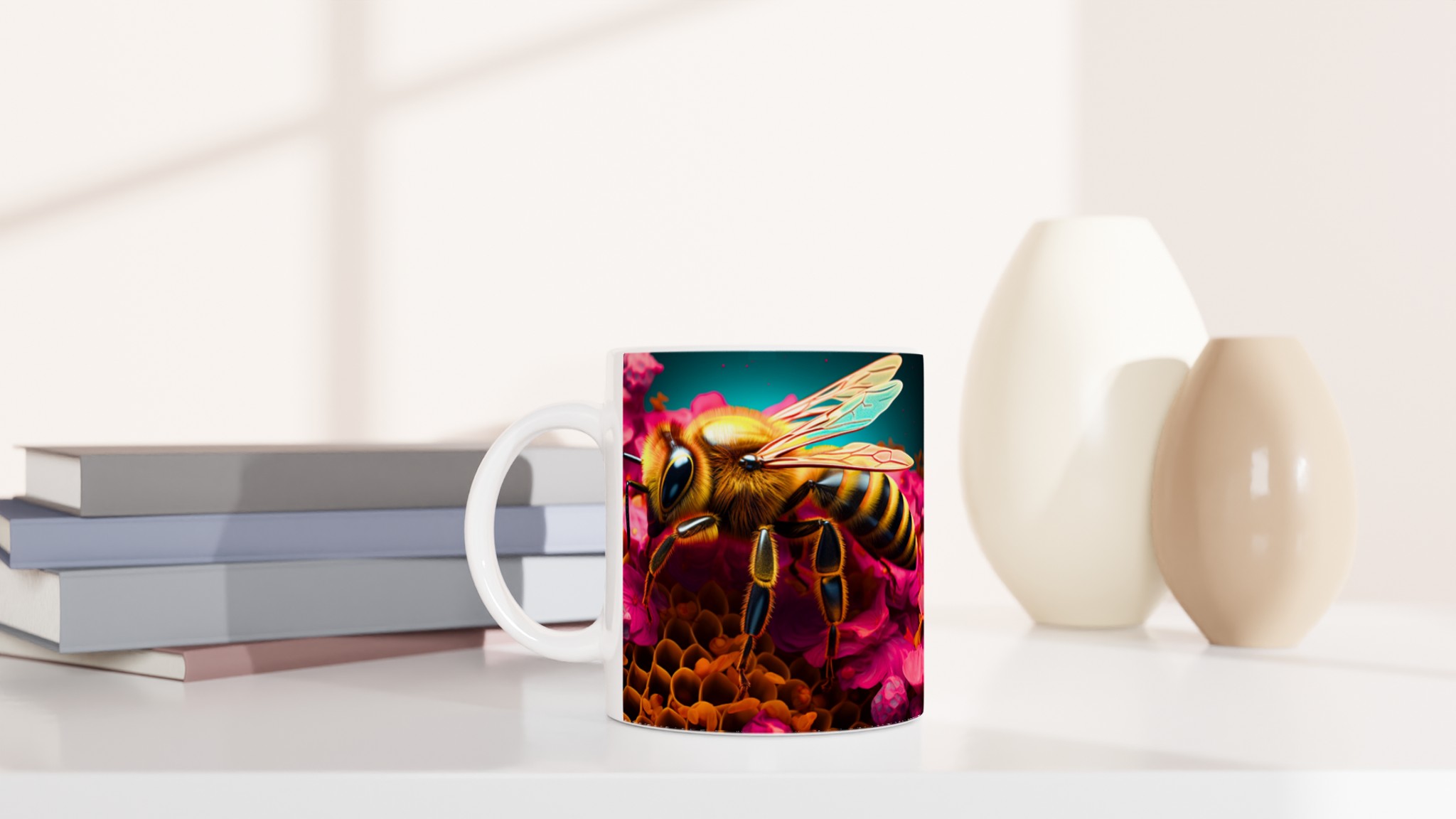 Bee’s Nectar Dream – Vibrant Ceramic Mug 11oz in Your Choice of Seven Hues