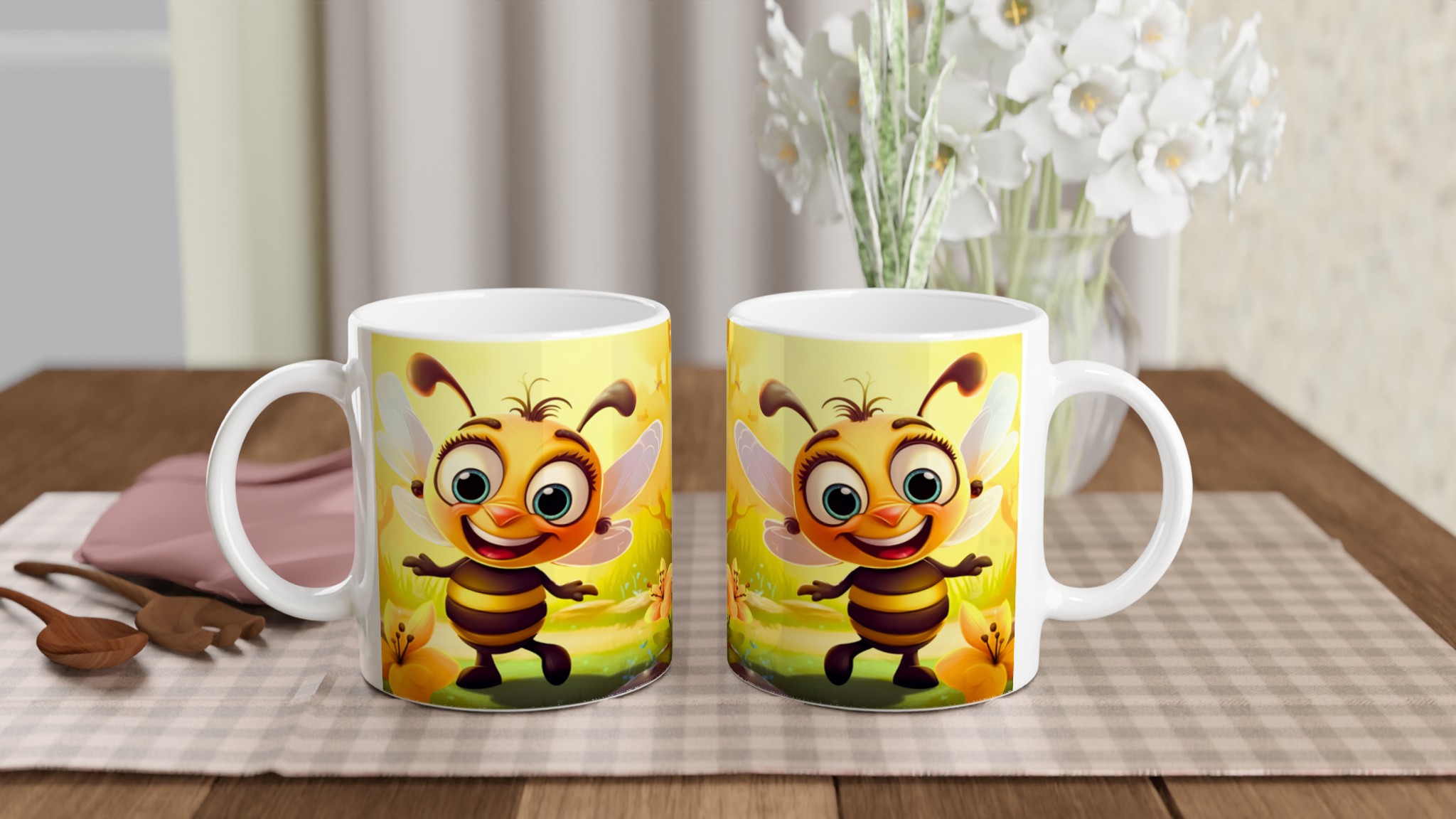 Buzzing Bee Joy – Ceramic Mug 11oz, in your choice of seven vibrant hues