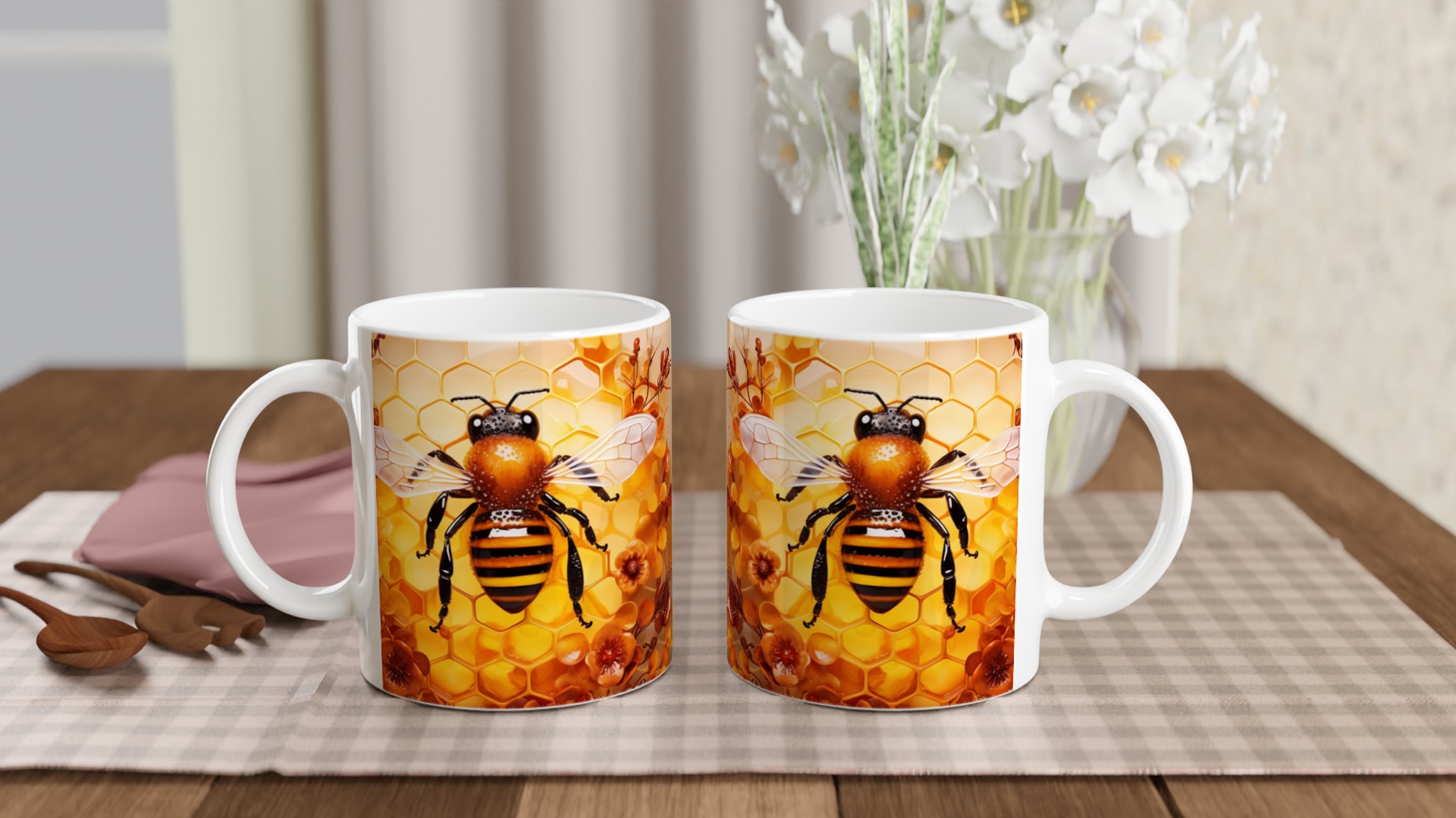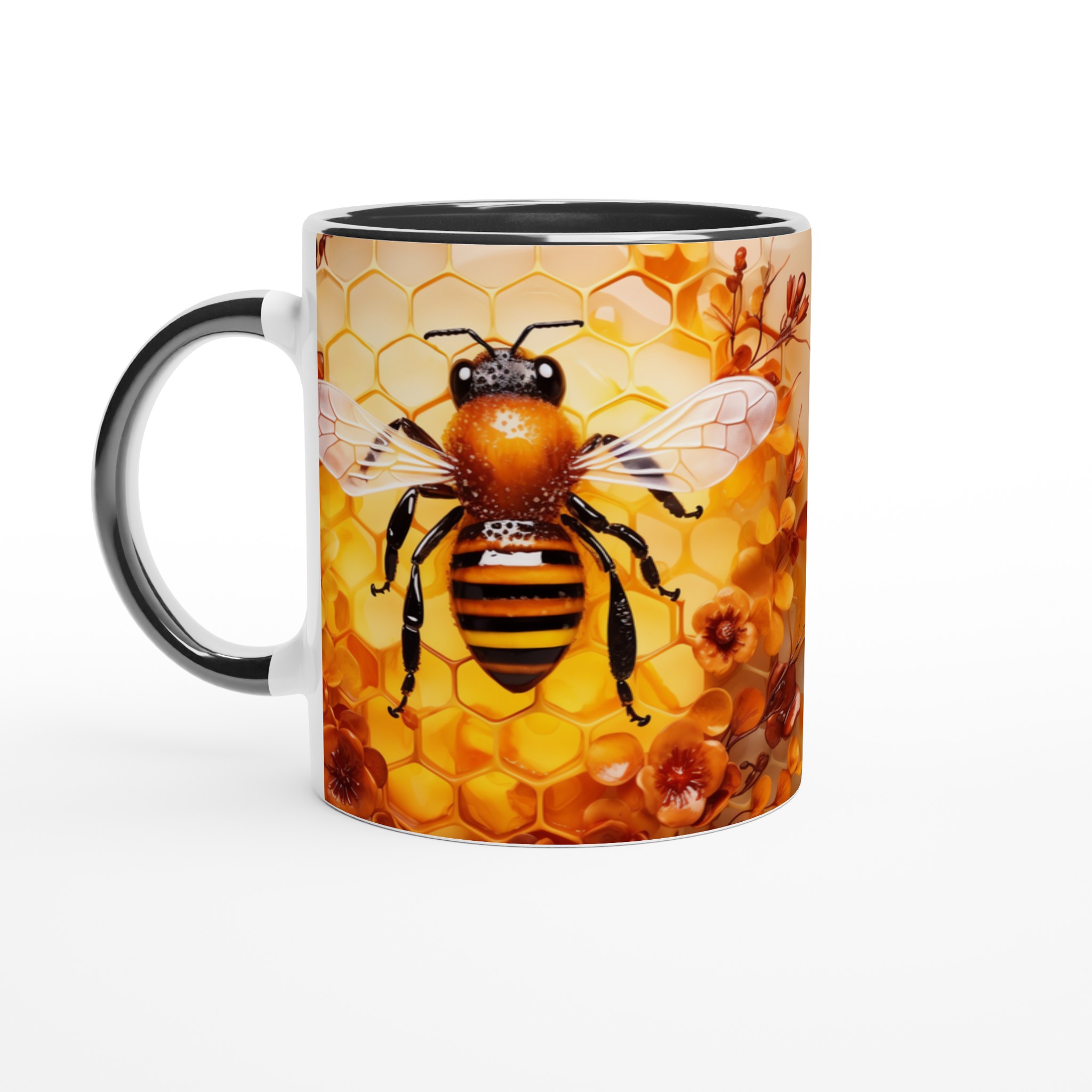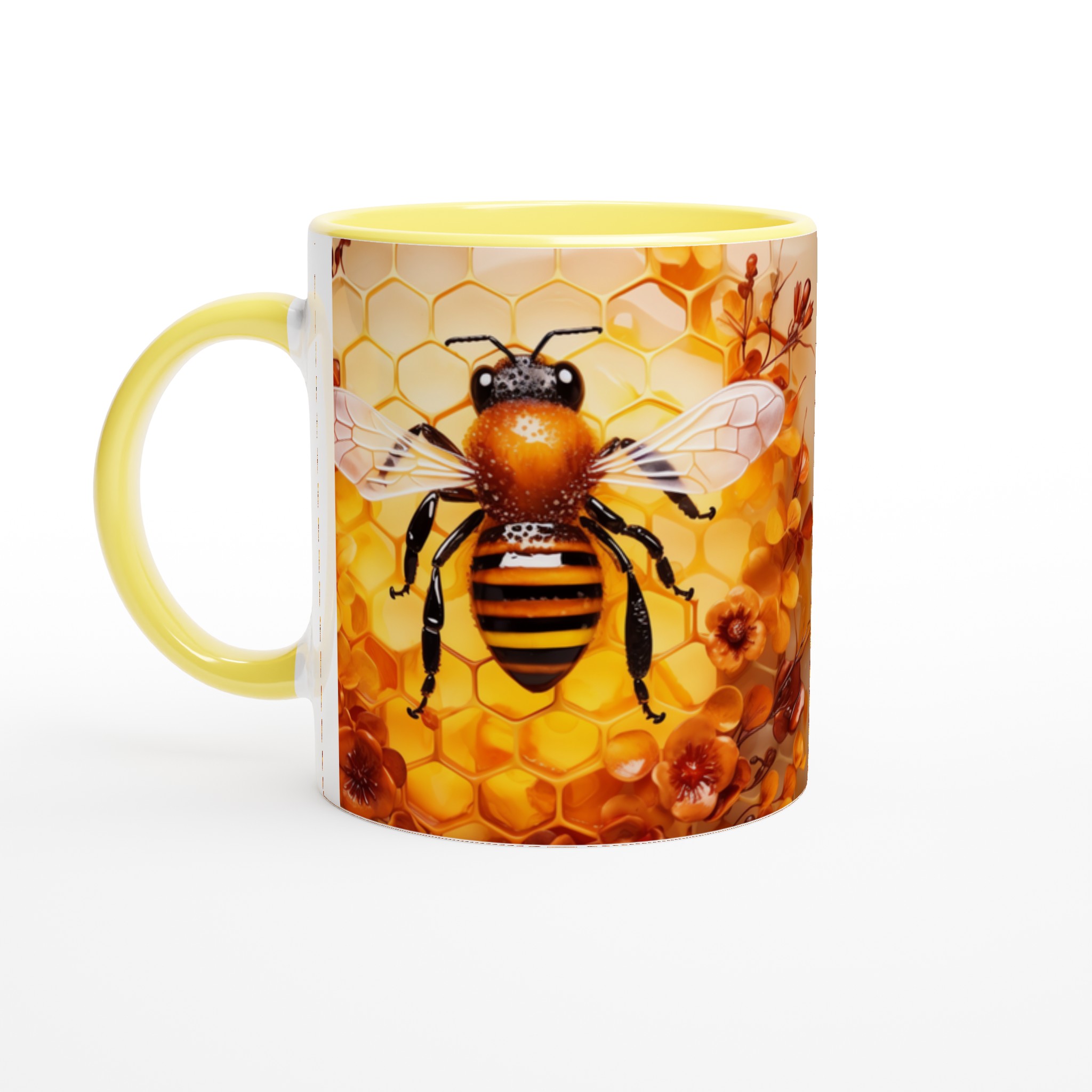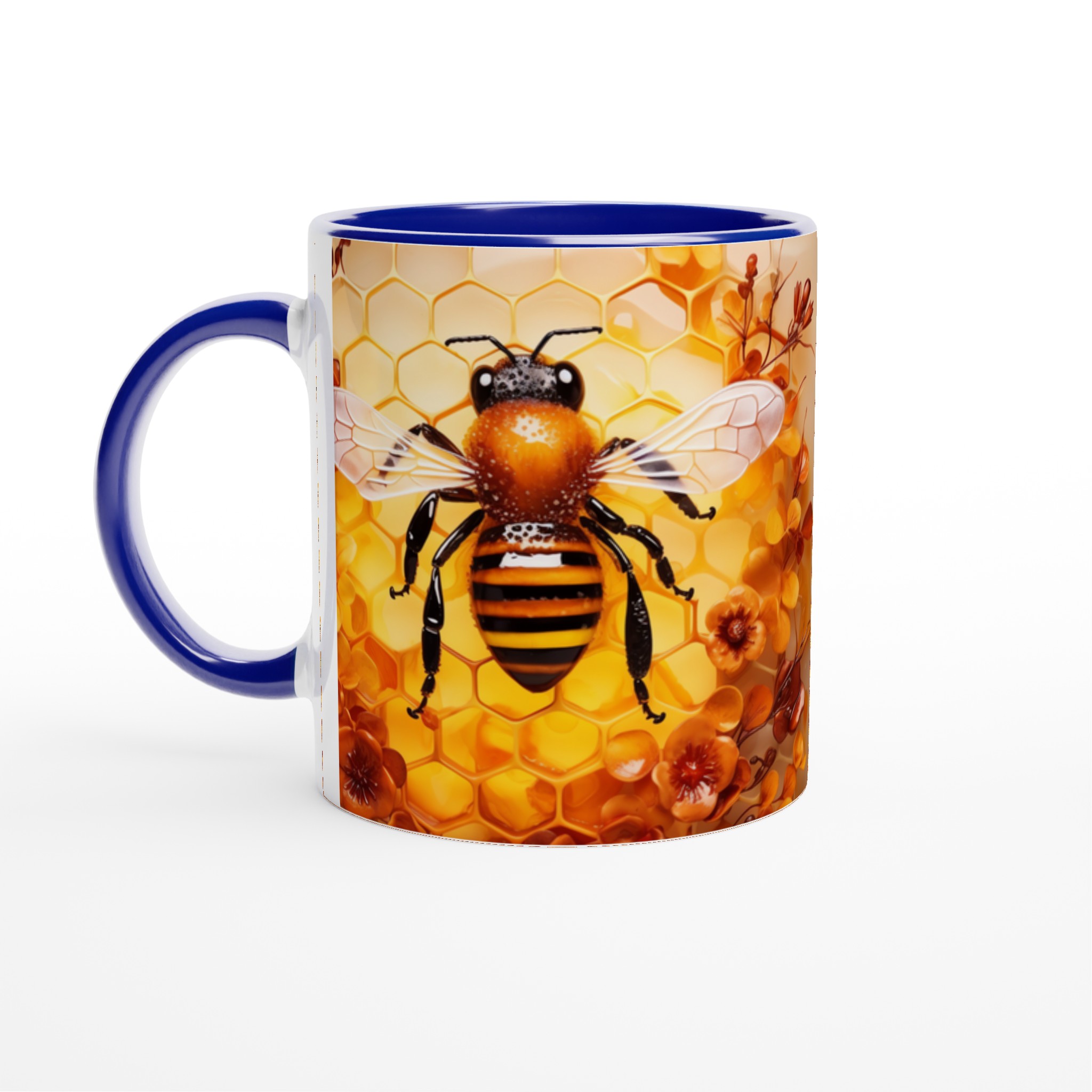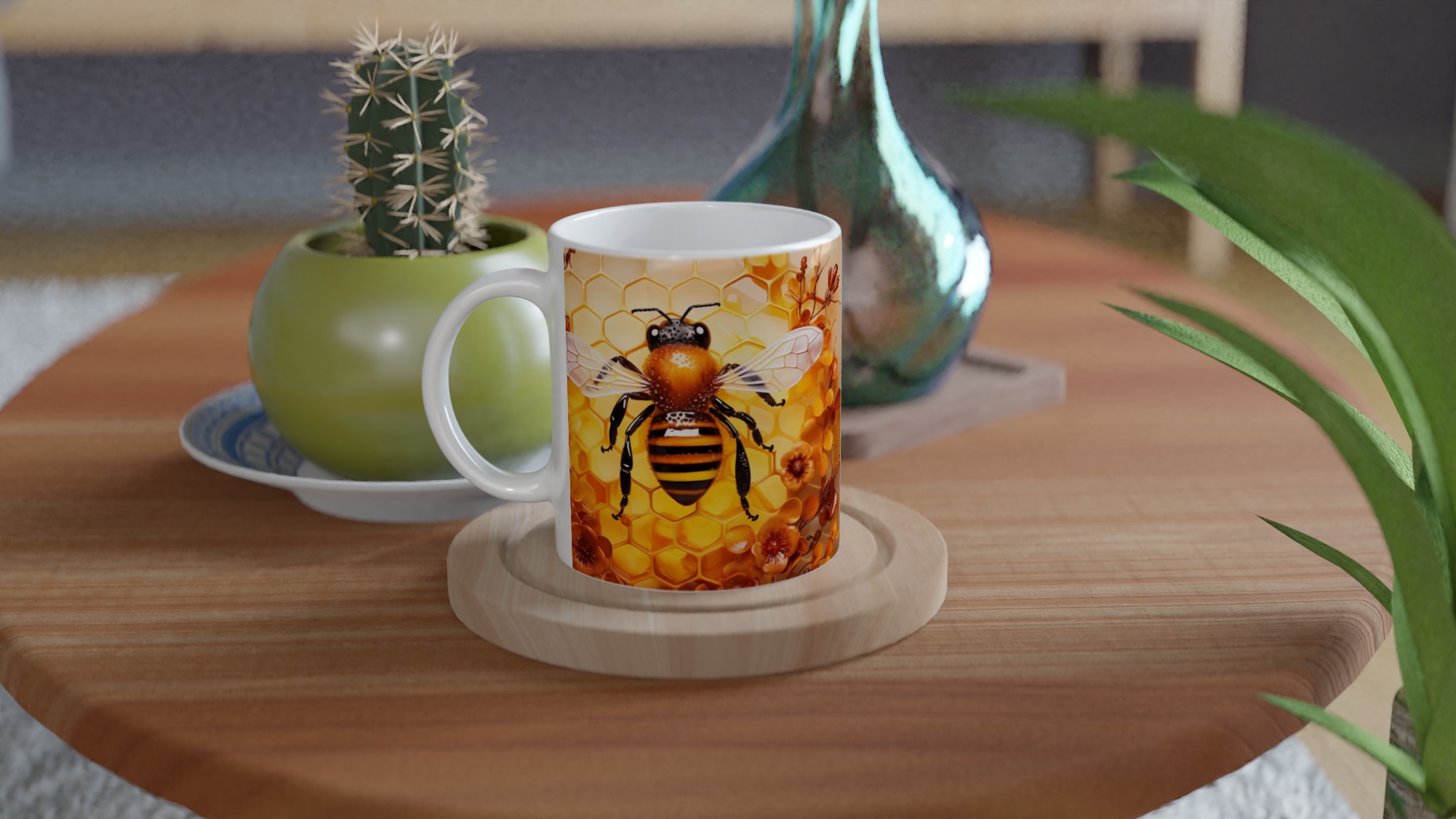 Buzzing Bee & Honeycomb Ceramic Mug – Vibrant 11oz for Nature Lovers in Your Favorite Hue