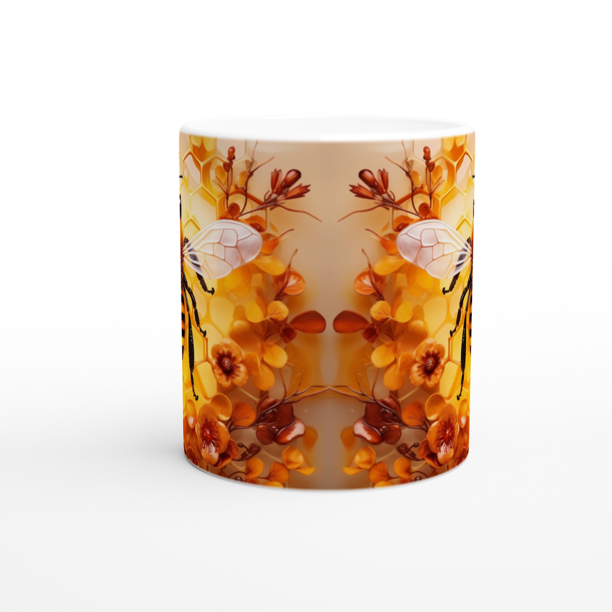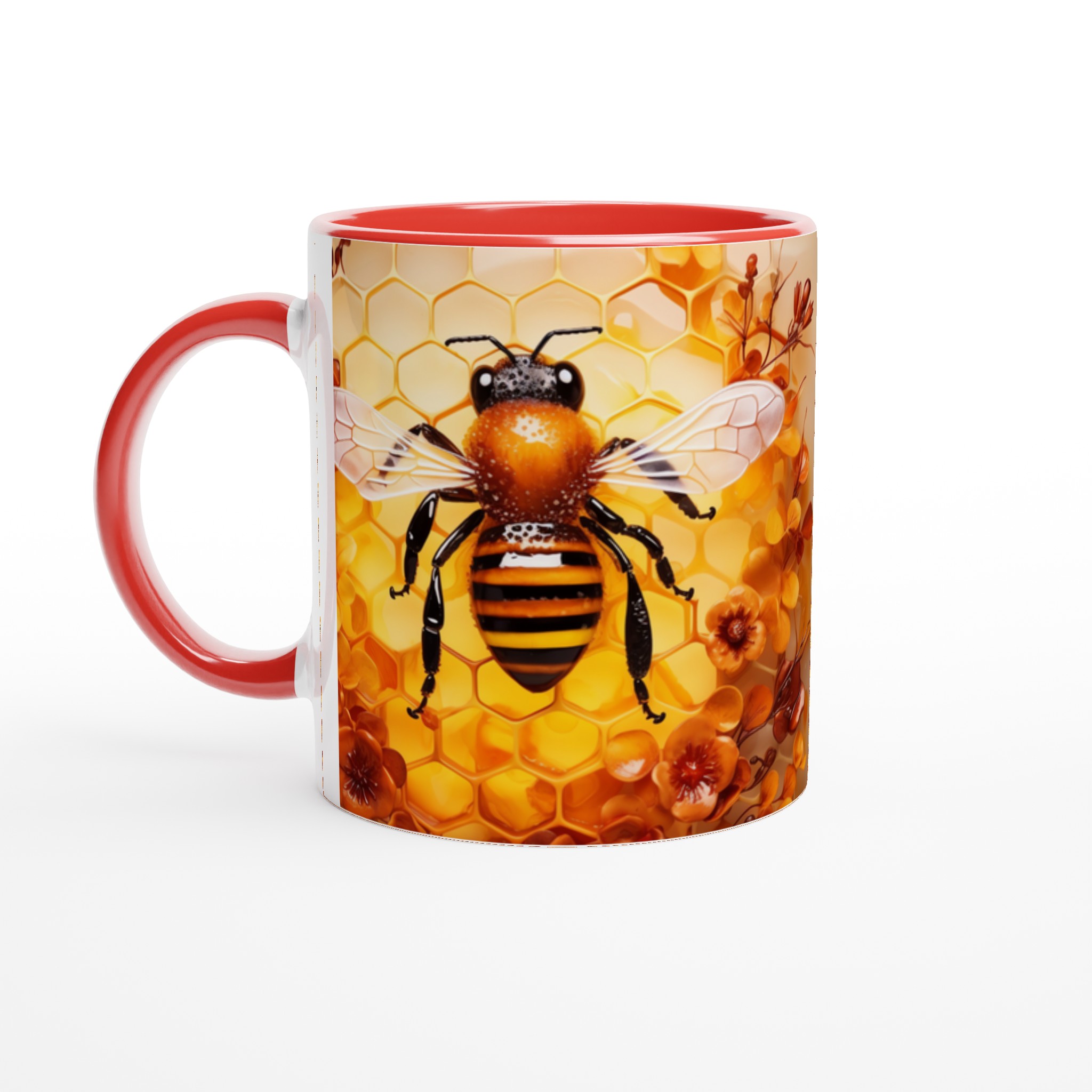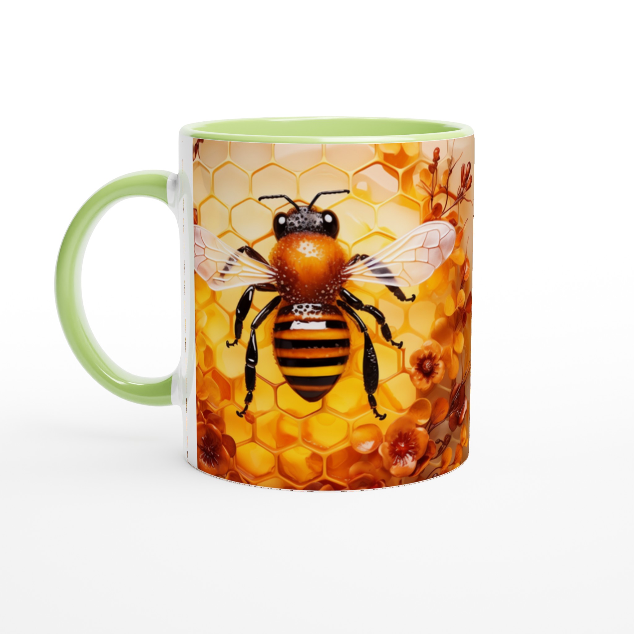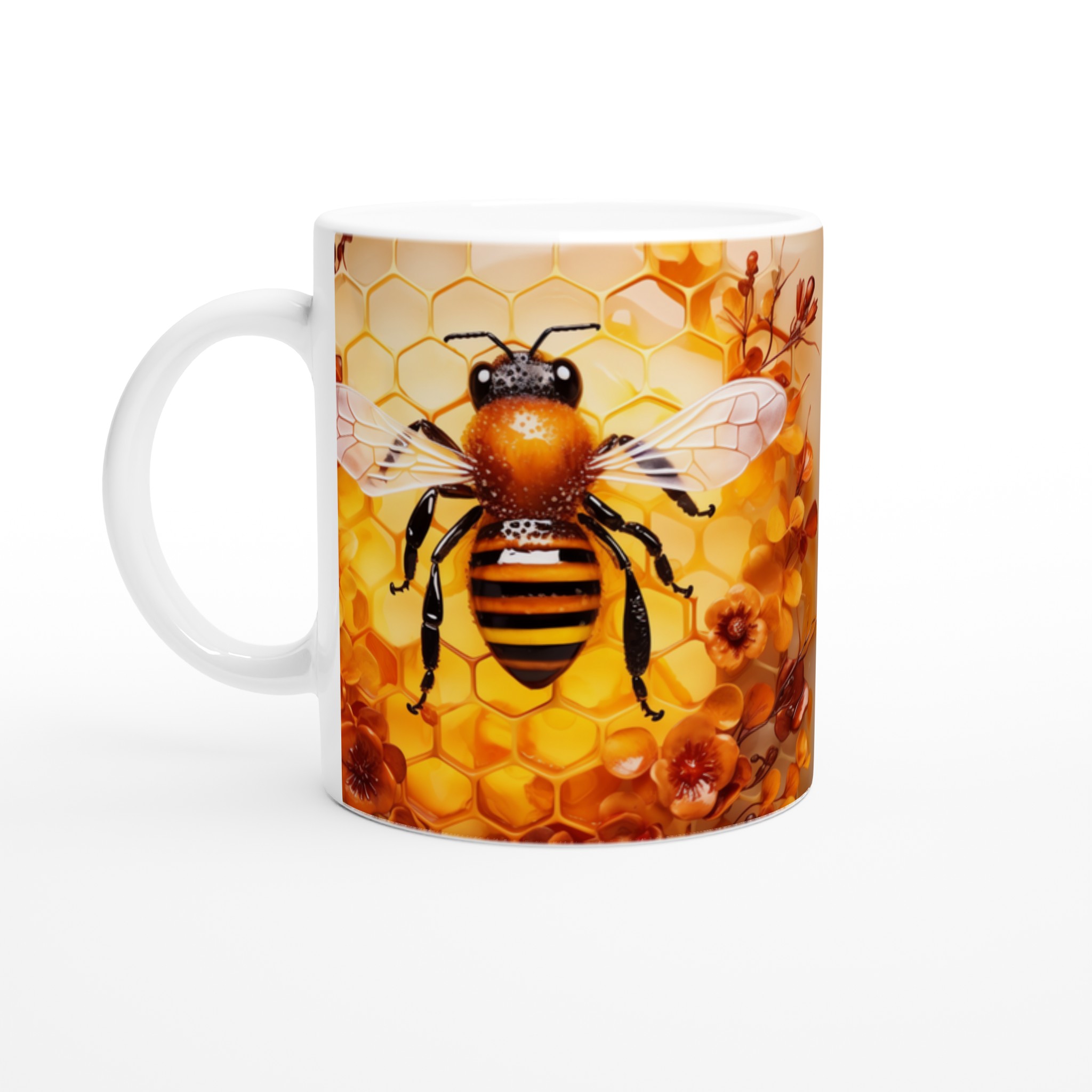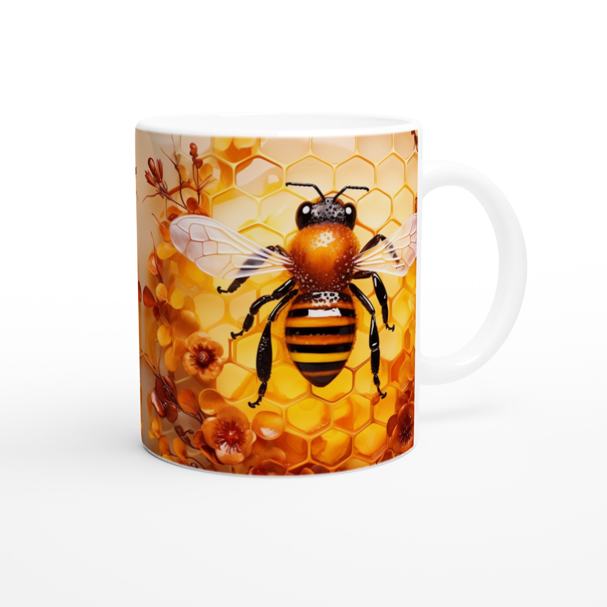 Buzzing Bee & Honeycomb Ceramic Mug – Vibrant 11oz for Nature Lovers in Your Favorite Hue