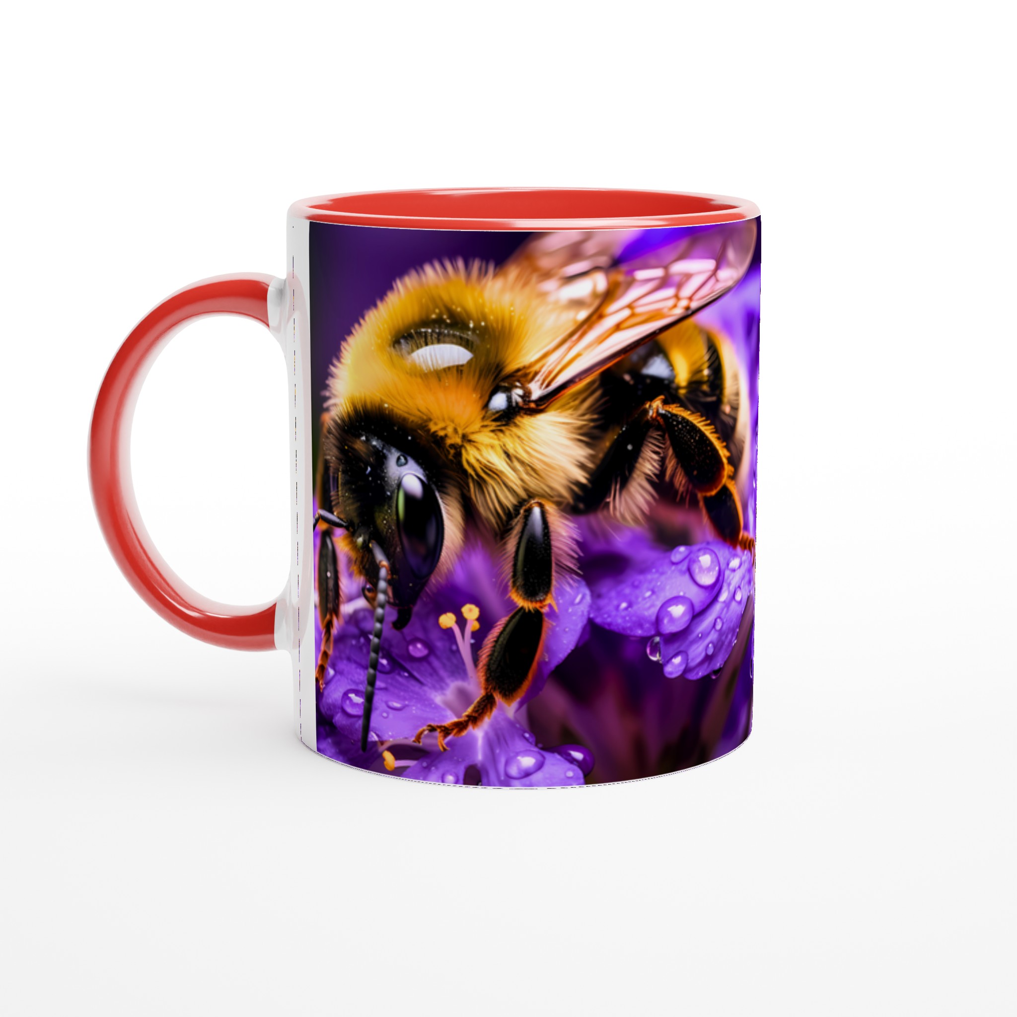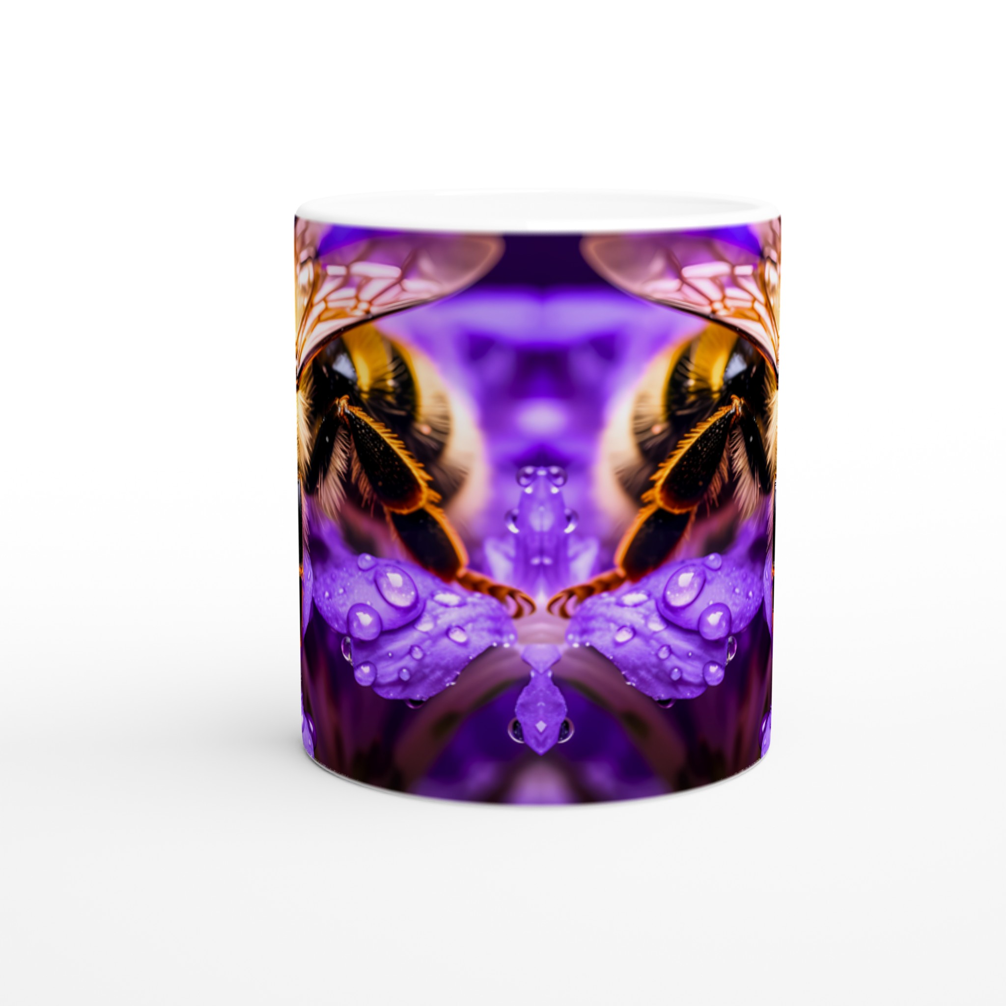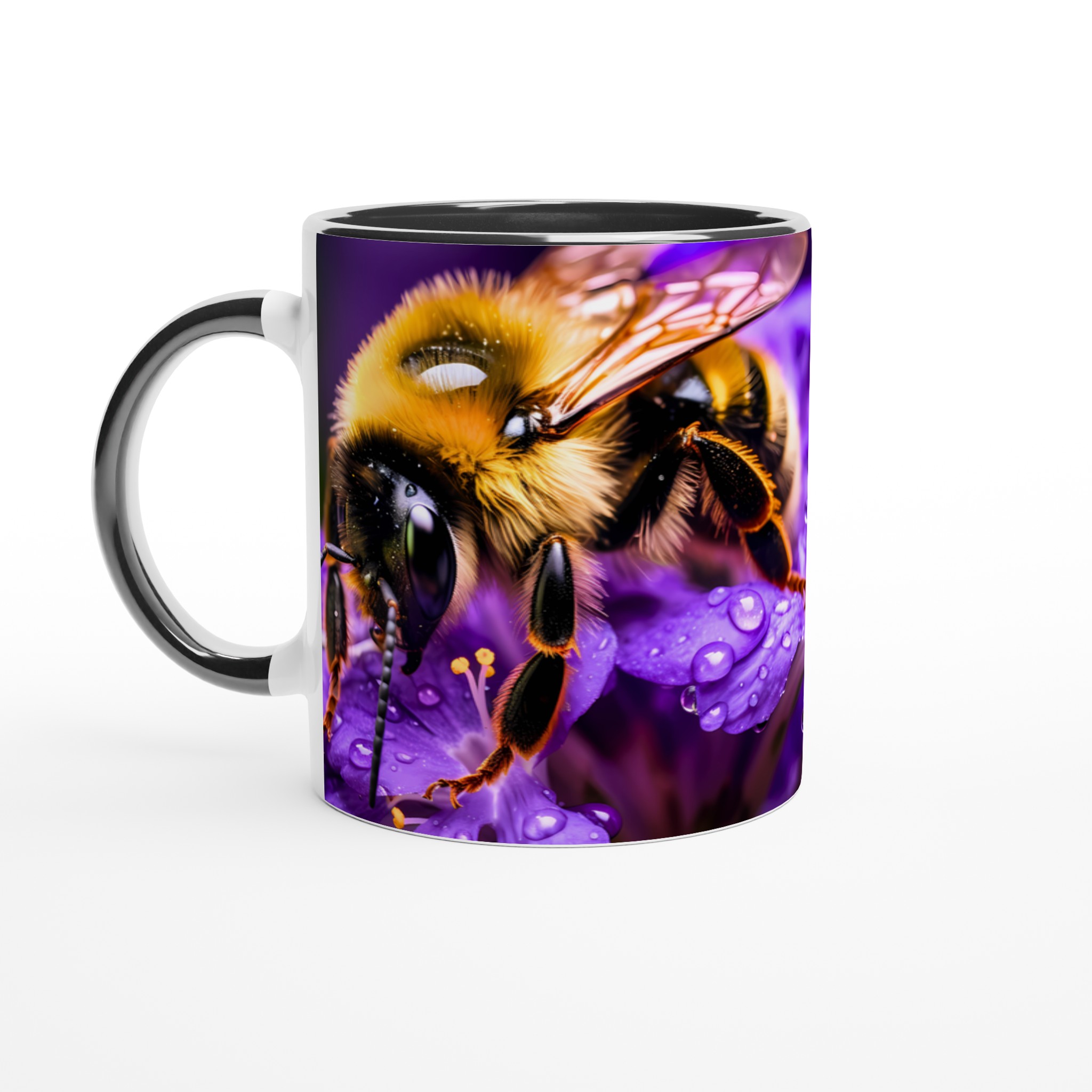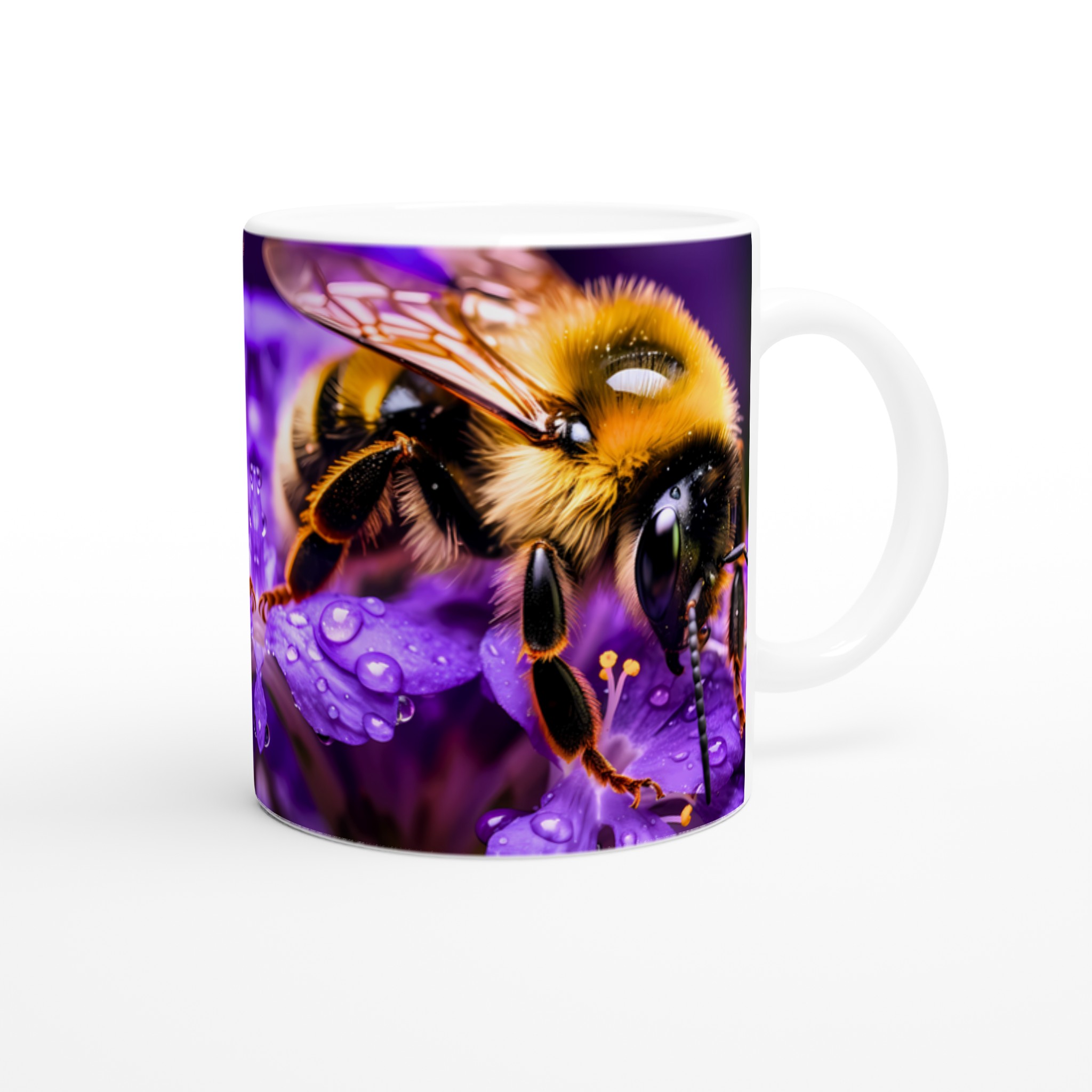 Vibrant Bee on Purple Blooms Ceramic Mug 11oz – A Pop of Nature’s Beauty in Every Sip