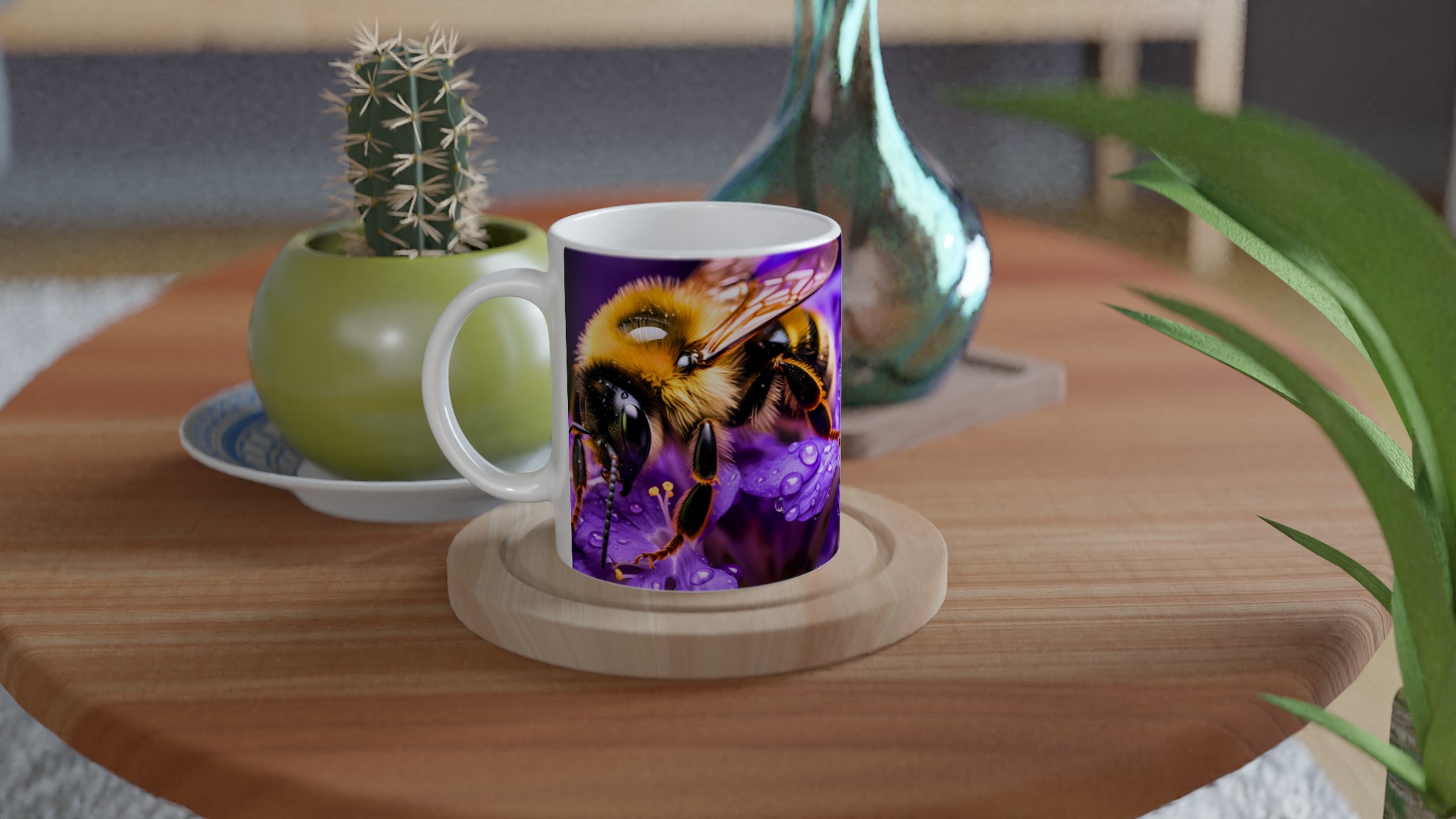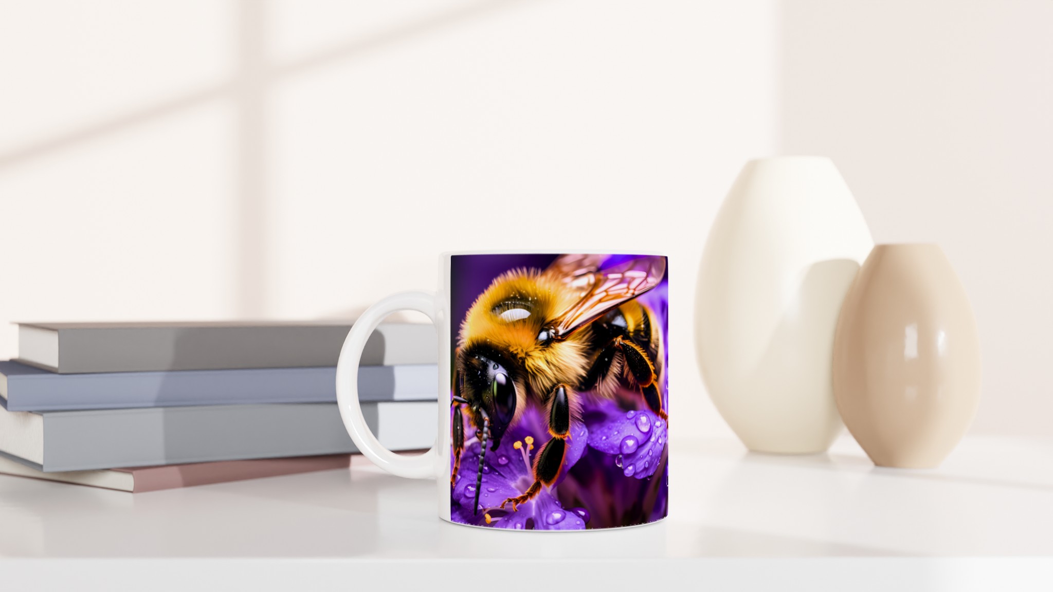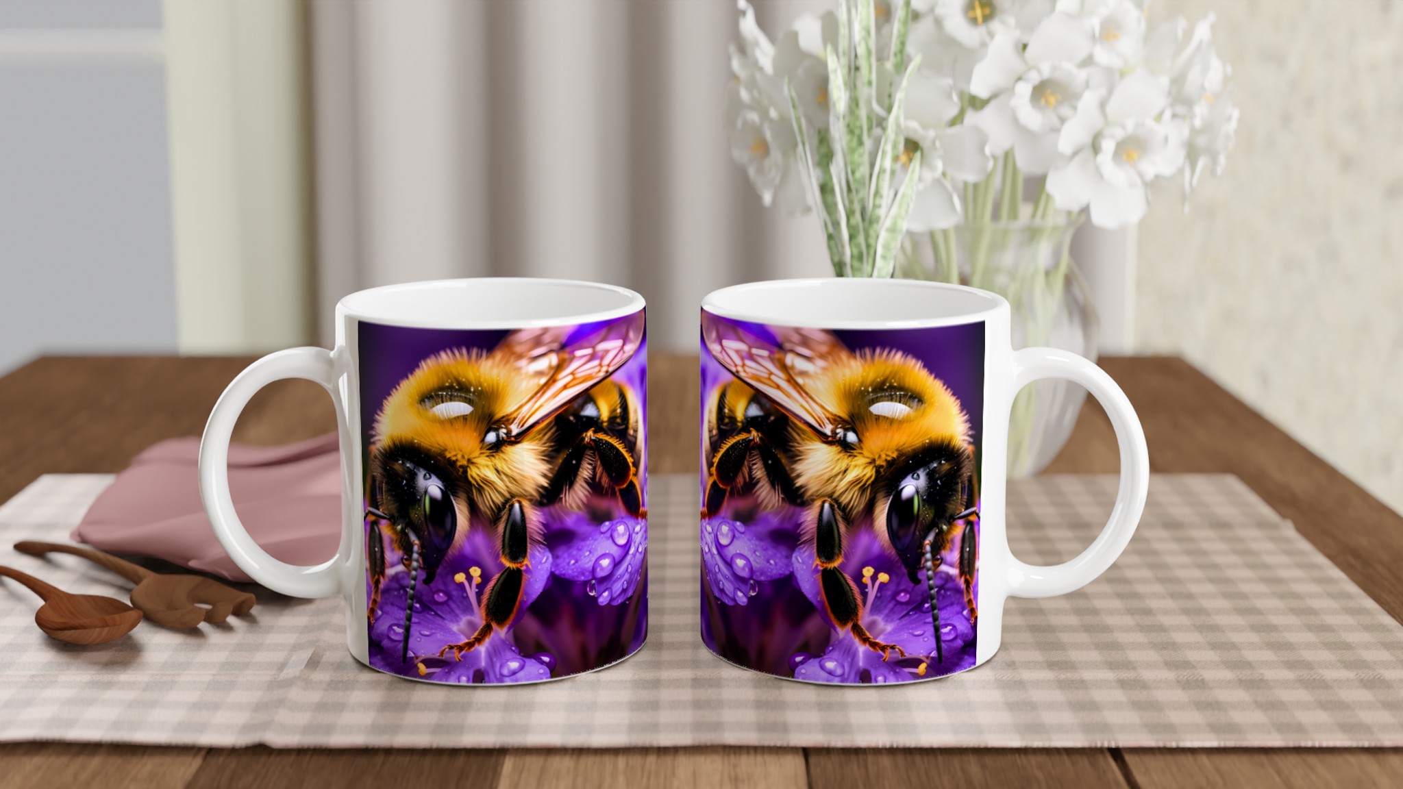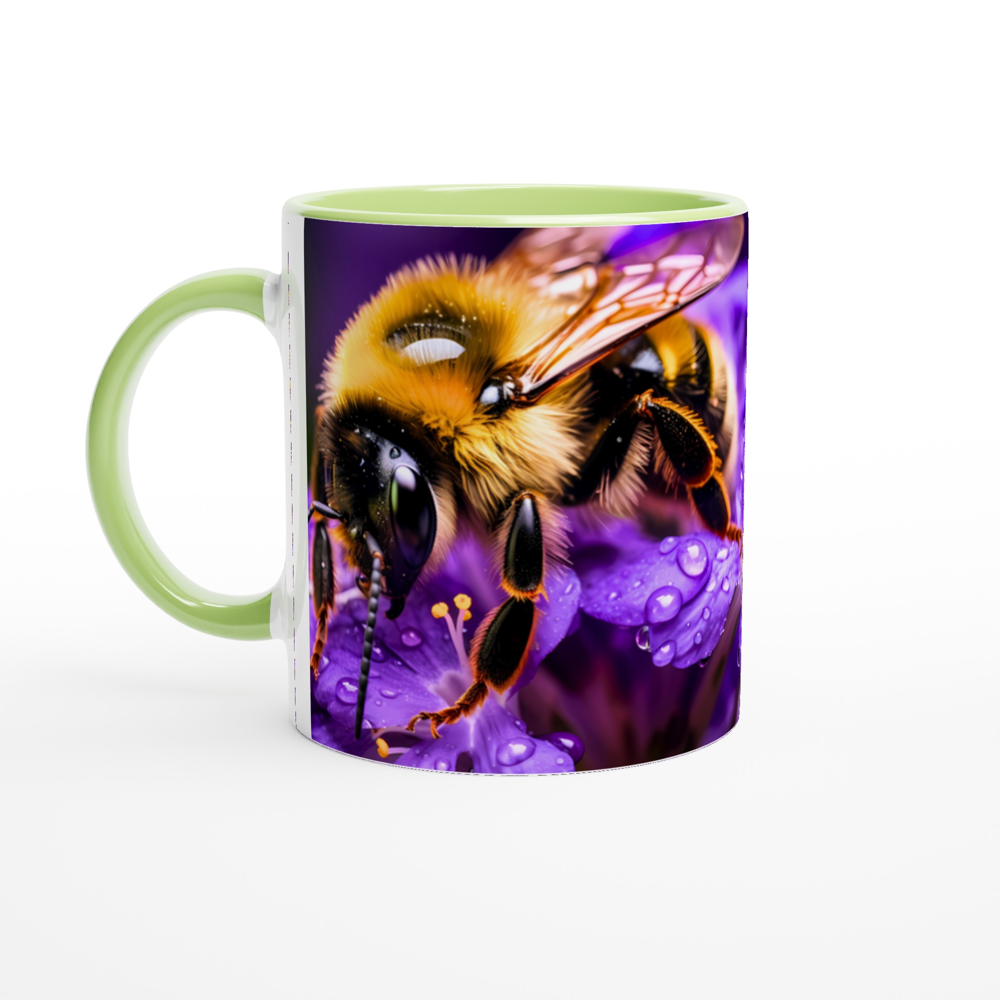 Vibrant Bee on Purple Blooms Ceramic Mug 11oz – A Pop of Nature’s Beauty in Every Sip