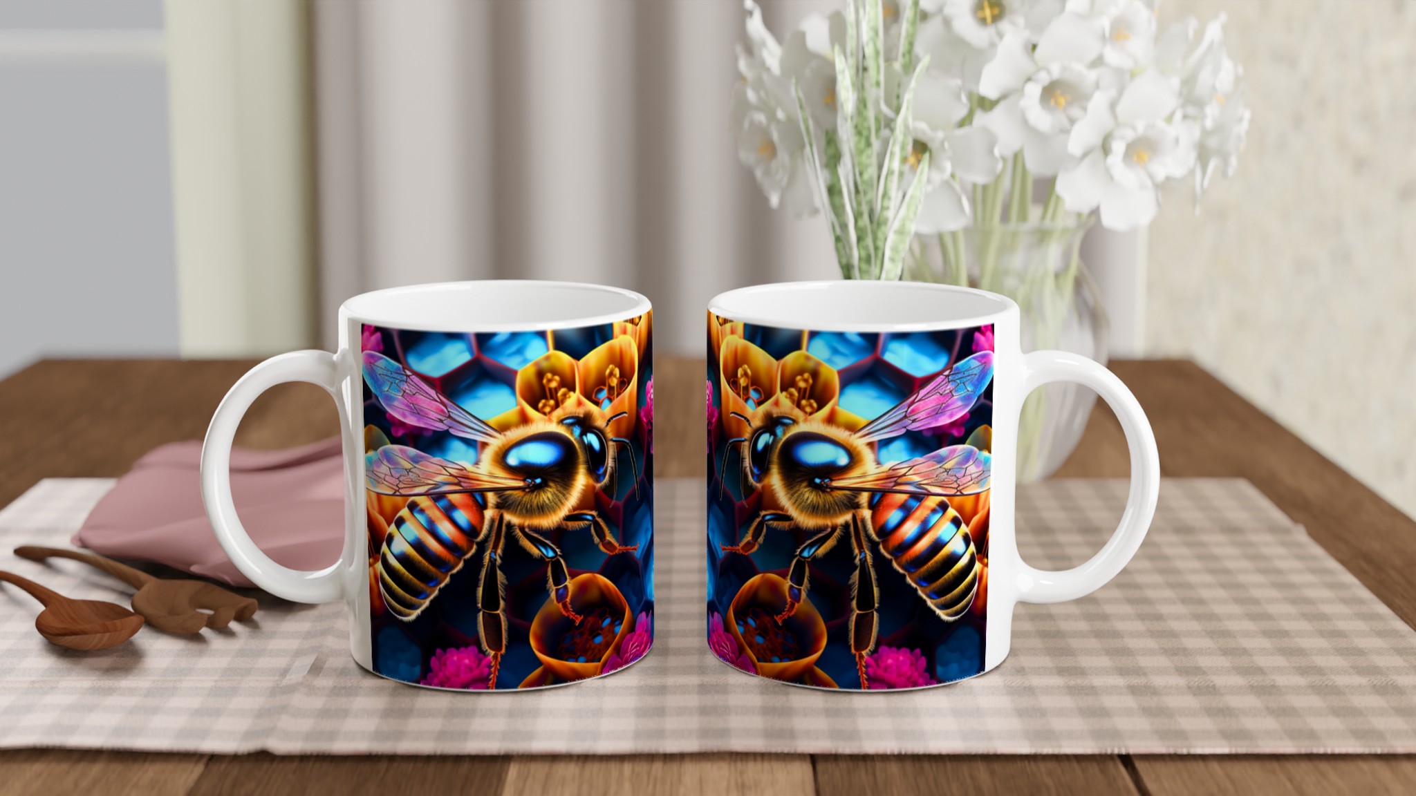 Vibrant Neon Honeybee Ceramic Mug 11oz – Choose Your Color