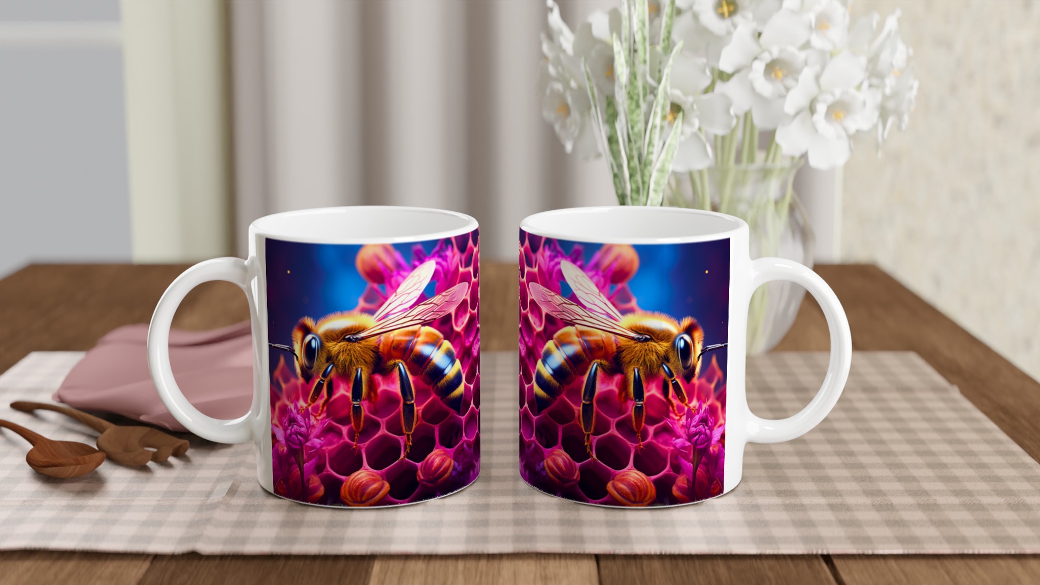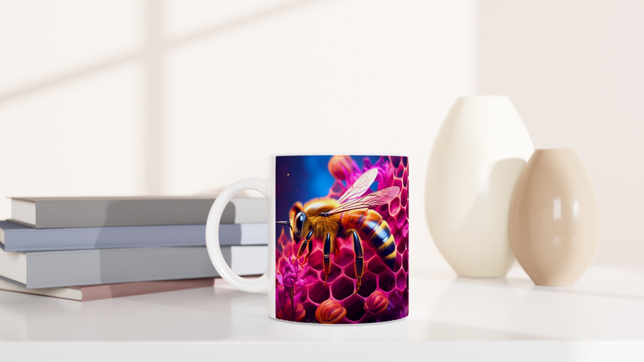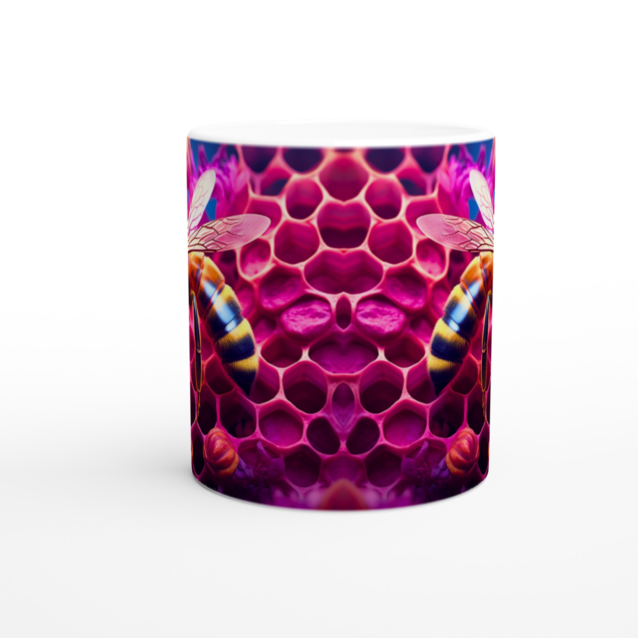 Cosmic Beehive – Vivid Ceramic Mug 11oz, in your choice of seven vibrant shades
