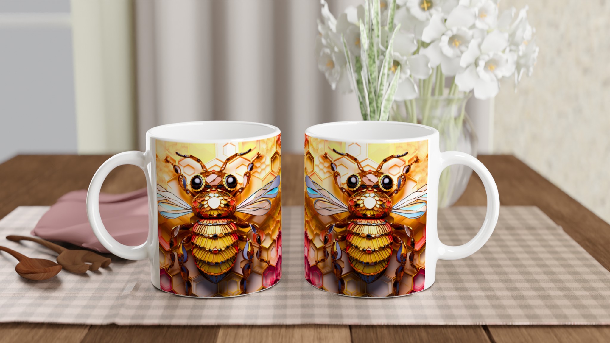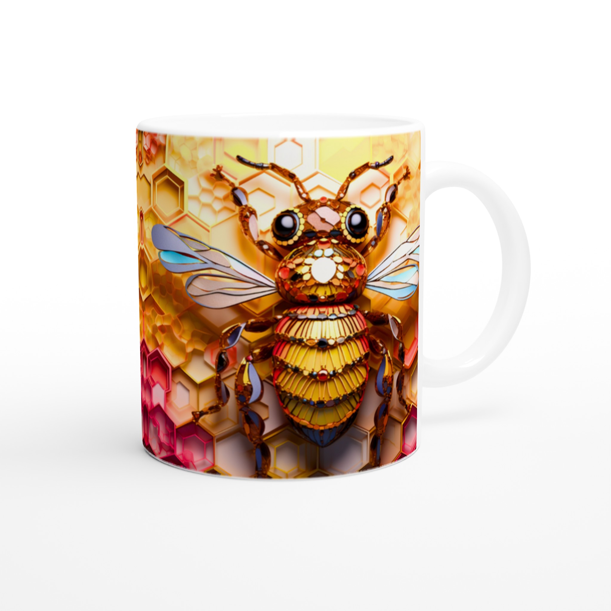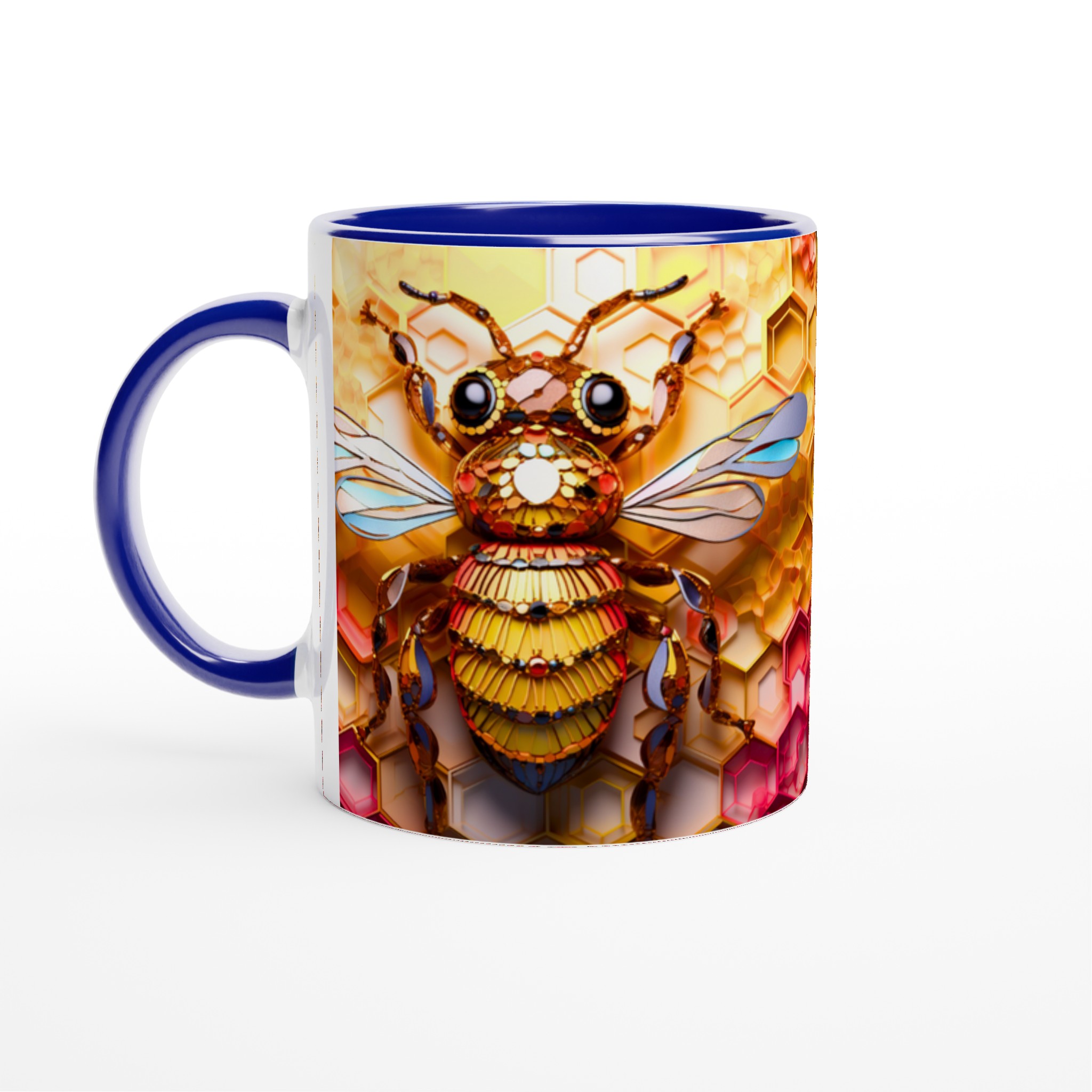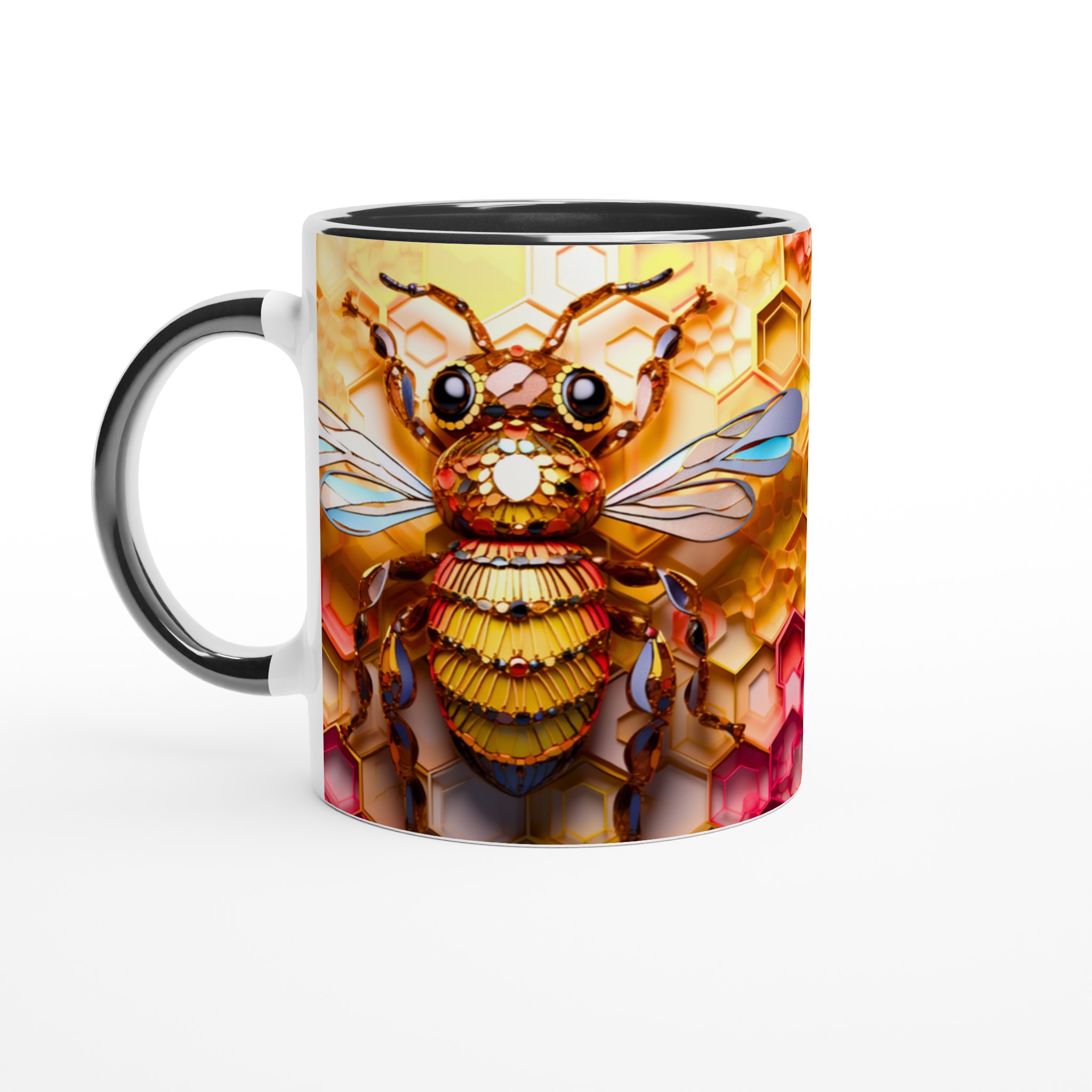 Golden Mosaic Bee Ceramic Mug 11oz – Buzzing with Color & Style, in Your Choice of 7 Hues