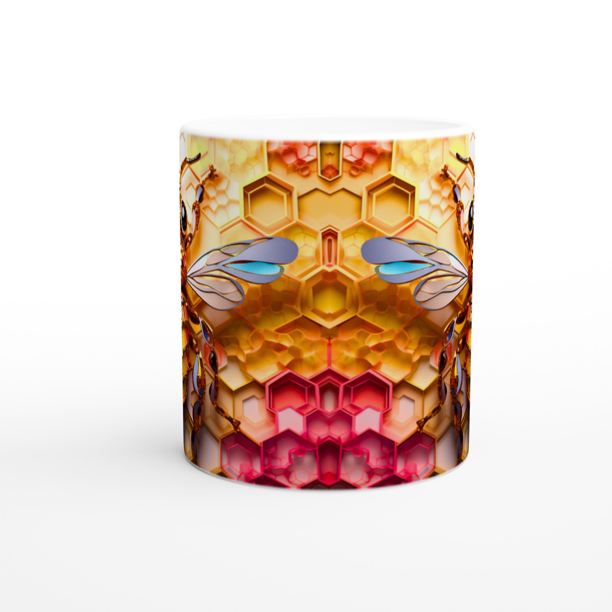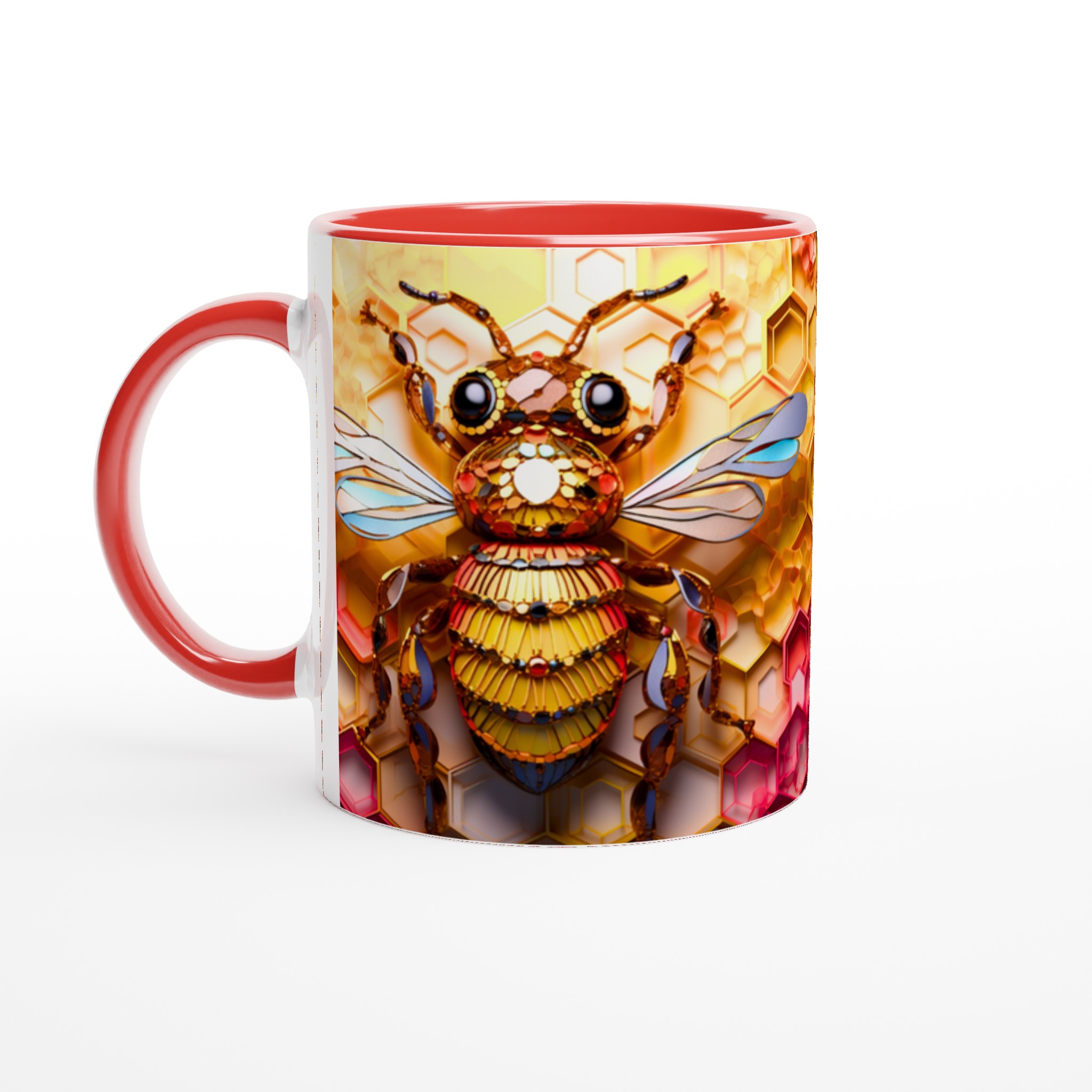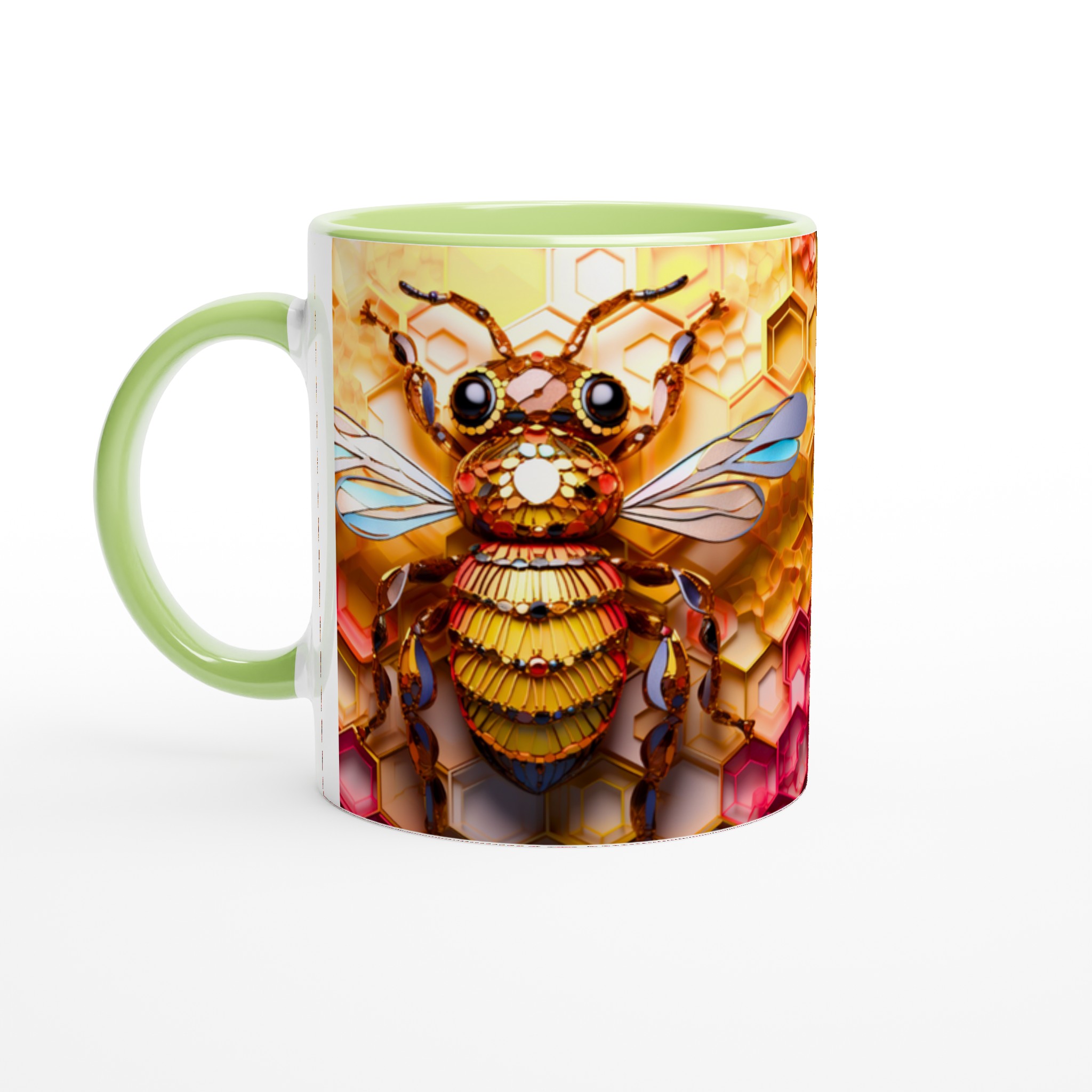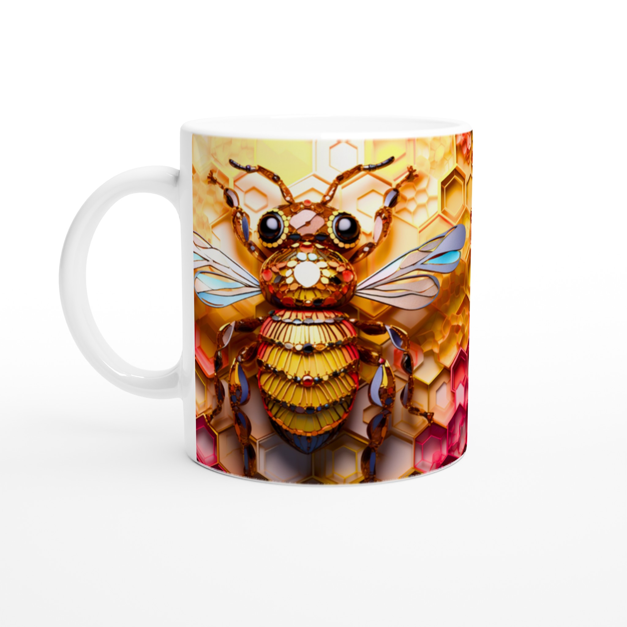 Golden Mosaic Bee Ceramic Mug 11oz – Buzzing with Color & Style, in Your Choice of 7 Hues