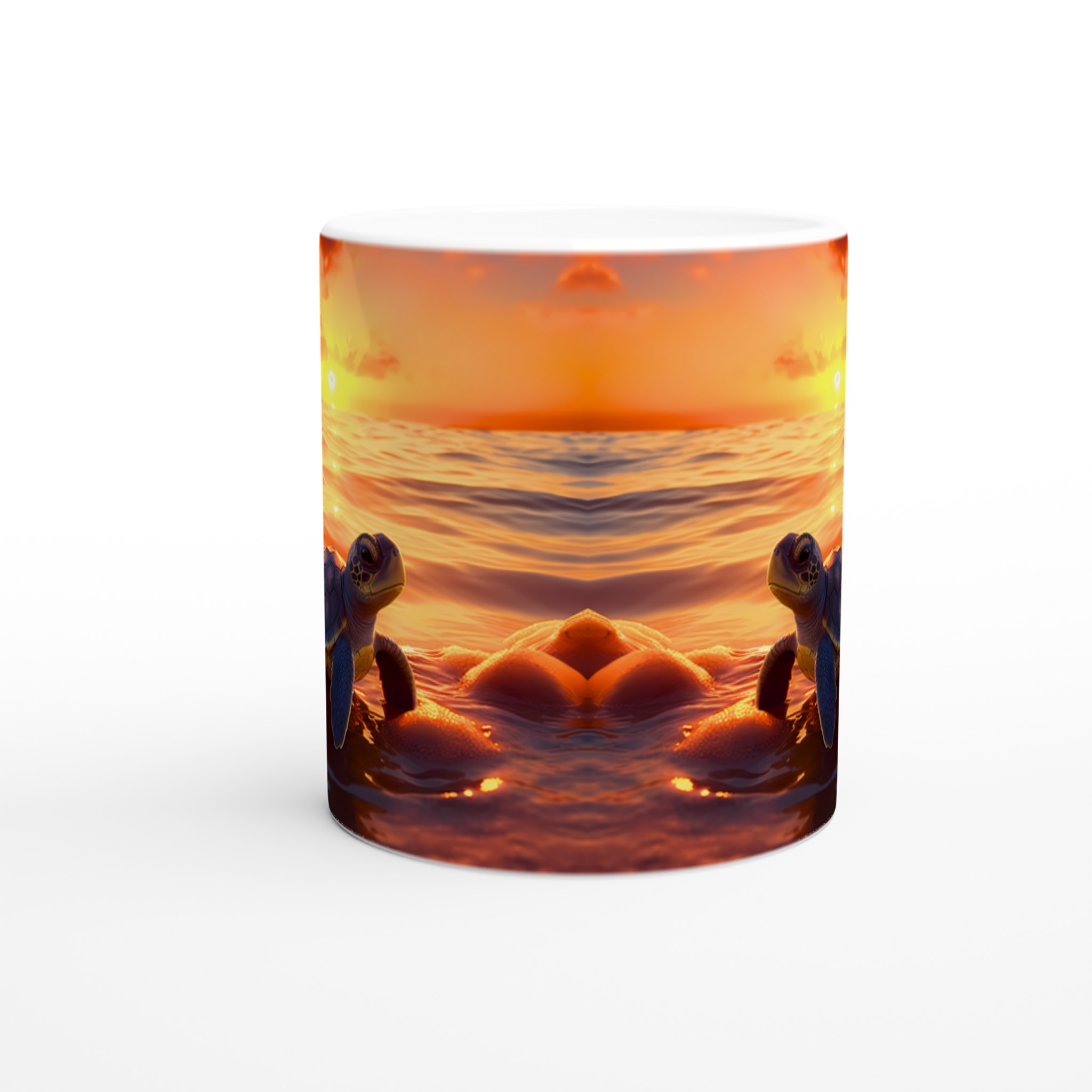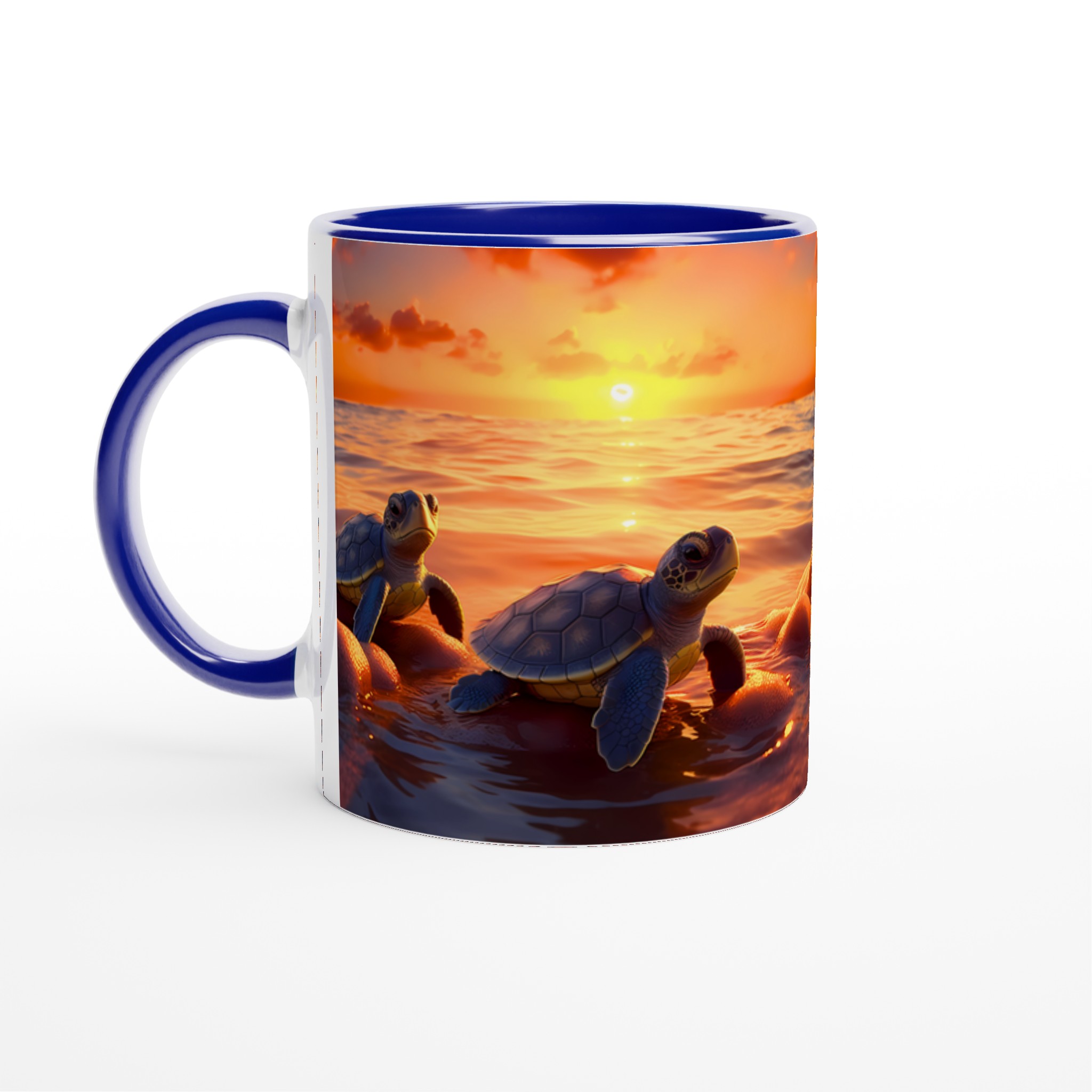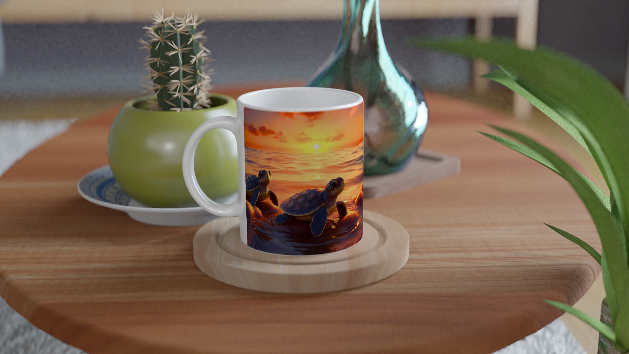 Ocean Sunset Baby Sea Turtle Mug – 11oz Ceramic Mug in Your Choice of Seven Vibrant Hues