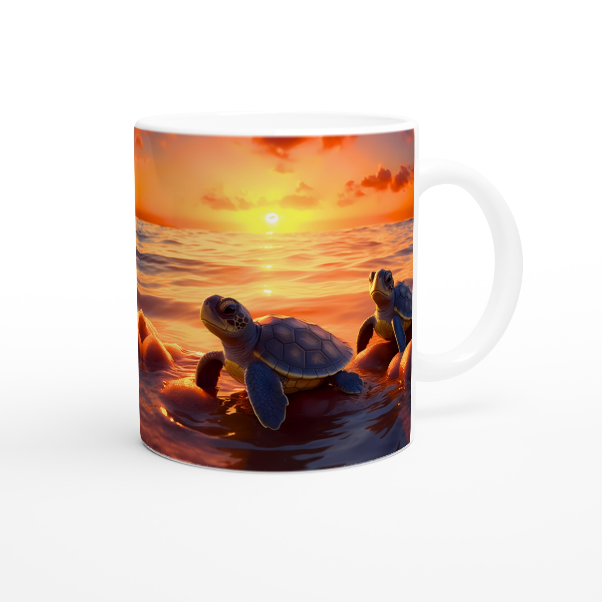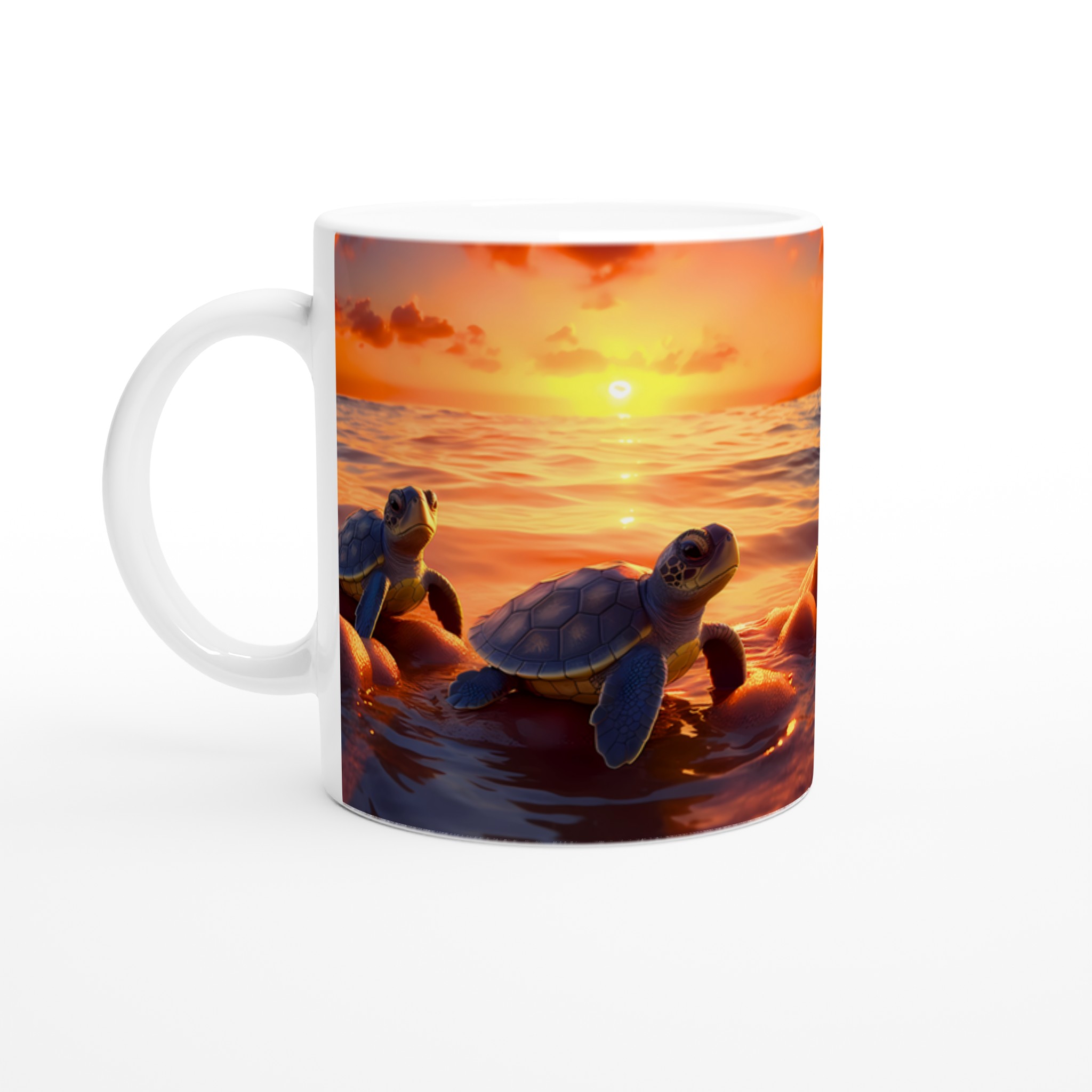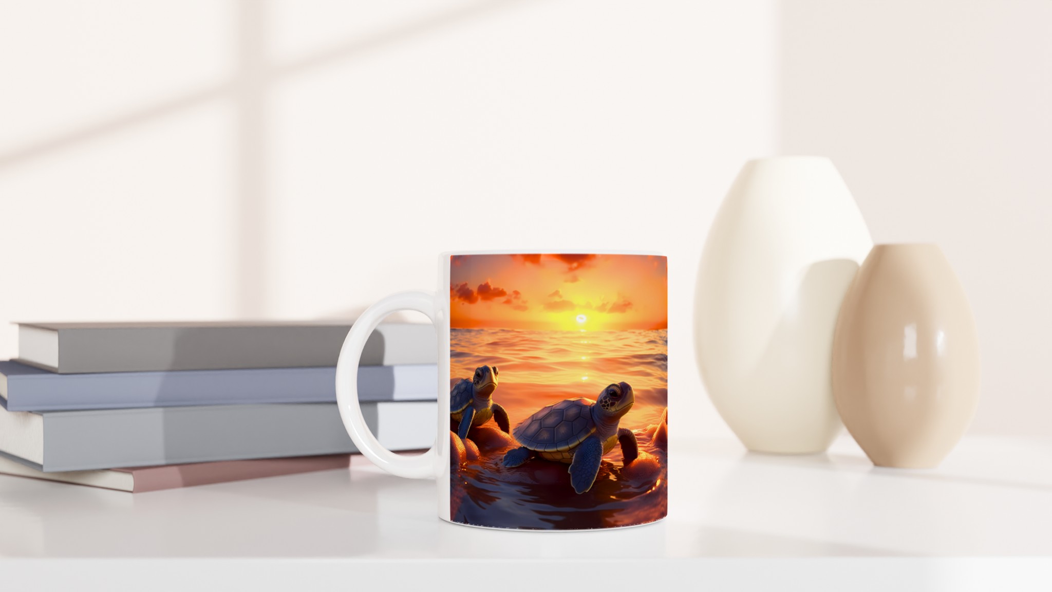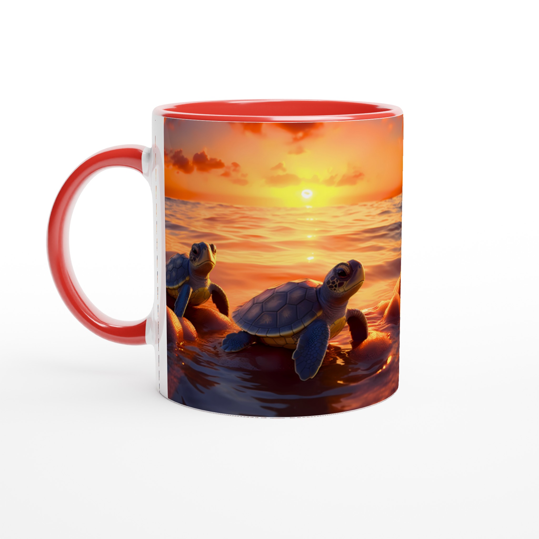 Ocean Sunset Baby Sea Turtle Mug – 11oz Ceramic Mug in Your Choice of Seven Vibrant Hues
