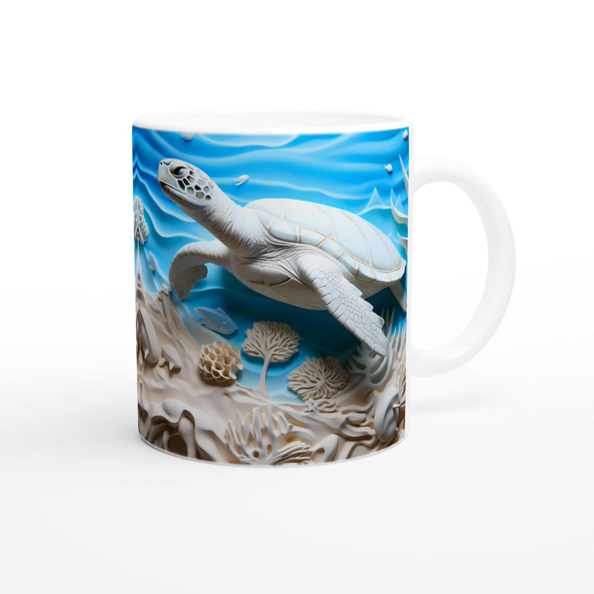 Oceanic Dream – White Ceramic Mug 11oz, Inspired by the Deep Blue Sea