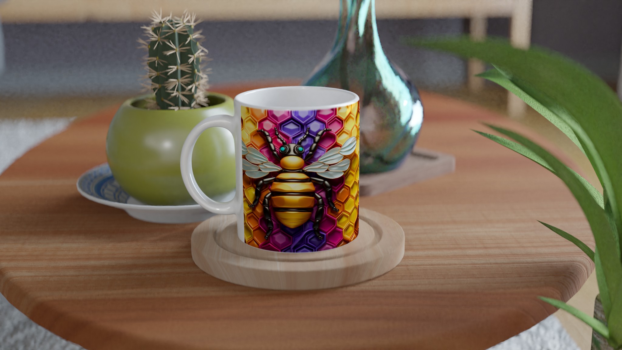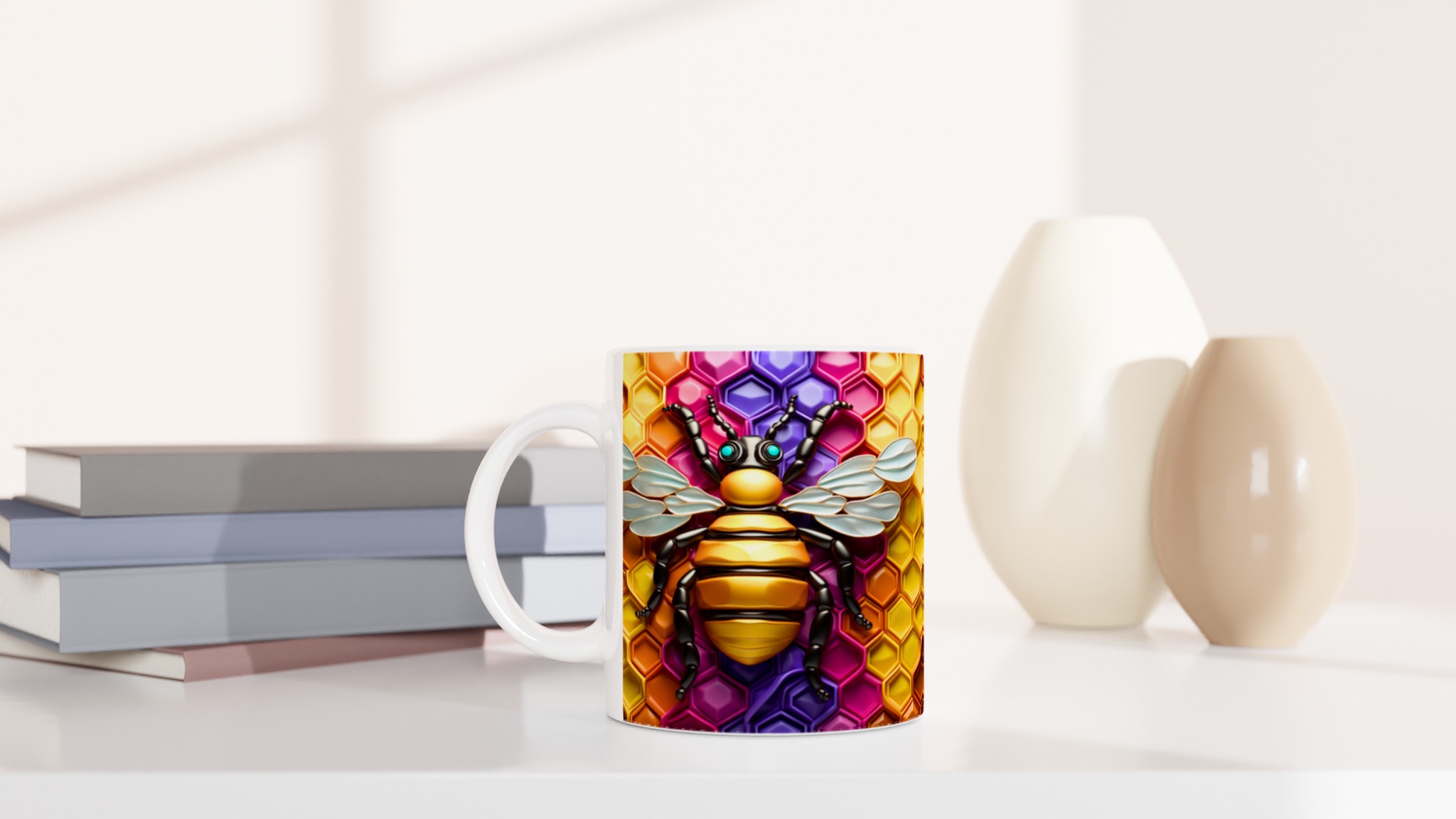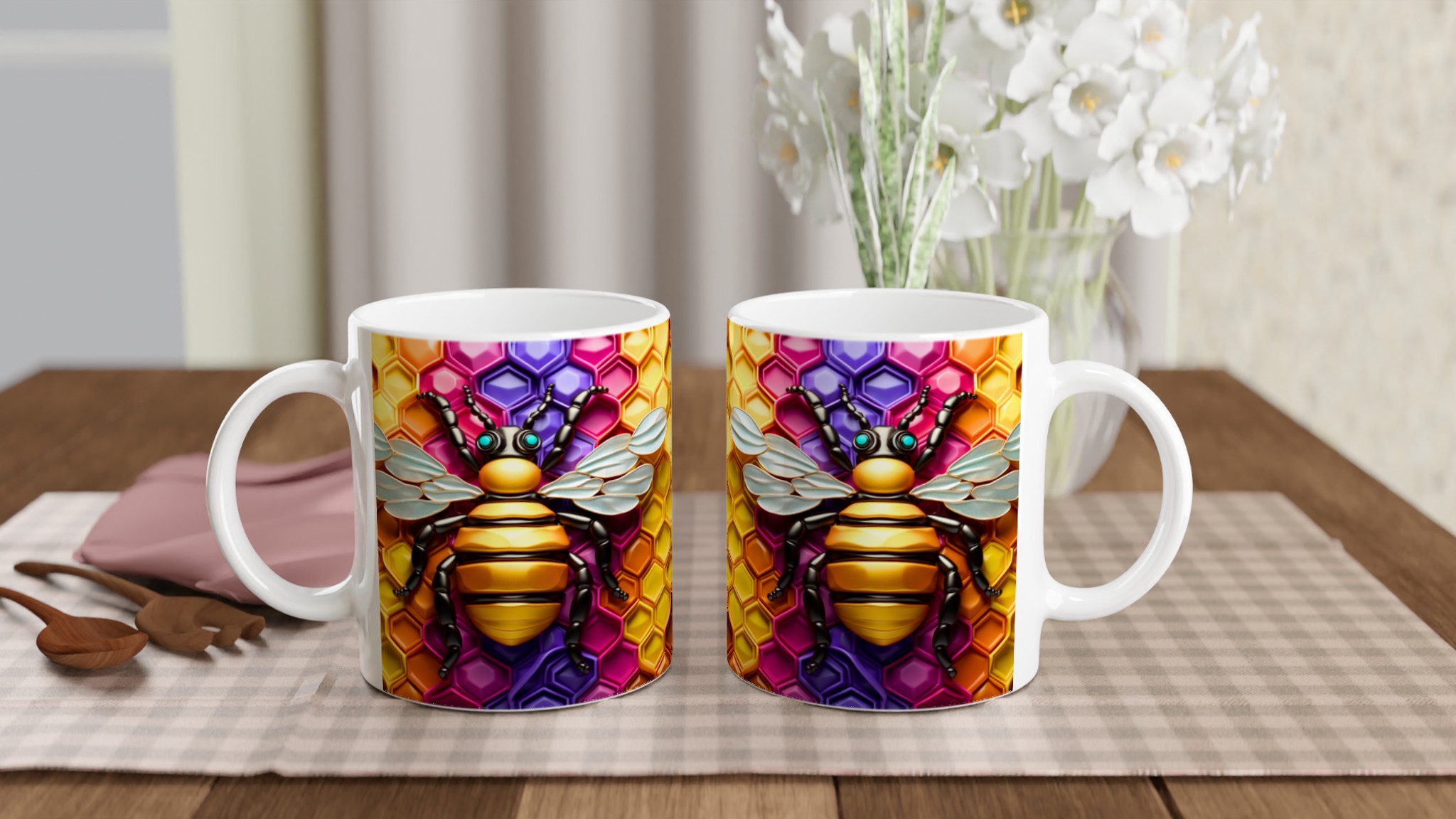 Buzzing Beehive Delight – Vibrant Ceramic Mug 11oz in Seven Colors