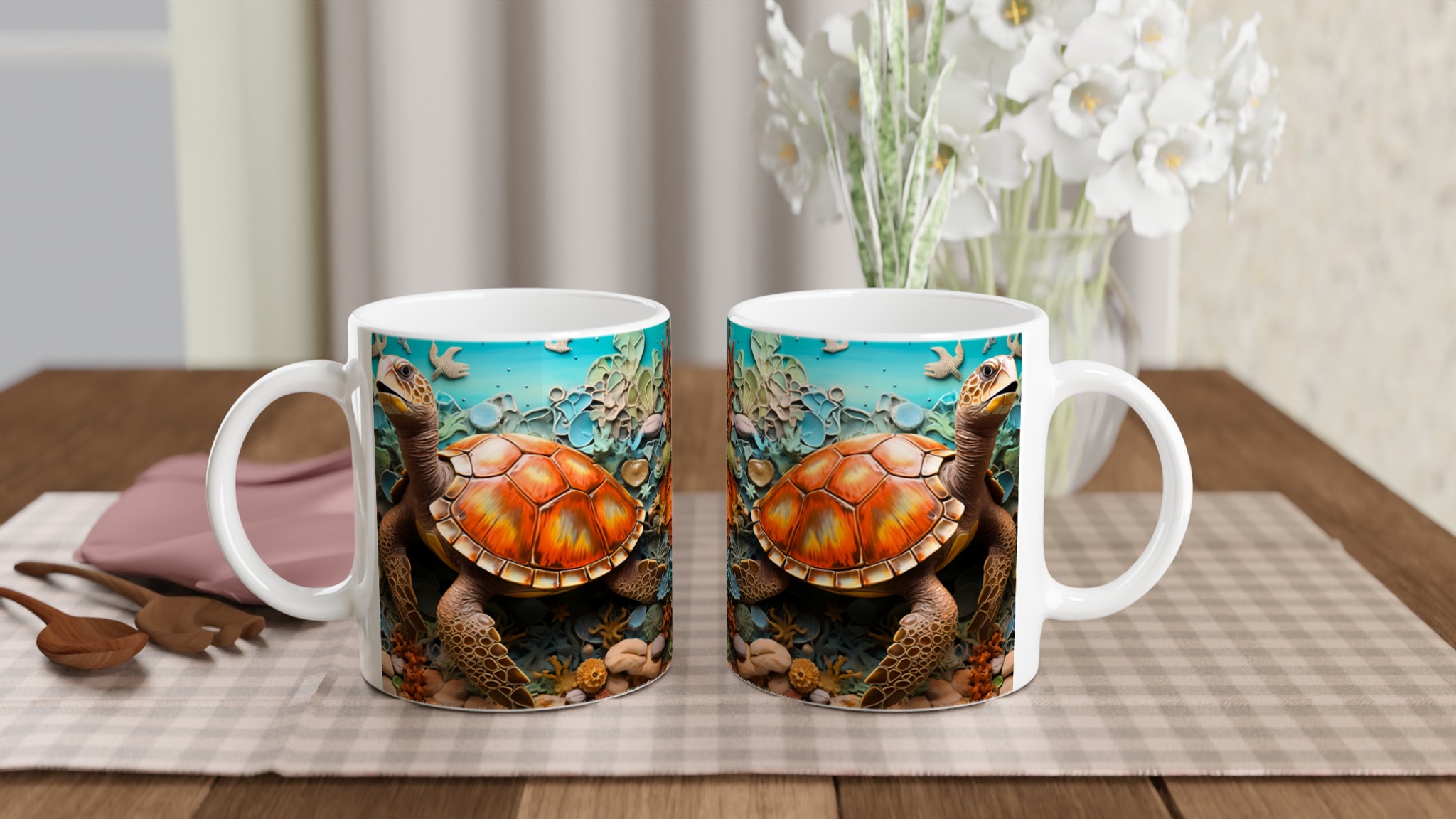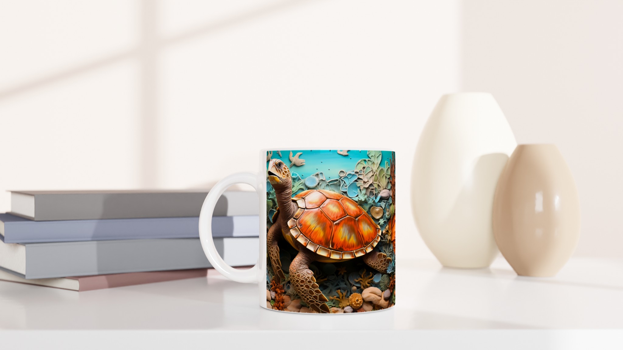Oceanic Dream – Sea Turtle Ceramic Mug 11oz, in your choice of seven vibrant shades