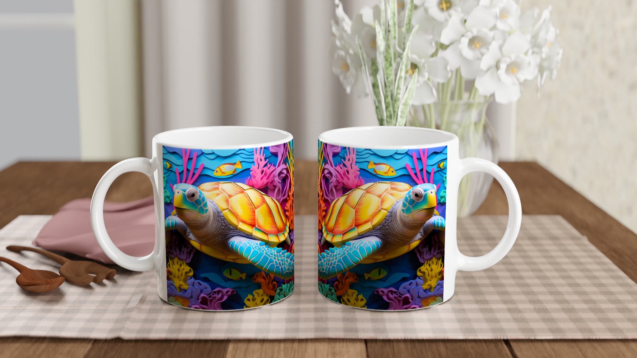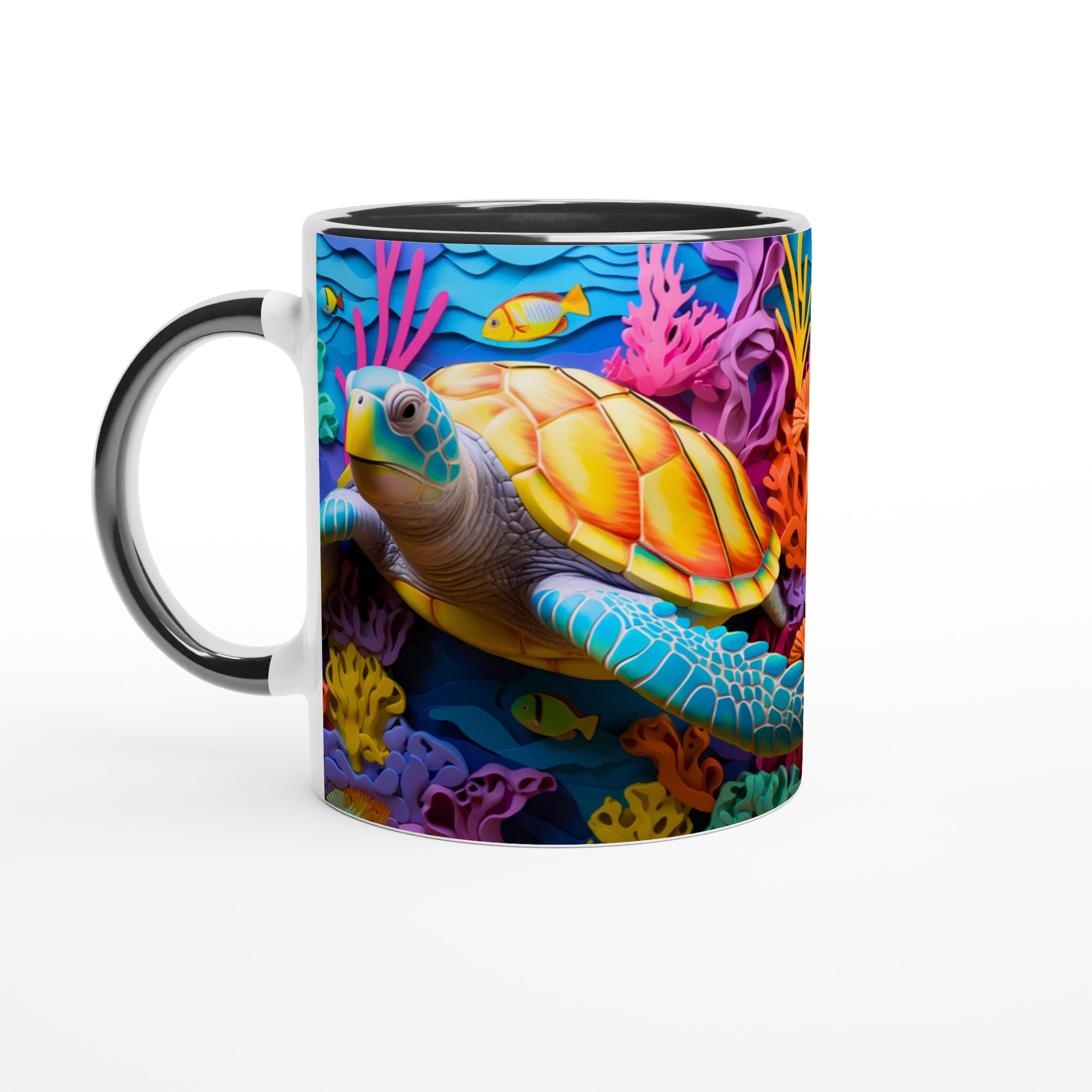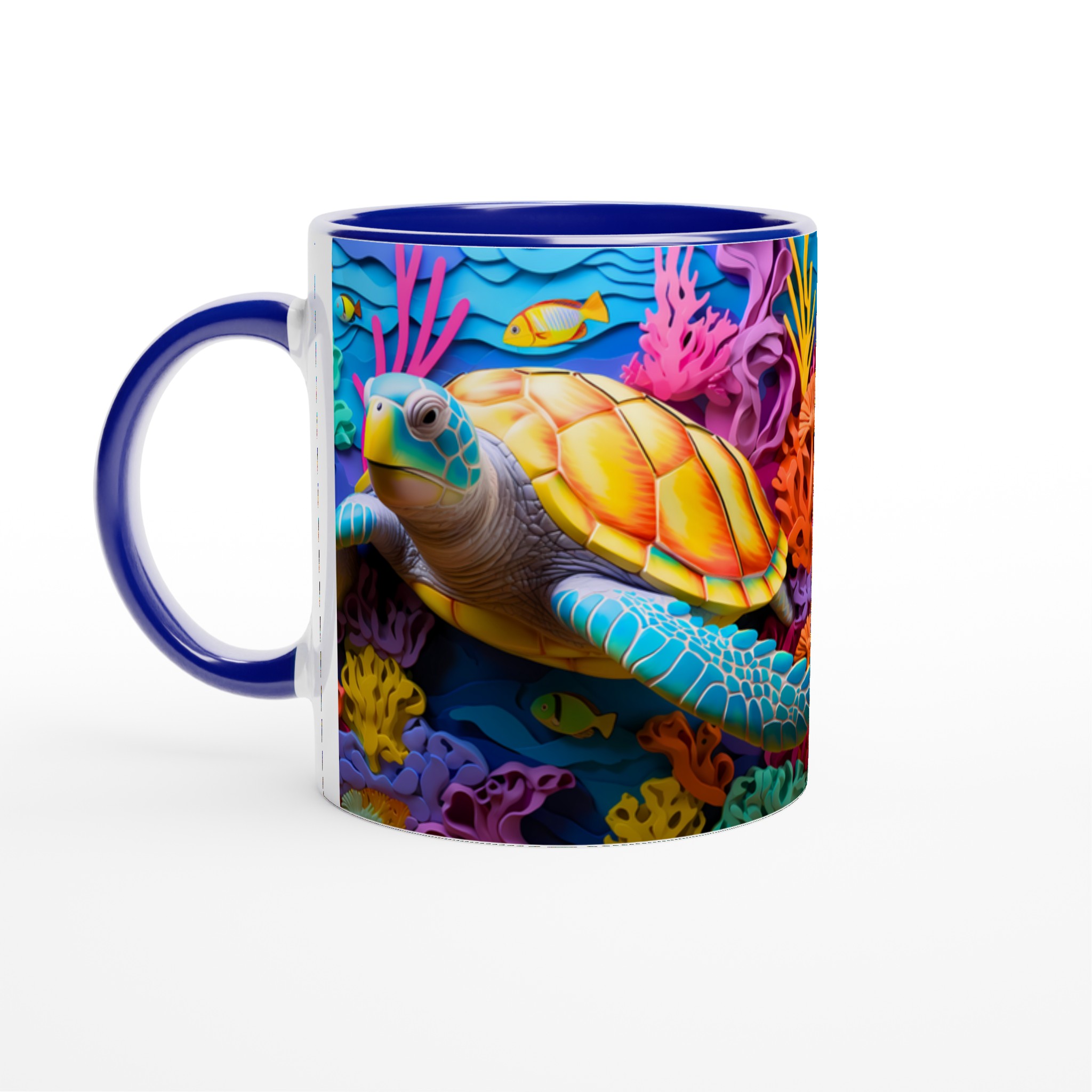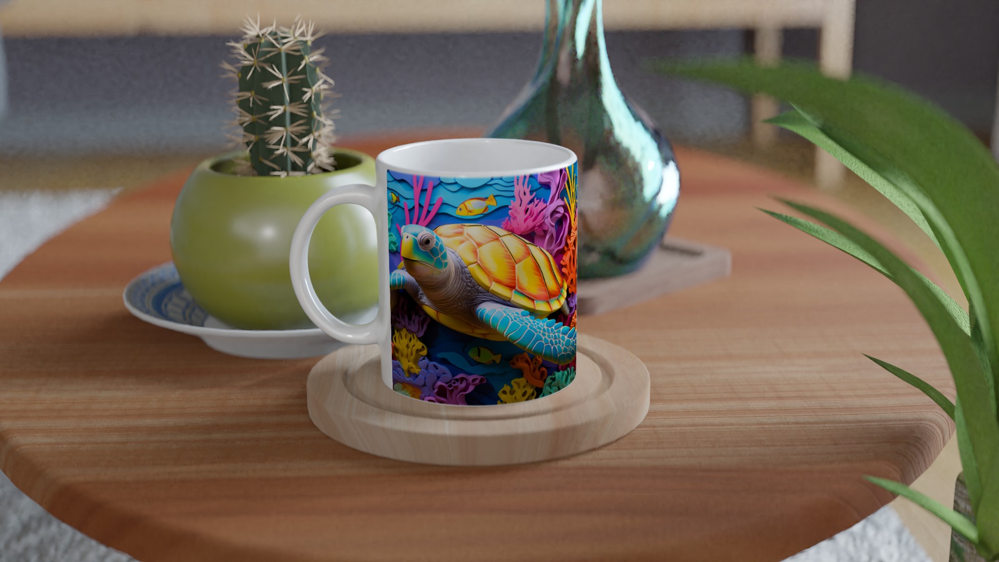 Vibrant Ocean Turtle Mug – 11oz Ceramic Mug in Your Choice of 7 Colors