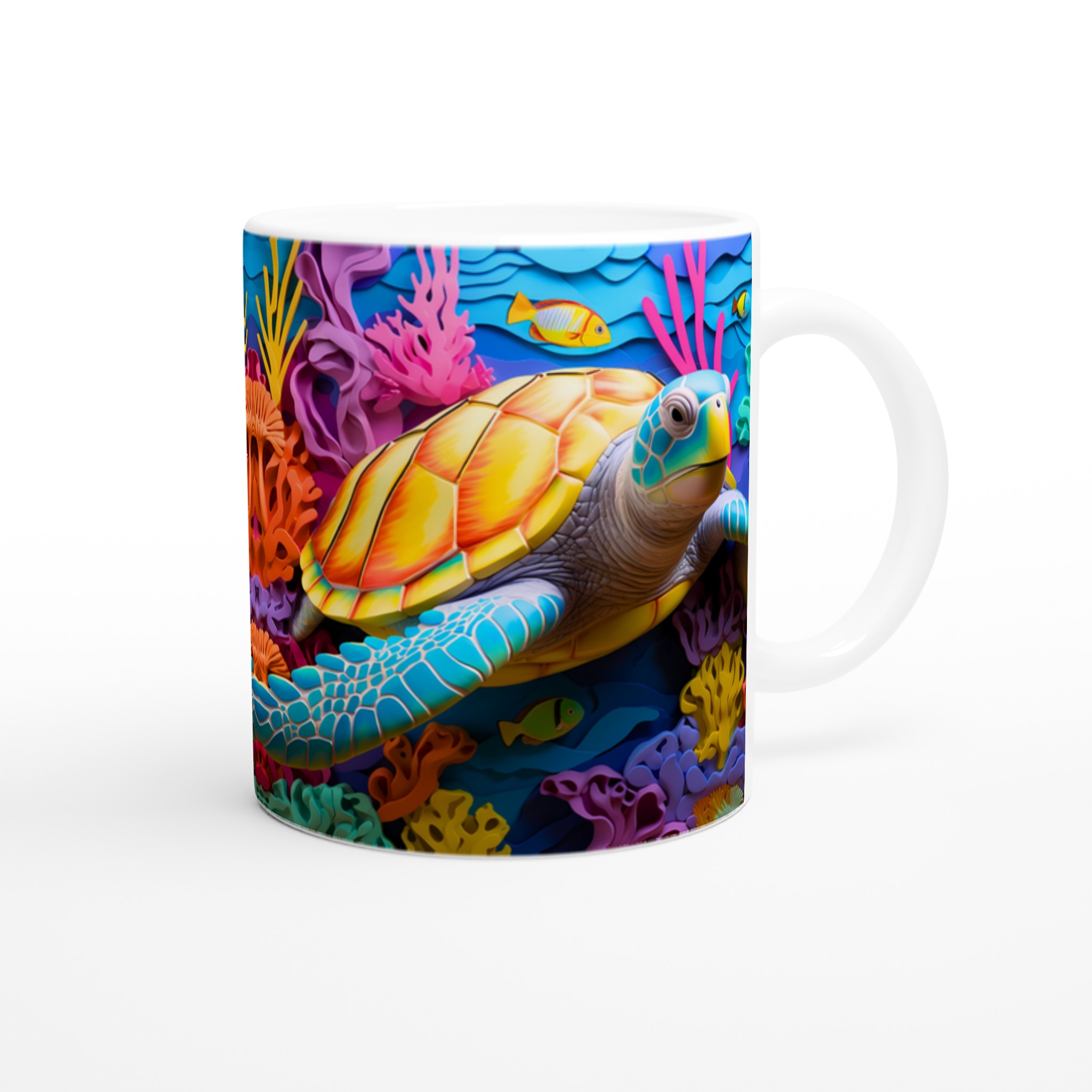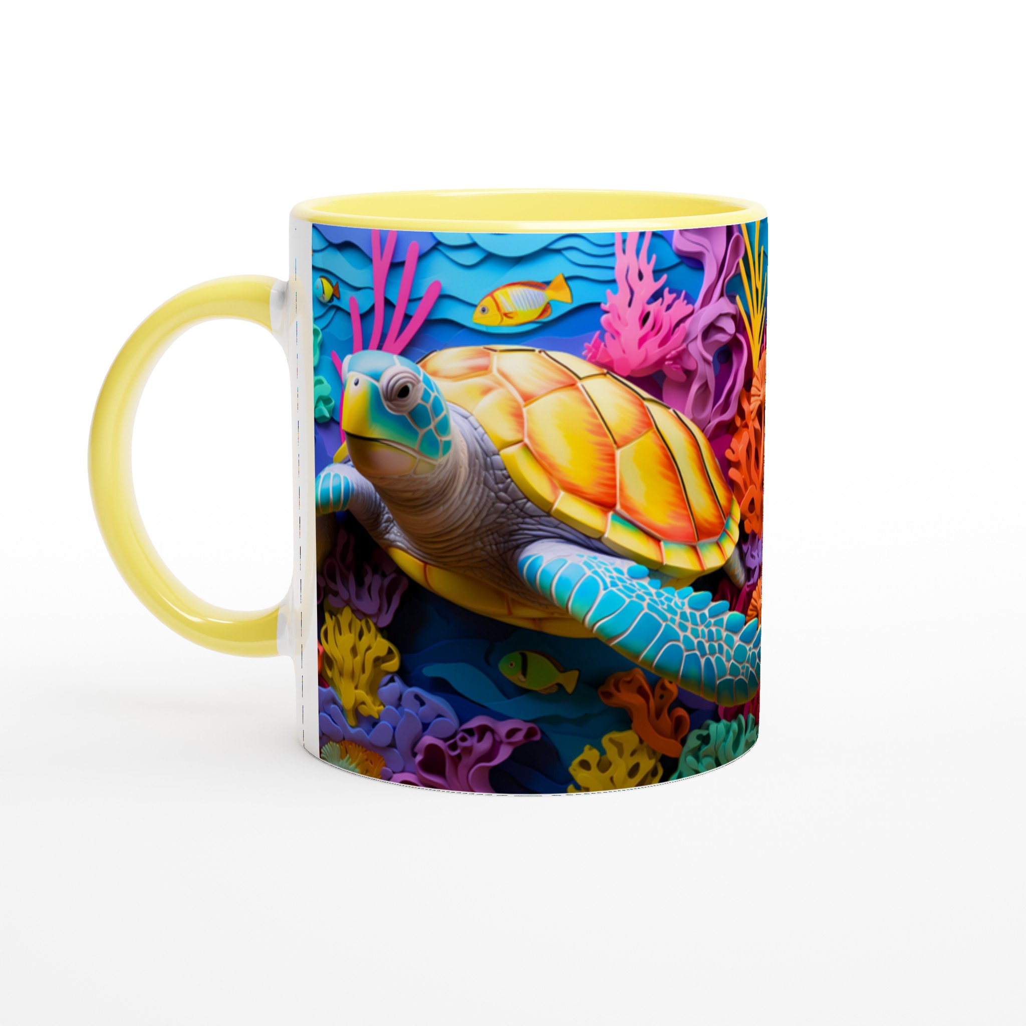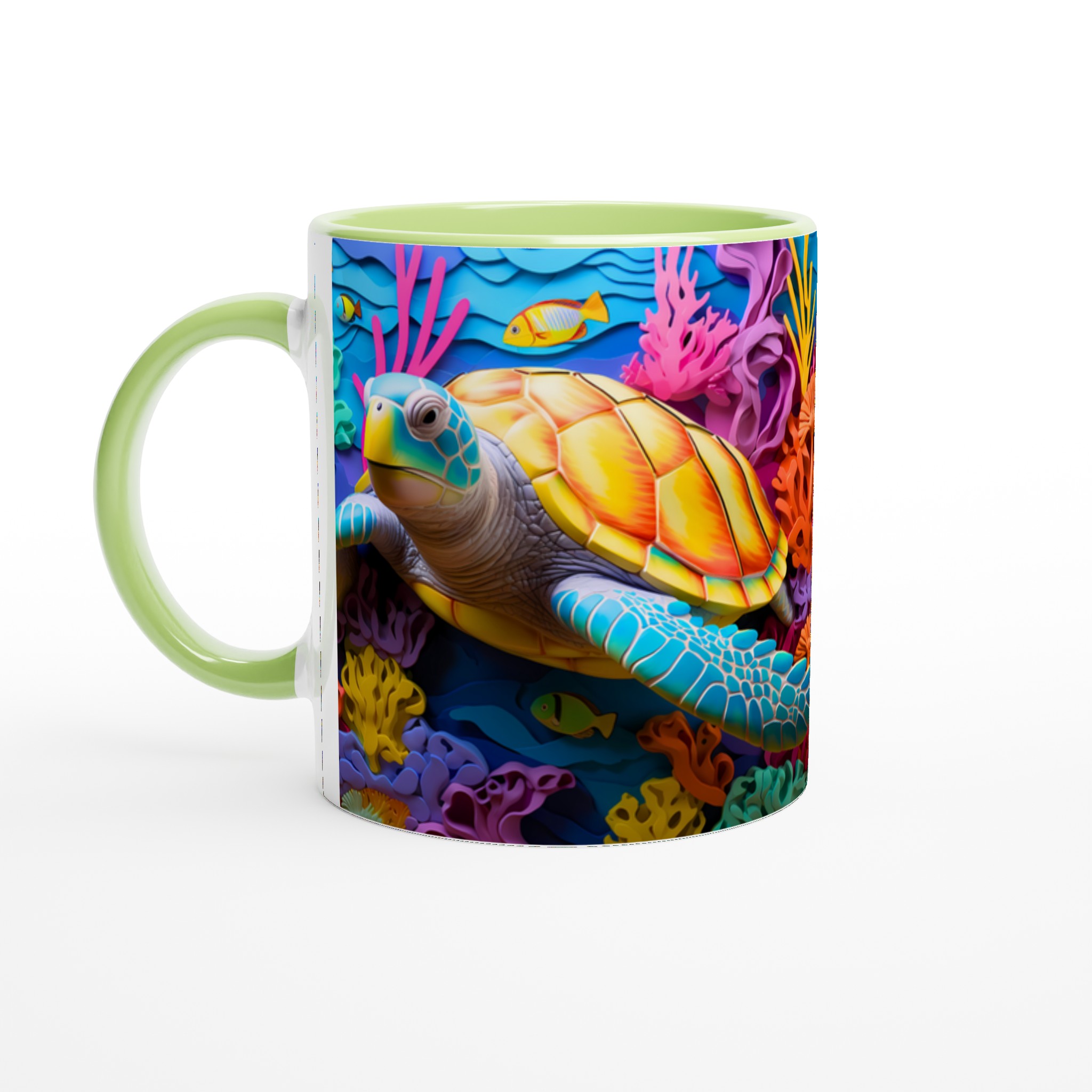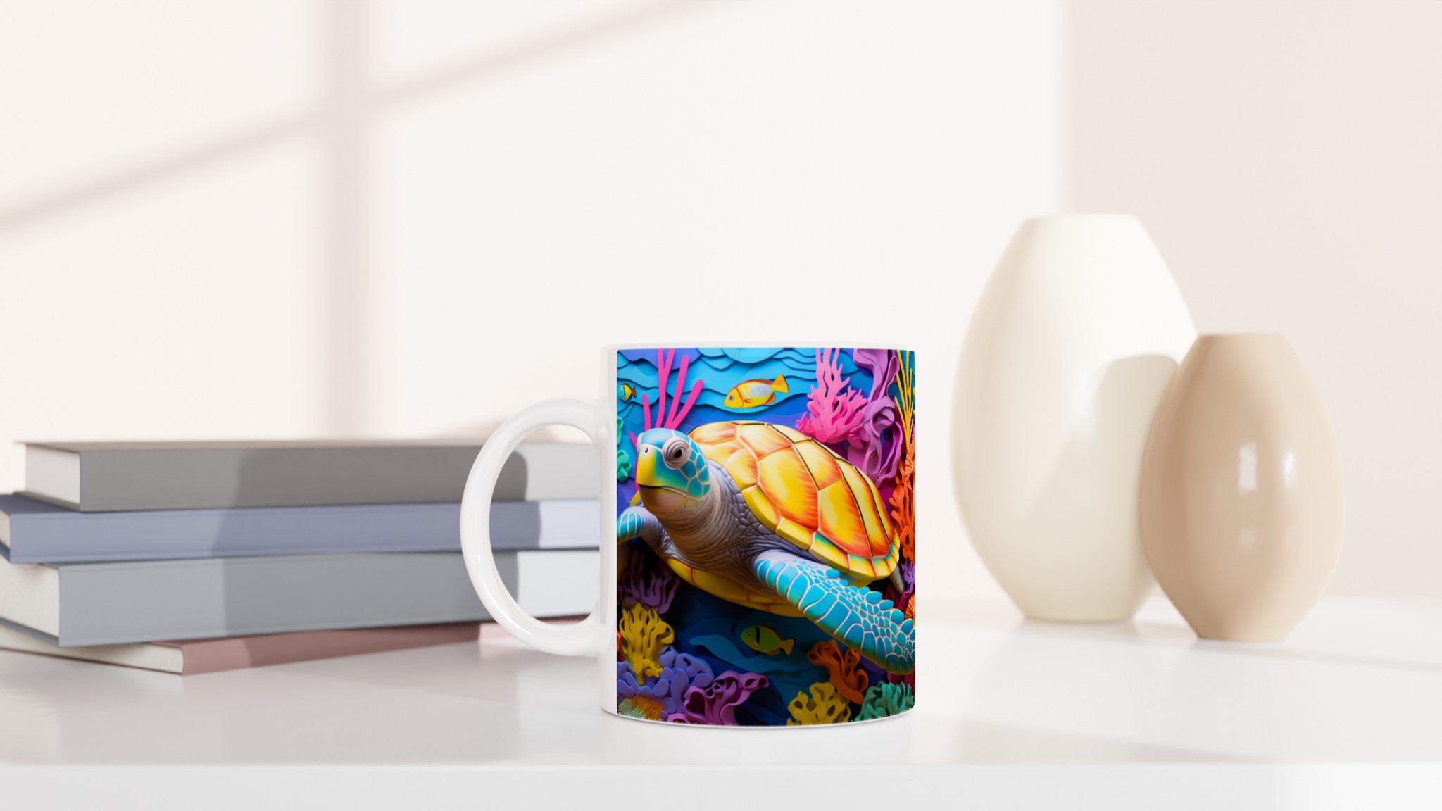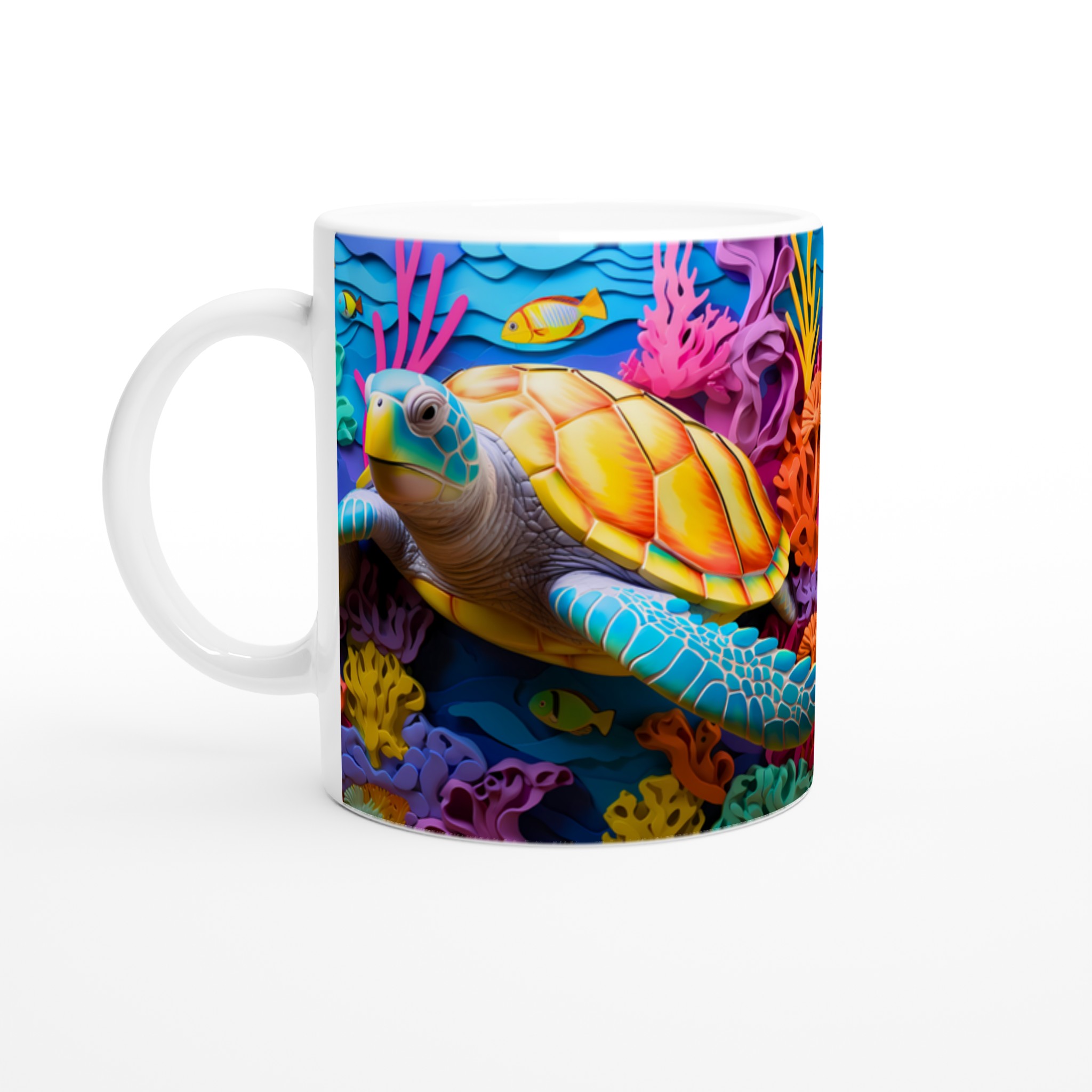 Vibrant Ocean Turtle Mug – 11oz Ceramic Mug in Your Choice of 7 Colors