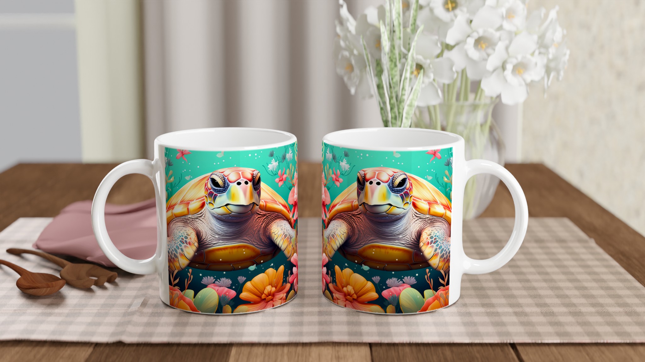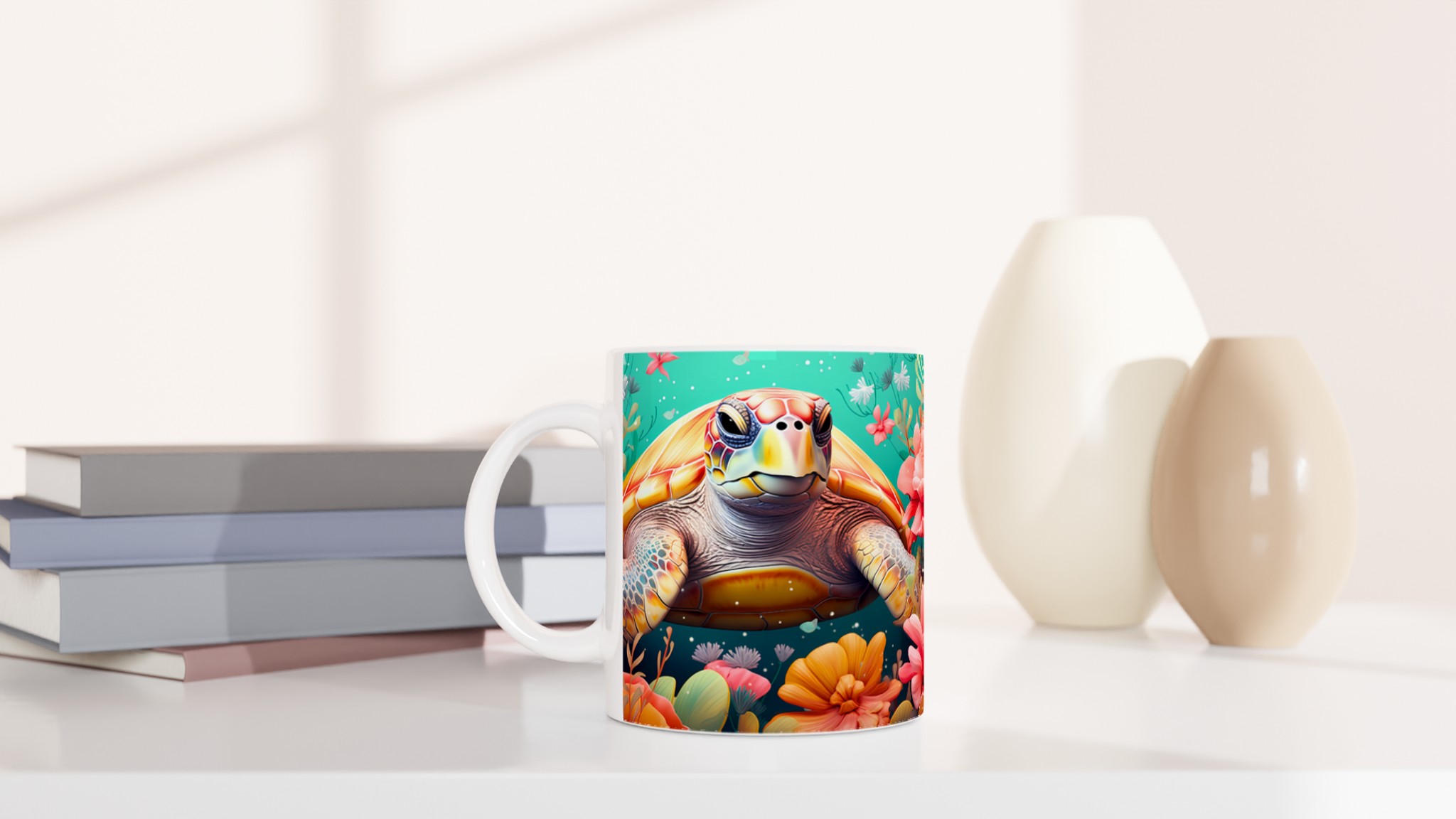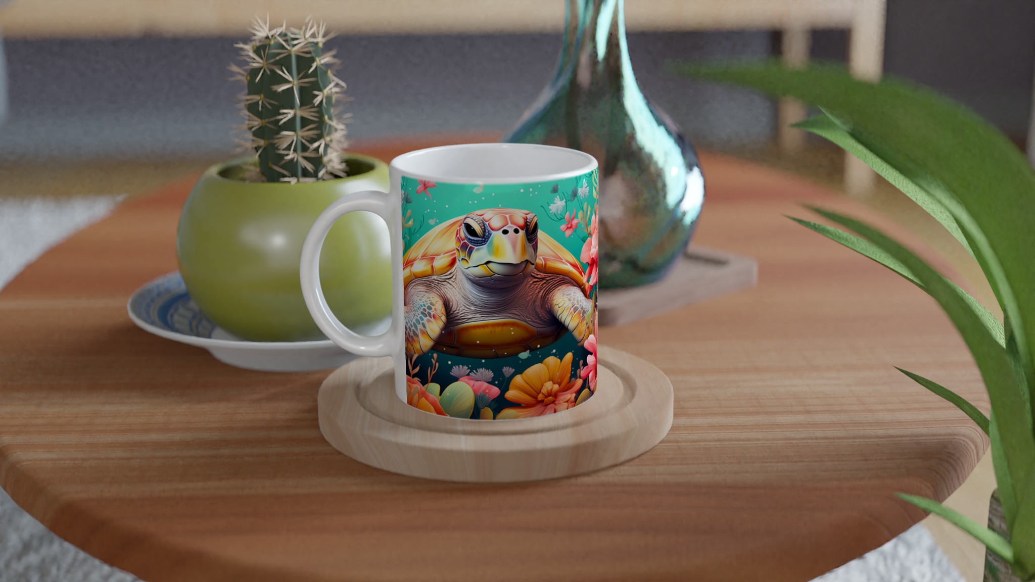 Vibrant Ocean Dream – Ceramic Mug 11oz: Tropical Turtle Art in Your Choice of Seven Hues