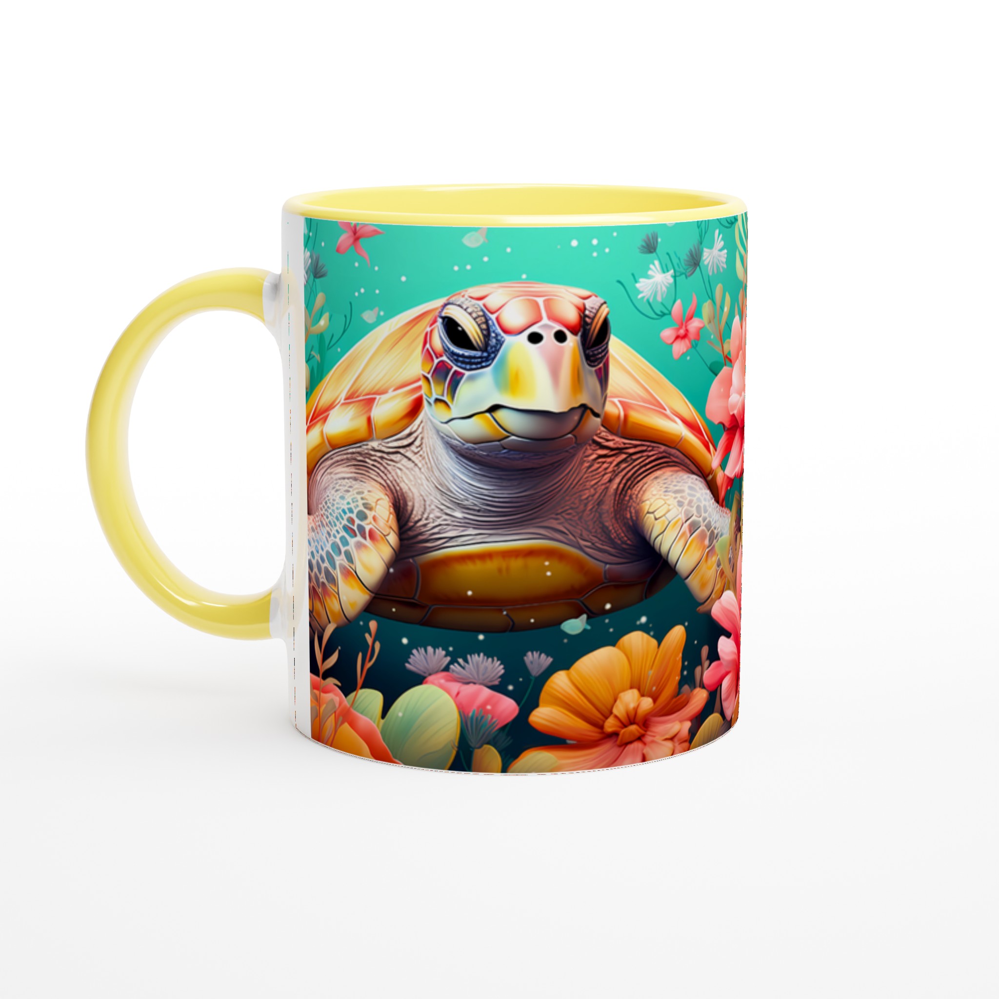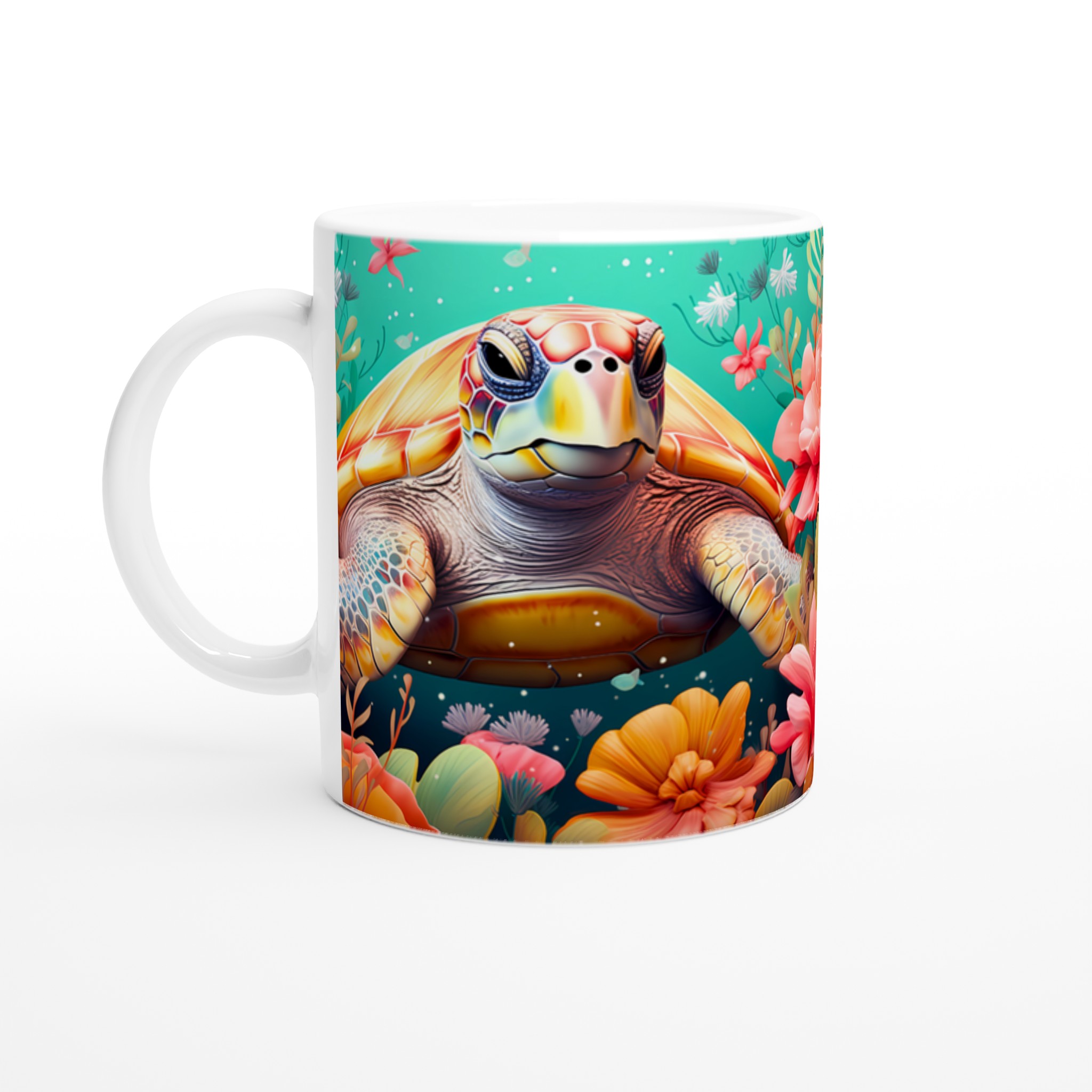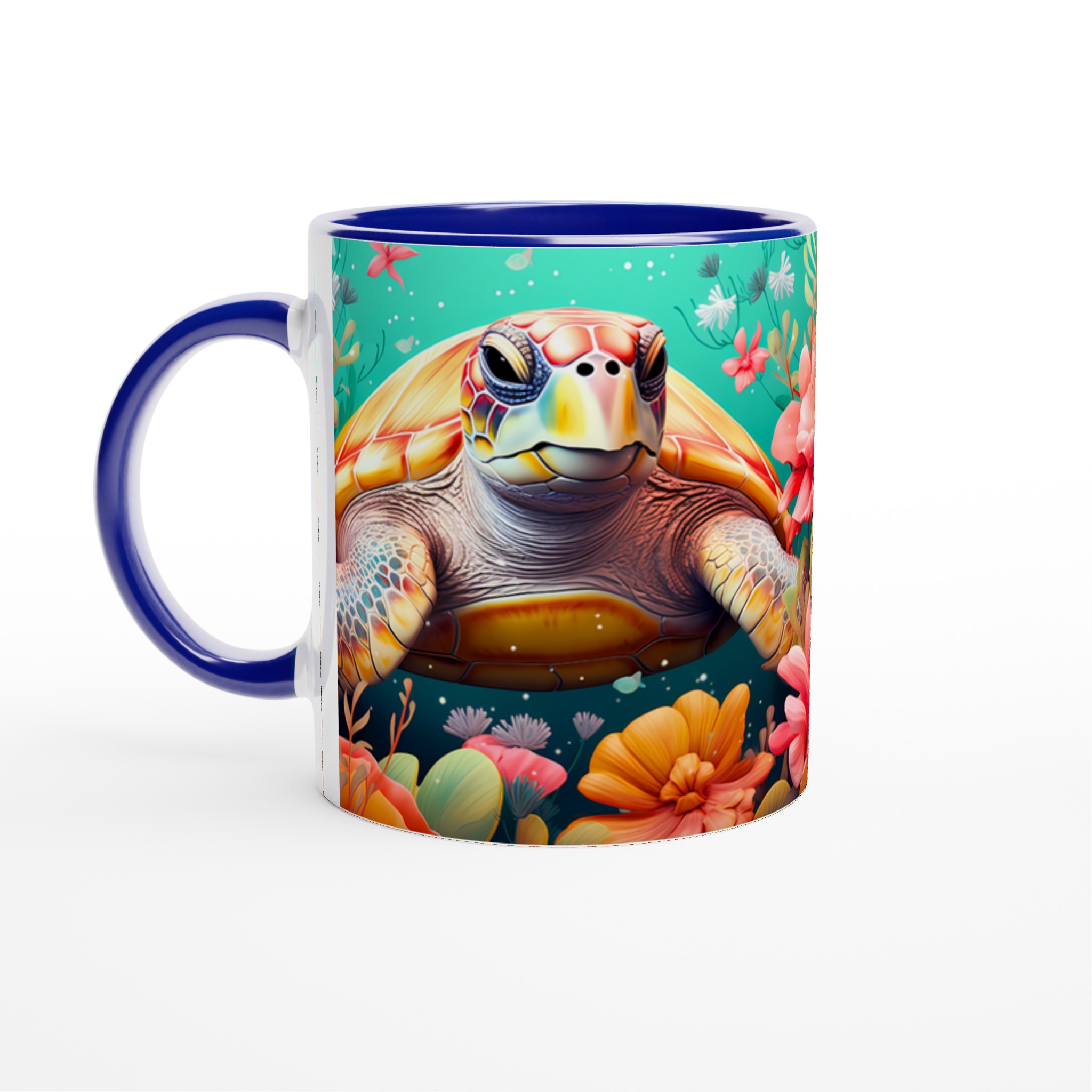 Vibrant Ocean Dream – Ceramic Mug 11oz: Tropical Turtle Art in Your Choice of Seven Hues