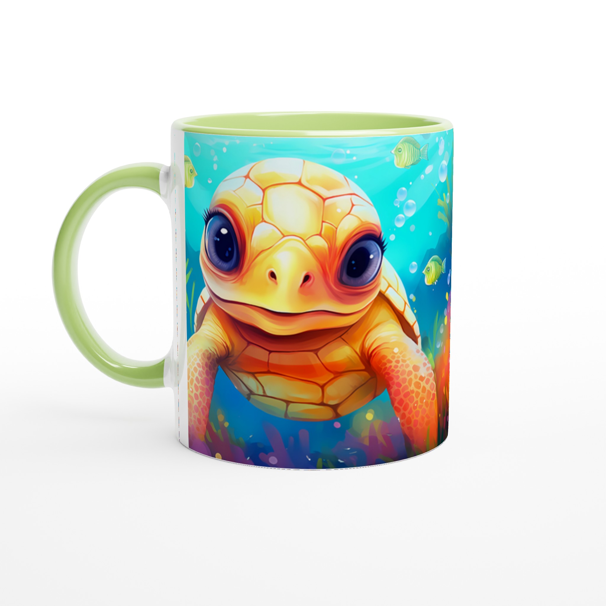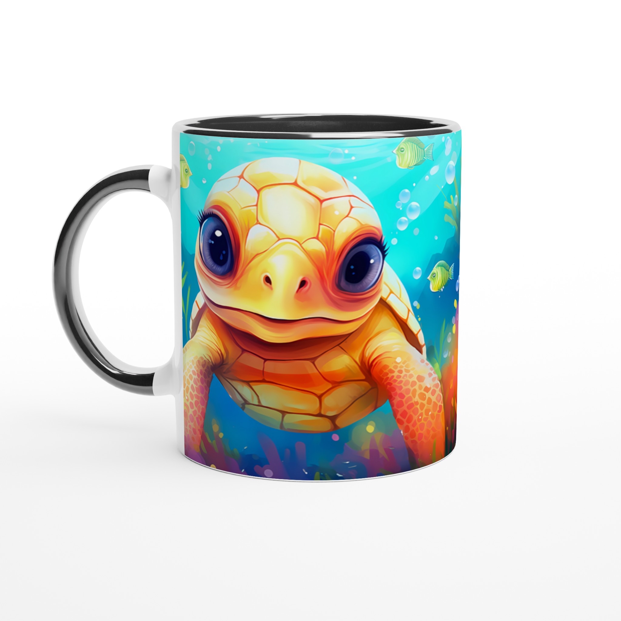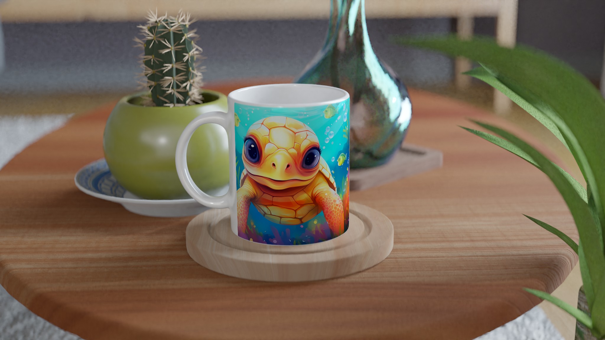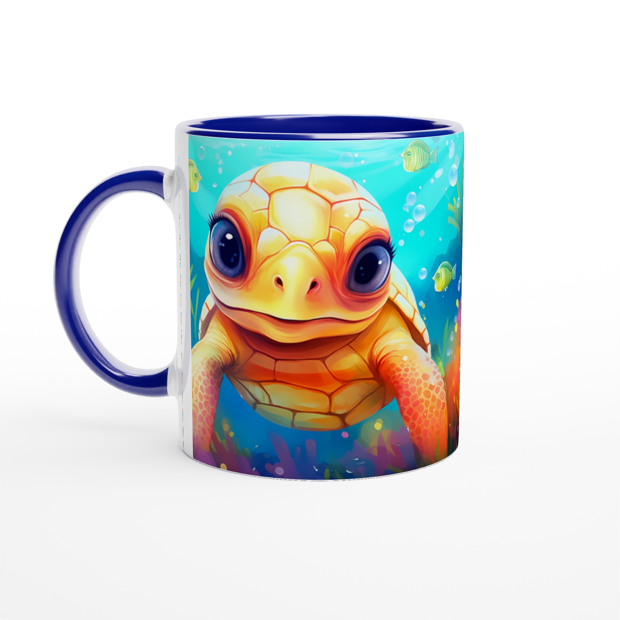 Charming Baby Sea Turtle – Vibrant Ceramic Mug 11oz in Your Choice of Seven Ocean Hues